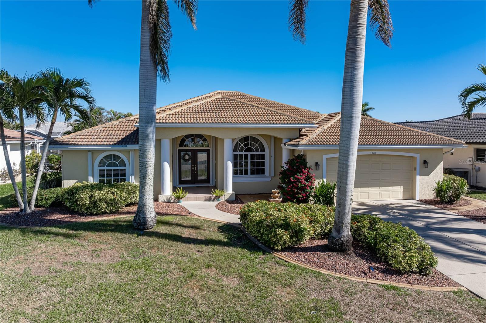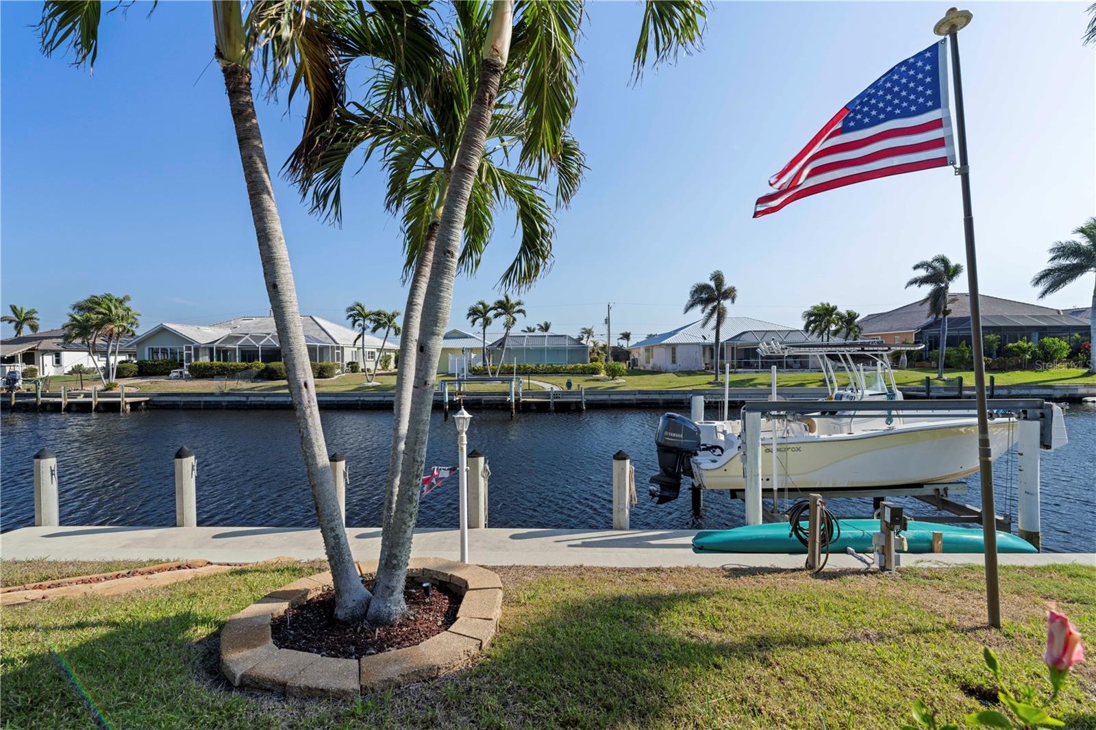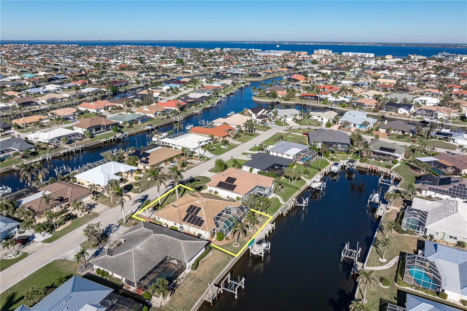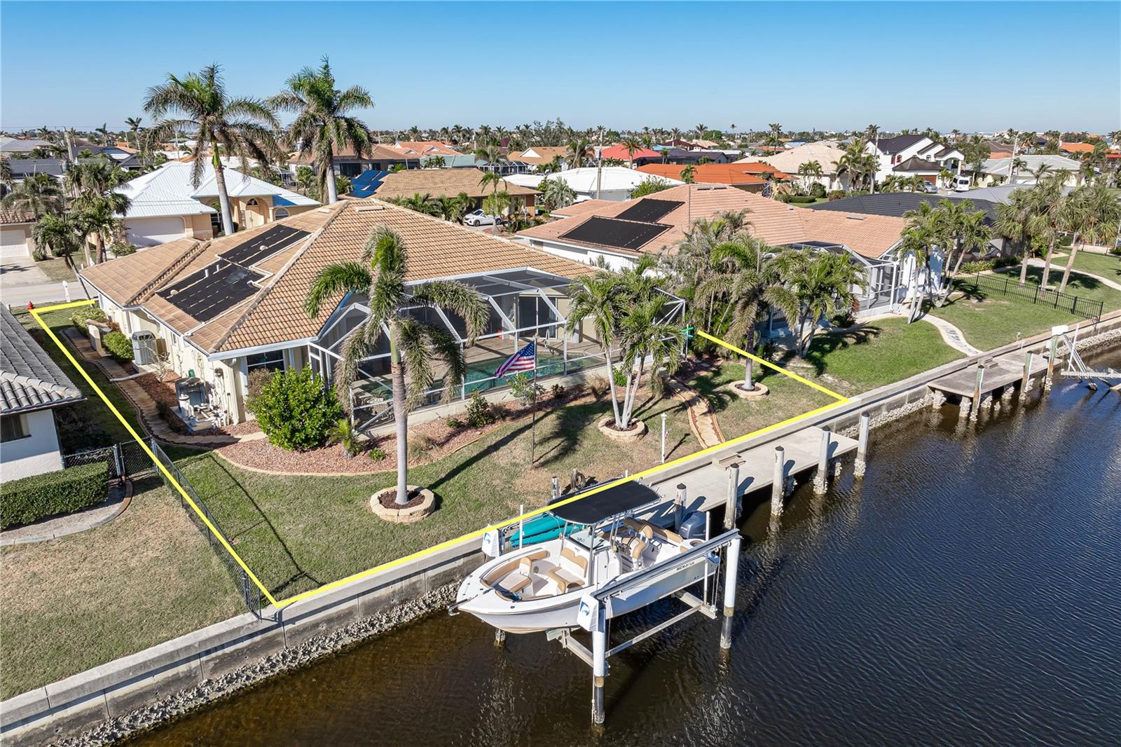 MOVE-IN READY, PGI WATERFRONT HOME W/OVERSIZED DOCK & QUICK BOATING ACCESS - Looking for a move-in ready, waterfront home? Consider this 3 bed/2 bath, waterfront home w/pool & attached 2-car garage. Inside, the home has a spacious, open floor plan w/soaring ceilings, updated kitchen & large bedrooms. Large picture windows, a wall of sliding glass doors & rectangular transom windows above the sliders flood the home w/natural light. Great room seamless blends indoor/outdoor living when sliding glass doors are open. Flex space that can be either a home office or formal dining area is just off the entry. Kitchen boasts quartz counters, stainless steel appliances, wood cabinetry w/ample cabinet & counter space. Tile flooring is found throughout the main living areas & bathrooms plus luxury vinyl wood-look plank flooring in the master bedroom as well as carpet in the guest bedrooms. The master suite has walk-out access to the lanai, pool & canal views, two walk-in closets & an en-suite master bath w/dual sinks, private WC, linen closet & glass-enclosed shower. One guest room is located at the front of the home & is currently used as a home office/gym. The 3rd bedroom is located on the opposite end of the home providing privacy for owners & guests. It features an oversized walk-in closet & walk-out access to the lanai. It is located across the hall from the guest bath. Outside, the lanai has a brick paver deck that surrounds the in-ground, heated (solar & electric) saltwater pool w/attached spa. The spa overflow is a waterfall feature that provides the sound of running water adding to the relaxing nature of this outdoor living space. Lanai offers a covered seating/dining area as well as a large sun deck area where you can lounge poolside to soak up some Florida sun. There is also an outdoor shower that lets you rinse off after a day on the boat or time spent in the pool. The back walkway leads to the oversized, 45 ft concrete dock w/10,000 lb boat lift. Water & electric hook-ups are available dockside. Reach open water in under 15 minutes from your backyard & start enjoying some of the best fishing & boating SW Florida has to offer. Other amenities include whole-house water softener, whole-house hurricane protection, an attached oversized 2-car garage w/workshop bump-out & an exterior storage closet (the fisherman's equipment nook) where you can store fishing, boating & lawn care items without taking up valuable space in the garage. Furniture is negotiable. Make an appointment today! You won't be disappointed.