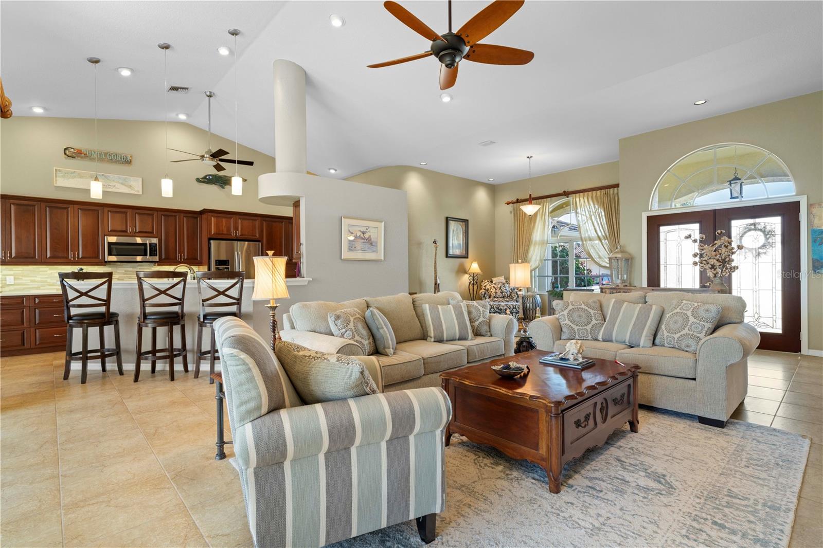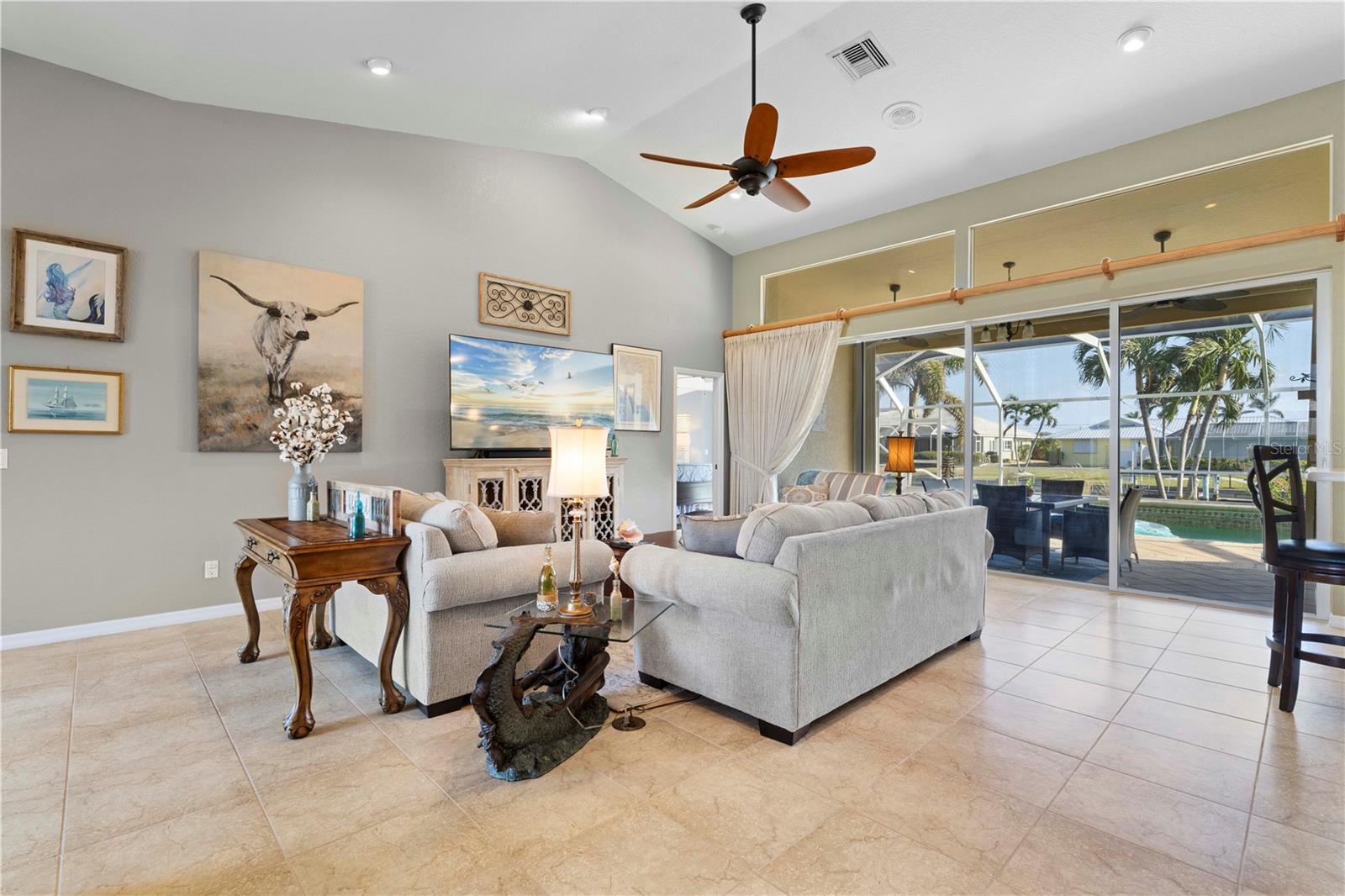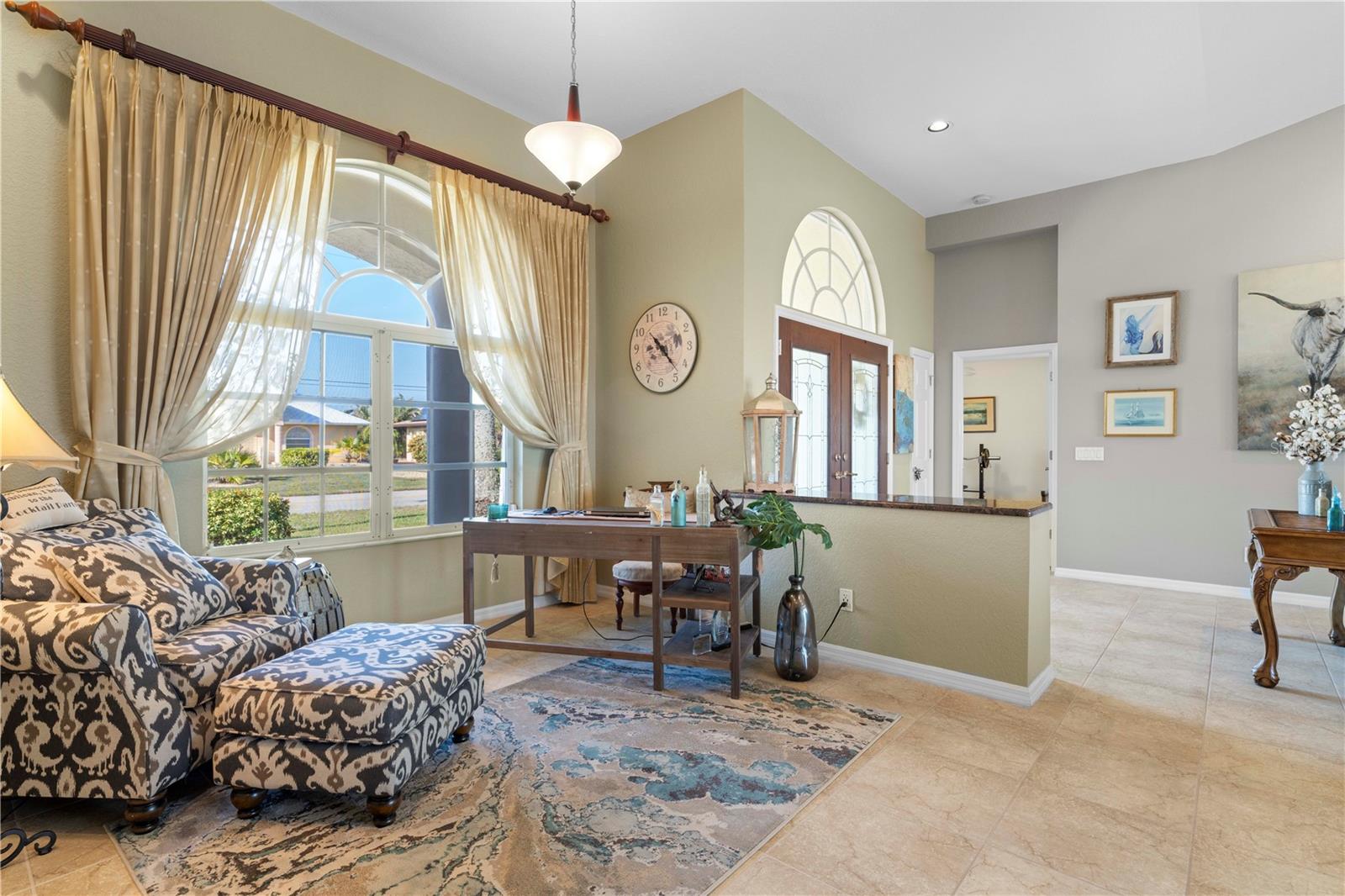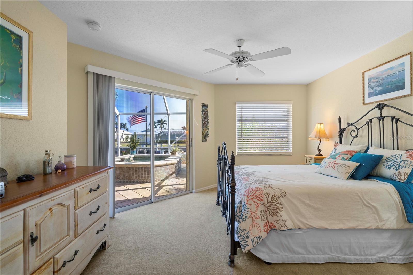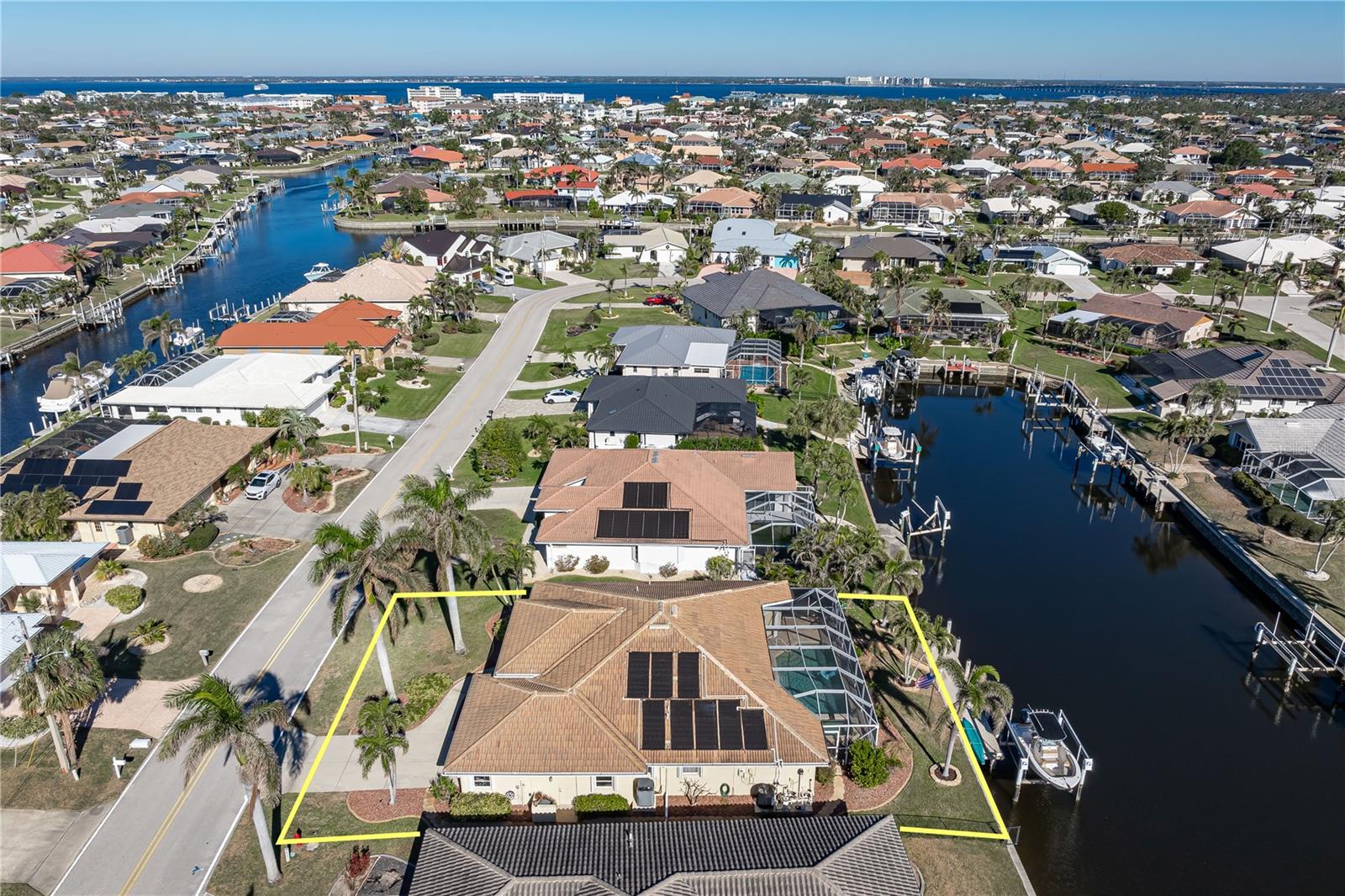 MOVE-IN READY, PGI WATERFRONT HOME W/OVERSIZED DOCK & QUICK BOATING ACCESS - Looking for a move-in ready, waterfront home? Consider this 3 bed/2 bath, waterfront home w/pool & attached 2-car garage. Inside, the home has a spacious, open floor plan w/soaring ceilings, updated kitchen & large bedrooms. Large picture windows, a wall of sliding glass doors & rectangular transom windows above the sliders flood the home w/natural light. Great room seamless blends indoor/outdoor living when sliding glass doors are open. Flex space that can be either a home office or formal dining area is just off the entry. Kitchen boasts quartz counters, stainless steel appliances, wood cabinetry w/ample cabinet & counter space. Tile flooring is found throughout the main living areas & bathrooms plus luxury vinyl wood-look plank flooring in the master bedroom as well as carpet in the guest bedrooms. The master suite has walk-out access to the lanai, pool & canal views, two walk-in closets & an en-suite master bath w/dual sinks, private WC, linen closet & glass-enclosed shower. One guest room is located at the front of the home & is currently used as a home office/gym. The 3rd bedroom is located on the opposite end of the home providing privacy for owners & guests. It features an oversized walk-in closet & walk-out access to the lanai. It is located across the hall from the guest bath. Outside, the lanai has a brick paver deck that surrounds the in-ground, heated (solar & electric) saltwater pool w/attached spa. The spa overflow is a waterfall feature that provides the sound of running water adding to the relaxing nature of this outdoor living space. Lanai offers a covered seating/dining area as well as a large sun deck area where you can lounge poolside to soak up some Florida sun. There is also an outdoor shower that lets you rinse off after a day on the boat or time spent in the pool. The back walkway leads to the oversized, 45 ft concrete dock w/10,000 lb boat lift. Water & electric hook-ups are available dockside. Reach open water in under 15 minutes from your backyard & start enjoying some of the best fishing & boating SW Florida has to offer. Other amenities include whole-house water softener, whole-house hurricane protection, an attached oversized 2-car garage w/workshop bump-out & an exterior storage closet (the fisherman's equipment nook) where you can store fishing, boating & lawn care items without taking up valuable space in the garage. Furniture is negotiable. Make an appointment today! You won't be disappointed.