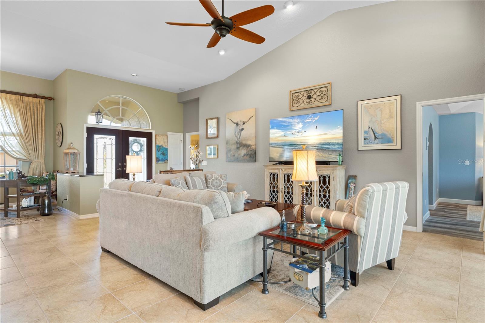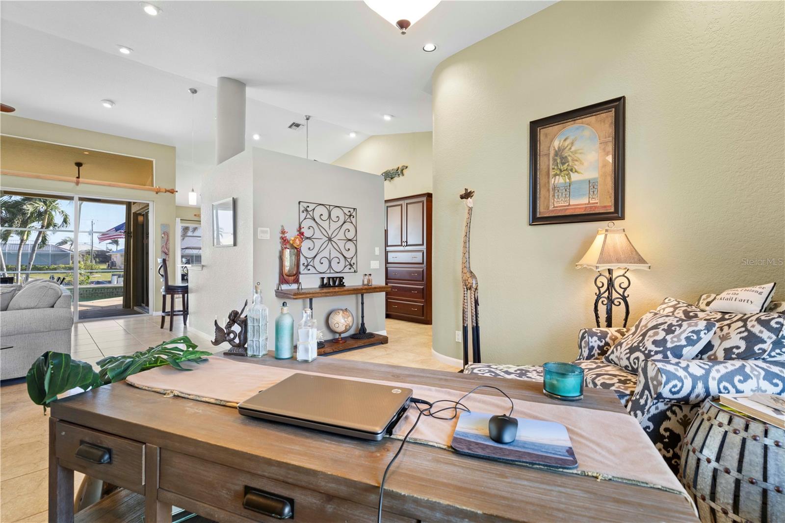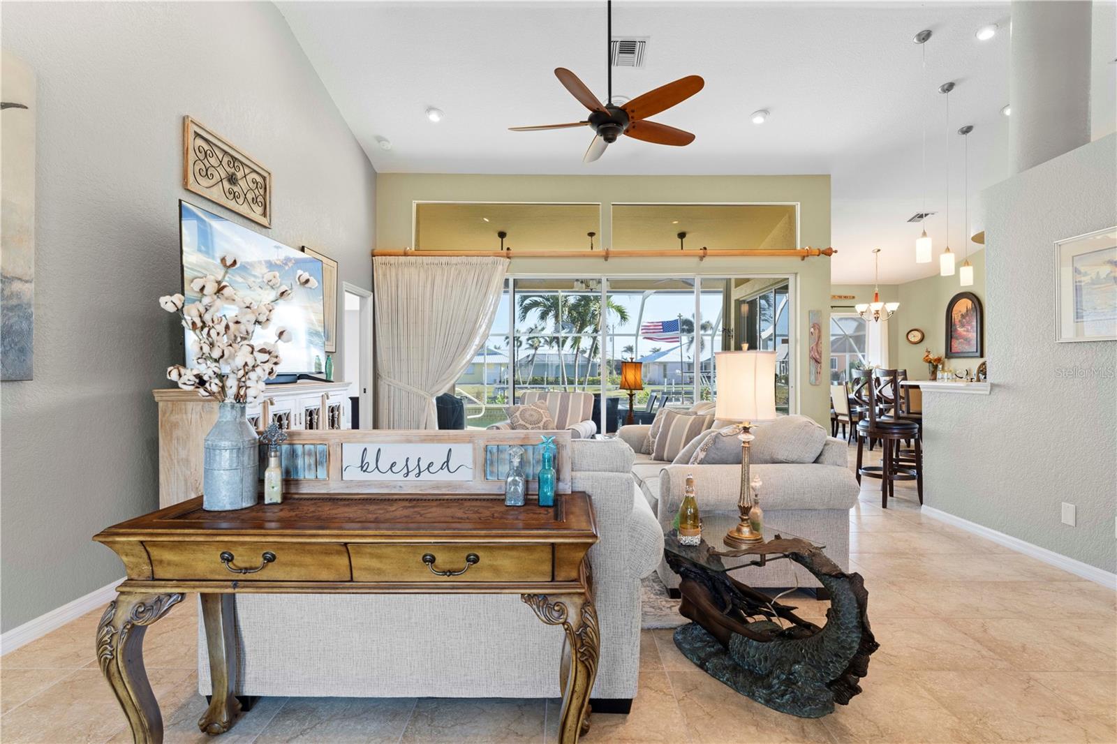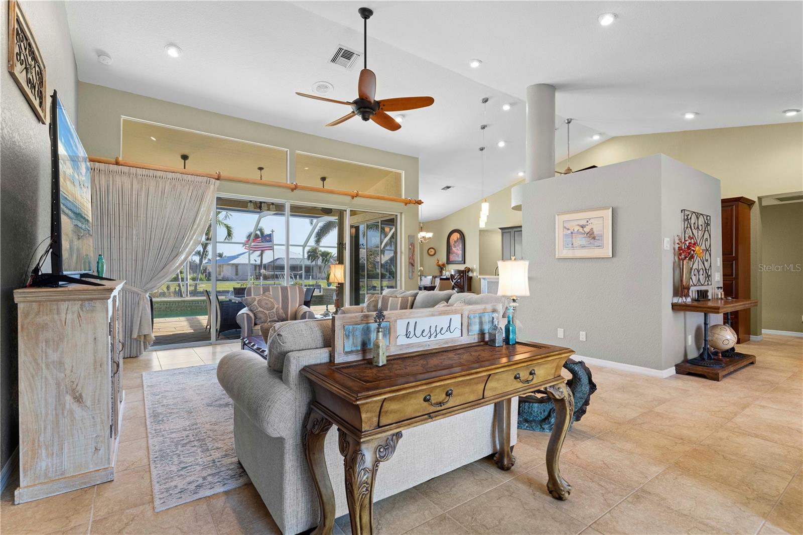 MOVE-IN READY, PGI WATERFRONT HOME W/OVERSIZED DOCK & QUICK BOATING ACCESS - Looking for a move-in ready, waterfront home? Consider this 3 bed/2 bath, waterfront home w/pool & attached 2-car garage. Inside, the home has a spacious, open floor plan w/soaring ceilings, updated kitchen & large bedrooms. Large picture windows, a wall of sliding glass doors & rectangular transom windows above the sliders flood the home w/natural light. Great room seamless blends indoor/outdoor living when sliding glass doors are open. Flex space that can be either a home office or formal dining area is just off the entry. Kitchen boasts quartz counters, stainless steel appliances, wood cabinetry w/ample cabinet & counter space. Tile flooring is found throughout the main living areas & bathrooms plus luxury vinyl wood-look plank flooring in the master bedroom as well as carpet in the guest bedrooms. The master suite has walk-out access to the lanai, pool & canal views, two walk-in closets & an en-suite master bath w/dual sinks, private WC, linen closet & glass-enclosed shower. One guest room is located at the front of the home & is currently used as a home office/gym. The 3rd bedroom is located on the opposite end of the home providing privacy for owners & guests. It features an oversized walk-in closet & walk-out access to the lanai. It is located across the hall from the guest bath. Outside, the lanai has a brick paver deck that surrounds the in-ground, heated (solar & electric) saltwater pool w/attached spa. The spa overflow is a waterfall feature that provides the sound of running water adding to the relaxing nature of this outdoor living space. Lanai offers a covered seating/dining area as well as a large sun deck area where you can lounge poolside to soak up some Florida sun. There is also an outdoor shower that lets you rinse off after a day on the boat or time spent in the pool. The back walkway leads to the oversized, 45 ft concrete dock w/10,000 lb boat lift. Water & electric hook-ups are available dockside. Reach open water in under 15 minutes from your backyard & start enjoying some of the best fishing & boating SW Florida has to offer. Other amenities include whole-house water softener, whole-house hurricane protection, an attached oversized 2-car garage w/workshop bump-out & an exterior storage closet (the fisherman's equipment nook) where you can store fishing, boating & lawn care items without taking up valuable space in the garage. Furniture is negotiable. Make an appointment today! You won't be disappointed.