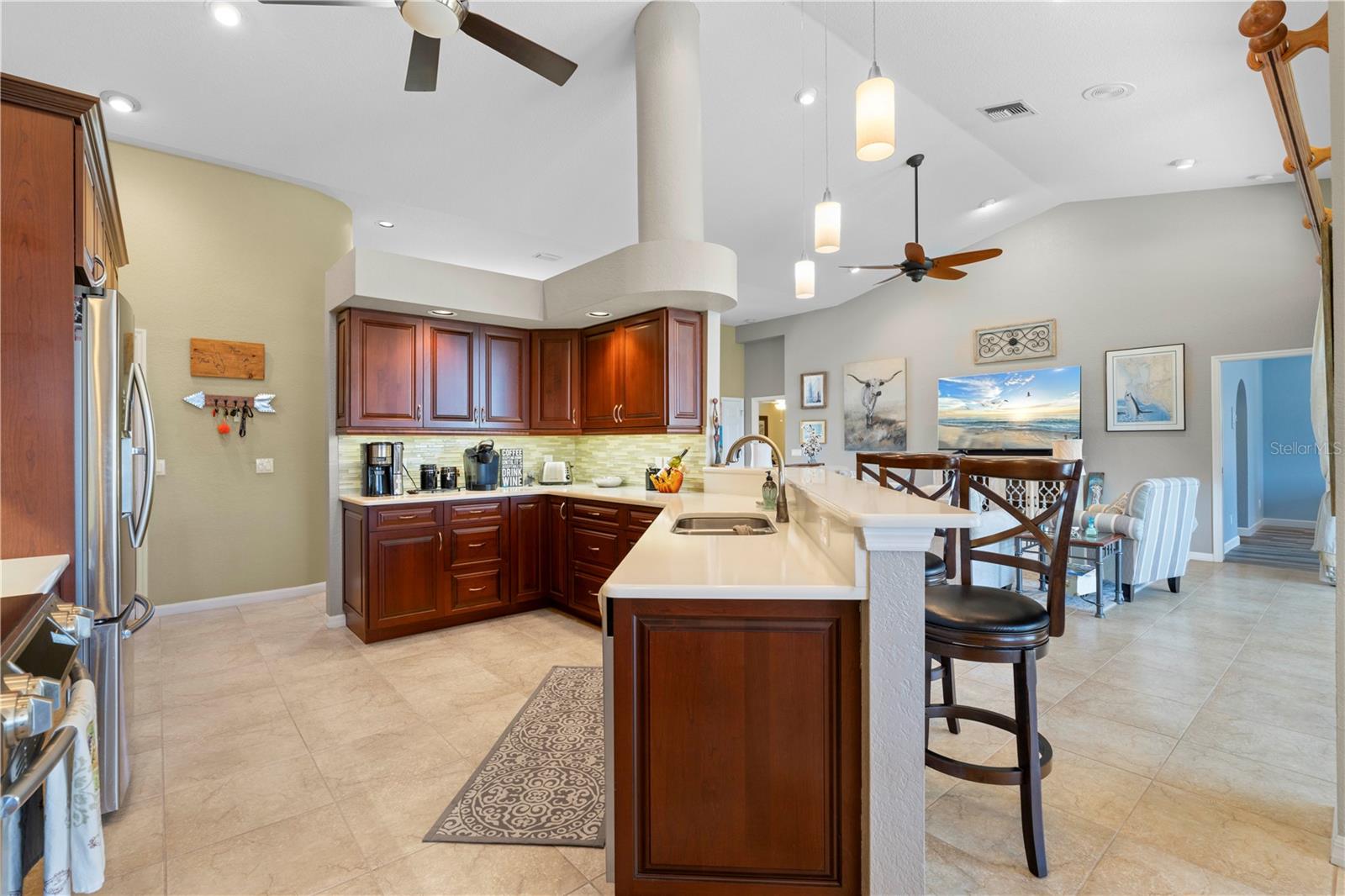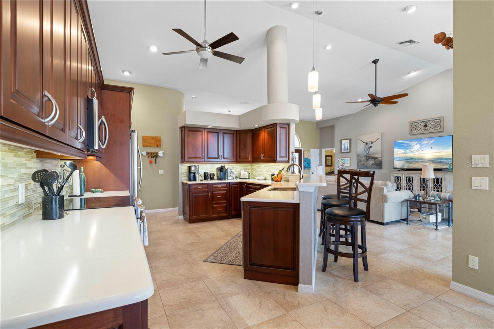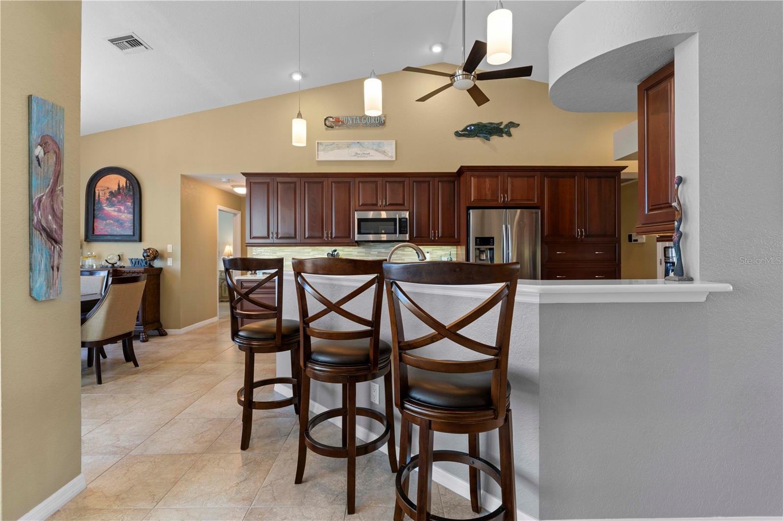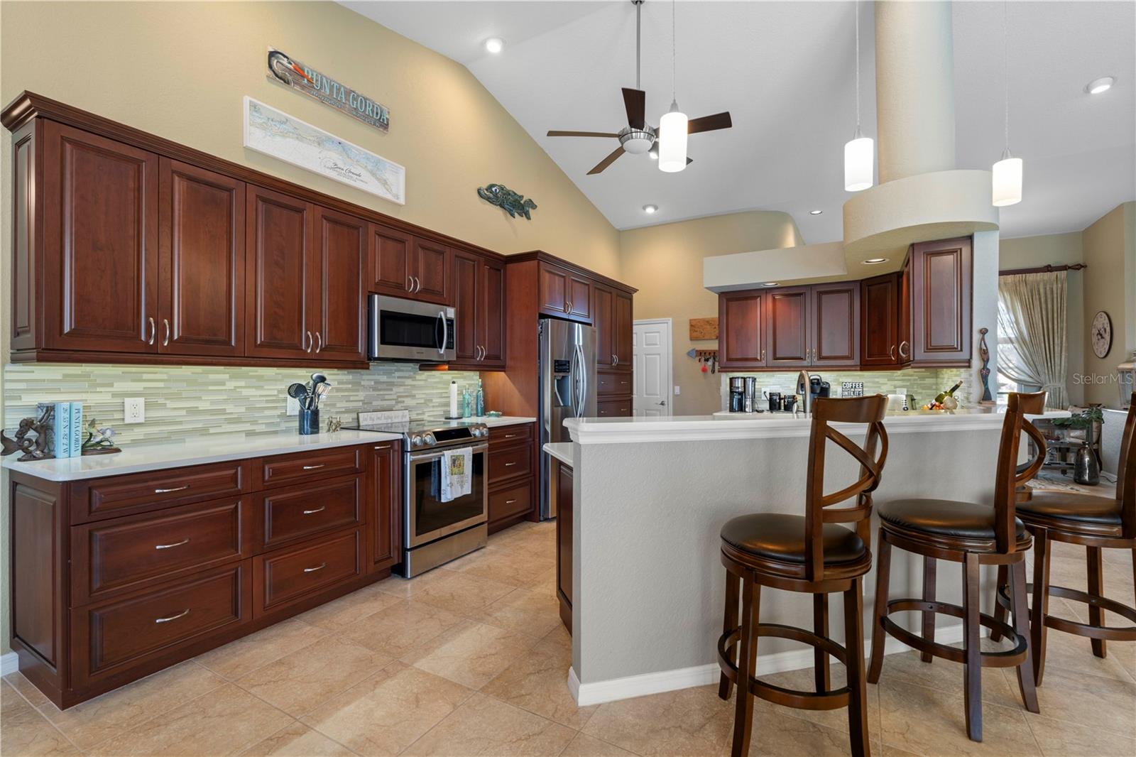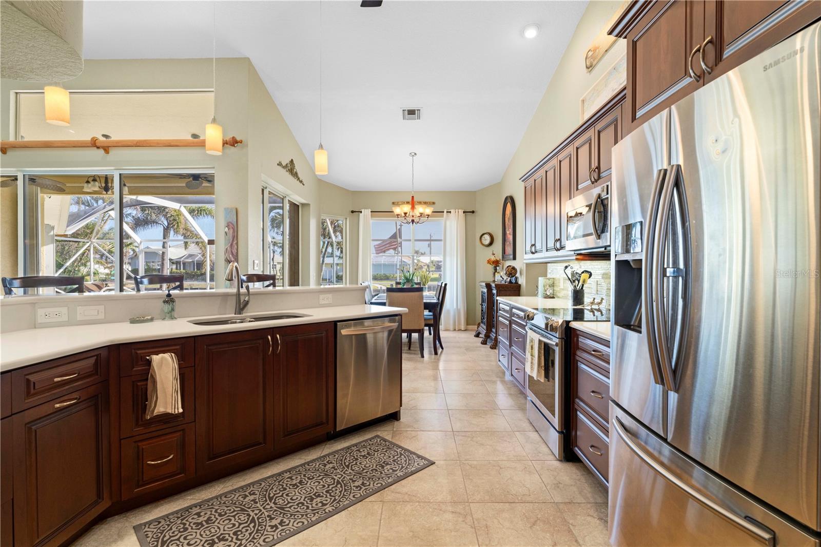 MOVE-IN READY, PGI WATERFRONT HOME W/OVERSIZED DOCK & QUICK BOATING ACCESS - Looking for a move-in ready, waterfront home? Consider this 3 bed/2 bath, waterfront home w/pool & attached 2-car garage. Inside, the home has a spacious, open floor plan w/soaring ceilings, updated kitchen & large bedrooms. Large picture windows, a wall of sliding glass doors & rectangular transom windows above the sliders flood the home w/natural light. Great room seamless blends indoor/outdoor living when sliding glass doors are open. Flex space that can be either a home office or formal dining area is just off the entry. Kitchen boasts quartz counters, stainless steel appliances, wood cabinetry w/ample cabinet & counter space. Tile flooring is found throughout the main living areas & bathrooms plus luxury vinyl wood-look plank flooring in the master bedroom as well as carpet in the guest bedrooms. The master suite has walk-out access to the lanai, pool & canal views, two walk-in closets & an en-suite master bath w/dual sinks, private WC, linen closet & glass-enclosed shower. One guest room is located at the front of the home & is currently used as a home office/gym. The 3rd bedroom is located on the opposite end of the home providing privacy for owners & guests. It features an oversized walk-in closet & walk-out access to the lanai. It is located across the hall from the guest bath. Outside, the lanai has a brick paver deck that surrounds the in-ground, heated (solar & electric) saltwater pool w/attached spa. The spa overflow is a waterfall feature that provides the sound of running water adding to the relaxing nature of this outdoor living space. Lanai offers a covered seating/dining area as well as a large sun deck area where you can lounge poolside to soak up some Florida sun. There is also an outdoor shower that lets you rinse off after a day on the boat or time spent in the pool. The back walkway leads to the oversized, 45 ft concrete dock w/10,000 lb boat lift. Water & electric hook-ups are available dockside. Reach open water in under 15 minutes from your backyard & start enjoying some of the best fishing & boating SW Florida has to offer. Other amenities include whole-house water softener, whole-house hurricane protection, an attached oversized 2-car garage w/workshop bump-out & an exterior storage closet (the fisherman's equipment nook) where you can store fishing, boating & lawn care items without taking up valuable space in the garage. Furniture is negotiable. Make an appointment today! You won't be disappointed.