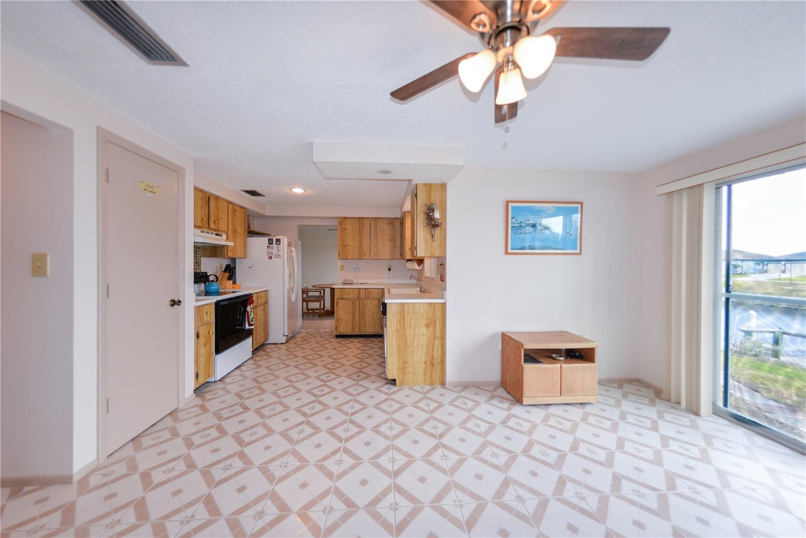 Enjoy quick sailboat access to Charlotte Harbor from your own concrete seawall and dock with this elevated, 3/2/2 home. 2024 A/C system, 2023 roof along with newer windows gives this concrete block house great bones to start with. No flooding issue with either storm in 2024. The family room sliding glass door provides wonderful water views and captures the morning sunrises and the living room also sports water views and sunsets across the street! NO HOA to deal with this property.
