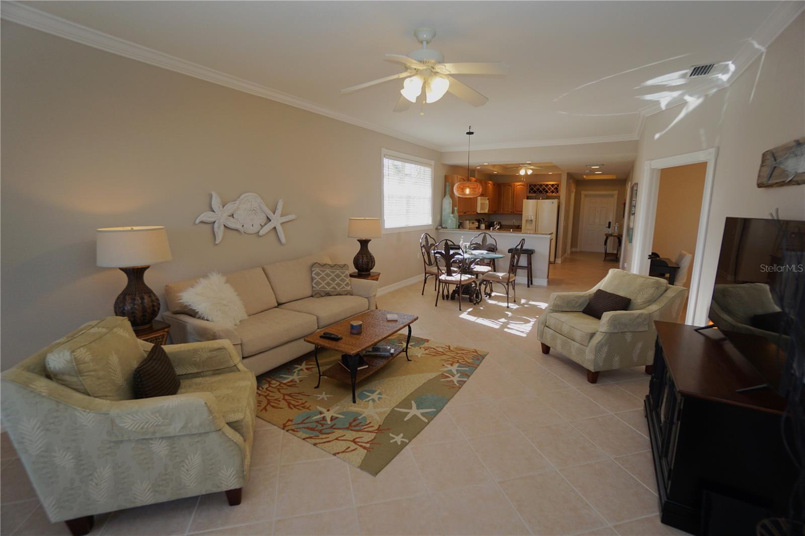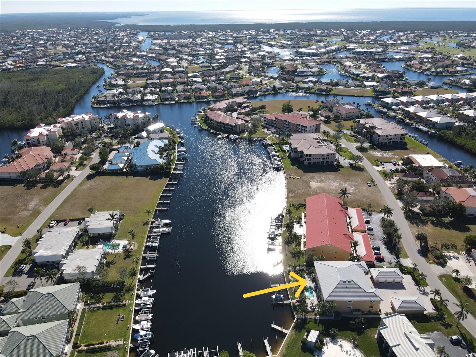 Executive fully furnished two bedroom plus den/bedroom with deeded garage and dock, on wide canal, located in beautiful PGI. The Palm Bay Condominiums are one of the cleanest and most effectively run association in all of Punta Gorda. Palm Bay is fully funded with reserves, has a brand new roof installed and the exterior grounds are as well kept as any association that I have seen in a very long time. Each unit comes with a deeded garage with additional parking available for family or friends. This unit has a deeded dock that not all units have. The pool area feels like a resort pool set up complete with a heated spa and waterfalls that will put you to sleep as you relax in the Florida sun or you can enjoy the view from your enclosed and screened in lanai while you have a nice meal overlooking the wide water canal and your boat. A beautiful east lanai allows you to have that first cup of coffee on the lanai while you sit in the warmth of the morning sun. Once you take one step inside this home, you will notice the pride of ownership as this unit is simply immaculate. It has its own spacious laundry room, an open layout with the kitchen, dining and living room creating a very large entertaining area. The main area has a large format ceramic tile installed on a 45 degree angle. Granite counter tops finish off the kitchen area with a nice counter top bar area for friends and family to gather around. The upgrades like crown molding and multiple tray ceiling areas give the home a stunning feeling complimented with high end and well thought out trim package. The primary bedroom has his and her closets and the primary bathroom has his and her sinks as well with a full size walk in shower. The second bedroom is very large and is next to a full size second bathroom. A large third room can be used as a office, 2nd t.v. area or a visitor bedroom. Then you get the added privacy of being a end unit and of course additional sunlight with the additional window that middle units do not have. With hurricane rated windows and a hurricane rated doorwall slider, the outside has a super clean appearance and allows for easier maintenance. As you browse the pictures, you will notice how nice the quality of the furniture is and this home is being sold FULLY FURNISHED. The seller may take a few personal items, but all feet on ground furniture is being given to the new buyer for free and it is really good quality furniture. The location of this home is just minutes away from downtown Punta Gorda and the wonderful and uniques restaurants, pubs and sport bars. It is fun to just walk along the Charlotte Harbor on the miles long walking and biking path and to see all the neat historical sites. Pickleball has taken over our town and there are courts everywhere including the new pickleplex where you can join a league or play in tournaments. For all you golfers, there is 8 golf courses within a 20 minute drive, a wonderful playground area right down town on the water and multiple places around town to put the boat or waverunner in the water with boating access to Charlotte Harbor and beyond. Saturday morning farmers market downtown is always a great way to start the weekend while walking around and so many other traditions like the Annual Christmas Tree lighting or simply listening to so many great bands that play all over downtown including the Tiki Hut on the water. So hurry now to see what Punta Gorda is all about and make this condo your new home!