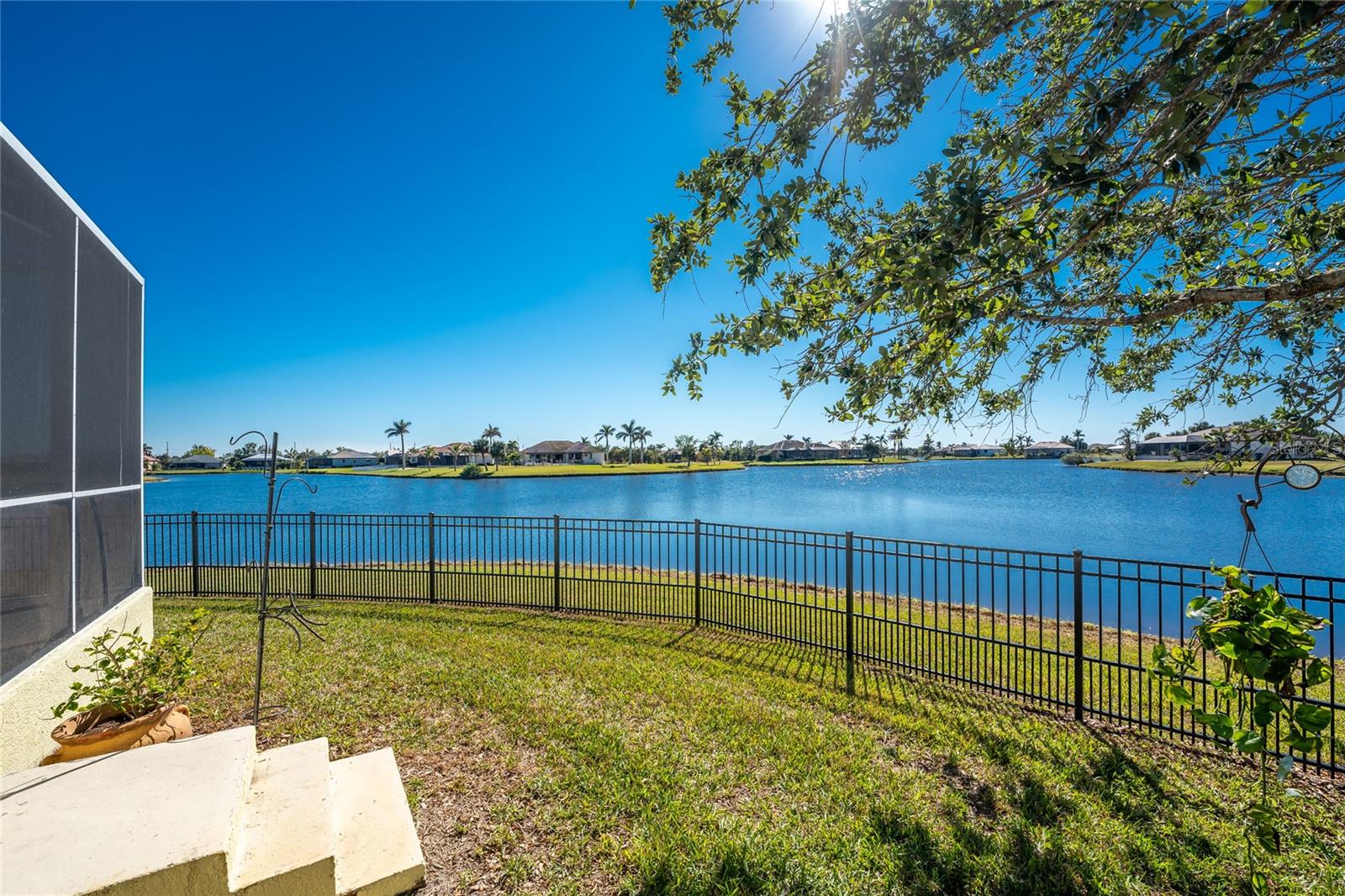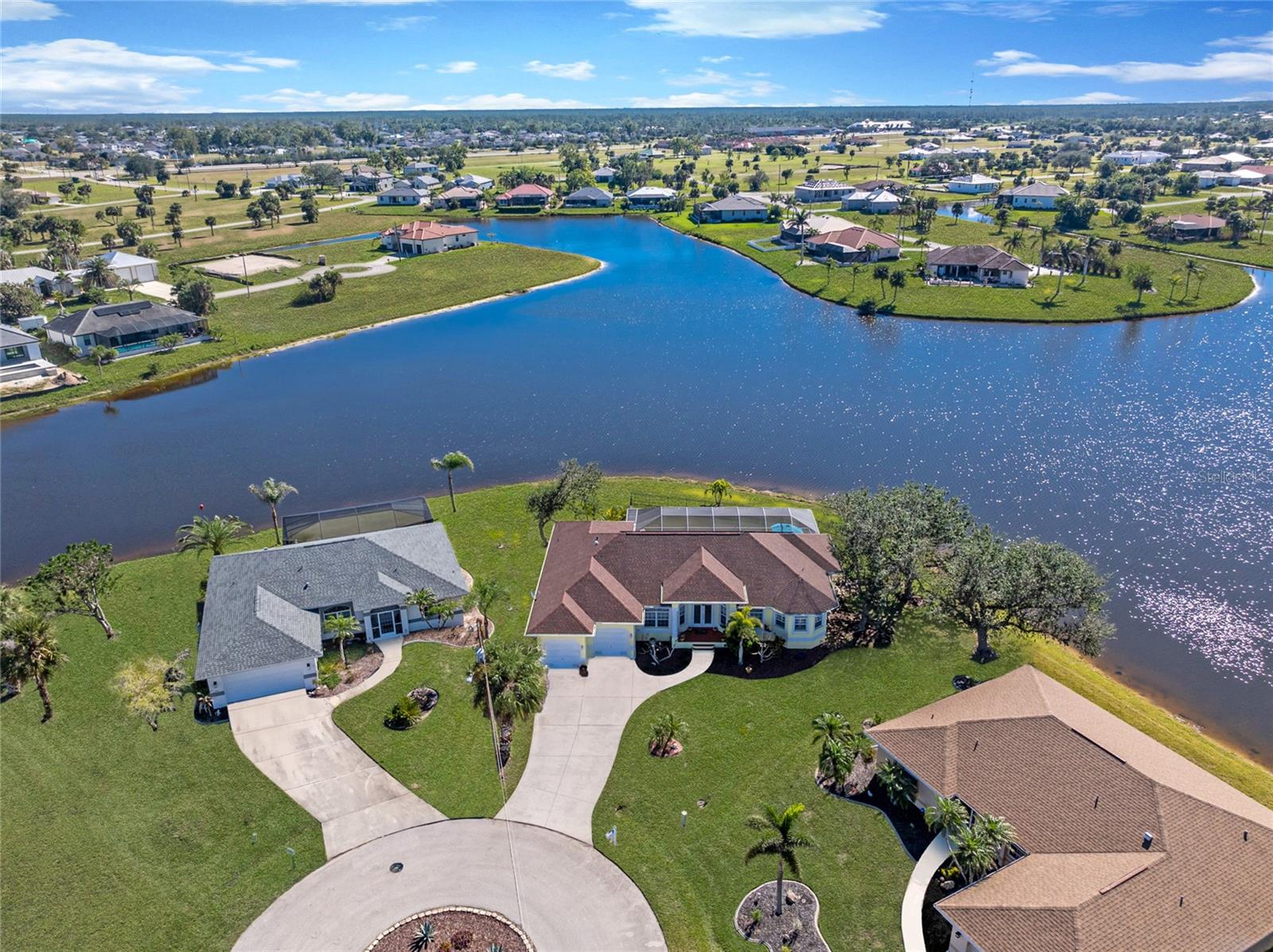 Embrace serene lakefront living with this stunning 3-bedroom, 2-bathroom heated pool home, perfectly positioned at the end of a peaceful cul-de-sac in the desirable, deed-restricted community of Burnt Store Lakes. With breathtaking panoramic lake views, this exceptional tip lot property offers the ultimate in tranquility and privacy. Start your day with a brilliant sunrise over the lake, and wind down with picturesque sunsets, all from the expansive southeastern-facing pool deck. The perfect way to relax or entertain while taking in the sights of the local wildlife. With sliding doors that open from the generous great room to the outdoor space, you’ll enjoy seamless indoor-outdoor living in this true tropical oasis. Inside, the open floor plan combines a spacious great room, dining area, and den with high ceilings and tile floors throughout, making it an ideal space for gatherings or quiet moments of relaxation. The kitchen features elegant stone countertops, stainless steel appliances, a deep pantry, breakfast bar and deep sink. French doors from the dinette area lead to the lanai, where you can enjoy meals and lounge by the pool. The home also features a dedicated laundry room with 3 month old Maytag washer and dryer, as well as ample storage space. The Primary suite is a true retreat, with two walk-in closets, a beautiful bath featuring separate tub and shower, dual pedestal sinks, and plantation shutters. You'll enjoy relaxing in this peaceful space, surrounded by lush views. The guest bedrooms are generously sized with large closets, offering comfort and convenience for family or guests. The guest bath features a combination tub and shower with a high top vanity. Recent updates include a 3 year old roof, pool resurfacing with attractive pebble rock finish and waterfall, a fenced rear yard, recently replaced pool pump, electrical wiring for a generator, and freshly painted exterior paint make the home both functional and stylish. This home also features an assumable whole house solar power system. Burnt Store Lakes is a beautiful Deed Restricted Community with 11 freshwater lakes and many new custom homes being built throughout the neighborhood. Public water and sewer are in place. Burnt Store Lakes Residents enjoy the Community Park which has covered picnic benches, a playground and restrooms. There is a kayak ramp for Residents only that accesses Charlotte Harbor and the incredible wildlife in the Charlotte Harbor Aquatic Preserve such as Manatees, porpoises, sea turtles and an abundance of game fish. Next door at Burnt Store Marina, SW Florida’s full-service deep-water marina, restaurants are open to the public and amenities such as golf and boat dockage may be available. It’s just a short drive to Downtown Punta Gorda, one of Florida’s best small towns, with plenty of restaurants and town activities to enjoy. Or to Cape Coral, one of the fastest growing cities in Florida. It doesn’t get any better than this to live your dream Florida Lifestyle.