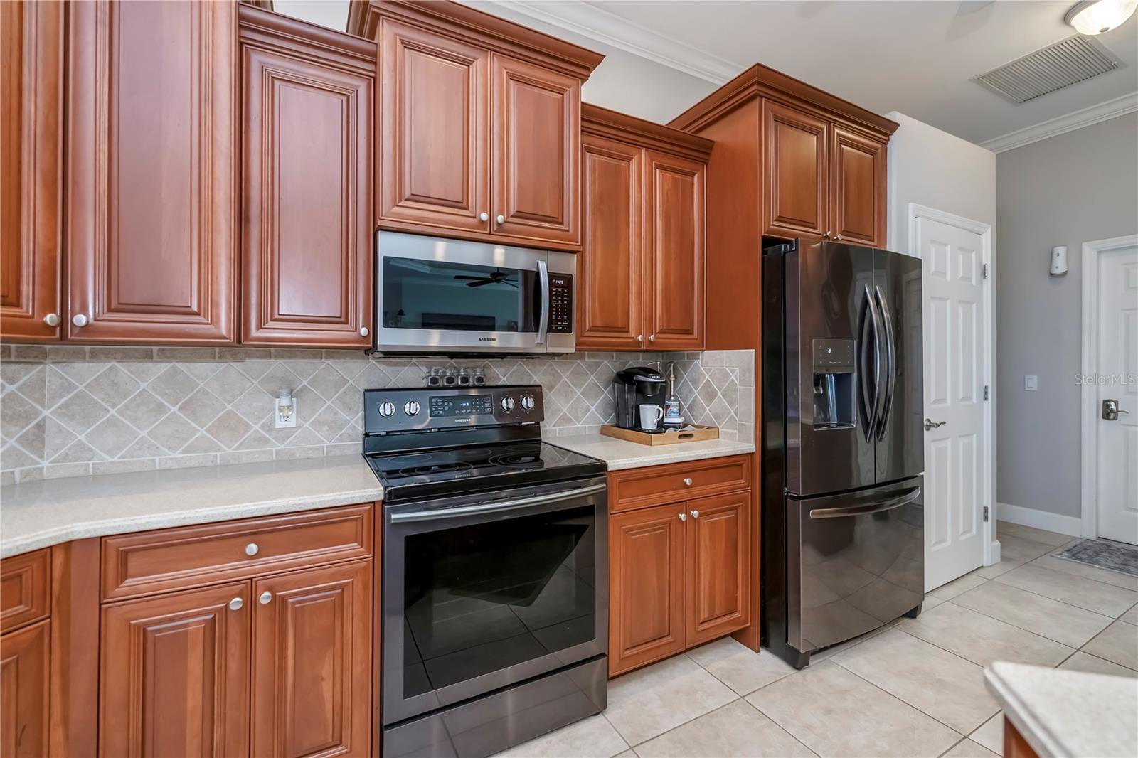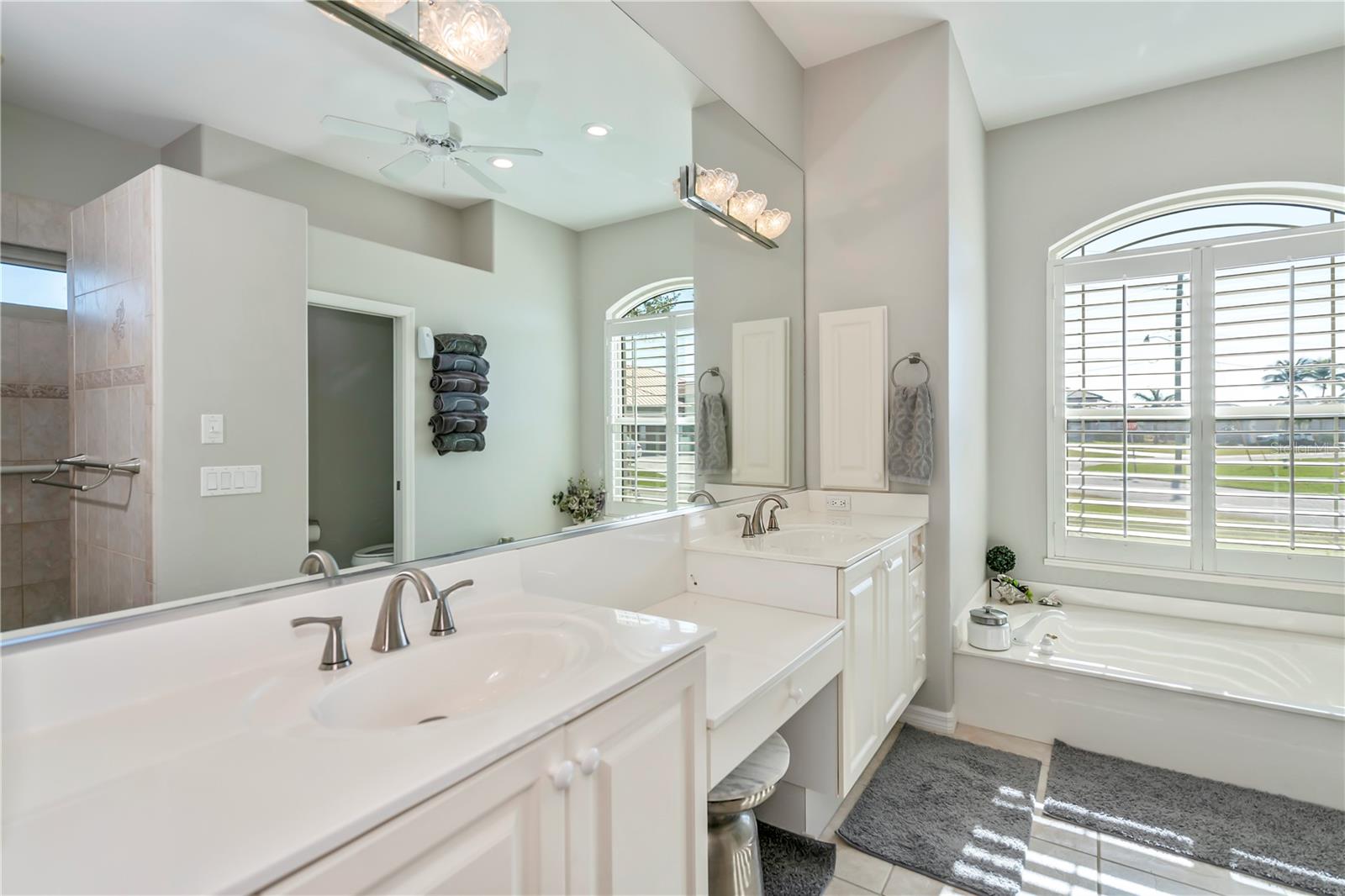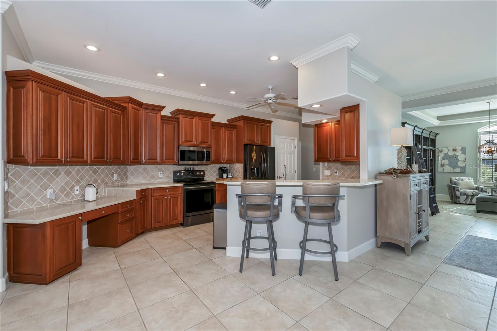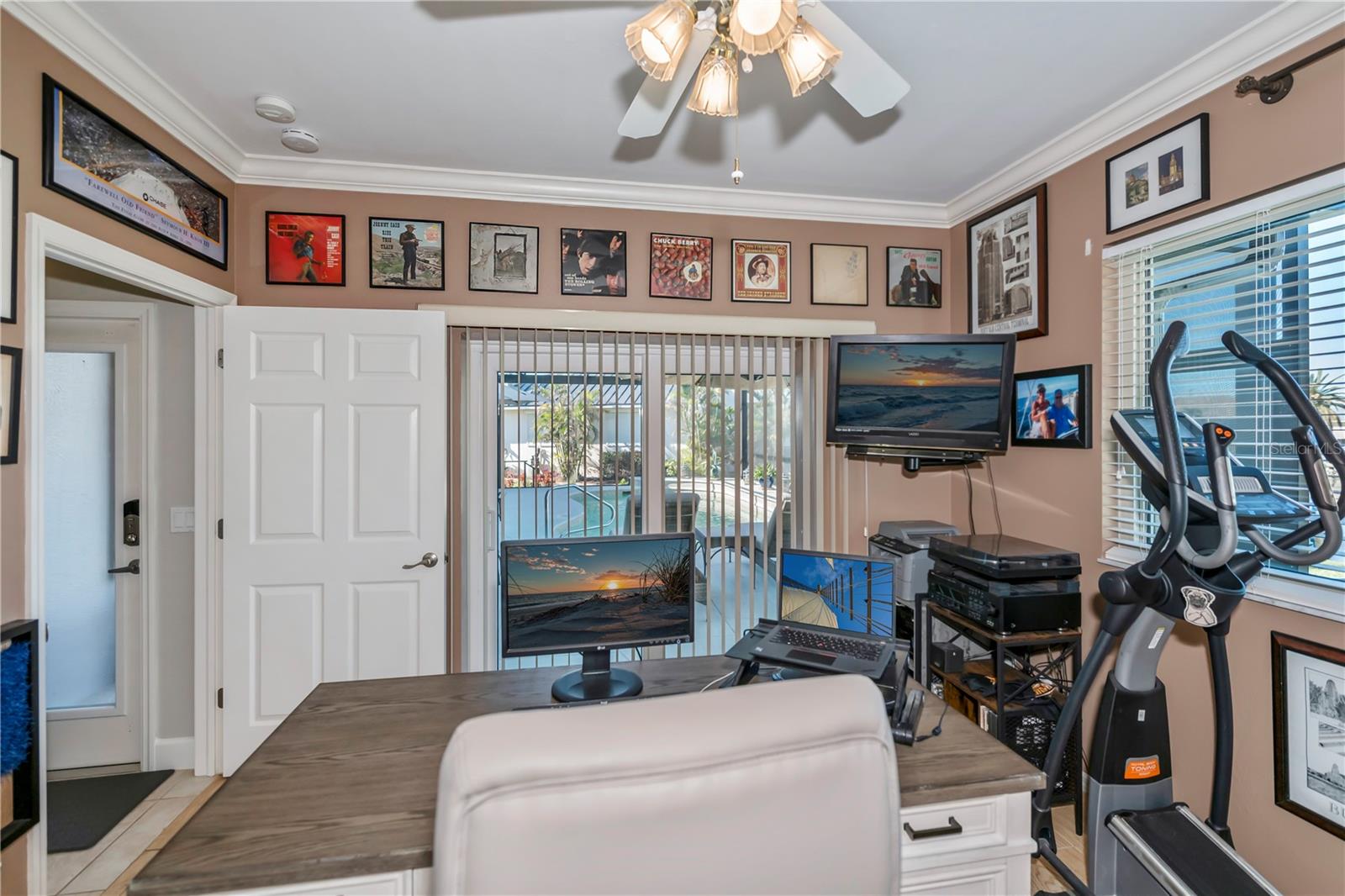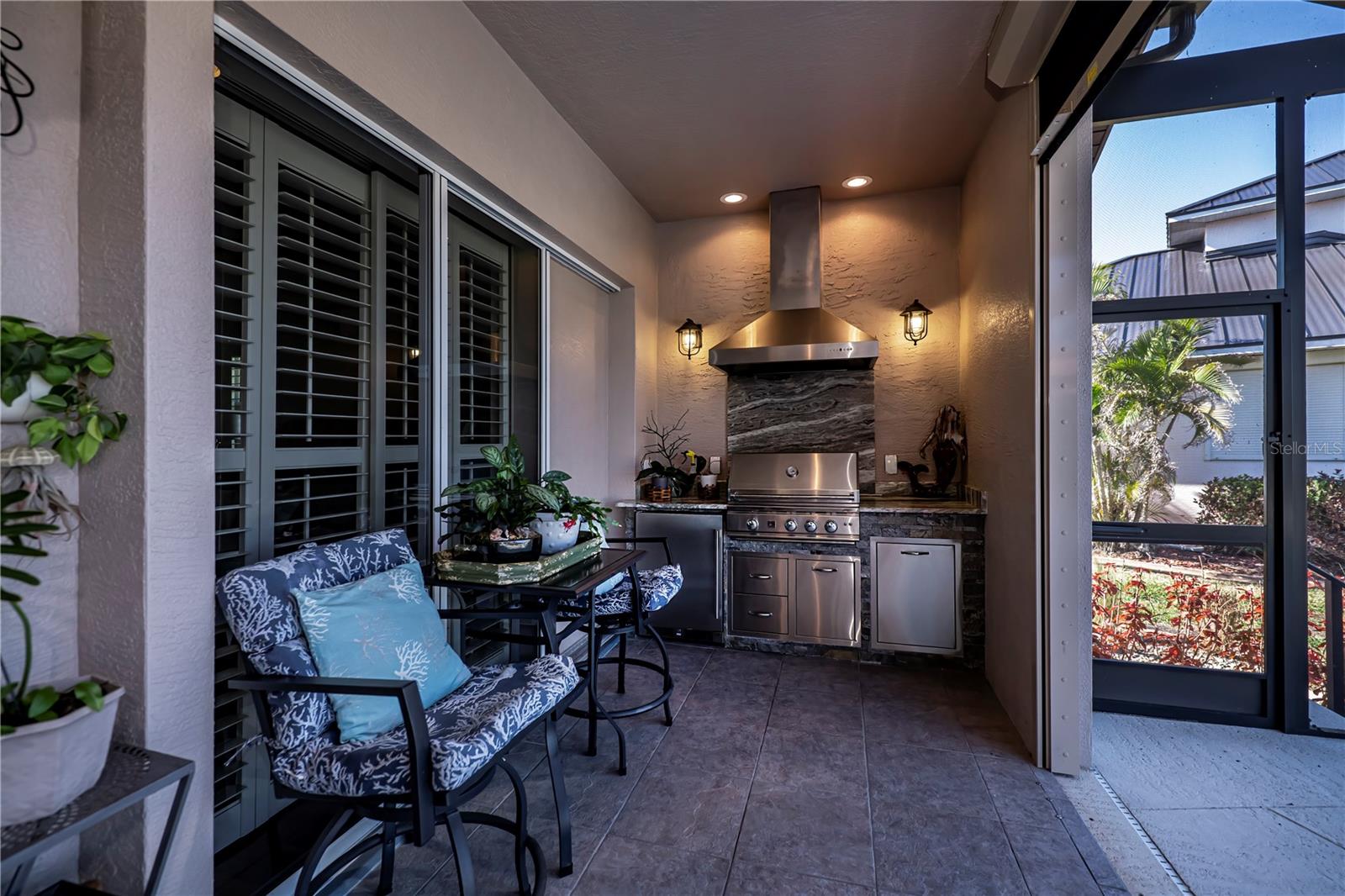 Just REDUCED! Take a look at this beautiful sailboat access great room home with 3 bedrooms plus a study, 2 baths and a 3 car garage! As you enter the house you will notice the volume ceilings and stepped up crown molding in the living area. The kitchen features 42in. wood cabinets, breakfast bar and solid surface counters. The home has zero-corner sliders in the great room and aquarium sliders in the breakfast room so you can really bring the outdoors in! The spacious lanai features and outdoor kitchen (2022) with refrigerator, granite counters and a propane grill-great for entertaining! Check out the new panoramic screen cage(2023) on the lanai! Bring your boat for a fun day on the water as the 10,000 lb boat lift(2022)-can accommodate up to a 28 ft boat-per installer. Even the seawall was replaced in 2024 and the city-maintained seawall replaced 2022. No storm damage here-there are impact windows(2022) as well as an electric roll down hurricane screen for the lanai(2023). Accordion shutters are used for the aquarium glass. The master bedroom has wood floors as well as crown molding. There is an extra mini-split air conditioner as the owner's love the extra cool air in the summer. The master bath has a walk-in shower as well as a soaking tub. Other updates include new air conditioner and ducts in 2022, 7 ceiling fans, water filtration and softener system(2022), hot water tank(2023), aluminum fenced dog area, and new roof in 2022. Off of the oversized three car garage is a paved 12x13 outdoor storage area-great for a kayak! This home was recently professionally landscaped and exterior lighting was added. There is a circular driveway. See this home today! You won't be disappointed!