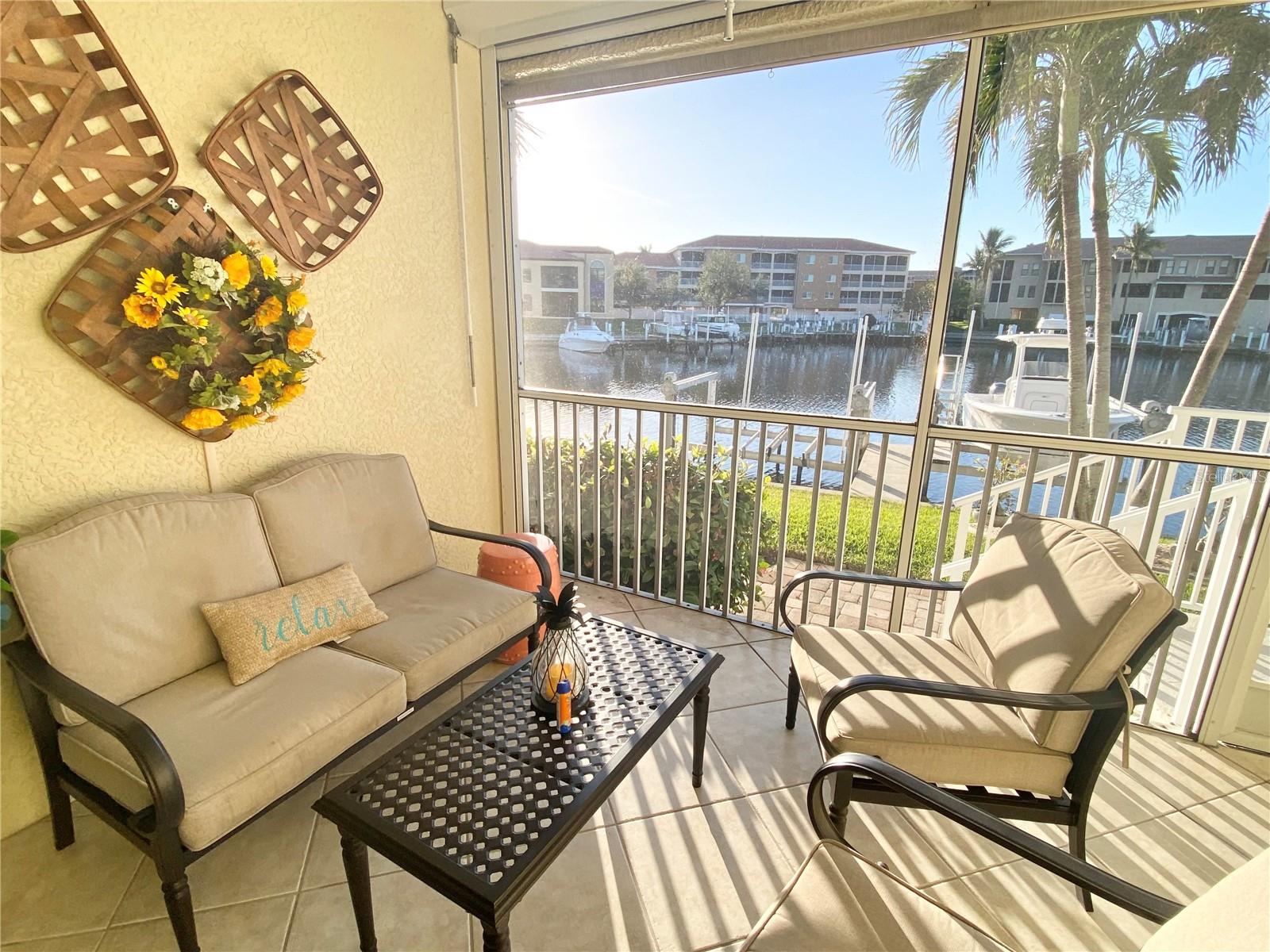 Gorgeous waterfront residence with deed dock and lift! Located on the first floor of gorgeous Charleston South in Punta Gorda Isles. While this residence has more beautiful Florida sunshine because it is the end unit, you will see that there are shades for the late sleepers. Fine finishing touches fill this lovely 2 bedroom with a bonus room and private dining room, 2 bath, including deeded boat dock with a lift and a private garage. Designer Inlays and moldings throughout. Amazing views of intersecting canals where you will boat to open water in minutes! No bridges all the way to The Gulf! Boat, Sail, Fish or just Cruise the lovely waterways...Go to lunch by boat, join boating clubs, fishing clubs, social clubs or just enjoy the tranquility of Punta Gorda! The pool is well maintained with a delightful view of the water and breathtaking sunsets. Built in 2007 and more fine finishes were added including storm impact windows. This condominium association takes pride and care in their maintenance and it shows. New metal roof installed in 2023. Isn't it time to enjoy some beautiful Florida weather? Let someone else do the maintenance of the outside! The fees are low at $633 per month and are paid quarterly. Only 12 residences in the Association. Fees include: Pool and Pool maintenance, well funded escrow reserve fund, building insurance, maintenance of exterior and grounds, water, sewer & trash. Let's set up your viewing of this lovely home today!