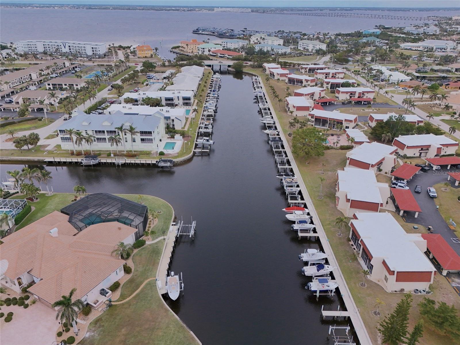 Boater's Paradise – Your Waterfront Winter Escape! Discover the ultimate boater's delight with this beautifully updated 2-bedroom, 2-bath condo featuring a deeded dock and a 10,000-lb boat lift (2021), offering seamless access to Charlotte Harbor in just 2 minutes via Bass Inlet. Step inside to a split floor plan with modern upgrades throughout. The updated kitchen shines with stainless steel appliances and high-end granite countertops, while both bathrooms have been tastefully remodeled. Enjoy the convenience of a living-dining room combo that opens to two private, screened lanais—one off the living room and the other off the guest bedroom—offering serene views of lush green space. Most furniture stays with the property. Ask for details. Nestled in a tranquil community with a sparkling pool, this condo is perfectly located just off Marion Ave. Walk to Fisherman’s Village, Historic Downtown Punta Gorda, and Gilchrist Park, or take a short drive to Southwest Florida’s world-renowned beaches. This charming property is the ideal winter retreat for boating enthusiasts and those seeking a relaxed Florida lifestyle. Don’t miss your chance to own this piece of paradise!