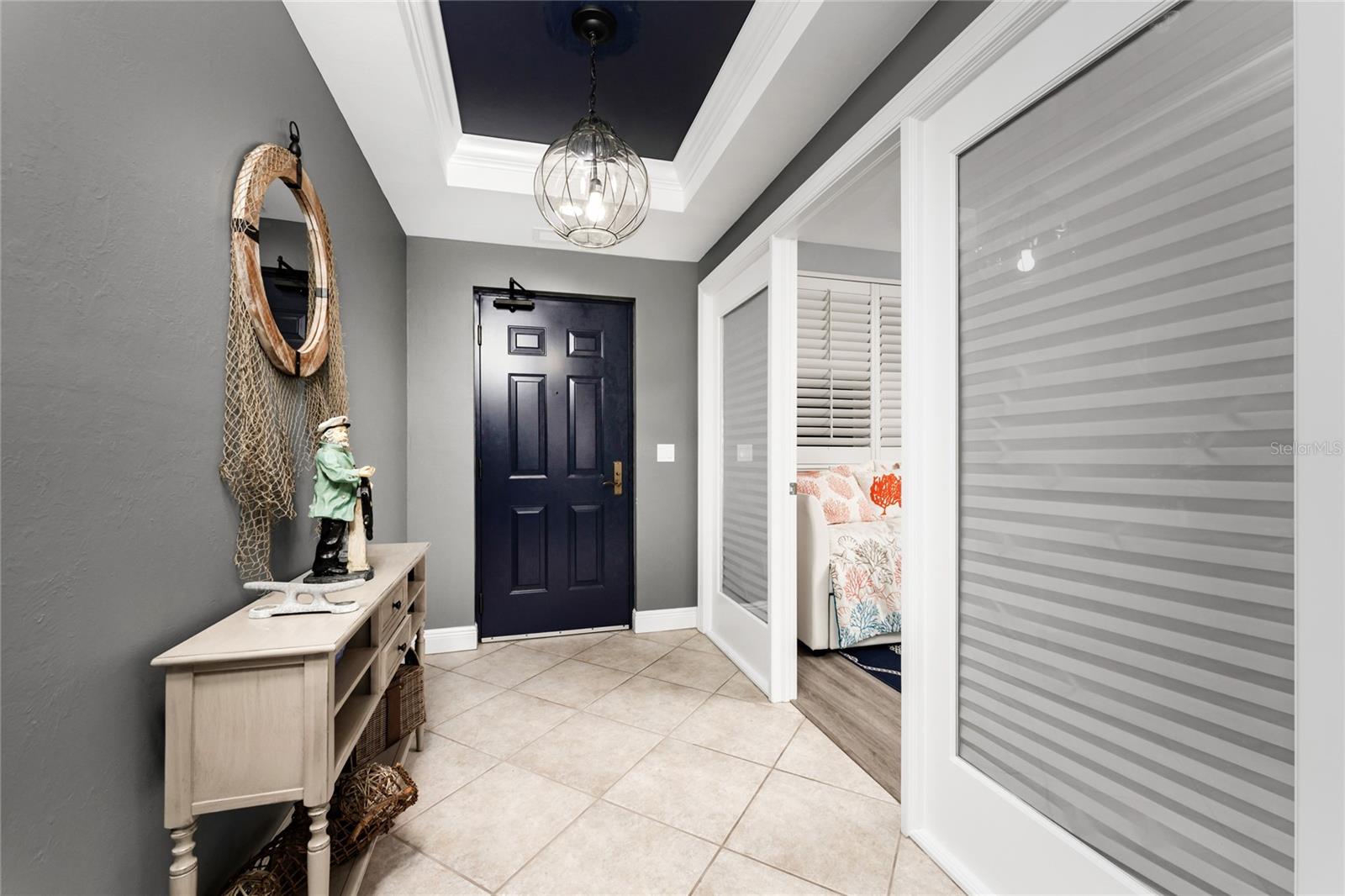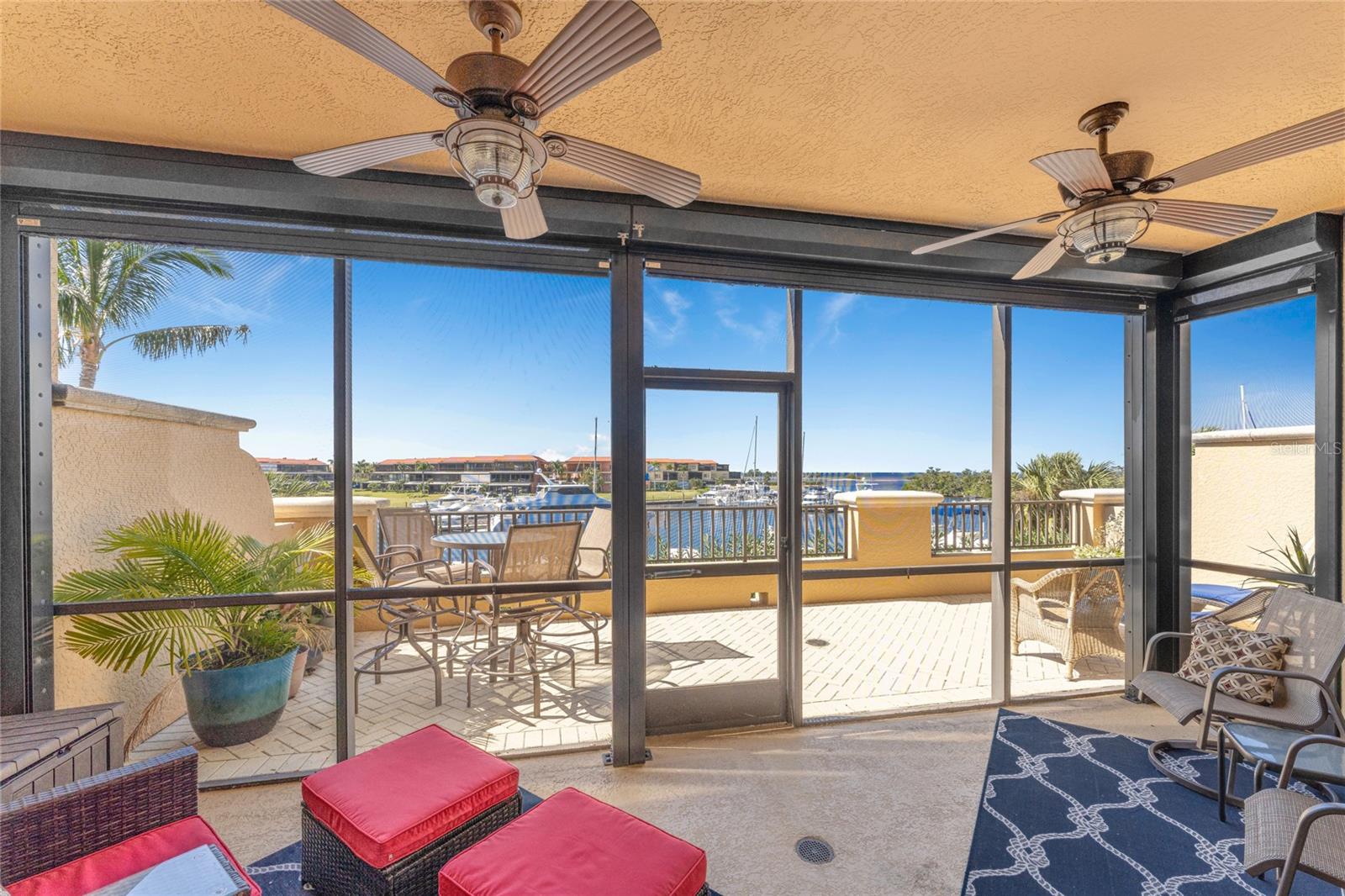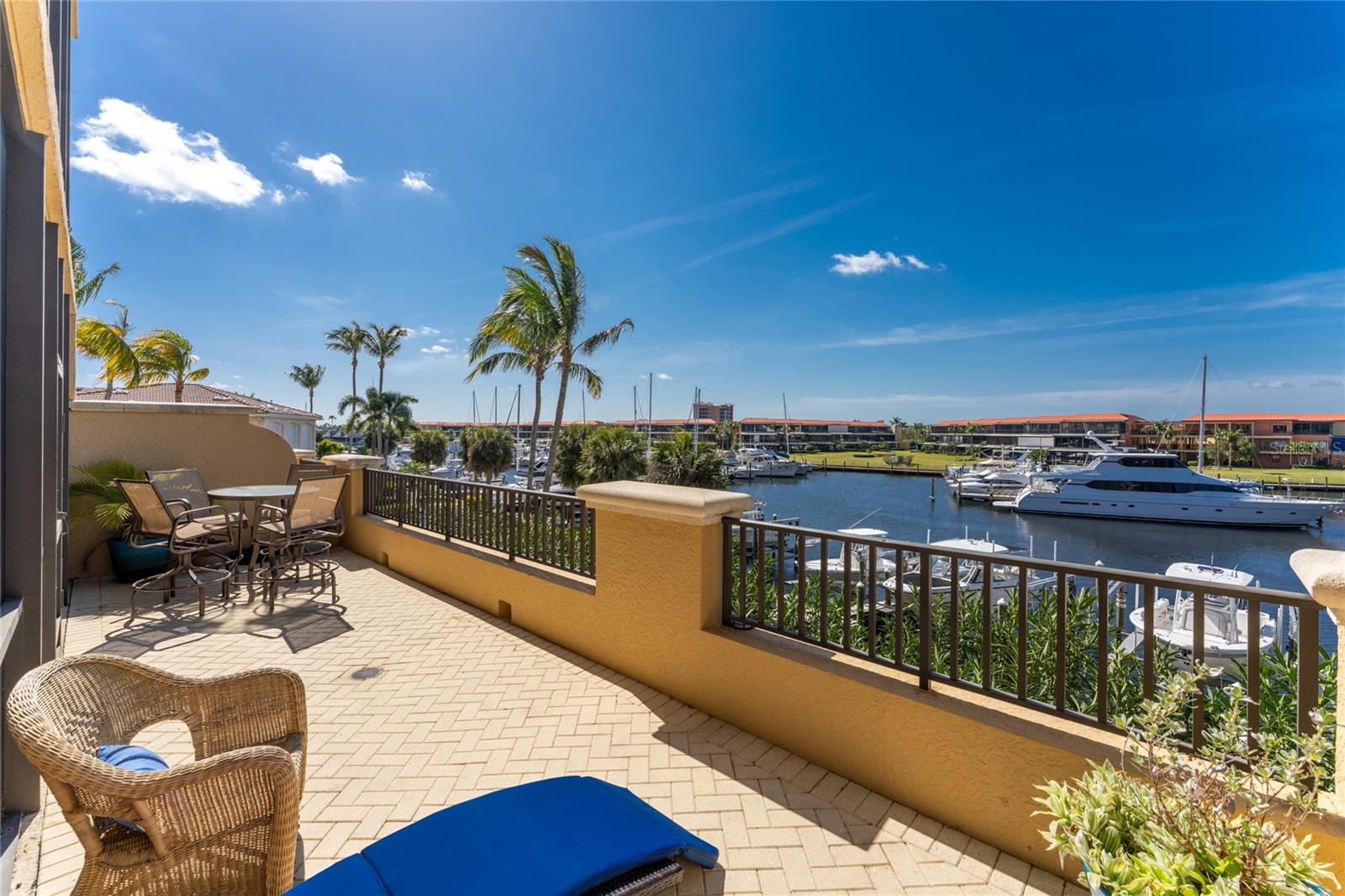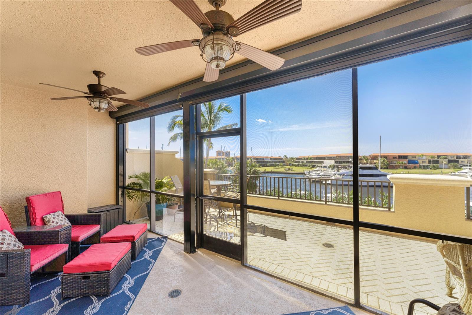 The Epitome of Marina Front Living awaits! This unique condo boasts a location like no other, with a spectacular open-air balcony perched above the marina and overlooks the marina’s main channel entrance. Talk about front row seats to the daily boat parade… the excitement of watching boats sail in and out will never fade. The screened lanai is a wonderful lounging option when you want to get out of the sun. This waterfront oasis is offered turnkey-furnished and welcomes you with tasteful coastal decor that effortlessly captures the essence of seaside living. As you enter the main living space, you’ll notice the diamond-set tile flooring leading you into the main living space, where crown molding finishes off the freshly painted interior. The open kitchen features a wide breakfast bar, two-tone cabinetry, a cooktop stove, and a built-in oven - making it a hub for social gatherings. From this vantage point, you'll witness the ebb and flow of boats, creating a picturesque backdrop that's exclusive to first-floor residences. In addition to the captivating views, this home offers remote-controlled Kevlar storm shutters, plus impact doors and windows, ensuring both safety and peace of mind during stormy weather. New wide luxury vinyl plank flooring was added to the bedrooms, while plantation shutters adorn the guest wing, offering privacy and style. The master bedroom provides sweeping views of the marina through sliding doors and windows, creating a serene retreat. The master bath features dual sinks, a garden bath, and a frameless shower, epitomizing luxury and relaxation. The two guest bedrooms, well-appointed bathroom, and utility room, provide both comfort and convenience for family and friends. From the thoughtful fixtures to the impeccable coastal decor, every detail of this Grande Isle gem invites you to experience the essence of waterfront living. The resort-style amenities are like no other in the community, where residents enjoy access to an Olympic-sized swimming pool and spa, fitness center, theater room, grilling area, steam and sauna rooms, and a grand salon. Come for the lifestyle…stay for life. Room Feature: Linen Closet In Bath (Primary Bedroom).