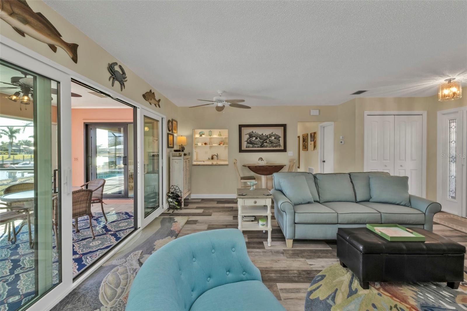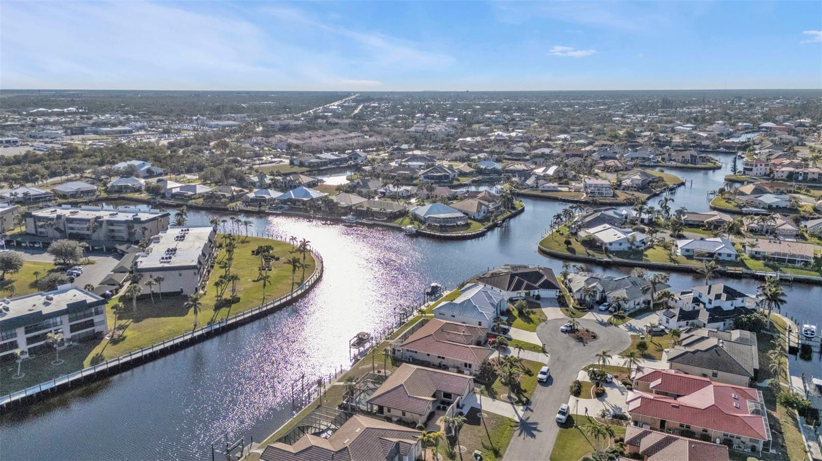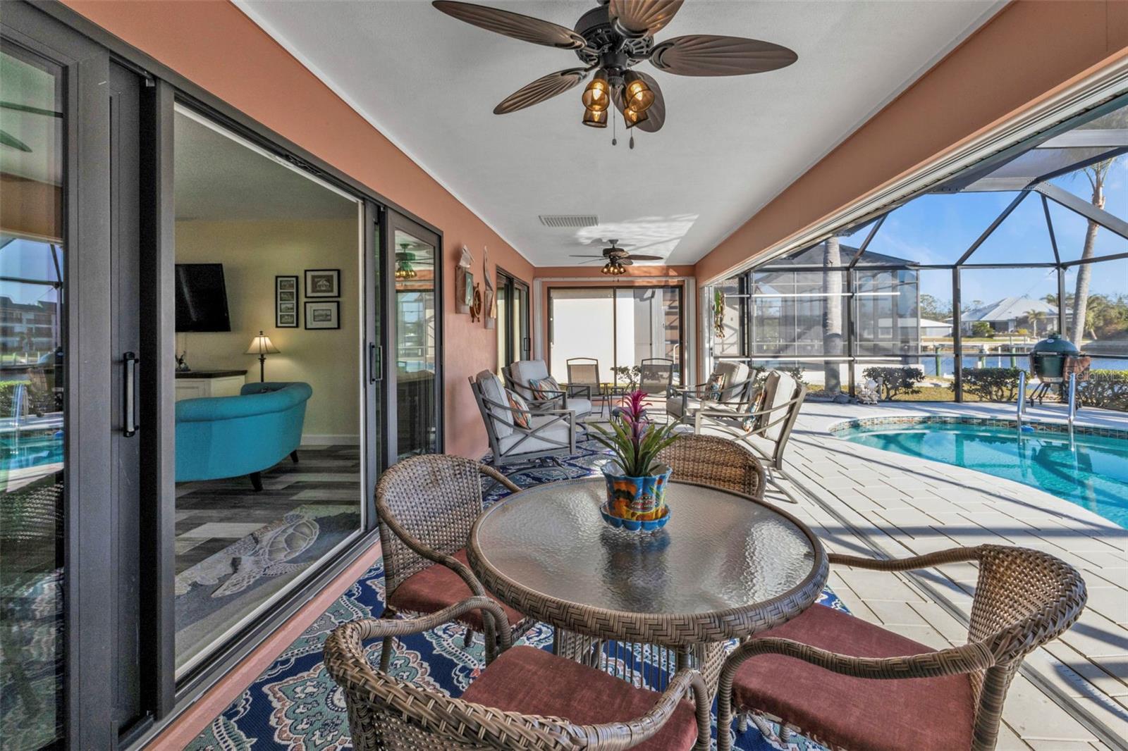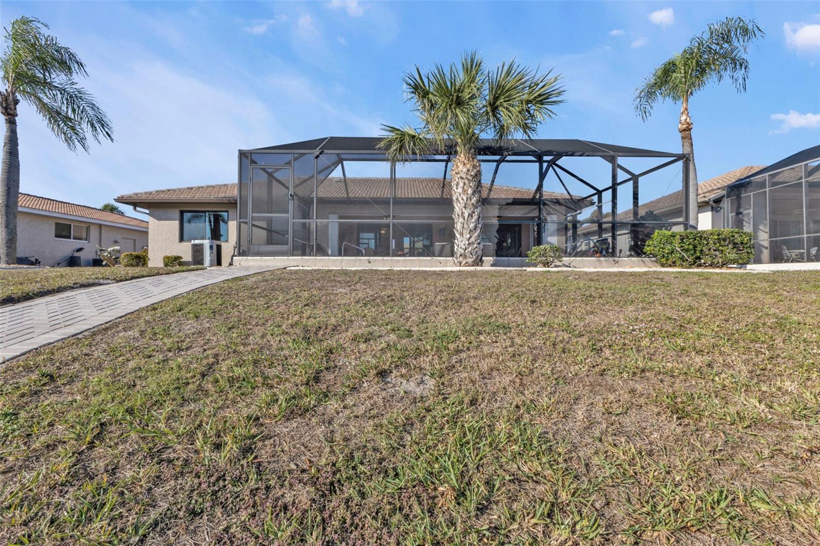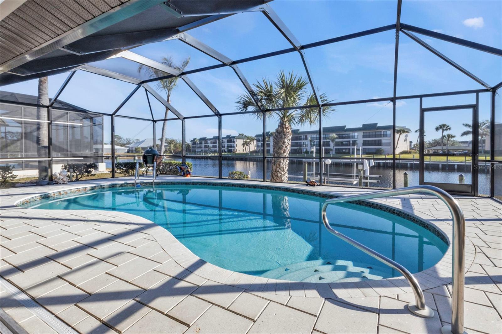 This is the one! Discover your dream waterfront home with direct powerboat access from your backyard to Charlotte Harbor in under 10 minutes! Located in the prime area of Punta Gorda, this home is just a short walk or bike ride to the popular Fisherman’s Village. The property underwent a major renovation in 2017, featuring a new 45’ dock with a 13,500 lb. lift, ready for your boat, impact windows and doors, a new AC system, a resurfaced pool with a new heater, and porcelain tile flooring in the main living area and primary ensuite bedroom. The primary bathroom now boasts a walk-in shower, replacing the old tub/shower. The renovation also included new countertops, appliances, gutters, ceiling fans, and exterior paint. In 2023, a new pool deck with Shellrock pavers was added. Major furniture pieces are included in the sale. Enjoy stunning views of the wide canal from the guest bedroom, dining area, primary bedroom, and living room. Washing dishes is a delight with such a view! Start your day with coffee and end it with an evening beverage on the spacious lanai, perfect for entertaining. The large great room opens to the lanai, providing ample space for guests. You can become part of this vibrant community and live the relaxed lifestyle! Whether you're a snowbird seeking a winter retreat, or looking to move from a condo to a home with more privacy and no monthly HOA fee, this is the one!