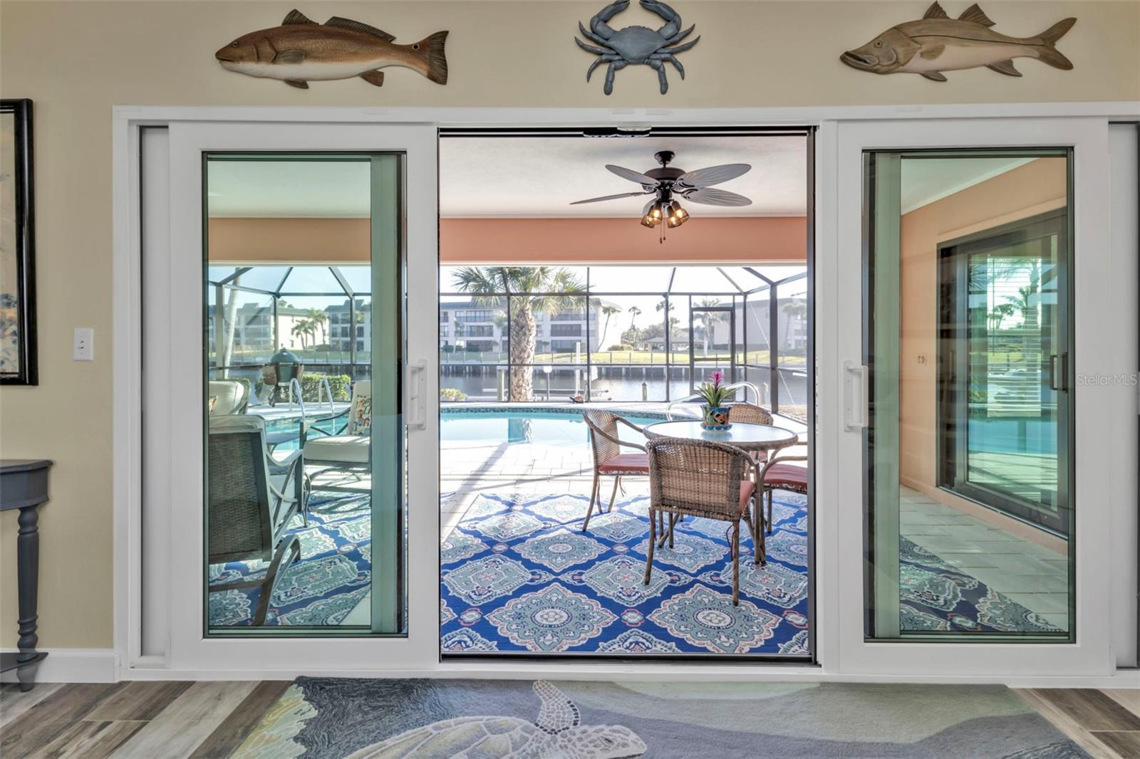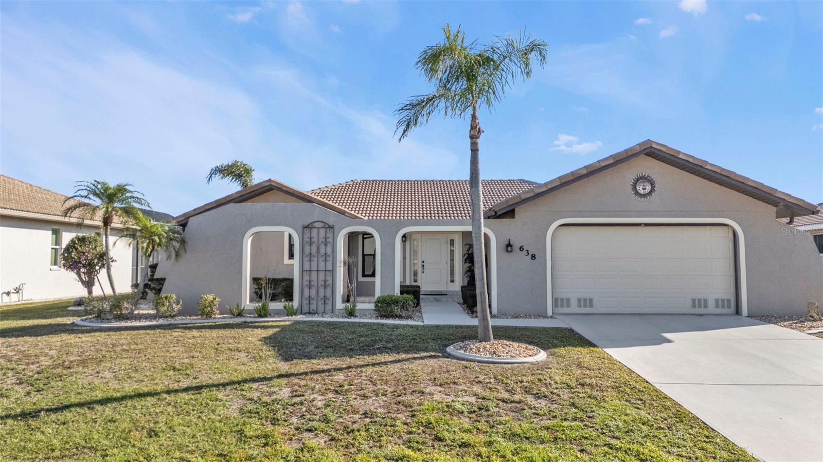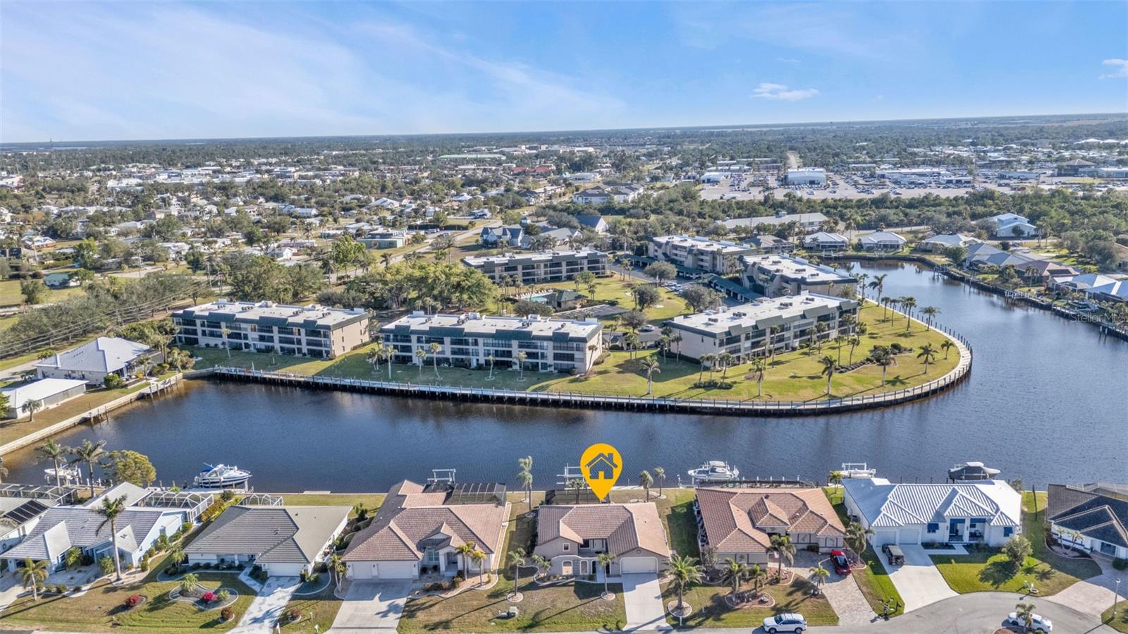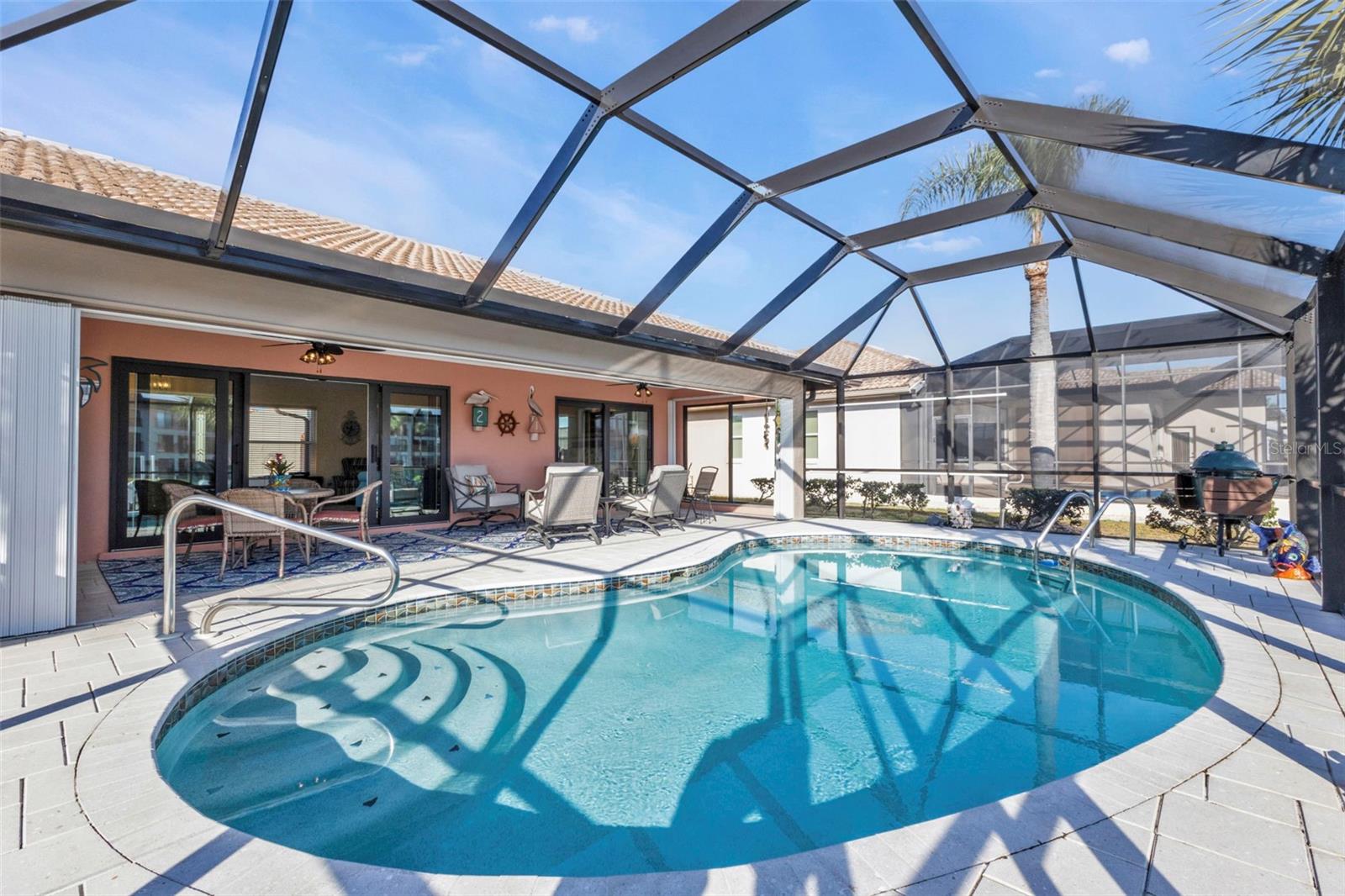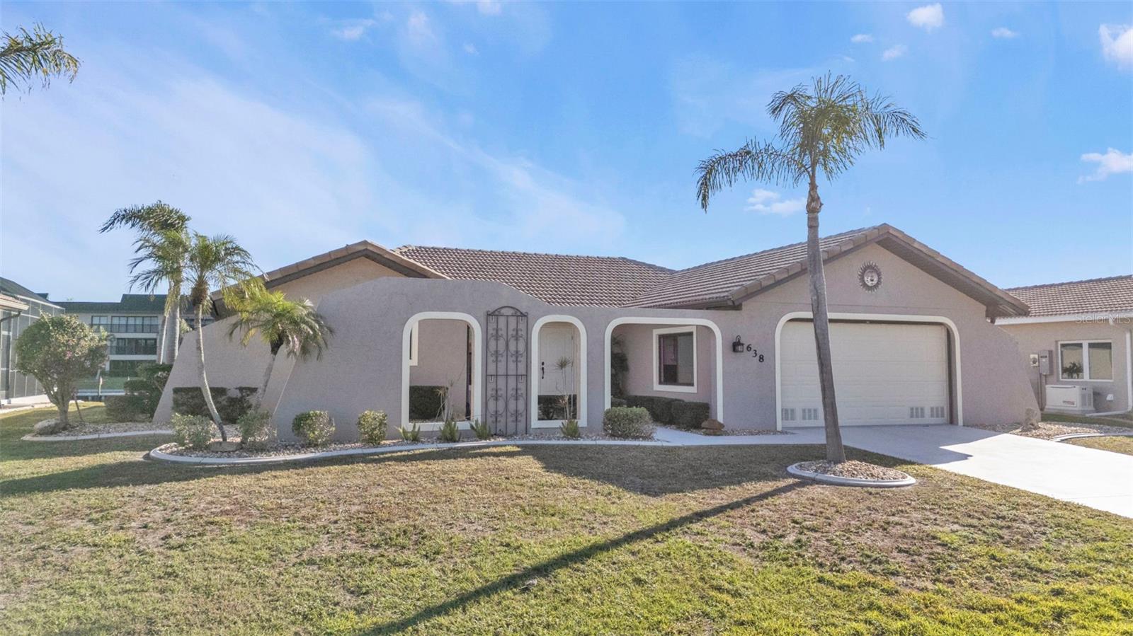 This is the one! Discover your dream waterfront home with direct powerboat access from your backyard to Charlotte Harbor in under 10 minutes! Located in the prime area of Punta Gorda, this home is just a short walk or bike ride to the popular Fisherman’s Village. The property underwent a major renovation in 2017, featuring a new 45’ dock with a 13,500 lb. lift, ready for your boat, impact windows and doors, a new AC system, a resurfaced pool with a new heater, and porcelain tile flooring in the main living area and primary ensuite bedroom. The primary bathroom now boasts a walk-in shower, replacing the old tub/shower. The renovation also included new countertops, appliances, gutters, ceiling fans, and exterior paint. In 2023, a new pool deck with Shellrock pavers was added. Major furniture pieces are included in the sale. Enjoy stunning views of the wide canal from the guest bedroom, dining area, primary bedroom, and living room. Washing dishes is a delight with such a view! Start your day with coffee and end it with an evening beverage on the spacious lanai, perfect for entertaining. The large great room opens to the lanai, providing ample space for guests. You can become part of this vibrant community and live the relaxed lifestyle! Whether you're a snowbird seeking a winter retreat, or looking to move from a condo to a home with more privacy and no monthly HOA fee, this is the one!