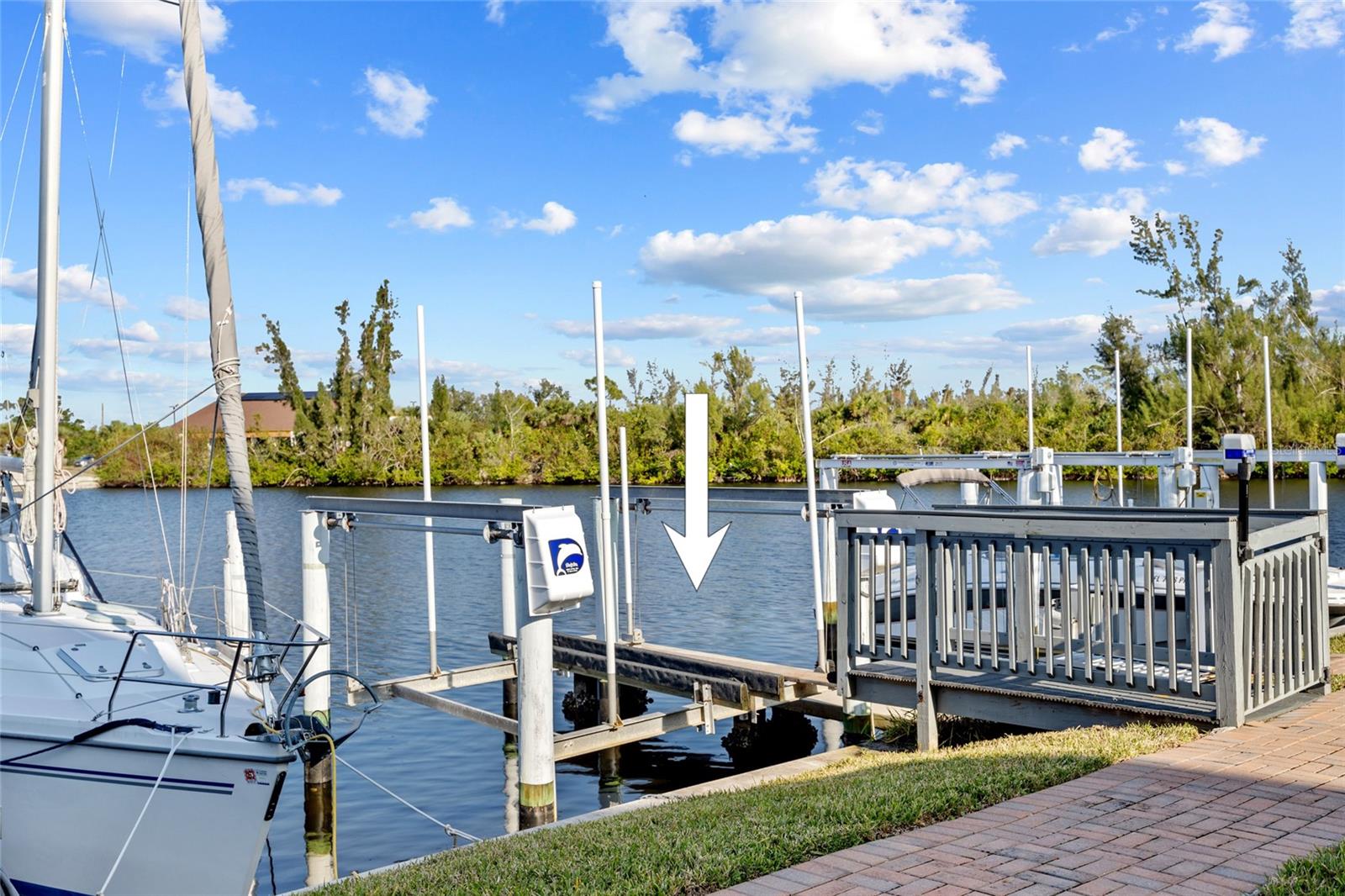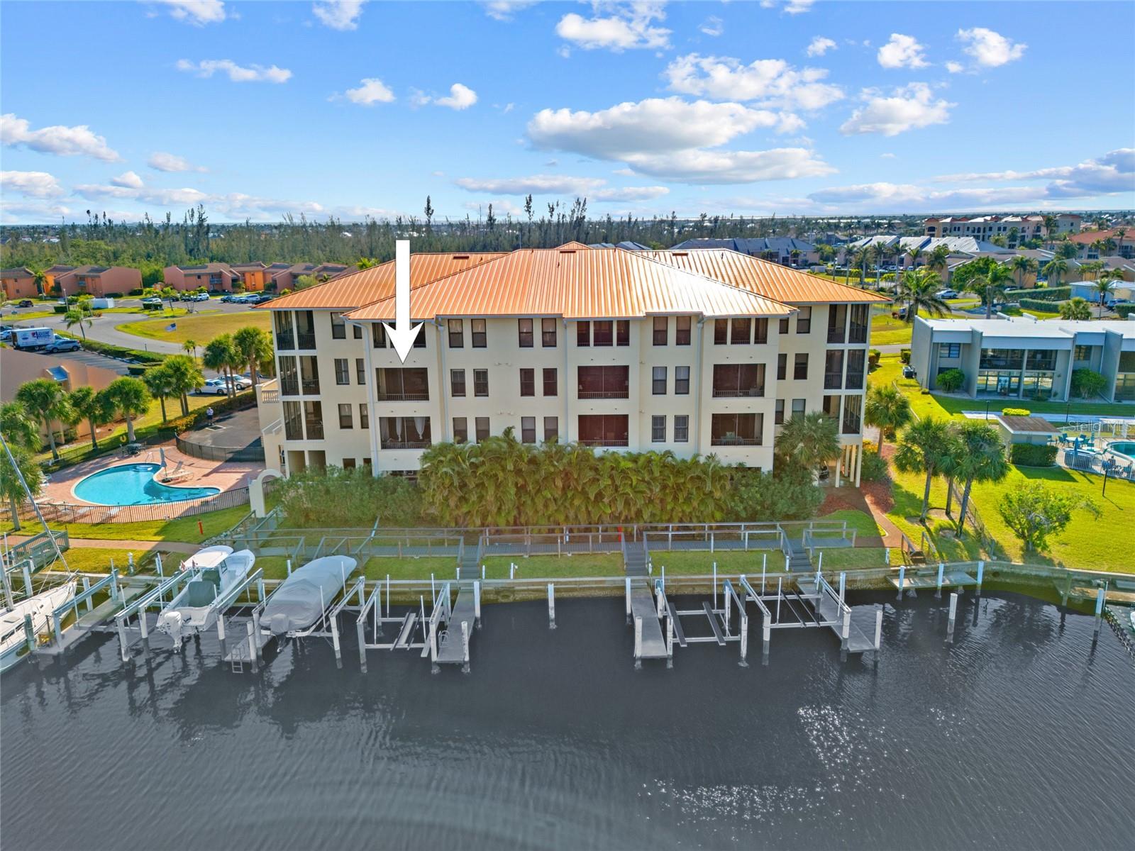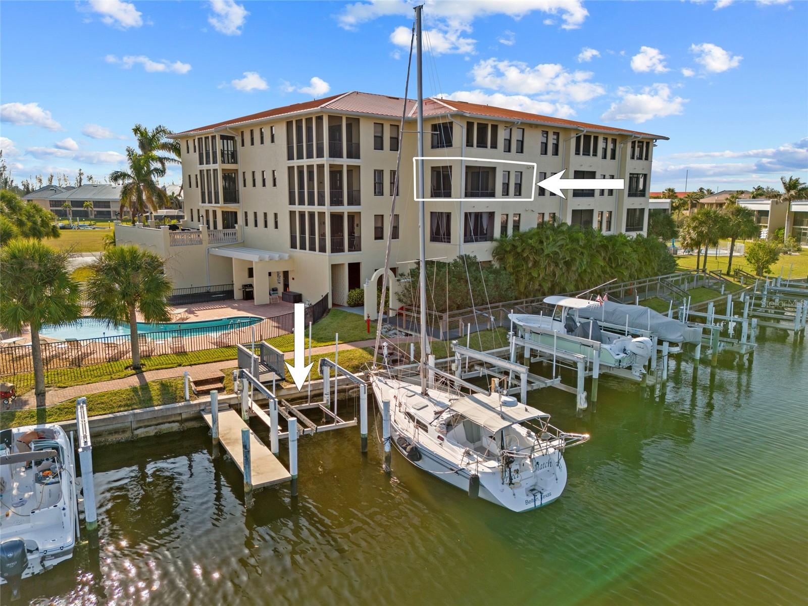 OUTLOOK COVE IN PUNTA GORDA ISLES! ASSIGNED BOAT SLIP AND LIFT WITH SAILBOAT ACCESS TO CHARLOTTE HARBOR LEADING TO THE GULF OF MEXICO! For the avid boater, this this unit includes a fully equipped 7,000lb. boat lift with remote, concrete dock (#12) plus electric and water hook-ups. This beautifully updated 3-bedroom plus den, 2-bath, 3rd floor condo offers 1,813 square feet of modern living space with all the amenities you need for a relaxed Florida lifestyle. Step inside the luxuriously renovated condo to find an open living area with stunning canal views. The kitchen is a chef's delight, featuring high end finishes, granite counters, wood cabinets, tile backsplash, a breakfast bar, pantry, and upgraded stainless appliances Enjoy meals with a view or step out onto your private balcony for a breath of fresh air with wide basin views. The primary suite is a true sanctuary with a walk-in closet and en-suite bathroom that is beautifully renovated featuring stunning luxury tile & flooring, sleek modern vanity with dual sinks, soaking garden tub within the shower and designer lighting. Two additional bedrooms offer plenty of space for guests and the den is perfect for a home office. Stay comfortable year-round with central AC and electric heat, complemented by ceiling fans throughout. This community is packed with perks! Dive into the heated community pool, fire up the barbecue in the designated area, or take advantage of the boating facilities. With two assigned parking spaces under the building, parking is a breeze. Plus, there's an additional storage locker provided, elevator access and handicap features for added convenience. Pets are welcome with conditions, so bring your furry friends along! Conveniently located within minutes of historic downtown Punta Gorda featuring quaint shops, fine & casual dining, an array of nightlife, and don't forget the beautiful new Sunseeker Resort just across the Harbor! Don't miss out on this slice of paradise! Schedule your private showing today!