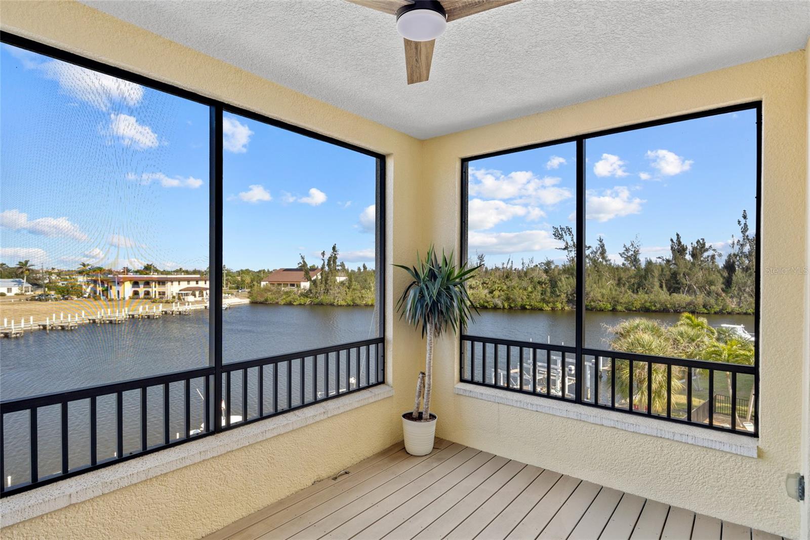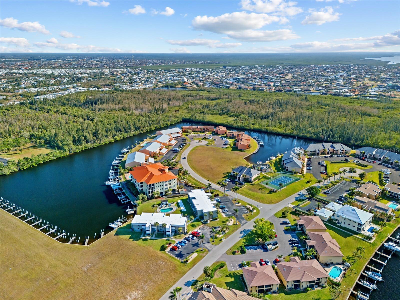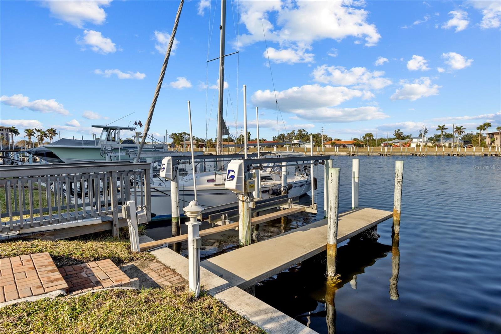 OUTLOOK COVE IN PUNTA GORDA ISLES! ASSIGNED BOAT SLIP AND LIFT WITH SAILBOAT ACCESS TO CHARLOTTE HARBOR LEADING TO THE GULF OF MEXICO! For the avid boater, this this unit includes a fully equipped 7,000lb. boat lift with remote, concrete dock (#12) plus electric and water hook-ups. This beautifully updated 3-bedroom plus den, 2-bath, 3rd floor condo offers 1,813 square feet of modern living space with all the amenities you need for a relaxed Florida lifestyle. Step inside the luxuriously renovated condo to find an open living area with stunning canal views. The kitchen is a chef's delight, featuring high end finishes, granite counters, wood cabinets, tile backsplash, a breakfast bar, pantry, and upgraded stainless appliances Enjoy meals with a view or step out onto your private balcony for a breath of fresh air with wide basin views. The primary suite is a true sanctuary with a walk-in closet and en-suite bathroom that is beautifully renovated featuring stunning luxury tile & flooring, sleek modern vanity with dual sinks, soaking garden tub within the shower and designer lighting. Two additional bedrooms offer plenty of space for guests and the den is perfect for a home office. Stay comfortable year-round with central AC and electric heat, complemented by ceiling fans throughout. This community is packed with perks! Dive into the heated community pool, fire up the barbecue in the designated area, or take advantage of the boating facilities. With two assigned parking spaces under the building, parking is a breeze. Plus, there's an additional storage locker provided, elevator access and handicap features for added convenience. Pets are welcome with conditions, so bring your furry friends along! Conveniently located within minutes of historic downtown Punta Gorda featuring quaint shops, fine & casual dining, an array of nightlife, and don't forget the beautiful new Sunseeker Resort just across the Harbor! Don't miss out on this slice of paradise! Schedule your private showing today!