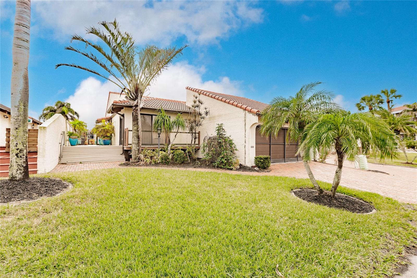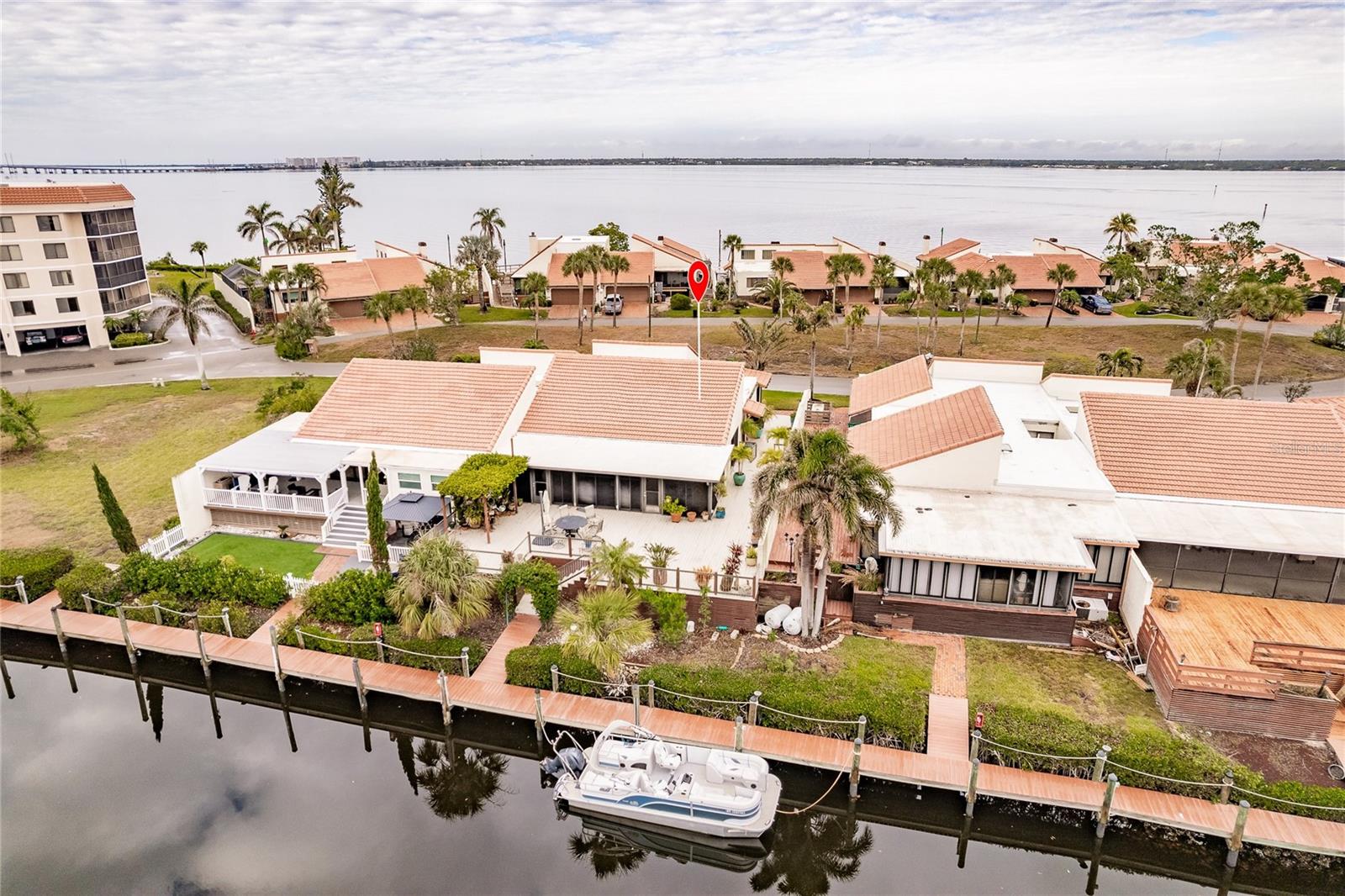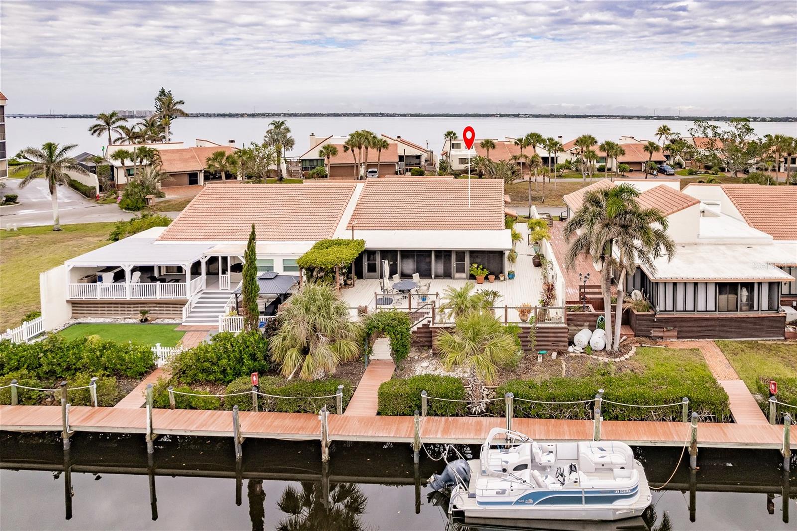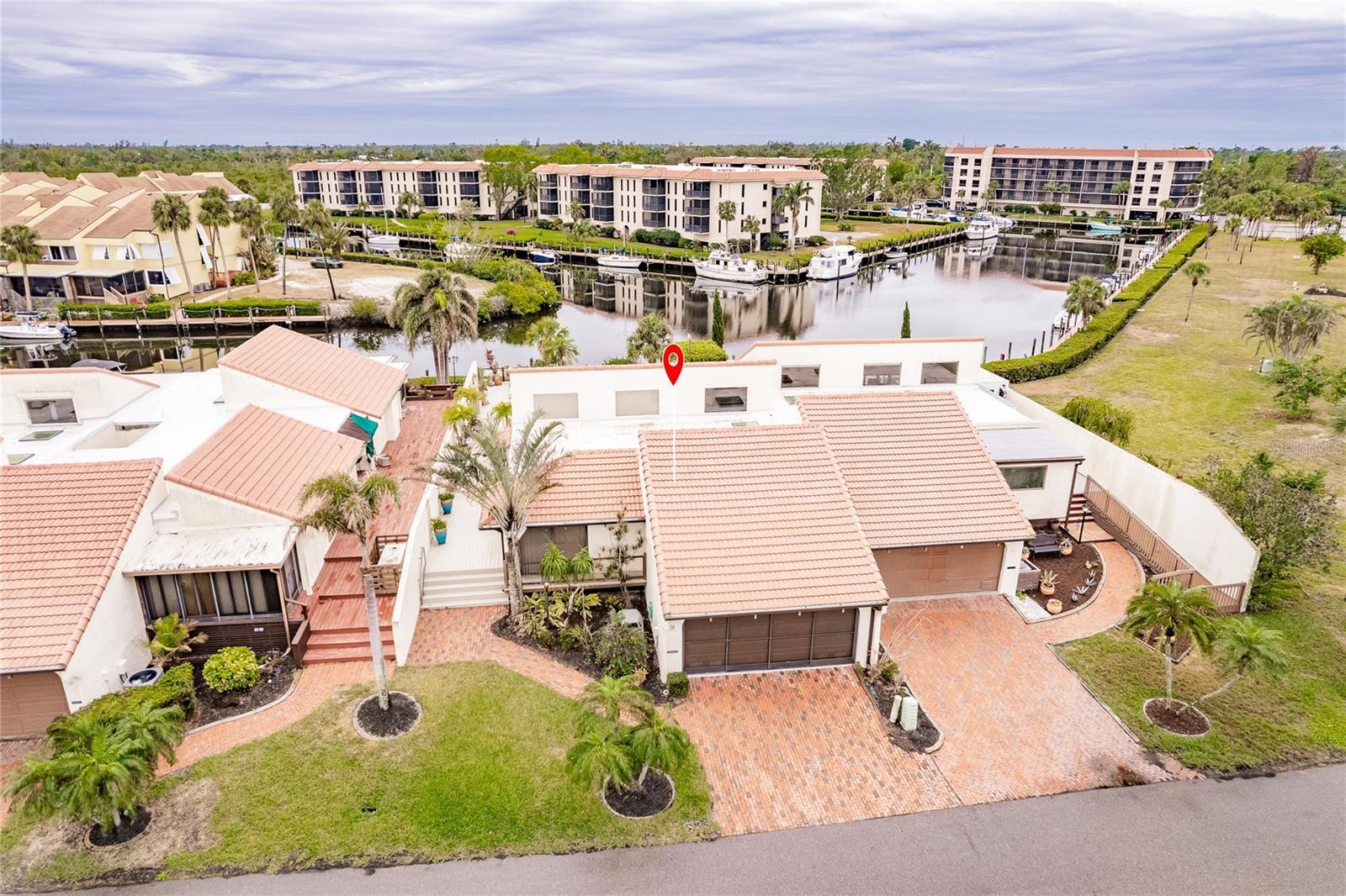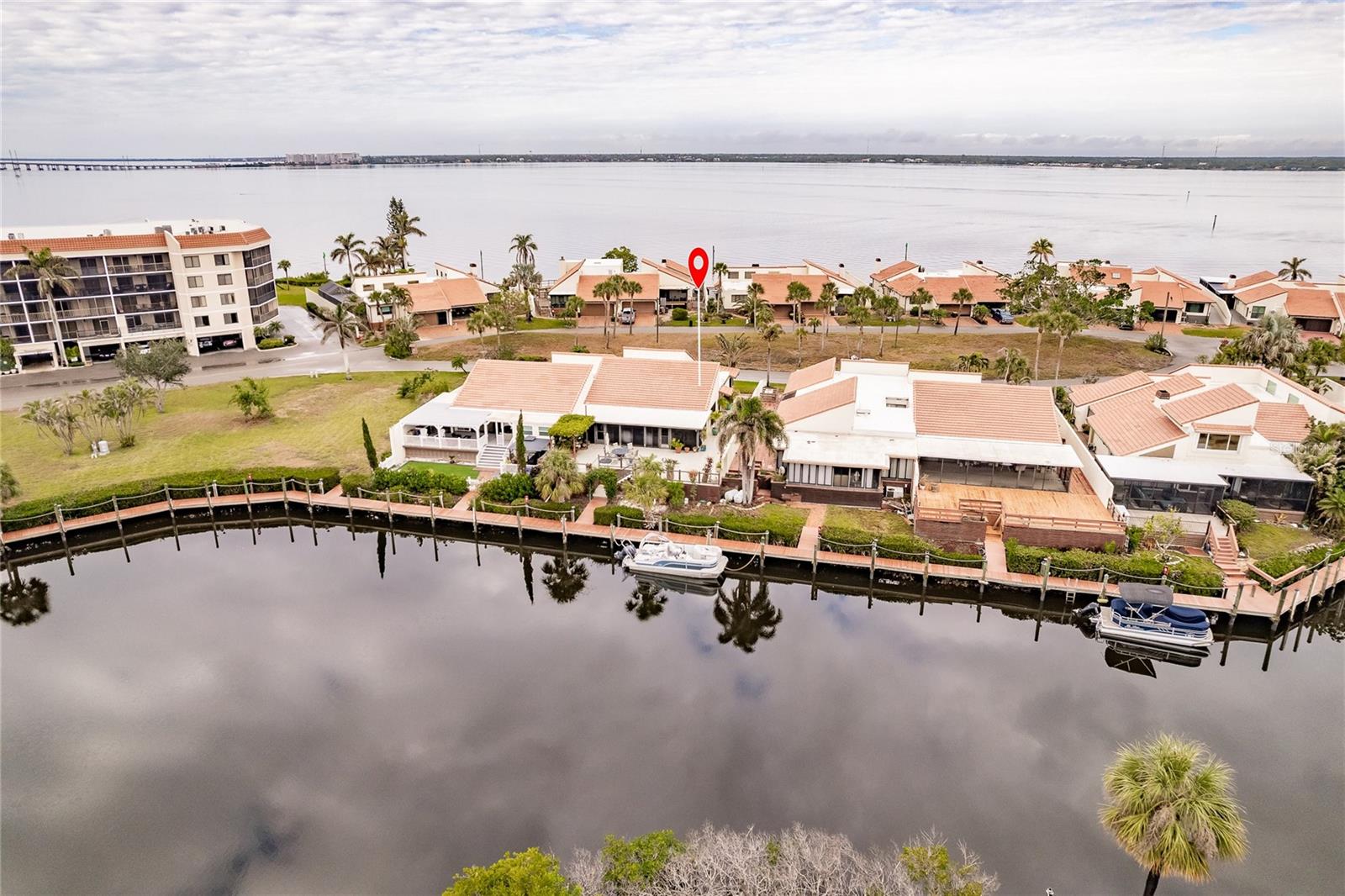 Ready to enjoy resort style, maintenance free Florida living? FEES EVEN COVER FLOOD INSURANCE! This is the one! This furnished waterfront 2 bedroom, 2 bath, 2 car garage villa is located in the waterfront community of Emerald Pointe in Punta Gorda. This villa is a rare find with all the features of a single family home. The boating enthusiast will appreciate the community boat ramp, marina, and docks available on a first come, first served basis. Great location with quick and direct access to the Peace River, Charlotte Harbor, and then on to the blue waters of the Gulf of Mexico. This residence features a bright and open floor plan with wall-to-wall sliders in all living areas providing awesome view of the water. Open up the sliders and bring the outdoors into your living area! This residence has been tastefully updated and appointed with rich hardwood flooring throughout, updated baths, color accent walls, decorator light and fan fixtures, and soaring vaulted ceilings in most rooms. You will be amazed as you enter the impressive and spacious great room with cherry wood beamed ceiling and fireplace with cherry wood mantle and floor to ceiling stacked stone façade. Off the dining area is a built-in wet bar with wine fridge – great for entertaining. The kitchen boasts granite counters with rich cherry wood cabinetry with deep drawers and decorative glass doors on upper cabinets, and stainless appliances with 3-door fridge. And the Florida Room!! WOW. It is huge! Completely glassed in with panoramic view of the waterway. This room is so big, you have lots of flexibility in arranging your living space. Step out onto your deck big enough for all your friends and family. Master suite has 2 wall-to-wall closets and updated en suite bath with spacious glassed shower with custom tile. Step out to your deck with sweeping view of waterway and spend hours watching the boats go by and enjoying the spectacular water views and wildlife and waterfowl that abound in this area. Other key features include new tile roof and dedicated laundry area with front load washer & dryer. Emerald Pointe offers resort style living with 3 pools – one heated, tennis and pickleball courts, fitness center, club house, shuffleboard and bocce courts, boat and RV storage (first come, first served), full activity schedule with something for everyone, and 24-hour gated/guarded entrance to the community. Plus, basic cable, water, and sewer are included in your condo fee! As an added bonus FLOOD INSURANCE INCLUDED IN YOUR HOA FEE! Proximity to local beaches, dining, shopping, and golf courses makes this property ideal for the Florida lifestyle. Also, easy access to waterfront public parks with bike and walking trails and picnic areas, and boat ramps providing access to many other waterways including the Peace and Myakka Rivers and the Gulf of Mexico. Historic downtown Punta Gorda and popular Fishermen’s Village with quaint shops and cafes nearby. Perfect location – quiet waterfront community yet all conveniences and amenities nearby. And quick and easy access to Interstate 75 with Fort Myers and Naples to the south and Sarasota and Tampa to the North. So, don’t miss your opportunity to enjoy resort style living in your own little piece of waterfront paradise! **PLEASE ENJOY THE 3D INTERACTIVE VIRTUAL TOUR ASSOCIATED WITH THIS LISTING