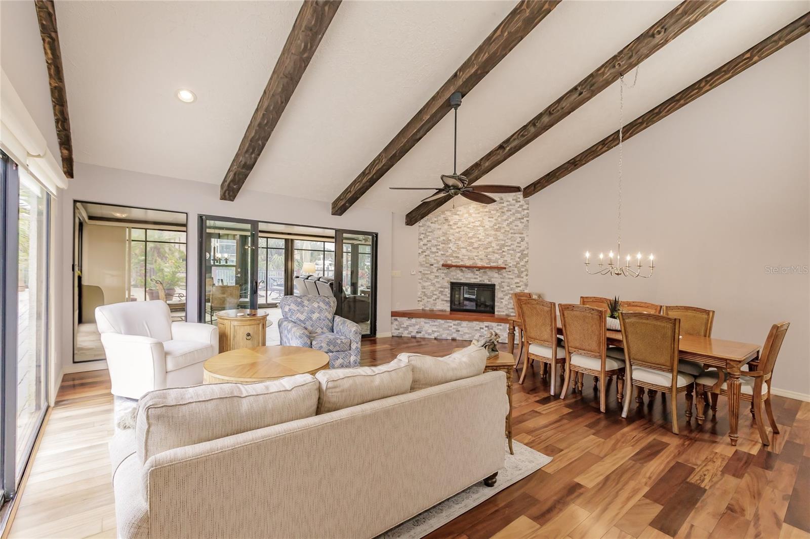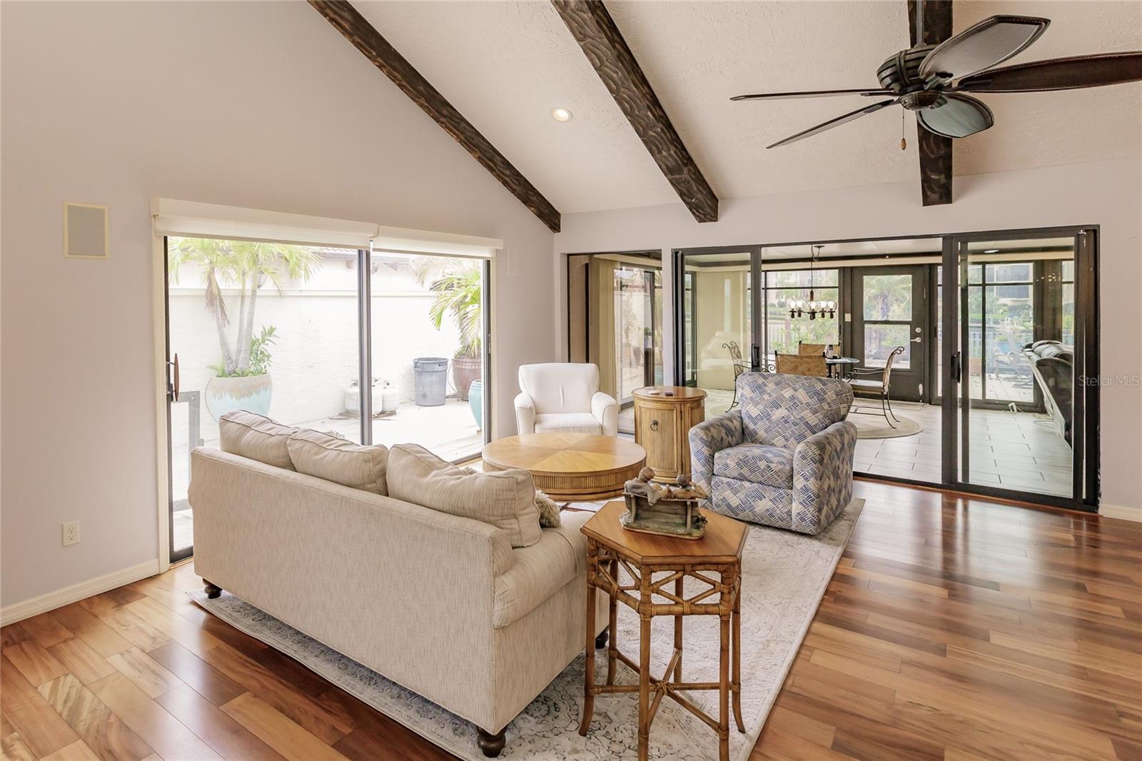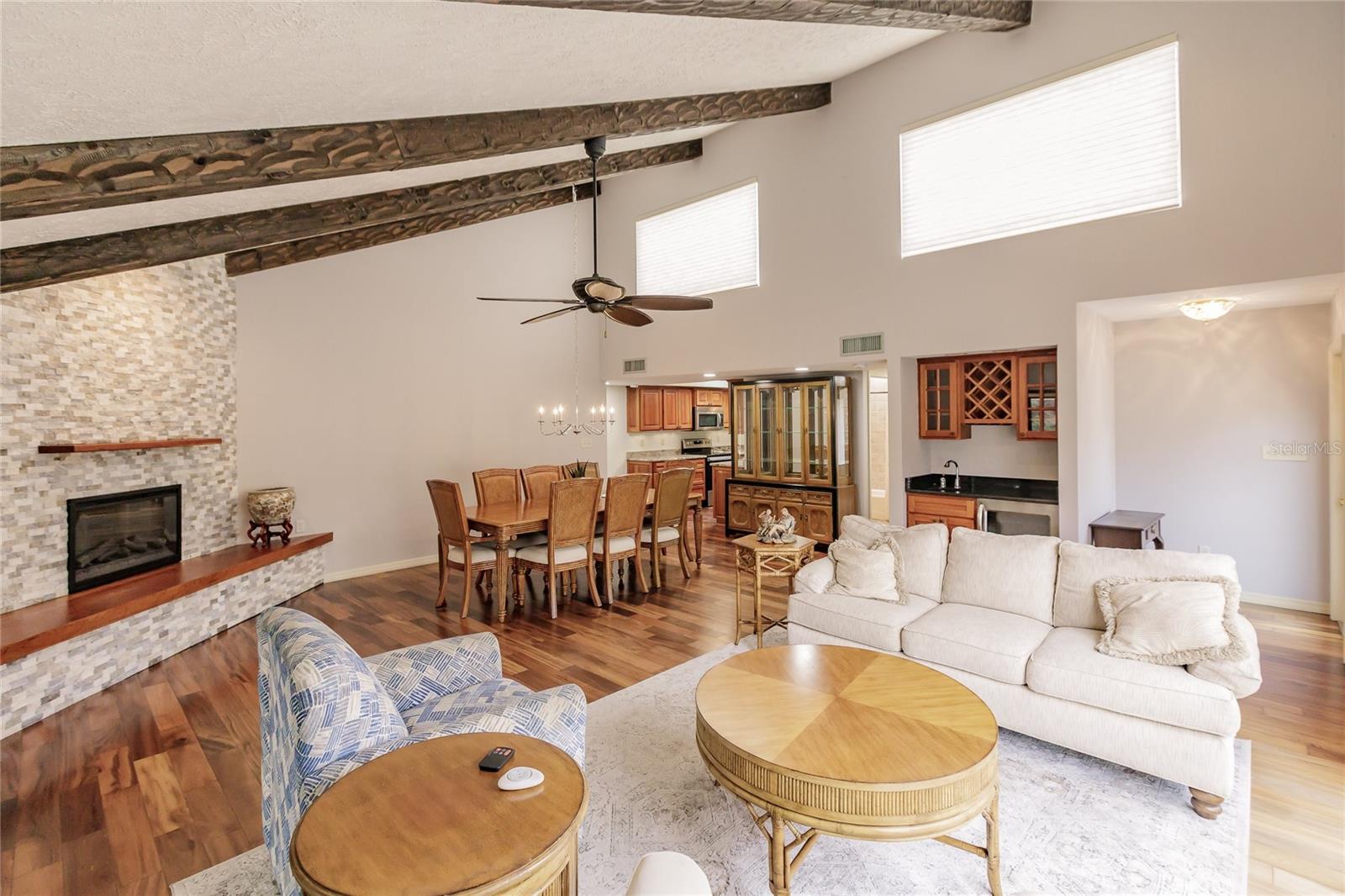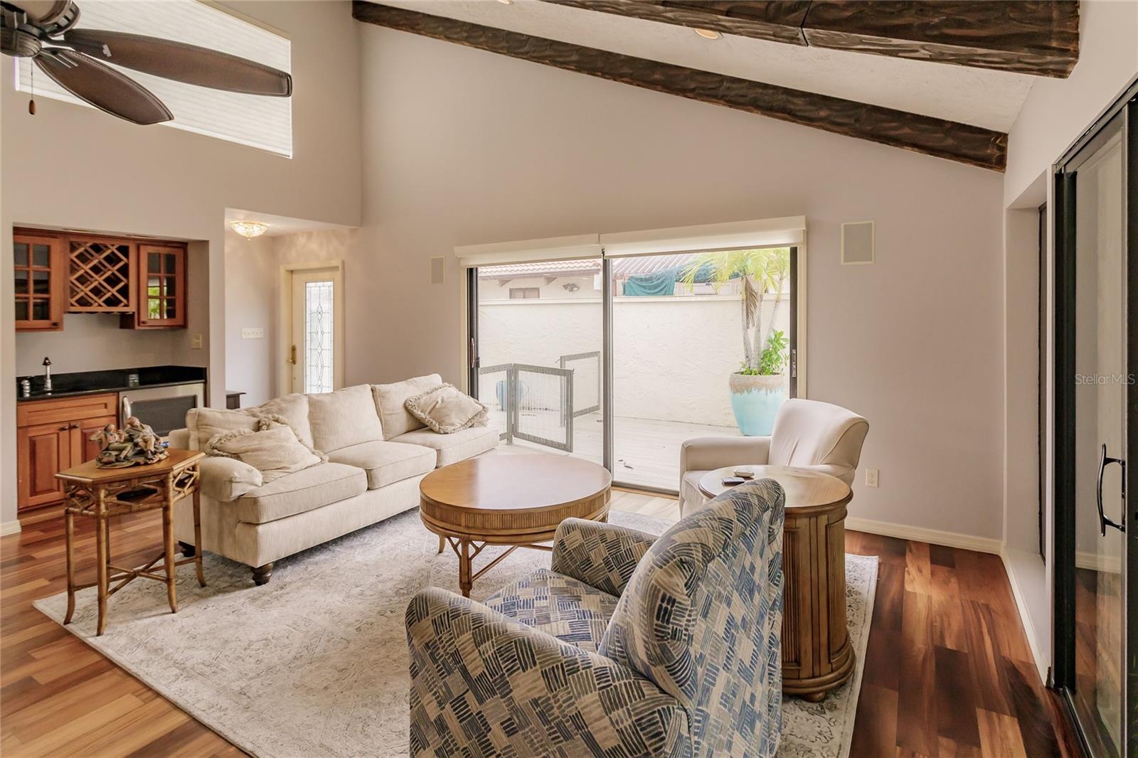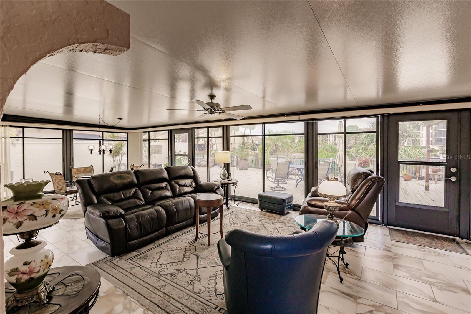 Ready to enjoy resort style, maintenance free Florida living? FEES EVEN COVER FLOOD INSURANCE! This is the one! This furnished waterfront 2 bedroom, 2 bath, 2 car garage villa is located in the waterfront community of Emerald Pointe in Punta Gorda. This villa is a rare find with all the features of a single family home. The boating enthusiast will appreciate the community boat ramp, marina, and docks available on a first come, first served basis. Great location with quick and direct access to the Peace River, Charlotte Harbor, and then on to the blue waters of the Gulf of Mexico. This residence features a bright and open floor plan with wall-to-wall sliders in all living areas providing awesome view of the water. Open up the sliders and bring the outdoors into your living area! This residence has been tastefully updated and appointed with rich hardwood flooring throughout, updated baths, color accent walls, decorator light and fan fixtures, and soaring vaulted ceilings in most rooms. You will be amazed as you enter the impressive and spacious great room with cherry wood beamed ceiling and fireplace with cherry wood mantle and floor to ceiling stacked stone façade. Off the dining area is a built-in wet bar with wine fridge – great for entertaining. The kitchen boasts granite counters with rich cherry wood cabinetry with deep drawers and decorative glass doors on upper cabinets, and stainless appliances with 3-door fridge. And the Florida Room!! WOW. It is huge! Completely glassed in with panoramic view of the waterway. This room is so big, you have lots of flexibility in arranging your living space. Step out onto your deck big enough for all your friends and family. Master suite has 2 wall-to-wall closets and updated en suite bath with spacious glassed shower with custom tile. Step out to your deck with sweeping view of waterway and spend hours watching the boats go by and enjoying the spectacular water views and wildlife and waterfowl that abound in this area. Other key features include new tile roof and dedicated laundry area with front load washer & dryer. Emerald Pointe offers resort style living with 3 pools – one heated, tennis and pickleball courts, fitness center, club house, shuffleboard and bocce courts, boat and RV storage (first come, first served), full activity schedule with something for everyone, and 24-hour gated/guarded entrance to the community. Plus, basic cable, water, and sewer are included in your condo fee! As an added bonus FLOOD INSURANCE INCLUDED IN YOUR HOA FEE! Proximity to local beaches, dining, shopping, and golf courses makes this property ideal for the Florida lifestyle. Also, easy access to waterfront public parks with bike and walking trails and picnic areas, and boat ramps providing access to many other waterways including the Peace and Myakka Rivers and the Gulf of Mexico. Historic downtown Punta Gorda and popular Fishermen’s Village with quaint shops and cafes nearby. Perfect location – quiet waterfront community yet all conveniences and amenities nearby. And quick and easy access to Interstate 75 with Fort Myers and Naples to the south and Sarasota and Tampa to the North. So, don’t miss your opportunity to enjoy resort style living in your own little piece of waterfront paradise! **PLEASE ENJOY THE 3D INTERACTIVE VIRTUAL TOUR ASSOCIATED WITH THIS LISTING