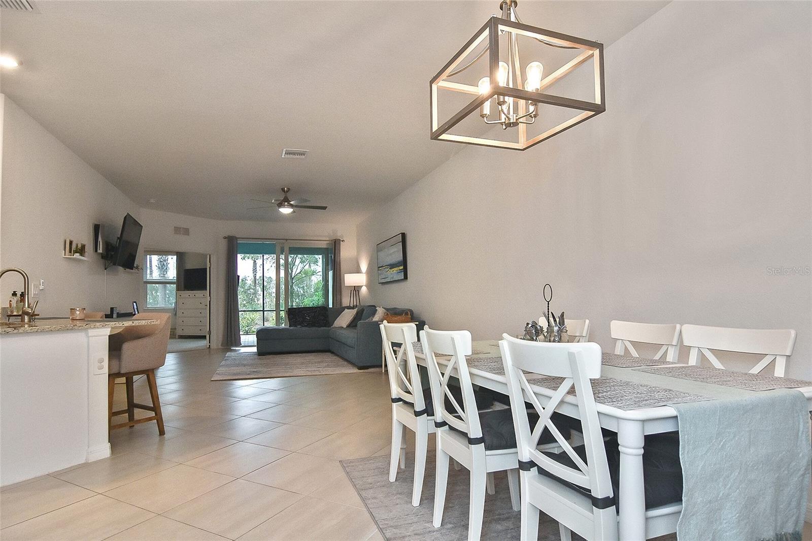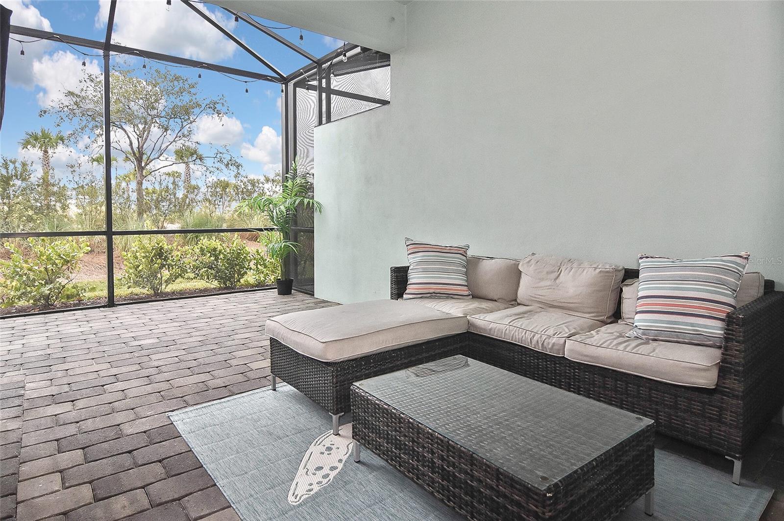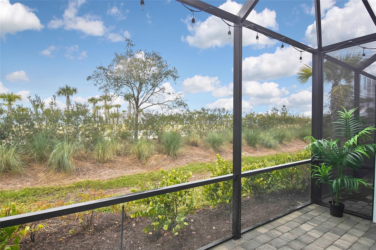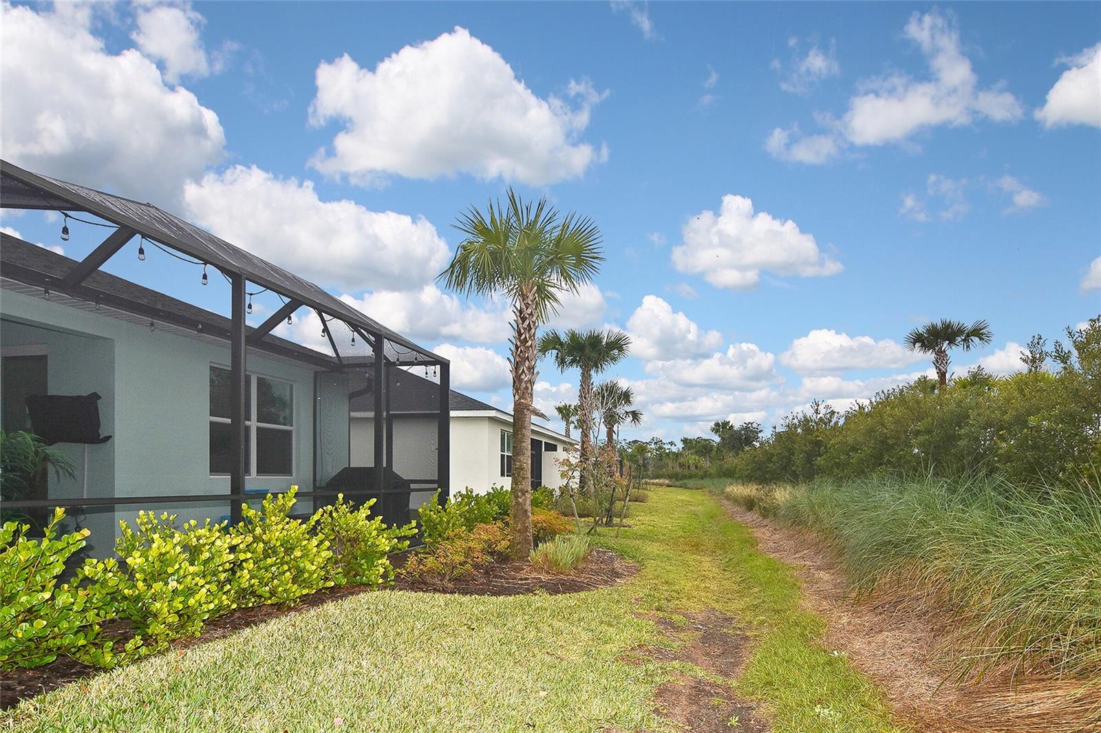 Welcome to Your Dream Home in America’s First Solar-Powered Town – Babcock Ranch! Experience vibrant community spirit and tropical charm in this stunning Queen Model Villa located in the sought-after Trails Edge neighborhood. This 2-bedroom plus den, 2-bathroom home with a 2-car garage offers 1,564 square feet of energy-efficient living space, built with quality and care by Lennar Homes. The open floor plan seamlessly blends the living, kitchen, and dining areas, creating a perfect space for entertaining. The kitchen is equipped with elegant white shaker cabinets, granite countertops, and stainless-steel appliances, while granite countertops also elevate the style and functionality of the bathrooms. Tile flooring enhances the main living areas and bathrooms, complemented by plush carpet throughout the bedrooms and den. The highlight of this property is the extended lanai with a screen enclosure, offering a peaceful retreat to enjoy the serene whispering pine views. Additional features include epoxied garage floors and low-maintenance landscaping covered by low HOA fees. Located near Founder’s Square, the community’s bustling hub, residents enjoy live music, food trucks, a farmer’s market, and endless activities. Babcock Ranch also offers top-rated public schools, excellent medical facilities, scenic trails, outdoor recreation, and a variety of shopping and dining options. Every day feels like a vacation in this tropical paradise. Your dream home is ready to welcome you – schedule your private tour today!