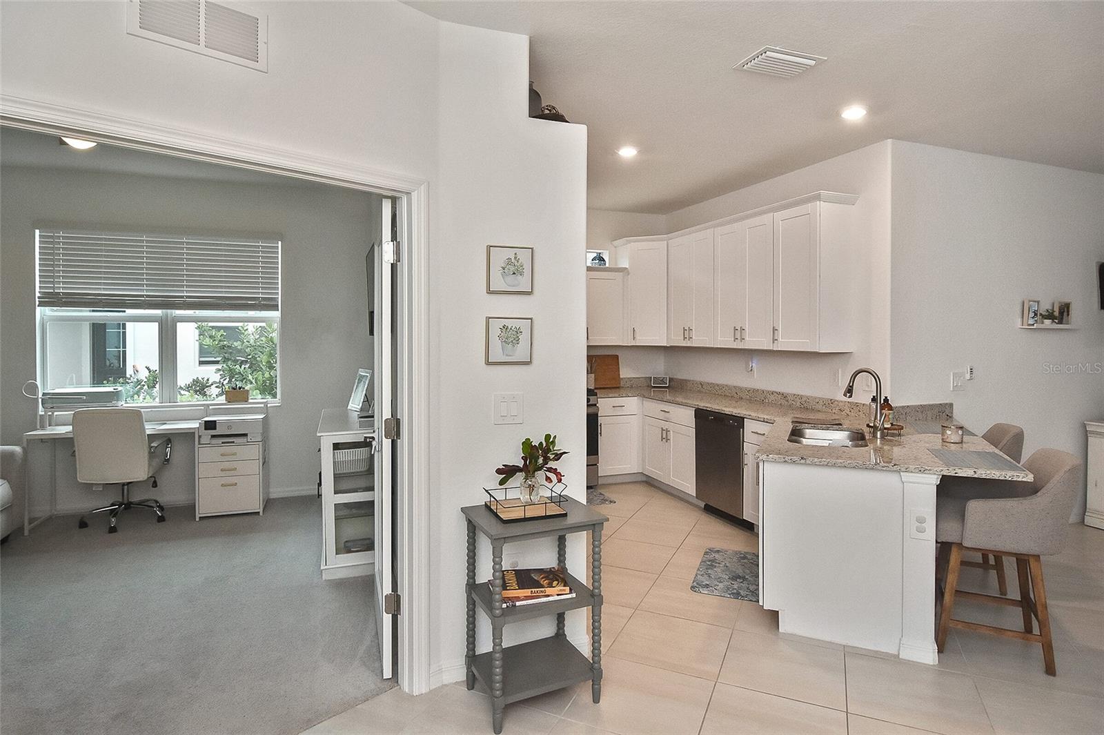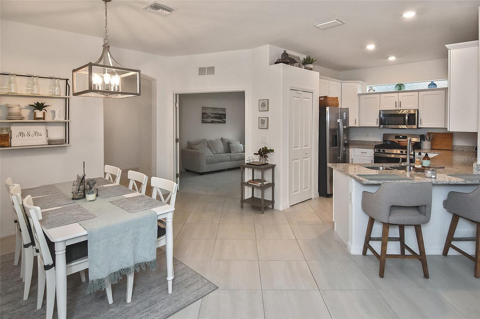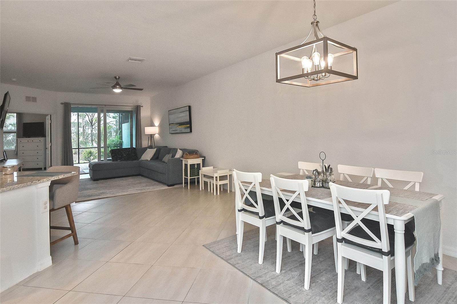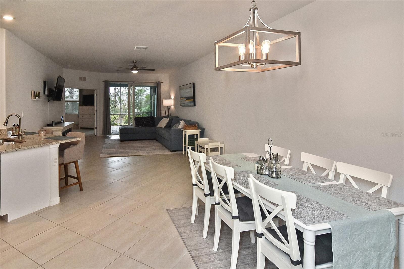 Welcome to Your Dream Home in America’s First Solar-Powered Town – Babcock Ranch! Experience vibrant community spirit and tropical charm in this stunning Queen Model Villa located in the sought-after Trails Edge neighborhood. This 2-bedroom plus den, 2-bathroom home with a 2-car garage offers 1,564 square feet of energy-efficient living space, built with quality and care by Lennar Homes. The open floor plan seamlessly blends the living, kitchen, and dining areas, creating a perfect space for entertaining. The kitchen is equipped with elegant white shaker cabinets, granite countertops, and stainless-steel appliances, while granite countertops also elevate the style and functionality of the bathrooms. Tile flooring enhances the main living areas and bathrooms, complemented by plush carpet throughout the bedrooms and den. The highlight of this property is the extended lanai with a screen enclosure, offering a peaceful retreat to enjoy the serene whispering pine views. Additional features include epoxied garage floors and low-maintenance landscaping covered by low HOA fees. Located near Founder’s Square, the community’s bustling hub, residents enjoy live music, food trucks, a farmer’s market, and endless activities. Babcock Ranch also offers top-rated public schools, excellent medical facilities, scenic trails, outdoor recreation, and a variety of shopping and dining options. Every day feels like a vacation in this tropical paradise. Your dream home is ready to welcome you – schedule your private tour today!