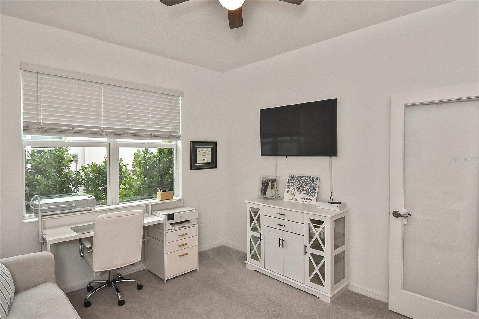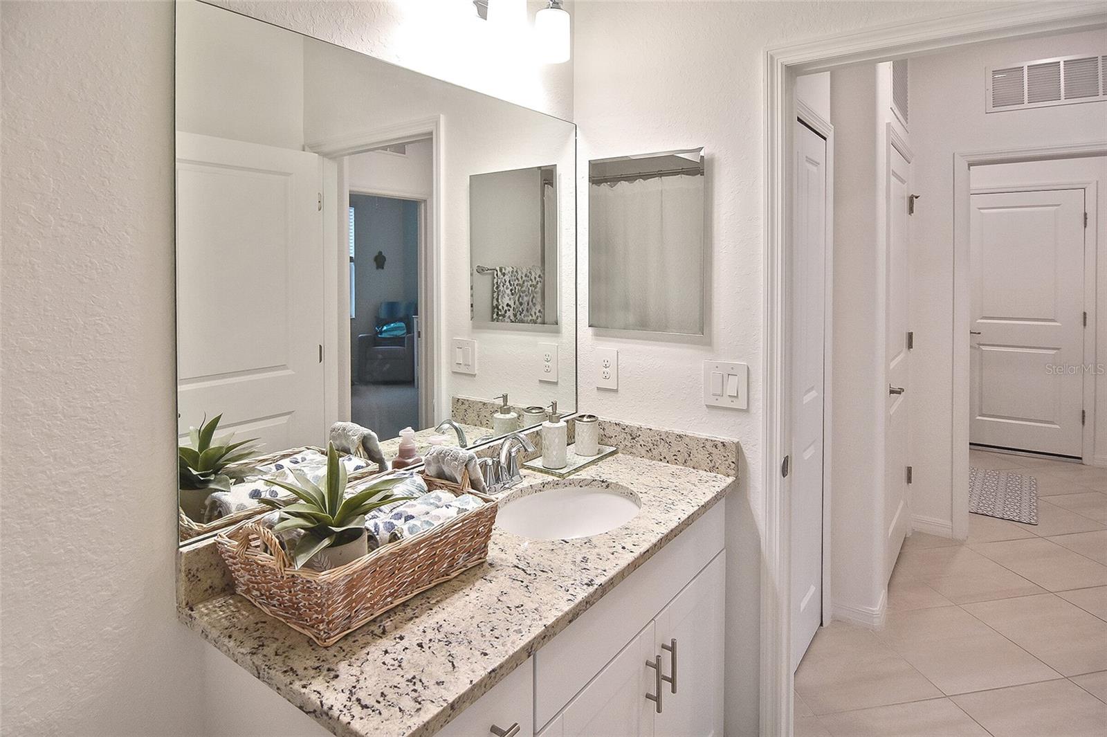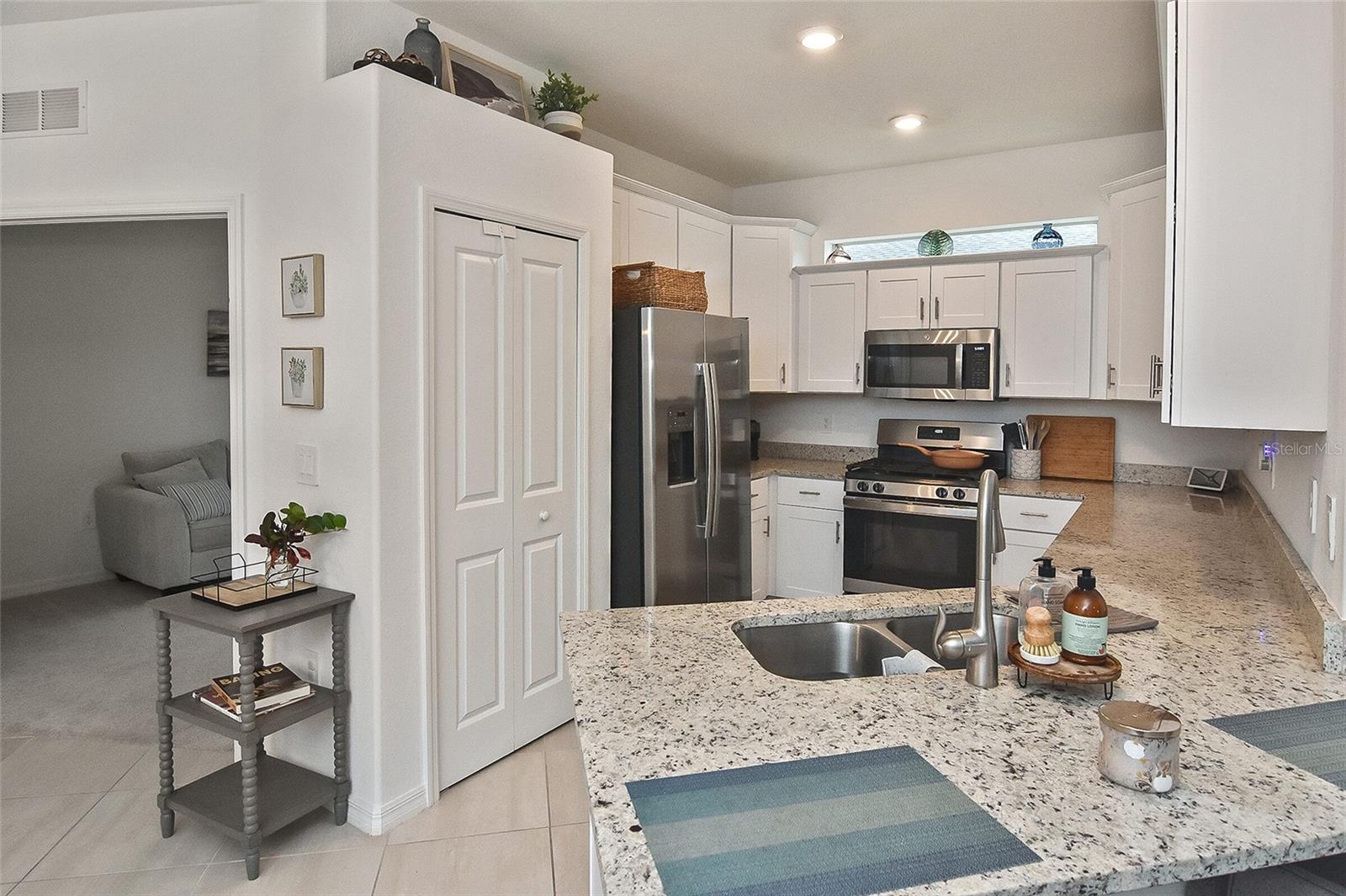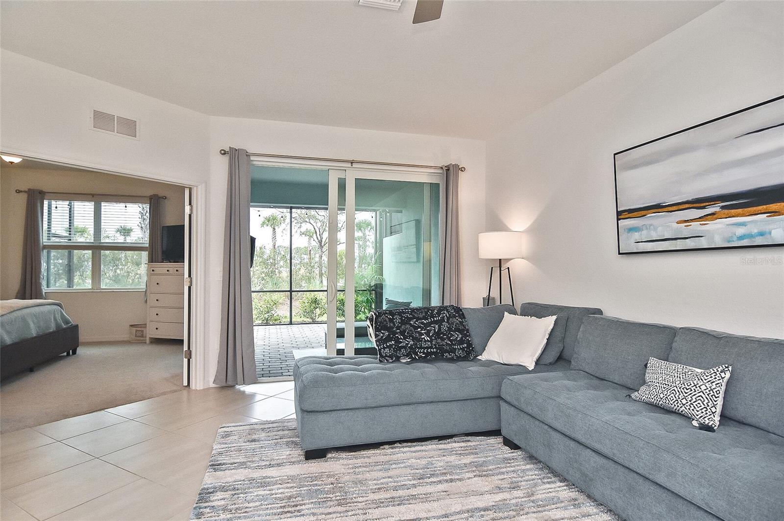 Welcome to Your Dream Home in America’s First Solar-Powered Town – Babcock Ranch! Experience vibrant community spirit and tropical charm in this stunning Queen Model Villa located in the sought-after Trails Edge neighborhood. This 2-bedroom plus den, 2-bathroom home with a 2-car garage offers 1,564 square feet of energy-efficient living space, built with quality and care by Lennar Homes. The open floor plan seamlessly blends the living, kitchen, and dining areas, creating a perfect space for entertaining. The kitchen is equipped with elegant white shaker cabinets, granite countertops, and stainless-steel appliances, while granite countertops also elevate the style and functionality of the bathrooms. Tile flooring enhances the main living areas and bathrooms, complemented by plush carpet throughout the bedrooms and den. The highlight of this property is the extended lanai with a screen enclosure, offering a peaceful retreat to enjoy the serene whispering pine views. Additional features include epoxied garage floors and low-maintenance landscaping covered by low HOA fees. Located near Founder’s Square, the community’s bustling hub, residents enjoy live music, food trucks, a farmer’s market, and endless activities. Babcock Ranch also offers top-rated public schools, excellent medical facilities, scenic trails, outdoor recreation, and a variety of shopping and dining options. Every day feels like a vacation in this tropical paradise. Your dream home is ready to welcome you – schedule your private tour today!