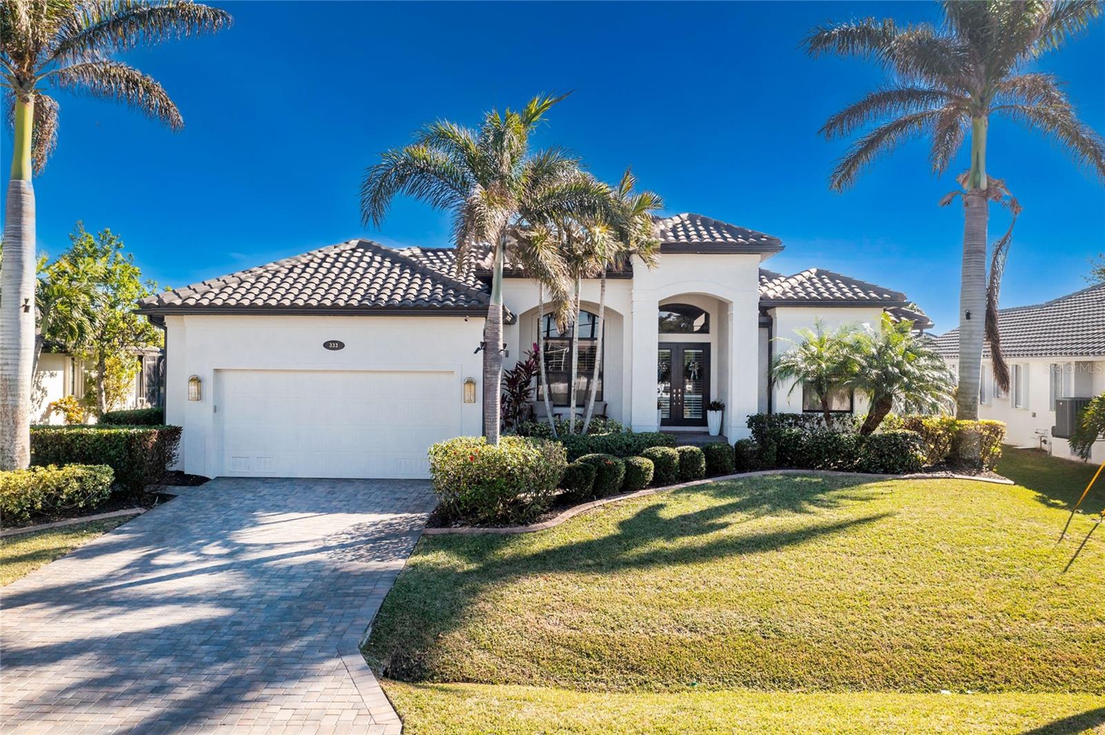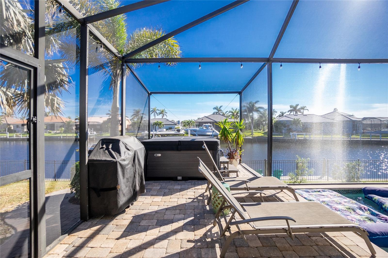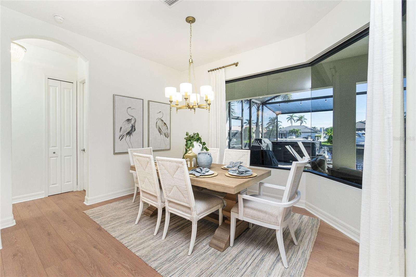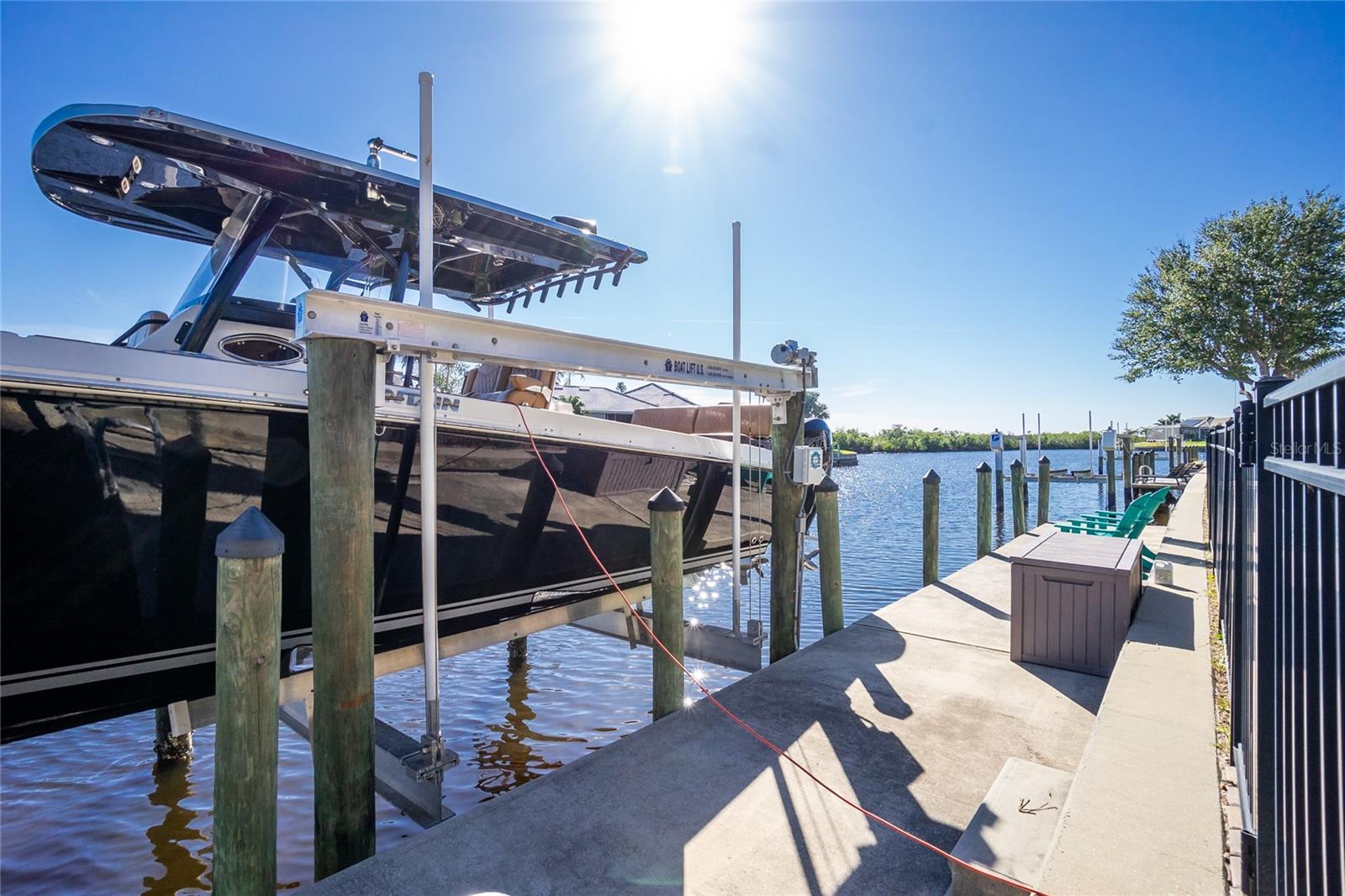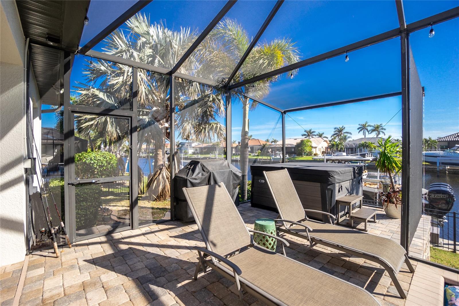 Welcome to your dream waterfront oasis! This stunning FULLY FURNISHED three-bedroom, two-bath pool home offers the perfect blend of luxury and comfort, making it an ideal retreat for both relaxation and entertaining. Step inside, you're greeted by an open concept living space adorned with exquisite luxury vinyl floors that flow seamlessly throughout the home along with coffered ceilings and crown molding. The spacious living area is bathed in natural light, providing a warm and inviting atmosphere. The modern kitchen features high-end Cafe line appliances, quartz countertops that are perfect for the culinary enthusiast. The master suite is a true sanctuary, boasting picturesque views of the water along with an en-suite bathroom that offers both convenience and elegance. The additional bedrooms are generously sized, perfect for family, guests. Step outside to your private paradise, where you'll find a sparkling pool surrounded by lush landscaping, ideal for soaking up the sun or hosting gatherings. Unwind in the new spa after a long day along with your outdoor kitchen equipped with beverage fridge. Drop your boat in on the new 16,000 lb. boat lift (2024), making it easy to explore the beautiful waterways right at your doorstep. This home also features a dedicated office space, making it perfect for remote work or as a quiet study area. With its prime location and luxurious amenities, this waterfront property is not just a home; it's a lifestyle Don’t miss this opportunity to own a slice of paradise!