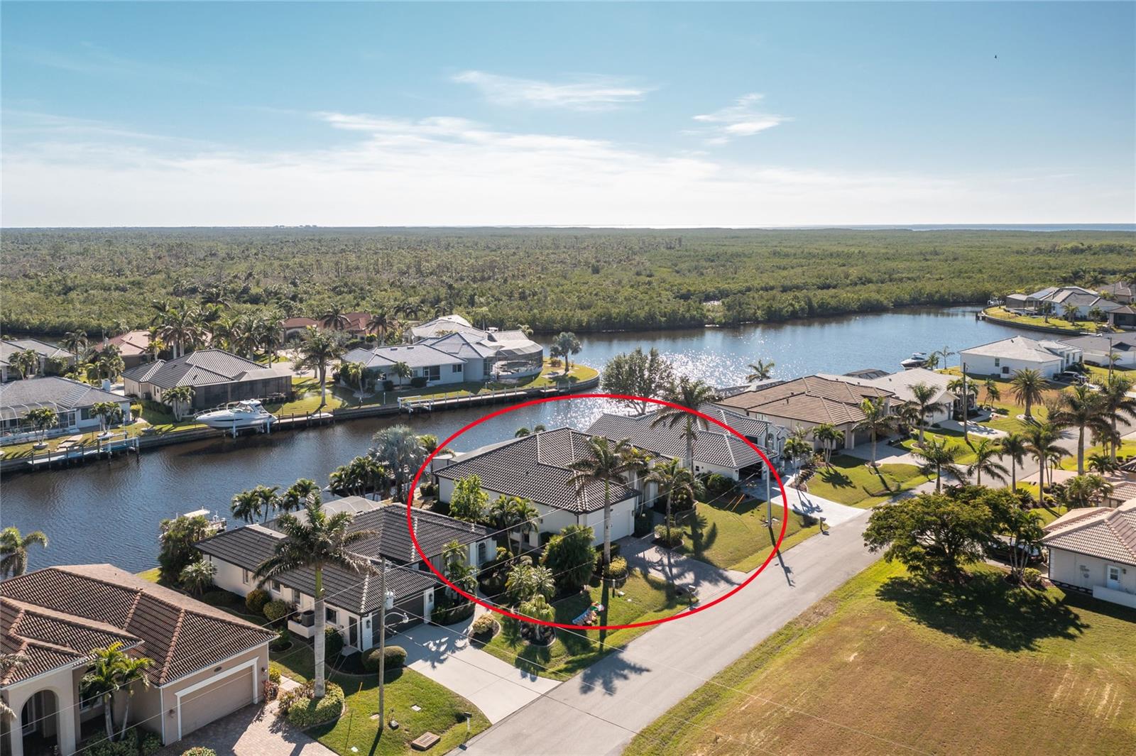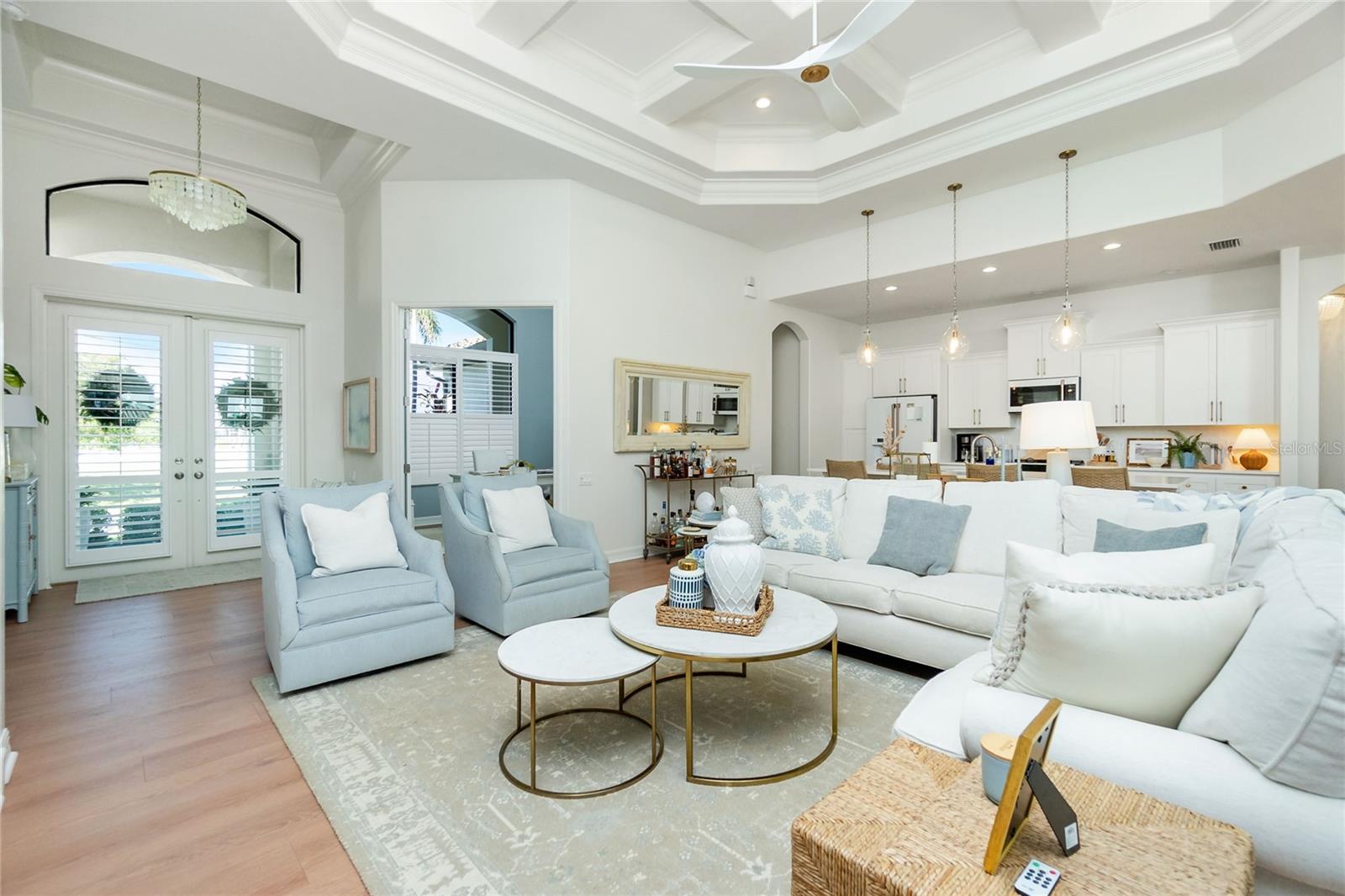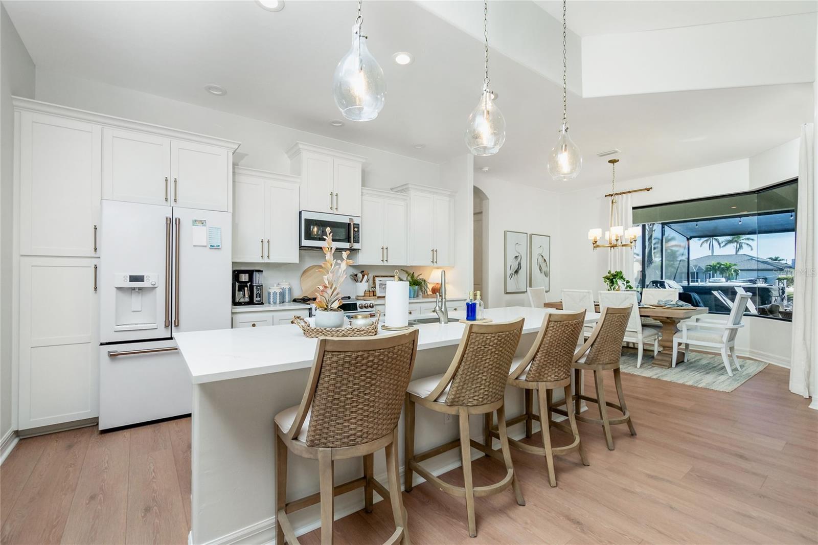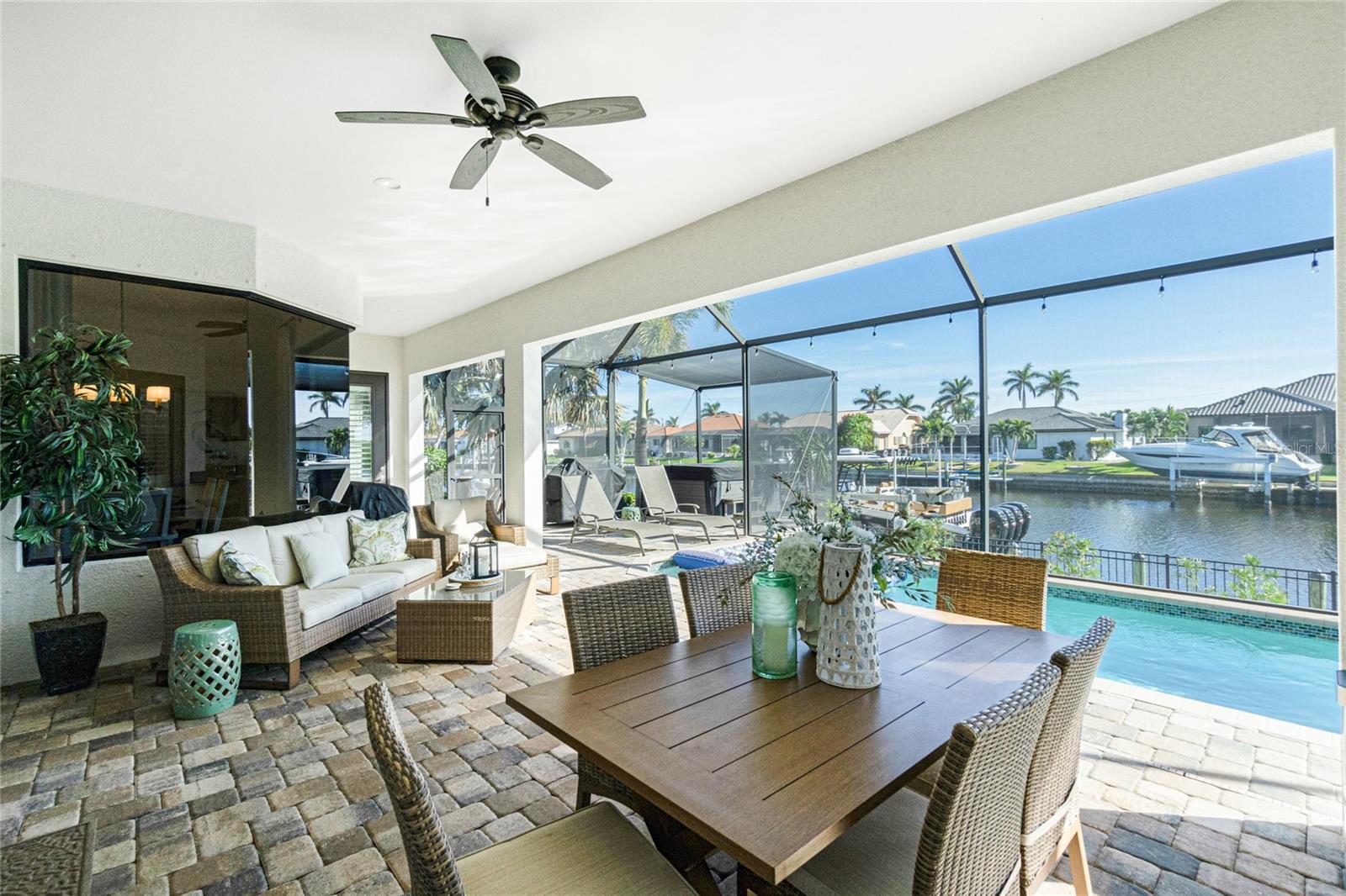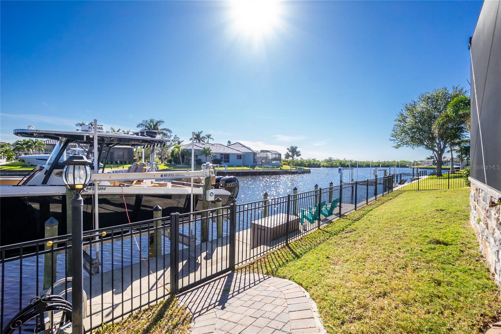 Welcome to your dream waterfront oasis! This stunning FULLY FURNISHED three-bedroom, two-bath pool home offers the perfect blend of luxury and comfort, making it an ideal retreat for both relaxation and entertaining. Step inside, you're greeted by an open concept living space adorned with exquisite luxury vinyl floors that flow seamlessly throughout the home along with coffered ceilings and crown molding. The spacious living area is bathed in natural light, providing a warm and inviting atmosphere. The modern kitchen features high-end Cafe line appliances, quartz countertops that are perfect for the culinary enthusiast. The master suite is a true sanctuary, boasting picturesque views of the water along with an en-suite bathroom that offers both convenience and elegance. The additional bedrooms are generously sized, perfect for family, guests. Step outside to your private paradise, where you'll find a sparkling pool surrounded by lush landscaping, ideal for soaking up the sun or hosting gatherings. Unwind in the new spa after a long day along with your outdoor kitchen equipped with beverage fridge. Drop your boat in on the new 16,000 lb. boat lift (2024), making it easy to explore the beautiful waterways right at your doorstep. This home also features a dedicated office space, making it perfect for remote work or as a quiet study area. With its prime location and luxurious amenities, this waterfront property is not just a home; it's a lifestyle Don’t miss this opportunity to own a slice of paradise!
