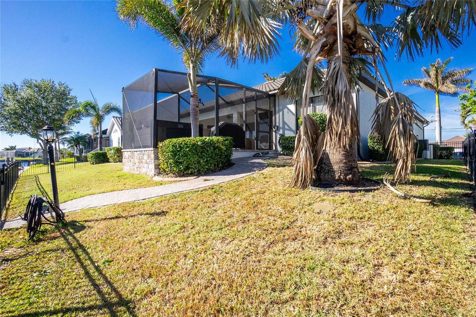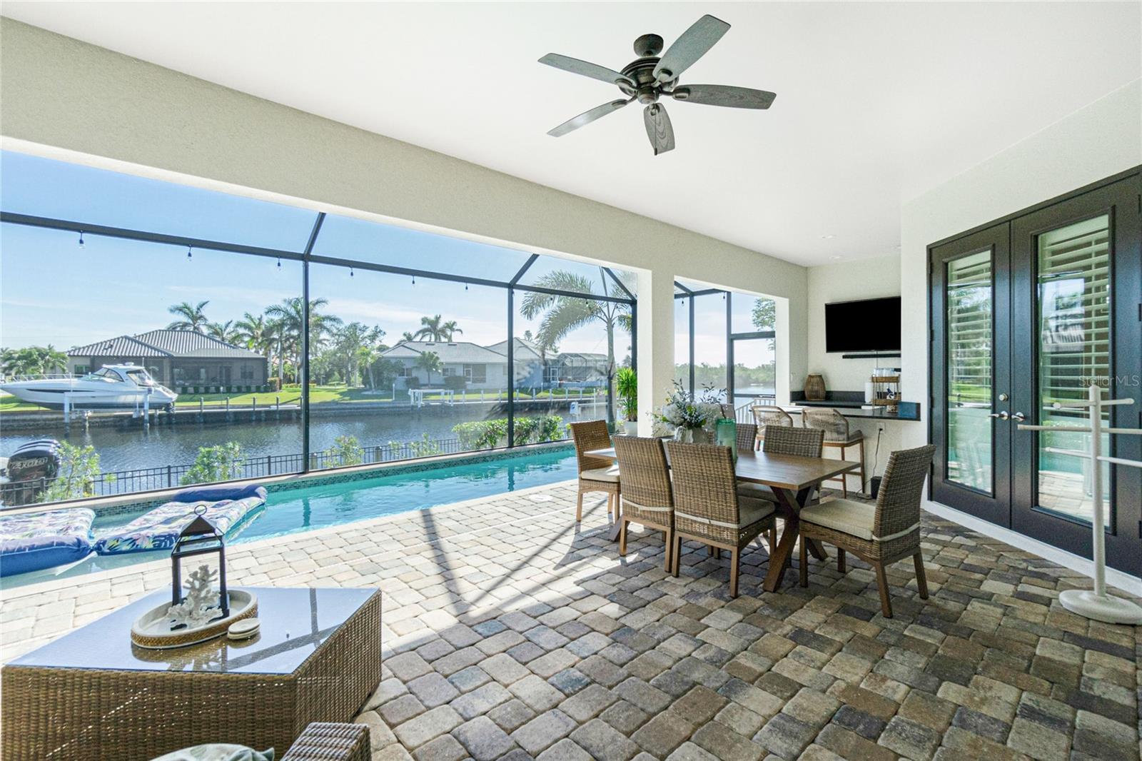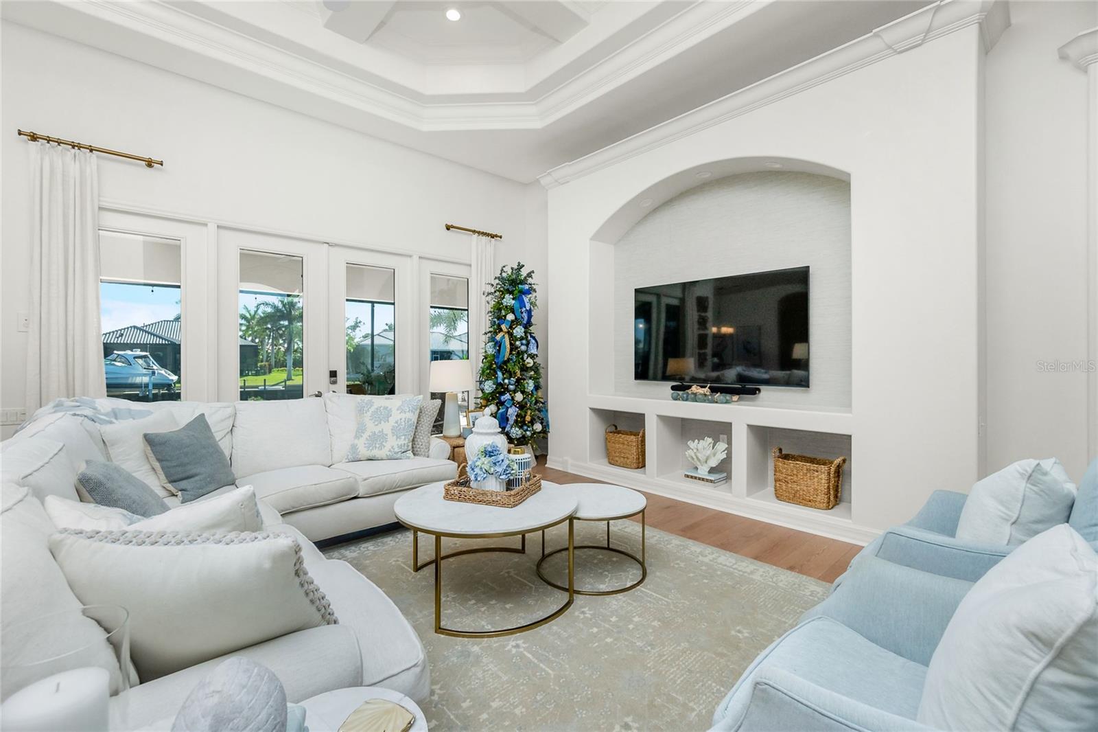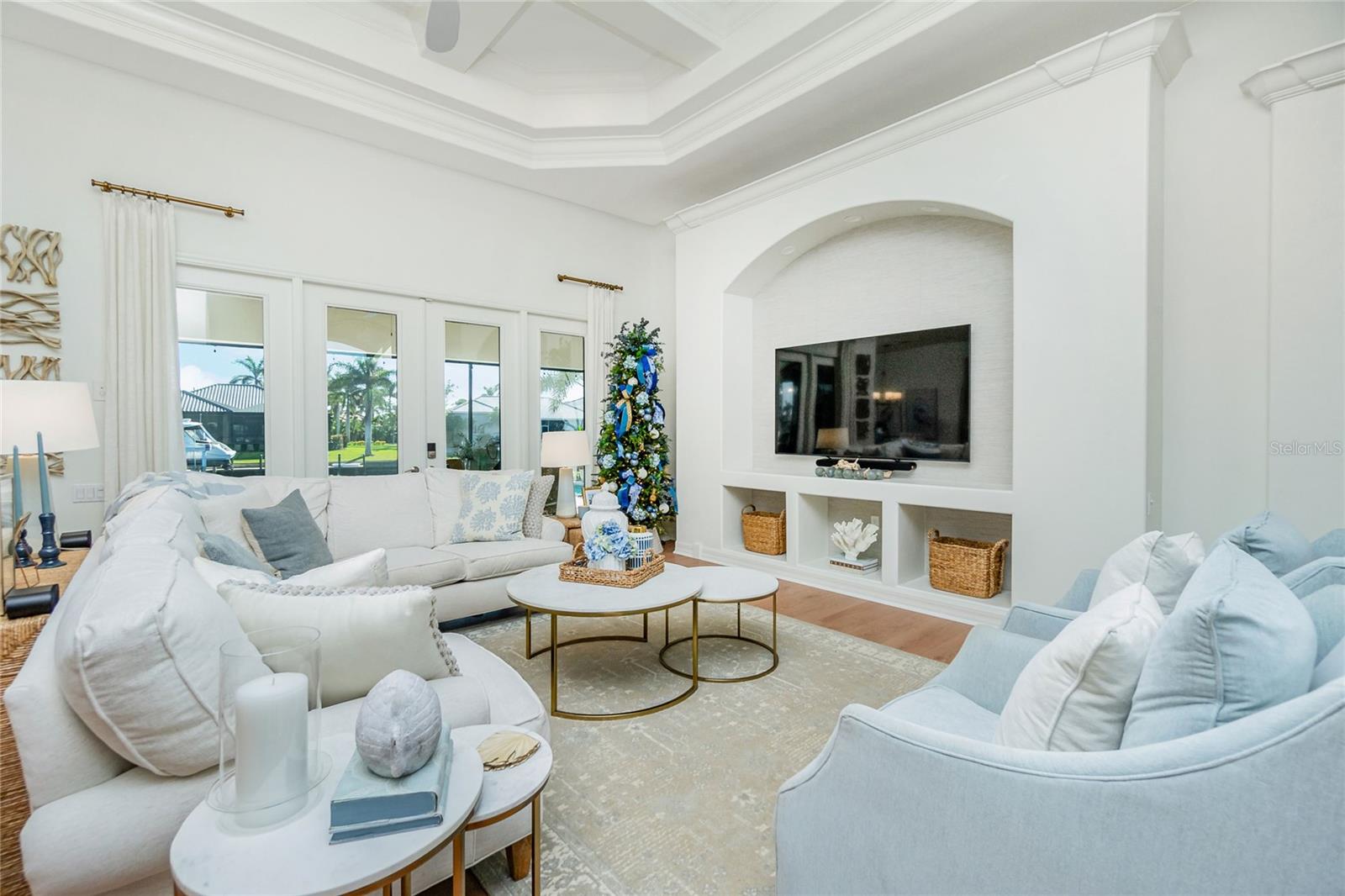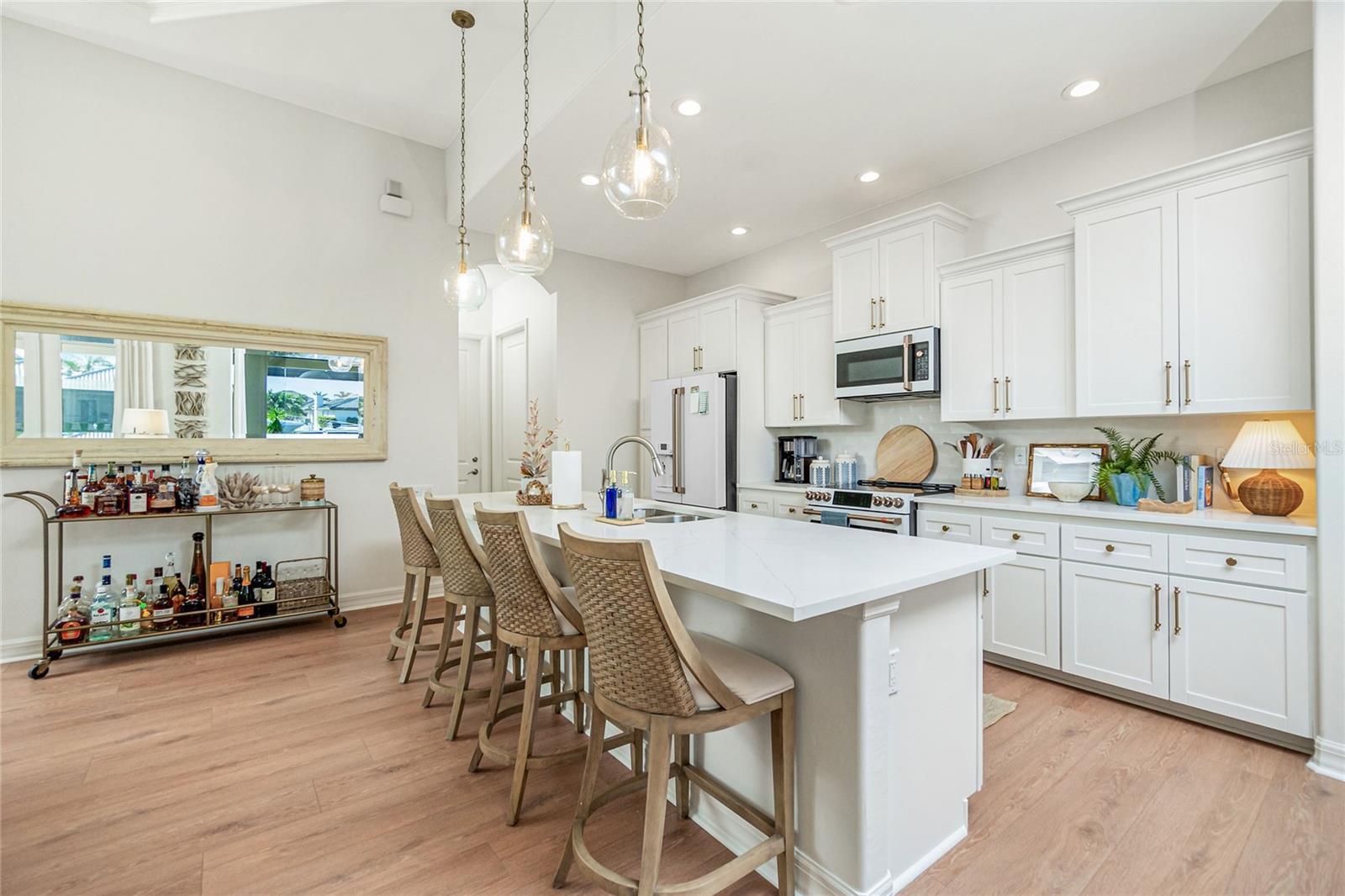 Welcome to your dream waterfront oasis! This stunning FULLY FURNISHED three-bedroom, two-bath pool home offers the perfect blend of luxury and comfort, making it an ideal retreat for both relaxation and entertaining. Step inside, you're greeted by an open concept living space adorned with exquisite luxury vinyl floors that flow seamlessly throughout the home along with coffered ceilings and crown molding. The spacious living area is bathed in natural light, providing a warm and inviting atmosphere. The modern kitchen features high-end Cafe line appliances, quartz countertops that are perfect for the culinary enthusiast. The master suite is a true sanctuary, boasting picturesque views of the water along with an en-suite bathroom that offers both convenience and elegance. The additional bedrooms are generously sized, perfect for family, guests. Step outside to your private paradise, where you'll find a sparkling pool surrounded by lush landscaping, ideal for soaking up the sun or hosting gatherings. Unwind in the new spa after a long day along with your outdoor kitchen equipped with beverage fridge. Drop your boat in on the new 16,000 lb. boat lift (2024), making it easy to explore the beautiful waterways right at your doorstep. This home also features a dedicated office space, making it perfect for remote work or as a quiet study area. With its prime location and luxurious amenities, this waterfront property is not just a home; it's a lifestyle Don’t miss this opportunity to own a slice of paradise!