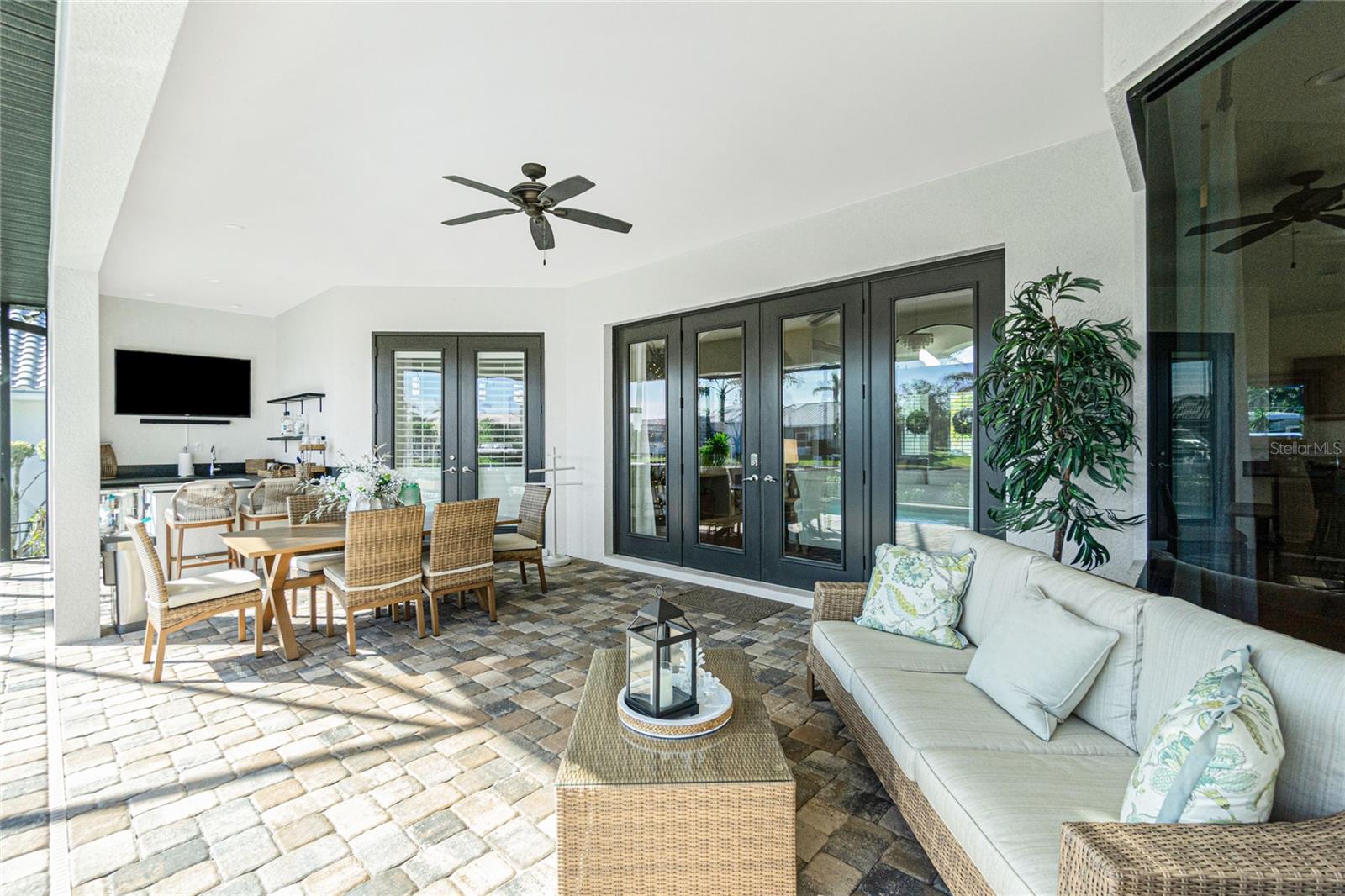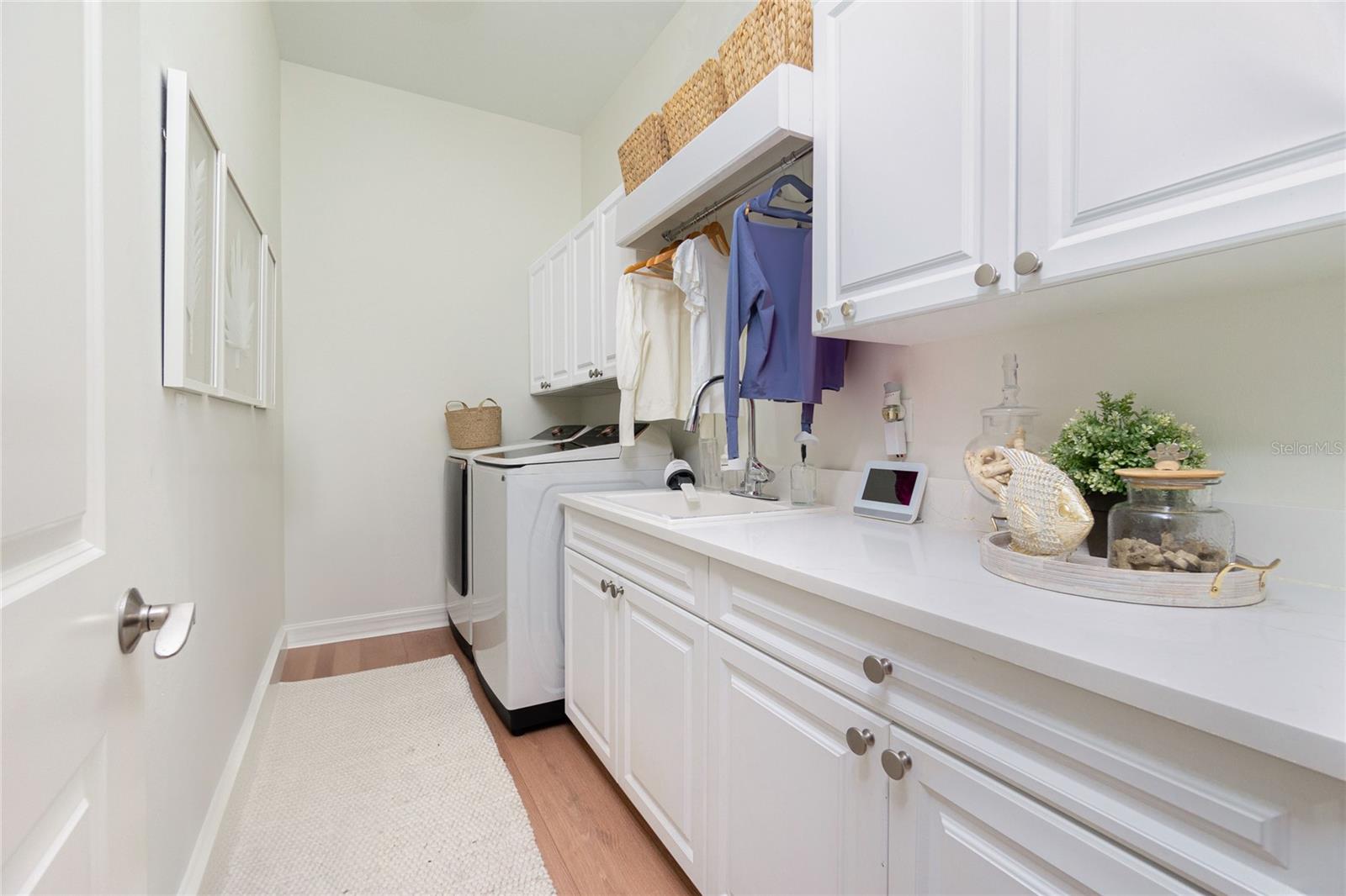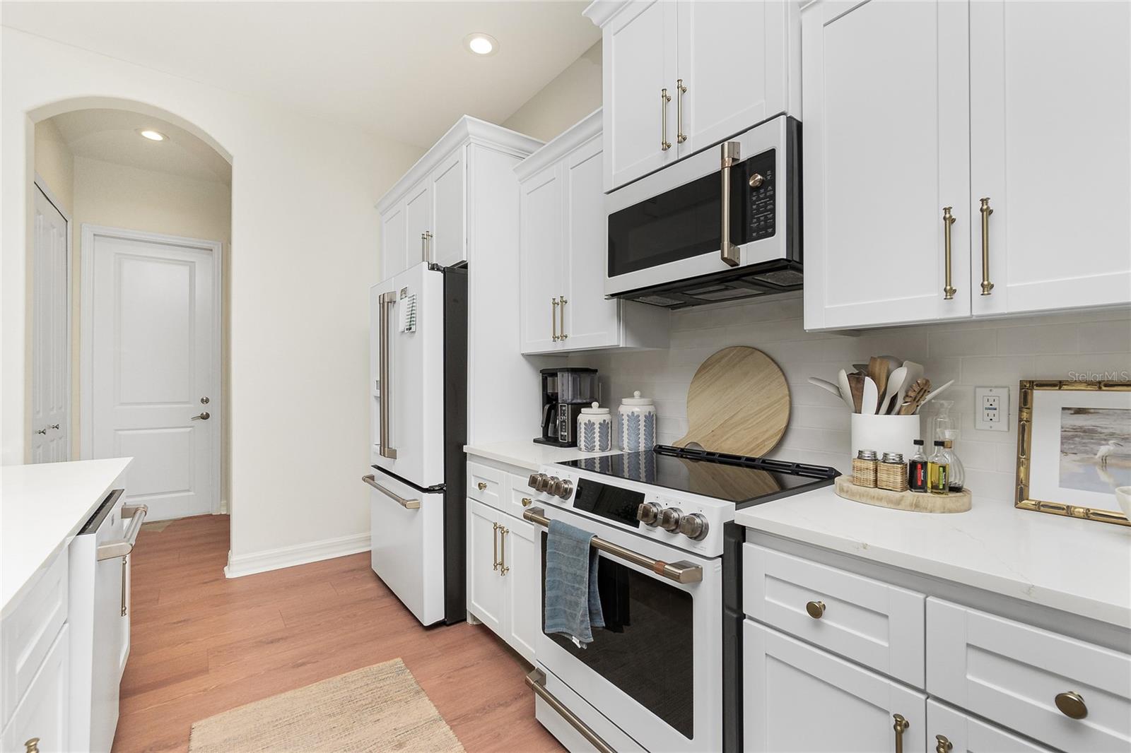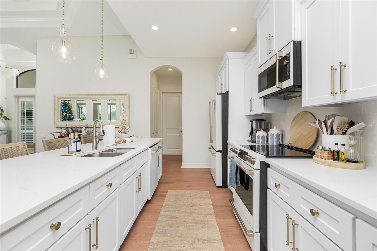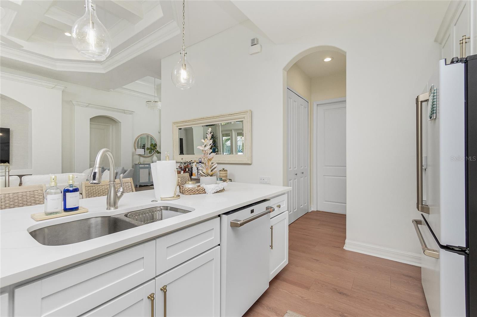 Welcome to your dream waterfront oasis! This stunning FULLY FURNISHED three-bedroom, two-bath pool home offers the perfect blend of luxury and comfort, making it an ideal retreat for both relaxation and entertaining. Step inside, you're greeted by an open concept living space adorned with exquisite luxury vinyl floors that flow seamlessly throughout the home along with coffered ceilings and crown molding. The spacious living area is bathed in natural light, providing a warm and inviting atmosphere. The modern kitchen features high-end Cafe line appliances, quartz countertops that are perfect for the culinary enthusiast. The master suite is a true sanctuary, boasting picturesque views of the water along with an en-suite bathroom that offers both convenience and elegance. The additional bedrooms are generously sized, perfect for family, guests. Step outside to your private paradise, where you'll find a sparkling pool surrounded by lush landscaping, ideal for soaking up the sun or hosting gatherings. Unwind in the new spa after a long day along with your outdoor kitchen equipped with beverage fridge. Drop your boat in on the new 16,000 lb. boat lift (2024), making it easy to explore the beautiful waterways right at your doorstep. This home also features a dedicated office space, making it perfect for remote work or as a quiet study area. With its prime location and luxurious amenities, this waterfront property is not just a home; it's a lifestyle Don’t miss this opportunity to own a slice of paradise!