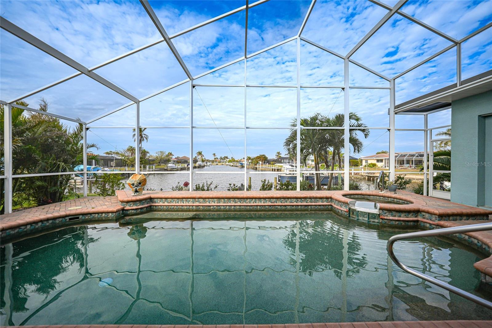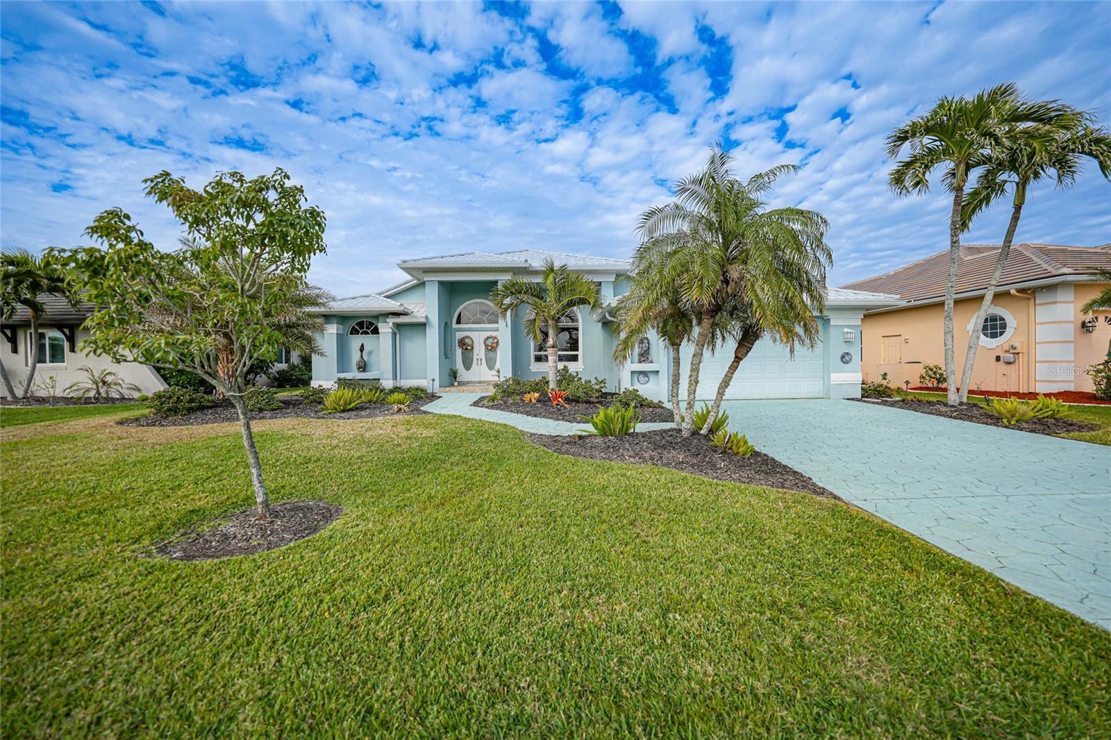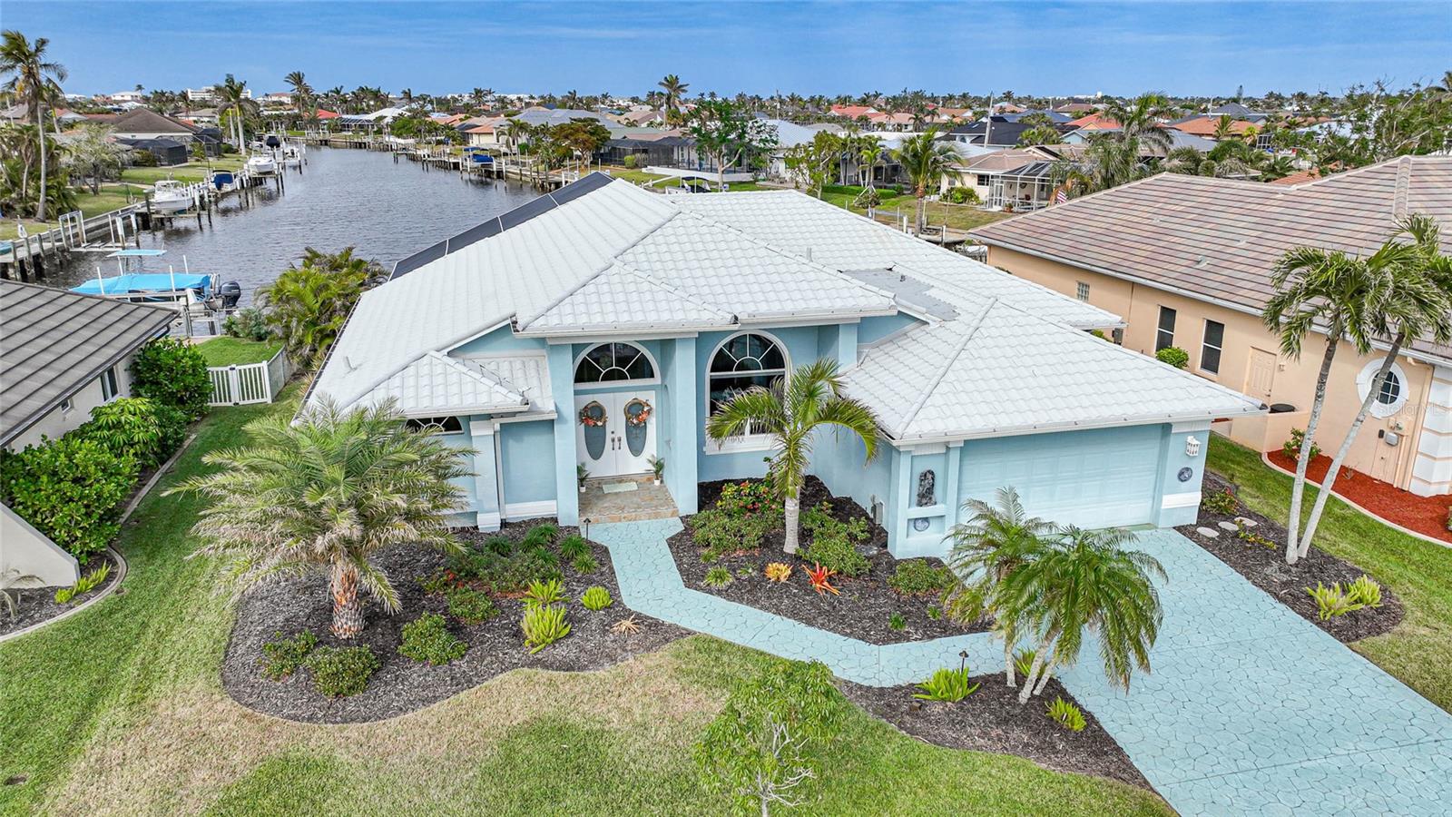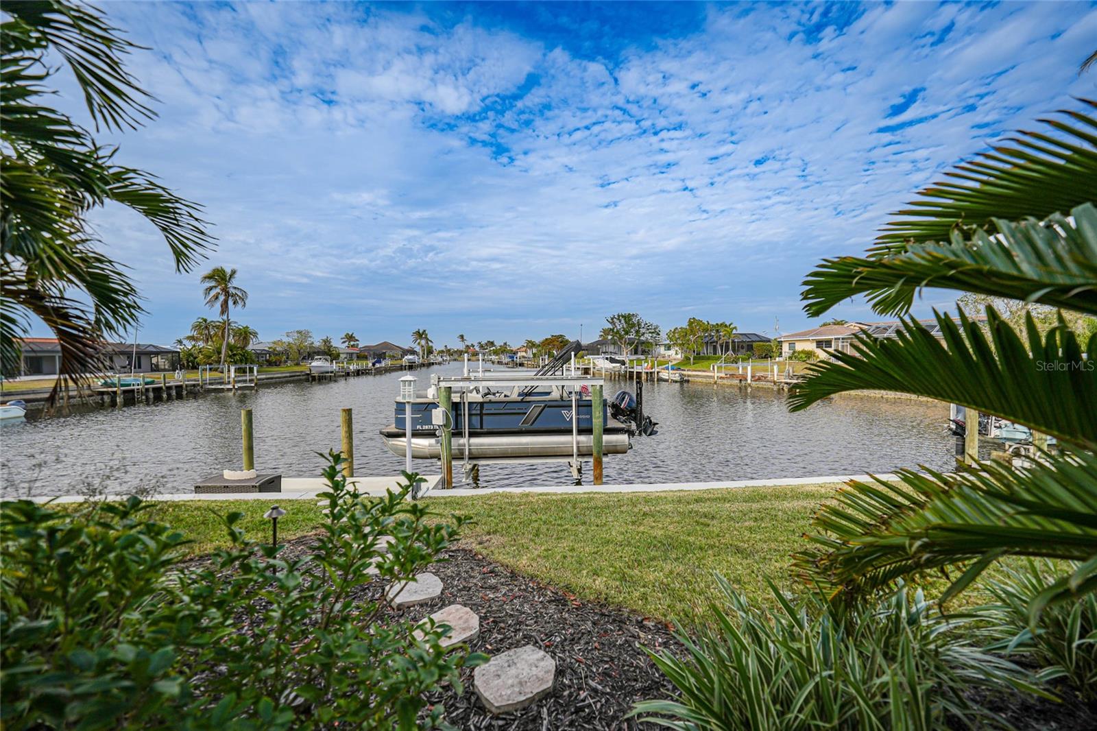 Welcome to your ultimate waterfront retreat in Punta Gorda Isles, where stunning long-water views and just 12-minute powerboat access to Charlotte Harbor and the Gulf of Mexico await! This exquisite 3-bedroom, 3-bath pool home offers 2,367 square feet of luxurious open/split living space. As you step through the living and dining areas, you’ll be immediately struck by the open floor plan, soaring ceilings, and elegant built-in features. Arched entryways and contemporary lighting enhance the home’s stylish ambiance. Disappearing sliders seamlessly connect the interior to the pool and lanai area, creating a perfect flow for indoor-outdoor living. The gourmet kitchen is truly a chef’s paradise, boasting a breakfast bar, stainless steel appliances—including a new dishwasher—a wine cooler, and an abundance of raised-panel cabinetry with elegant crown molding. A spacious pantry provides ample storage, while the kitchen overlooks the inviting casual dining nook with views. From here, continue into the beautifully updated family room, where an electric fireplace serves as a stunning focal point. Luxury vinyl tile flooring throughout the family room and bedrooms adds a modern, sleek touch to the home’s overall appeal. The split floor plan ensures privacy, with the primary suite offering direct access to the lanai through sliding doors and an aquarium window that floods the room with natural light. The spa-inspired master bath is a true sanctuary, featuring custom tile work, dual sinks, a garden tub, and a Roman shower. Two generously sized guest bedrooms, each featuring built-in closets and plantation shutters, share a beautifully appointed bathroom complete with a Roman shower. With all systems replaced within the past 5 years—including HVAC, tankless hot water heater and water filtration system—this home provides peace of mind for its new owner. Step outside to enjoy the new stone-coated metal roof, a spacious covered lanai ideal for outdoor entertaining, a convenient pool bath, a screened and heated pool with new variable speed pump/heater, and an in-ground spa with new motor, all surrounded by updated lush landscaping with updated irrigation. A walkway leads to the new cement dock and 80’ of seawall (maintained by the city) and features a water/electric and a 16,000 lb boat lift for your convenience. M&S full house audio and intercom system, laundry room and 2-car garage complete the package. Situated in a sought-after golf and boating community, this home is just minutes from the Punta Gorda Yacht Club, Fishermen's Village, and historic downtown Punta Gorda. Indulge in world-class fishing, boating, arts, fine dining, and entertainment, or explore the nearby parks and pristine SWFL beaches. This meticulously maintained, single-owner home radiates pride of ownership and offers a lifestyle that’s truly unmatched.