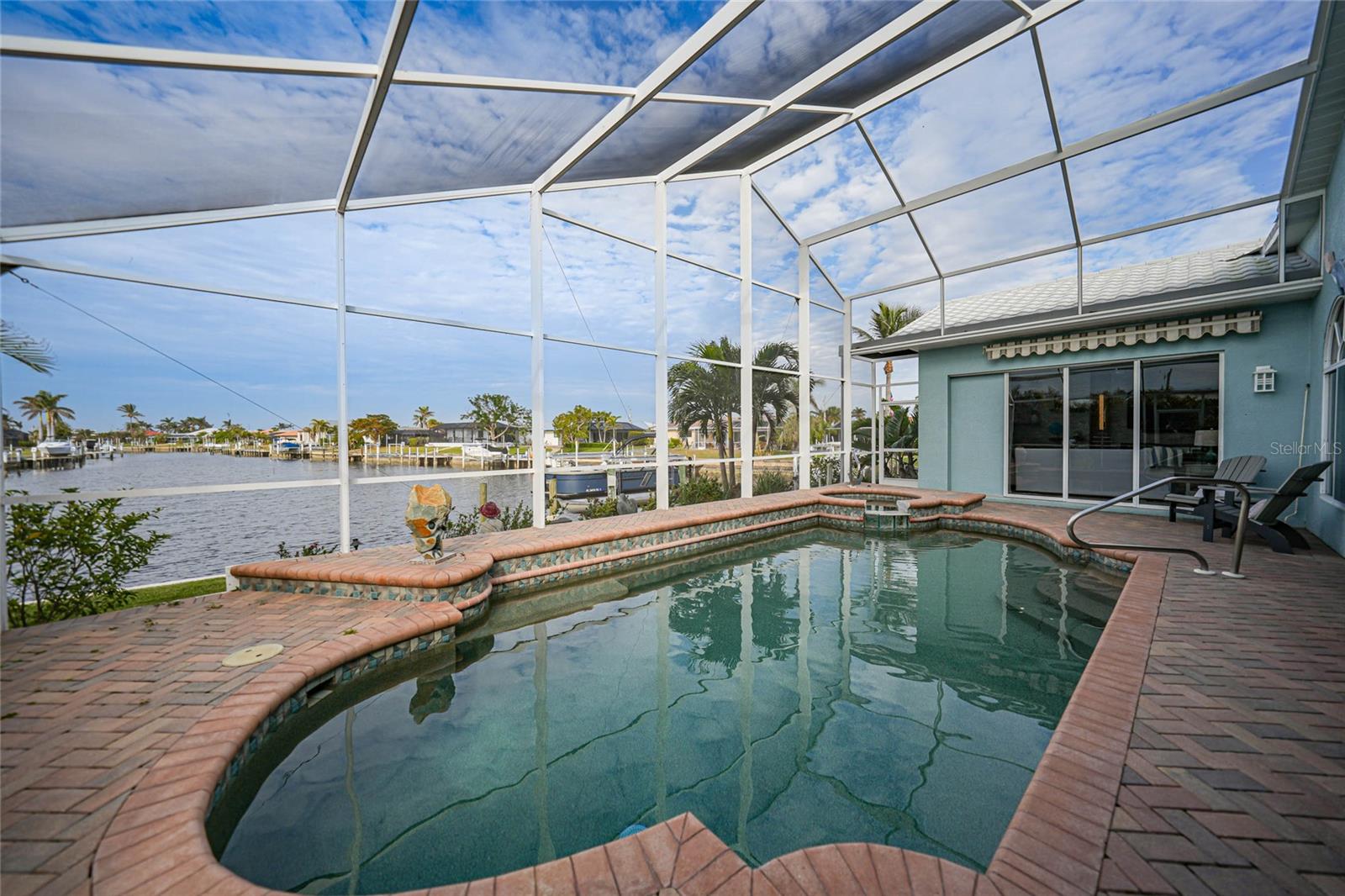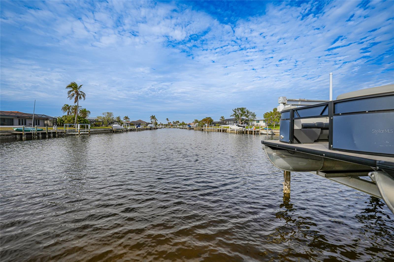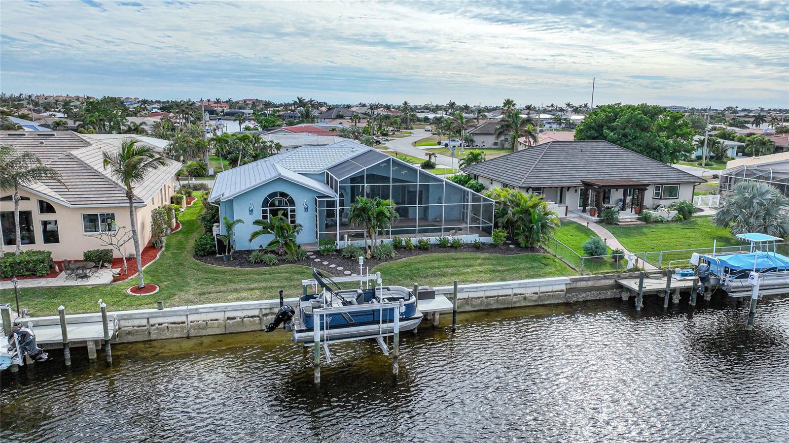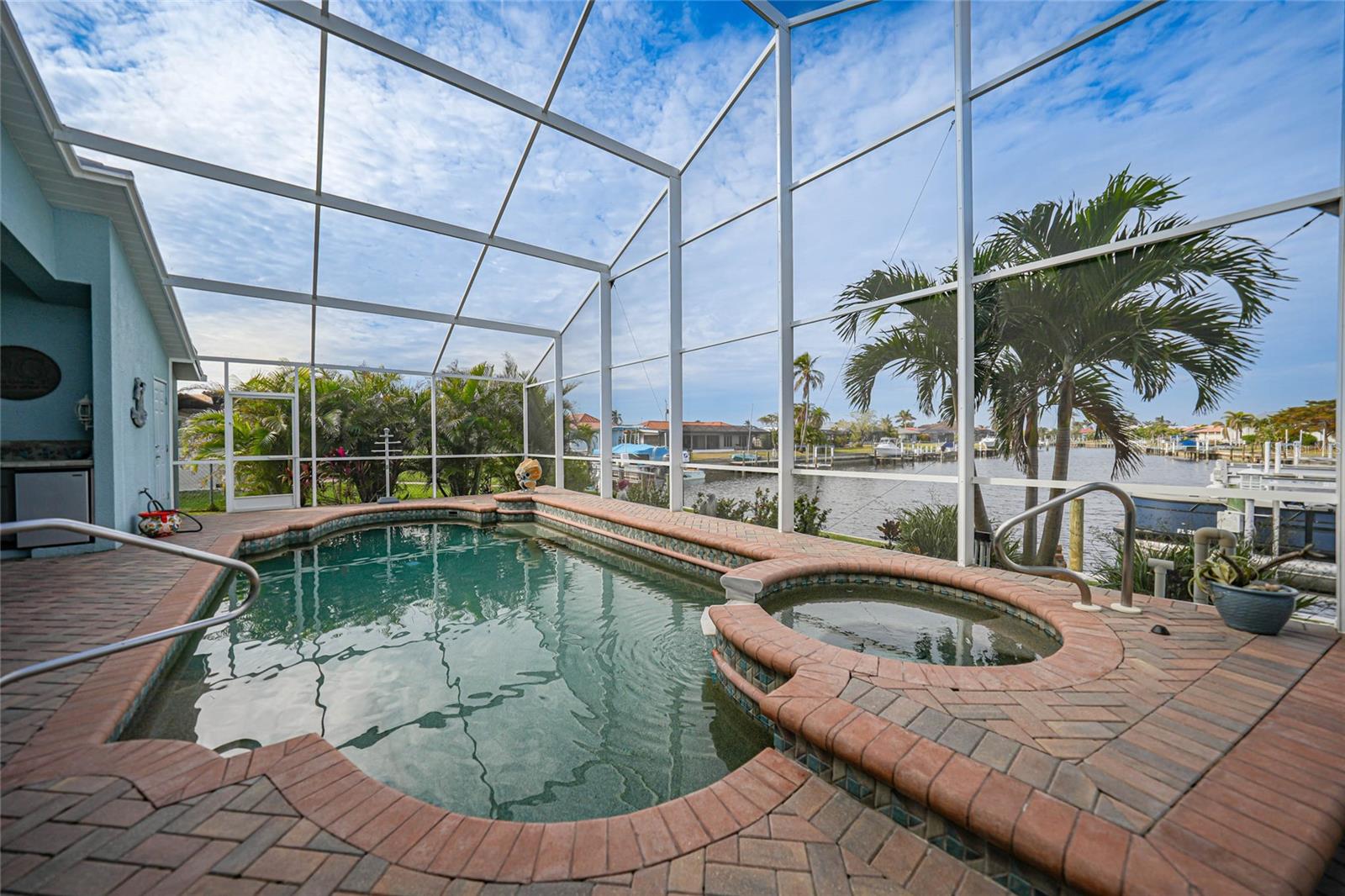 Welcome to your ultimate waterfront retreat in Punta Gorda Isles, where stunning long-water views and just 12-minute powerboat access to Charlotte Harbor and the Gulf of Mexico await! This exquisite 3-bedroom, 3-bath pool home offers 2,367 square feet of luxurious open/split living space. As you step through the living and dining areas, you’ll be immediately struck by the open floor plan, soaring ceilings, and elegant built-in features. Arched entryways and contemporary lighting enhance the home’s stylish ambiance. Disappearing sliders seamlessly connect the interior to the pool and lanai area, creating a perfect flow for indoor-outdoor living. The gourmet kitchen is truly a chef’s paradise, boasting a breakfast bar, stainless steel appliances—including a new dishwasher—a wine cooler, and an abundance of raised-panel cabinetry with elegant crown molding. A spacious pantry provides ample storage, while the kitchen overlooks the inviting casual dining nook with views. From here, continue into the beautifully updated family room, where an electric fireplace serves as a stunning focal point. Luxury vinyl tile flooring throughout the family room and bedrooms adds a modern, sleek touch to the home’s overall appeal. The split floor plan ensures privacy, with the primary suite offering direct access to the lanai through sliding doors and an aquarium window that floods the room with natural light. The spa-inspired master bath is a true sanctuary, featuring custom tile work, dual sinks, a garden tub, and a Roman shower. Two generously sized guest bedrooms, each featuring built-in closets and plantation shutters, share a beautifully appointed bathroom complete with a Roman shower. With all systems replaced within the past 5 years—including HVAC, tankless hot water heater and water filtration system—this home provides peace of mind for its new owner. Step outside to enjoy the new stone-coated metal roof, a spacious covered lanai ideal for outdoor entertaining, a convenient pool bath, a screened and heated pool with new variable speed pump/heater, and an in-ground spa with new motor, all surrounded by updated lush landscaping with updated irrigation. A walkway leads to the new cement dock and 80’ of seawall (maintained by the city) and features a water/electric and a 16,000 lb boat lift for your convenience. M&S full house audio and intercom system, laundry room and 2-car garage complete the package. Situated in a sought-after golf and boating community, this home is just minutes from the Punta Gorda Yacht Club, Fishermen's Village, and historic downtown Punta Gorda. Indulge in world-class fishing, boating, arts, fine dining, and entertainment, or explore the nearby parks and pristine SWFL beaches. This meticulously maintained, single-owner home radiates pride of ownership and offers a lifestyle that’s truly unmatched.