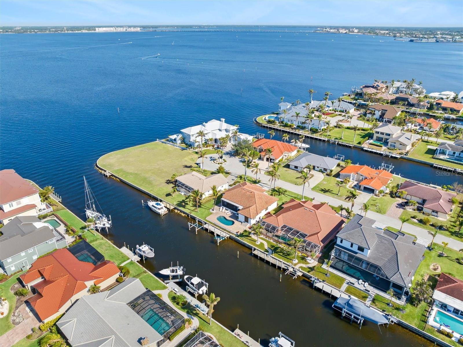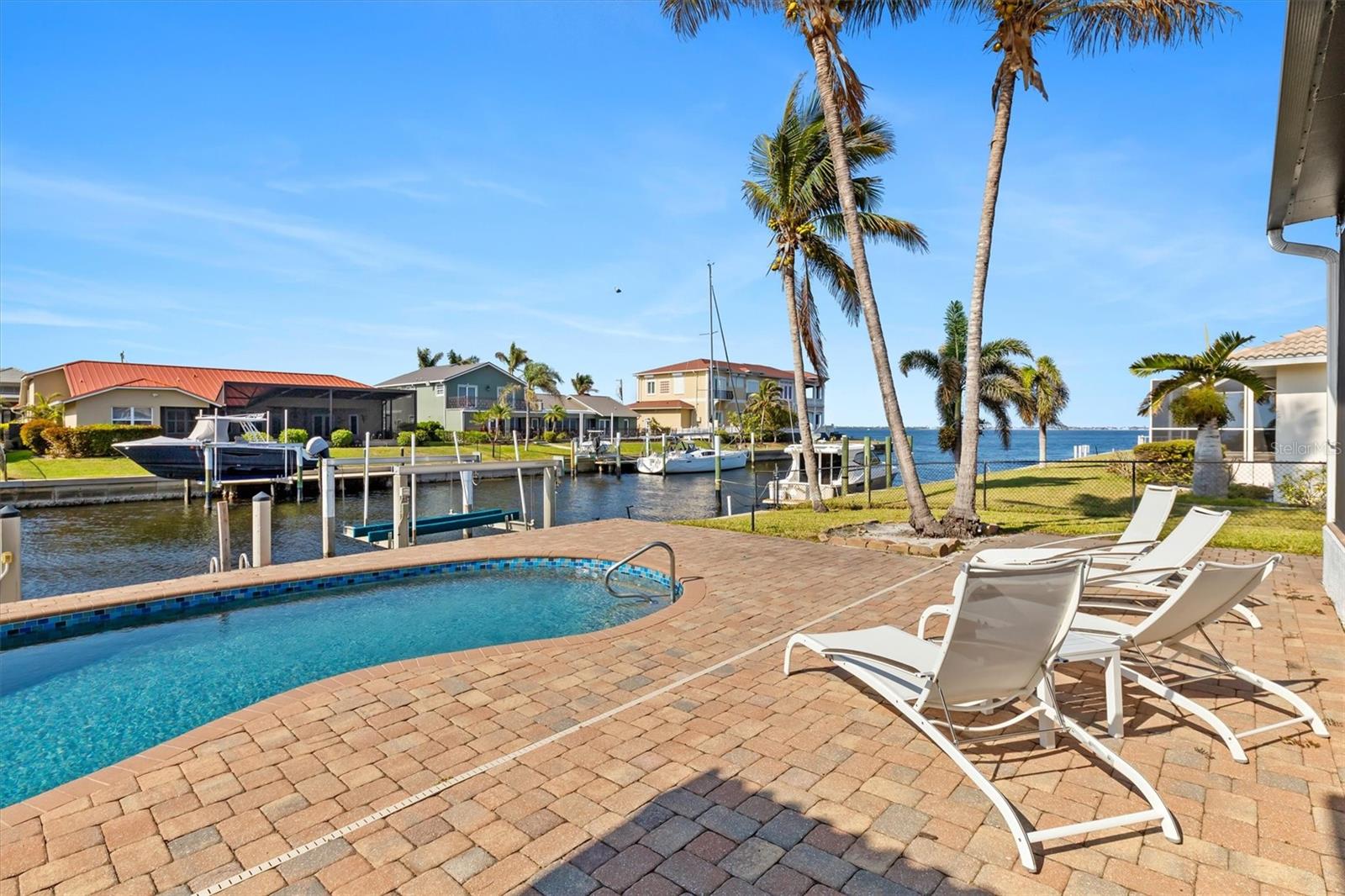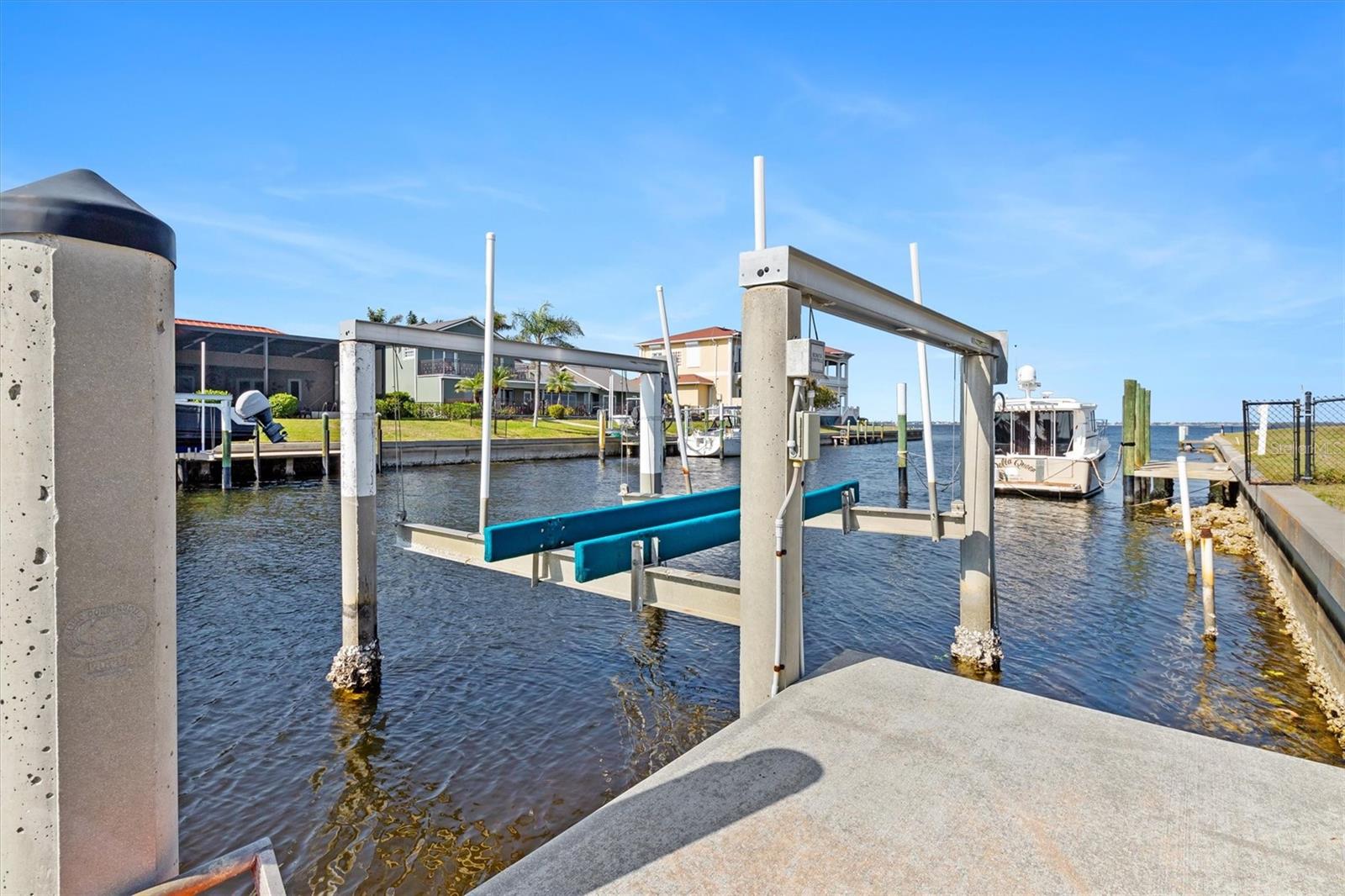 THREE LOTS FROM THE CHARLOTTE HARBOR UNDER $1M! Your Waterfront Paradise Awaits! This stunning custom-built pool home with 4-bedrooms, 3-bathrooms and a 3-car garage redefines luxury waterfront living. Spanning 2,300 sq. ft. with impeccable attention to detail, this home boasts volume and tray ceilings, plant shelves, recessed lighting, and modern upgrades throughout. Enjoy a spacious Master Suite with breathtaking water views, relax in your spa-like ensuite with dual sinks, a garden tub, walk-in shower and a large walk-in closet. The split floor plan offers privacy with guest bedrooms tucked away on the opposite side of the home, offering a serene retreat for family or visitors. One of the bedrooms can easily be used as an office, fitness, crafting, making it the perfect multi-purpose room. Chef’s dream kitchen, includes granite countertops, high-end cabinetry, and stainless steel appliances. The dining area overlooks the sparkling pool and views of the Harbor, setting the perfect ambiance for every meal. Enjoy seamless indoor-outdoor living with zero-corner sliding glass doors that invite the outdoors in, opening to a resort-style lanai with a wet bar and brick paved pool deck. Grandfathered in and truly one-of-a-kind, this expansive pool deck is a rarity in Punta Gorda Isles that simply cannot be replicated. Unwind, relax, and savor breathtaking sunsets from this stunning, oversized outdoor space. This area also has a cabana bathroom and outdoor shower, perfect for Florida’s endless summer days. A few of the exceptional waterfront features include a 32-foot concrete dock with TWO 10,000-lb boat lifts with water & electricity, including 30 AMP shore power. A kayak-friendly ladder makes exploring the waterways a breeze. Just minutes to open water, this is the ultimate location for avid boaters and those who love a resort lifestyle. This home is an entertainer’s dream, offering spectacular sunset views, unbeatable boating access, and a premium location in Punta Gorda Isles. Schedule your showing today and start living the waterfront lifestyle you’ve always dreamed of!