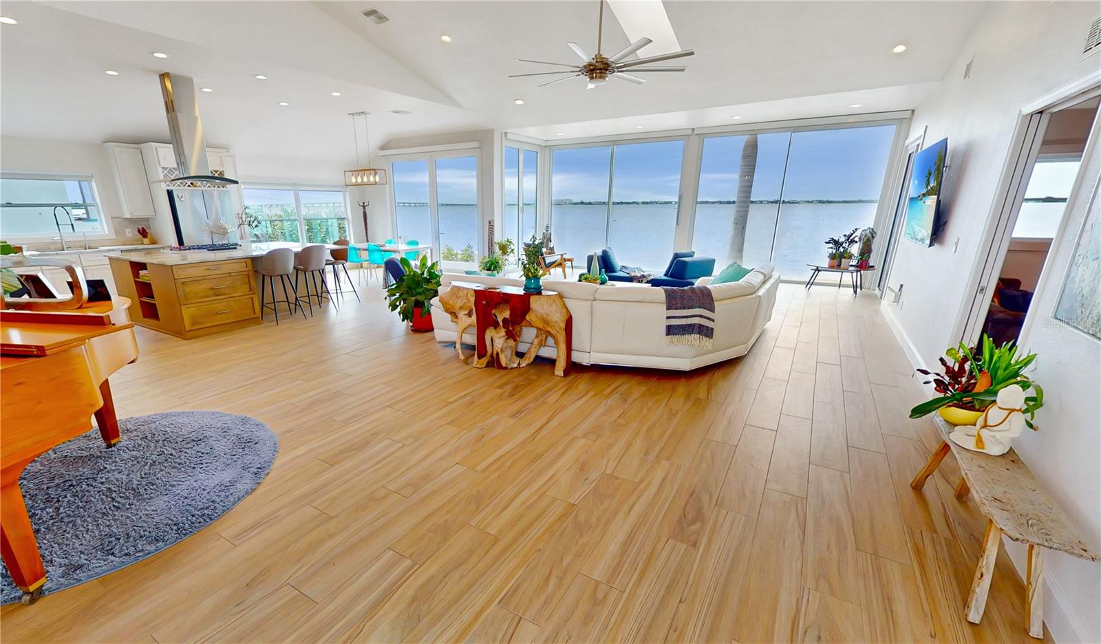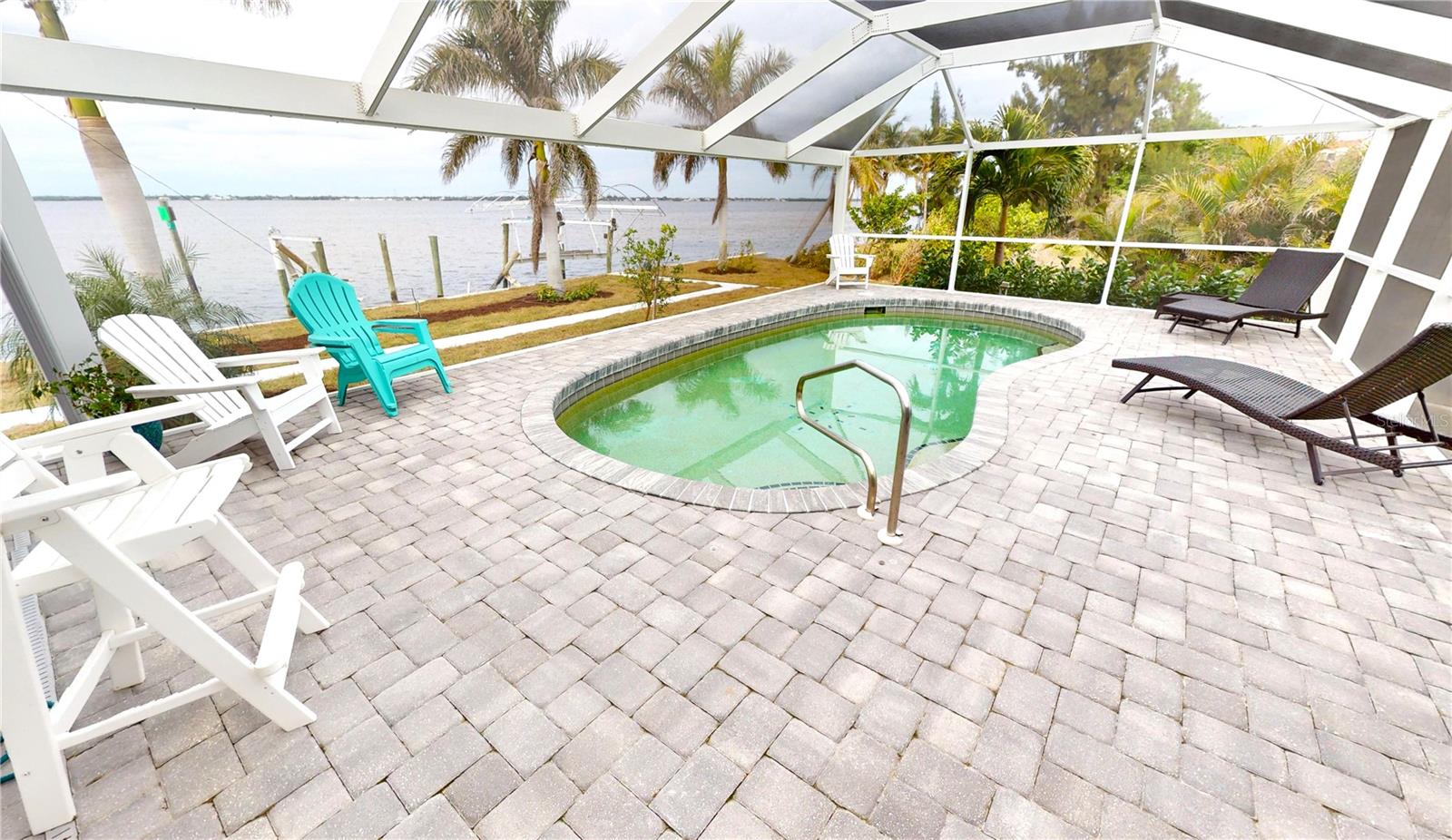 **MAJOR PRICE IMPROVEMENT**PLEASE ENJOY THE 3D INTERACTIVE VIRTUAL TOUR ASSOCIATED WITH THIS LISTING – SPECTACULAR Wide River View! Situated on approximately ~.42 acres, with ~167 feet of concrete seawall along the pristine Peace River, is the location of this ~3,238 square foot saltwater pool home. Built strong in 1998 and completely reimagined in a contemporary coastal look, this one-of-a-kind residence is feature-rich and offers a myriad of quality updates. The wide water views are enjoyed from almost every room, but none more so than the enormous great room and open custom kitchen. These rooms, through their vast custom floor-to-ceiling sliding glass walls, have a distracting view of the waterway. Awash with natural light, the great room has cathedral ceilings and a skylight. The open gourmet kitchen has more than ample hardwood, soft-close cabinetry, and granite counters with a tastefully coordinated backsplash. This chef's dream is equipped with high-end appliances, including a GE Advantium wall oven and a Wolf gas cooktop! Measuring approximately 840 square feet in size, the primary ensuite bedroom, conveniently located away from the main living area for added privacy, is an oasis unto itself. It includes a generously sized office/retreat area with direct access to the screened pool enclosure, two sizable and fully equipped walk-in closets, and a truly alluring bath, which features twin floating vanities, a soaking tub, and a walk-in shower. Perfectly situated to enjoy the remarkable sunsets over the Peace River from this location is the fabulous ~1200 square foot screened pool enclosure, 390 square feet of which is under-roof. Features include a saltwater pool, paver-stone decking, and shower. This space is accessible from the great room, pool bath, one of the two guest rooms, and the primary suite. In addition to the recent major renovation of the kitchen, primary bath, and laundry room, a few of the numerous features include, but are not limited to, a new dockage system with water and electrical services, a mix of ceramic and porcelain flooring throughout, freshly painted inside and out, many smart-home features (including lighting) and great room automated rolldown blinds system. The home enjoys impact windows and doors throughout, a $75,000 landscape investment, and a recently re-certified metal roof. A full list of recent improvements and updates is available. From this home, you are less than 2 miles from historic downtown Punta Gorda and Interstate 75 and under 3 miles from shopping. This beautiful home is available to be viewed now by clicking on the attached 3D virtual walk-through tour associated with this listing.