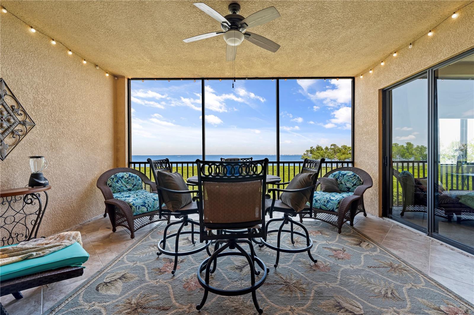 PRICE IMPROVEMENT! Experience Penthouse-Style Luxury Living at Vivante in Punta Gorda Isles. This exquisitely FURNISHED condominium offers breathtaking views of Charlotte Harbor, redefining everyday living with an extraordinary touch of elegance. Nestled within the esteemed gated community of Vivante in Punta Gorda Isles, this residence epitomizes RESORT-STYLE LUXURY. From the moment you arrive, convenience and sophistication await. Park in your reserved, under-building space and step directly into your PRIVATE ELEVATOR, secured with exclusive key-fob access for owners. As the elevator opens to your residence, you’ll be greeted by an open-concept floor plan spanning 2,338 square feet, designed to showcase PANORAMIC HARBOR VIEWS, abundant natural light, soaring ceilings, and stately 8-foot doors. The expansive kitchen, complete with a central island, flows seamlessly into the dining area and spacious family room. Sliding glass doors open to a harbor-front screened lanai, where you can unwind and savor mesmerizing sunsets. This stunning condo features three bedrooms and three bathrooms, each designed for comfort and privacy. The master suite, with direct lanai access, offers serene waterfront views, dual walk-in closets, and an en suite bathroom featuring a garden tub, walk-in shower, dual vanities, and a private water closet. Two additional bedrooms, including one with its own en suite bathroom, are situated on the opposite side of the residence, ensuring guest privacy. Additional conveniences include a dedicated laundry room and a rear stair access door. From your lanai, delight in hours of boat-watching, observe captivating marine life, and soak in the vibrant colors of harbor sunsets. AMPLE STORAGE is available within the unit, complemented by additional secure storage in the parking garage. Vivante offers an unparalleled lifestyle, boasting a wealth of world-class amenities. Relax by the vanishing-edge lakefront lagoon pool or stay active with the heated 25-meter lap pool. Host gatherings at the poolside cabana or rejuvenate at the state-of-the-art fitness center, complete with an aerobics studio, full-service spa, sauna, and steam rooms. Enjoy leisure and entertainment in the media room, game room, billiard club room, cyber lounge, and library. Tennis enthusiasts will appreciate the six Har-Tru clay courts, illuminated for evening play, along with a dedicated tennis lounge. Conveniently located, Vivante is minutes from St. Andrews South Golf Course, The Isles Yacht Club, and a variety of beaches. Quick access to US-41 and I-75 ensures seamless travel to three regional airports, including Punta Gorda Airport. Immerse yourself in the charm of downtown Punta Gorda, with its waterfront dining, Harbor Walk, parks, vibrant farmers markets, bike trails, and year-round events. Discover a lifestyle of coastal sophistication and refined luxury at Vivante – where the best of Florida living awaits!