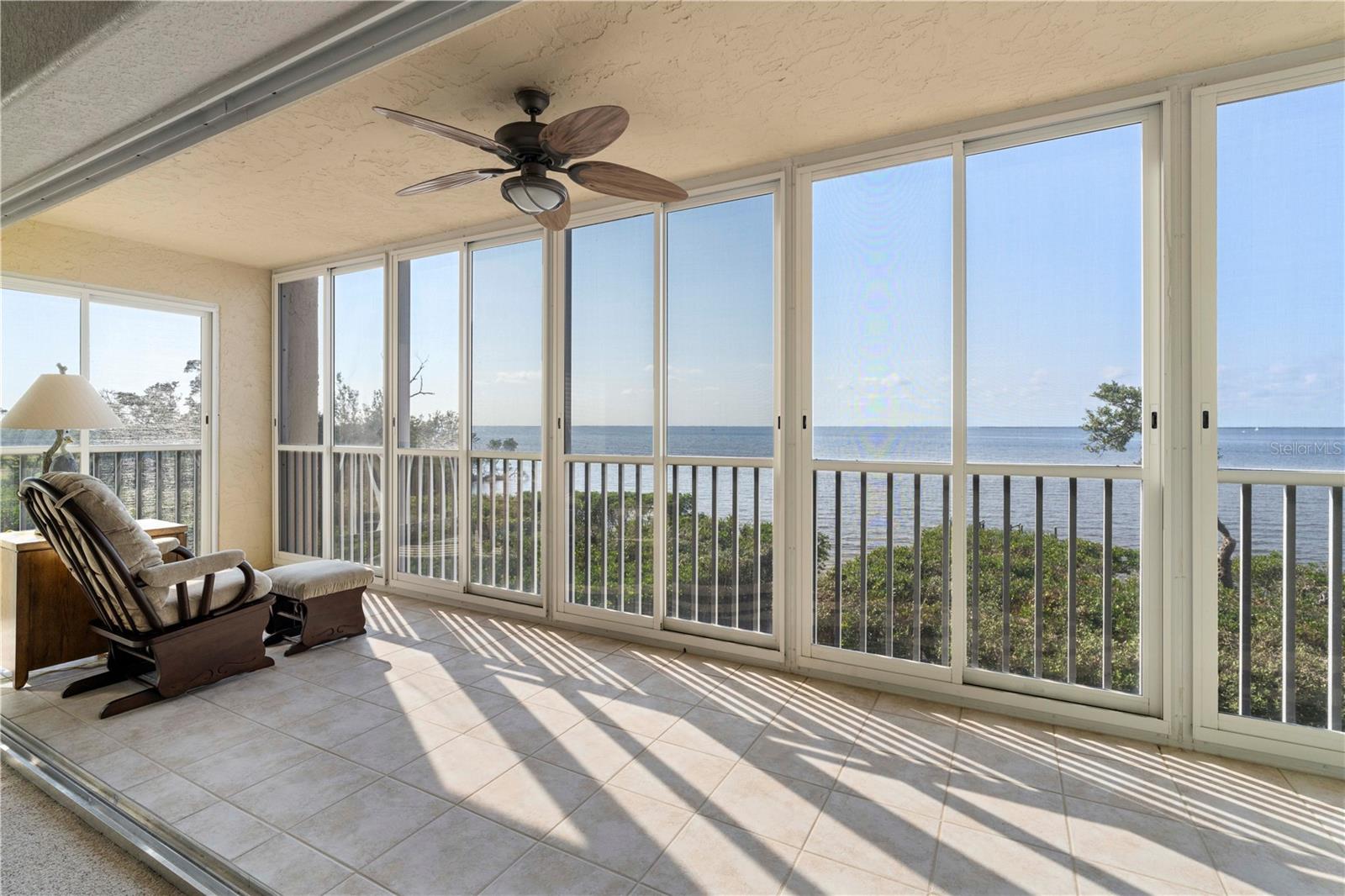COME FOR THE VIEW, STAY FOR THE COMMUNITY! Welcome to Points West, where exceptional waterfront living offers breathtaking views of Charlotte Harbor & the native Florida wildlife that is drawn to the water. This stunning 3 Bed/2 Bath, END UNIT CONDO offers nearly 1,600 square feet of beautifully designed living space with an open floor plan and an enclosed, tiled balcony that seamlessly extends your living area. From the moment you step through the screened entry into the inviting foyer, you’re greeted by mesmerizing harbor views that set the tone for this remarkable property. With a western rear exposure, you’ll enjoy vibrant Florida sunsets from nearly every room, providing the perfect backdrop for daily living or entertaining guests. The open concept floor plan includes a corner kitchen that opens to the living room & adjacent dining area. The kitchen features a curved island w/breakfast bar, stainless steel appliances, granite counters, wood cabinetry plus a closet pantry. Enclosed lanai/balcony has glass sliding door enclosure that allow year-round, climate-controlled enjoyment of this outdoor living space. Sit out here & watch as boats meander by, dolphins play & the eagles, egrets, hawks, osprey & pelicans fly by. NEW CARPET throughout. The spacious master suite also boasts a fabulous view, featuring walk-out access to the balcony, a custom oversized walk-in closet with built-ins, and a spa-inspired master bath with dual sinks and a beautifully tiled shower. Two generously sized guest rooms share a stylish guest bath, making this home ideal for hosting friends and family. A convenient interior laundry room with a full-sized washer and dryer offers extra storage space. Unit comes with one private, under-building garage (Unit C) that features an elevated storage loft & tile flooring. Other updates include motorized window treatments in dining area & master bedroom, plantation shutters in guest bedrooms, whole-condo surge protector, EZ water conditioning system, modern ceiling fans in every room, NEW hot water heater (2023), NEW dishwasher (2024), NEW microwave (2022), NEW refrigerator (2021). The community features a clubhouse, heated swimming pool, private tennis/pickleball court & kayak launch w/adjacent kayak storage racks. Launch your kayak directly into the harbor from in back of the property. FANTASTIC LOCATION means this condo is just moments from the Isles Yacht Club, historic downtown Punta Gorda, and numerous local parks. Whether walking, biking, or driving, you’ll find yourself close to shopping, dining, and entertainment. Discover why Punta Gorda is often considered among the best places to live, work, and retire in SW Florida.