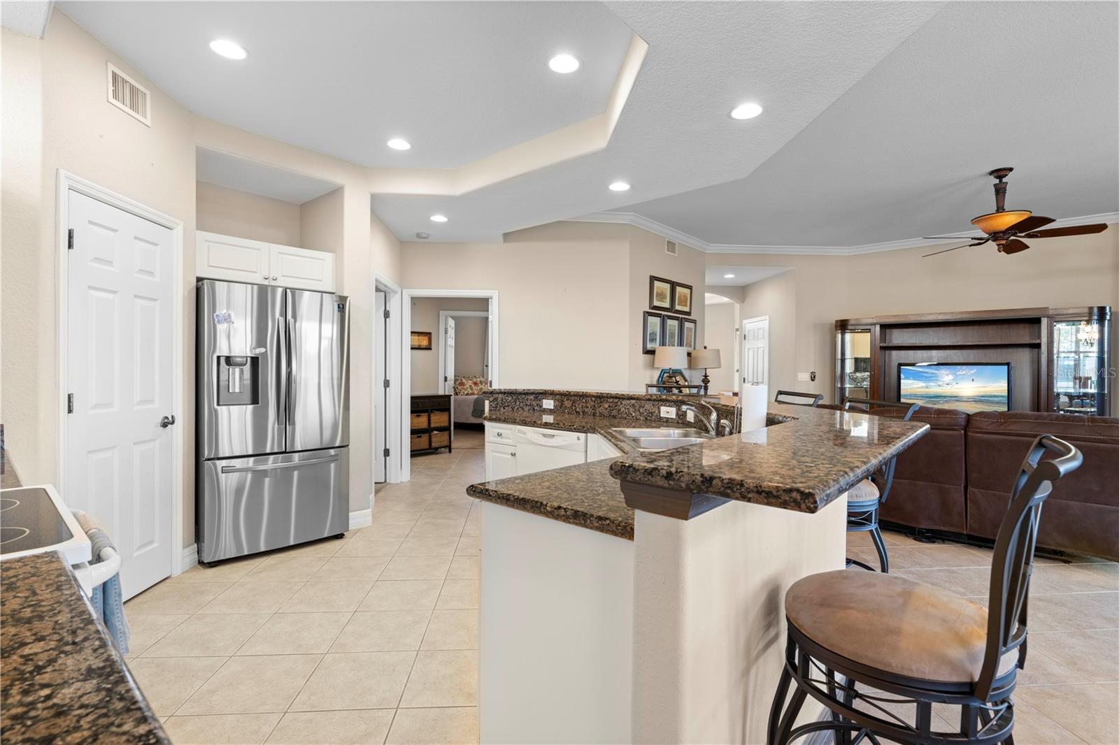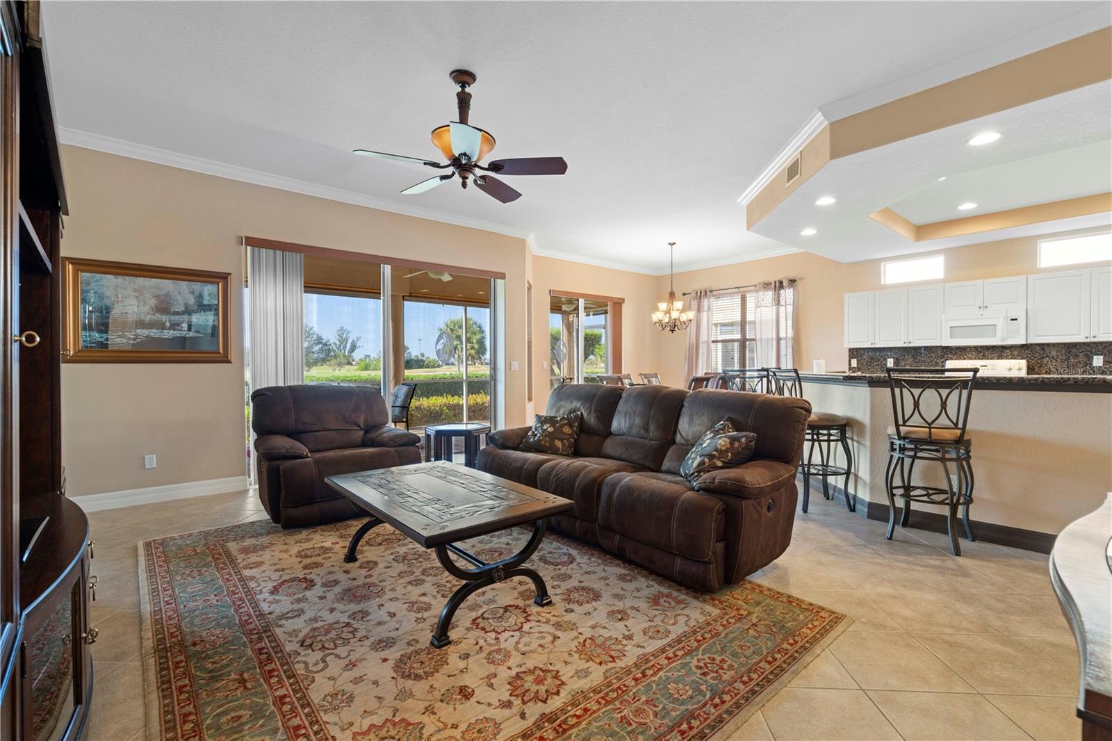 BURNT STORE ISLES CONDO W/GOLF COURSE VIEW! Check out this luxury, 3 bed/2 bath condo w/private 2-car garage & views of the 8th fairway of Twin Isles Golf Course. The unit boasts an open floor plan w/great room, formal dining area & gourmet kitchen. Lots of architectural details including tile floors throughout the main living area, high ceilings w/crown molding, disappearing sliding glass doors plus a large laundry room/mud room. Great room opens to lanai extending the living space outside. The lanai overlooks the 8th fairway as well as a large golf course lake. Enjoy watching as golfers pass behind the condo throughout the day. Gourmet kitchen features granite counters, raised panel cabinetry, corner walk-in pantry & wraparound breakfast bar. The master suite has golf-course views plus a spa-like master bath w/dual sinks, private WC, glass/tile walk-in shower & oversized walk-in closet. Split bedroom design features large guest rooms. One guest room features a large, walk-in closet. Laundry room has full-sized washer & dryer plus it doubles as a mud room w/access to the garage. Attached two-car garage has built-in storage room at rear of garage for even more storage. Membership at Twin Isles Country Club is optional & provides access to the championship 18-hole golf course in the backyard, clubhouse restaurant & lounge, a large swimming pool & several tennis courts. TICC also hosts several social groups, tennis leagues & happy hours. Make quick work of your errands given the condo's prime location near Burnt Store Marketplace - you can even walk to Publix, Home Depot & several restaurants. Condo has been meticulously-maintained & is in move-in condition. Make an appointment today.