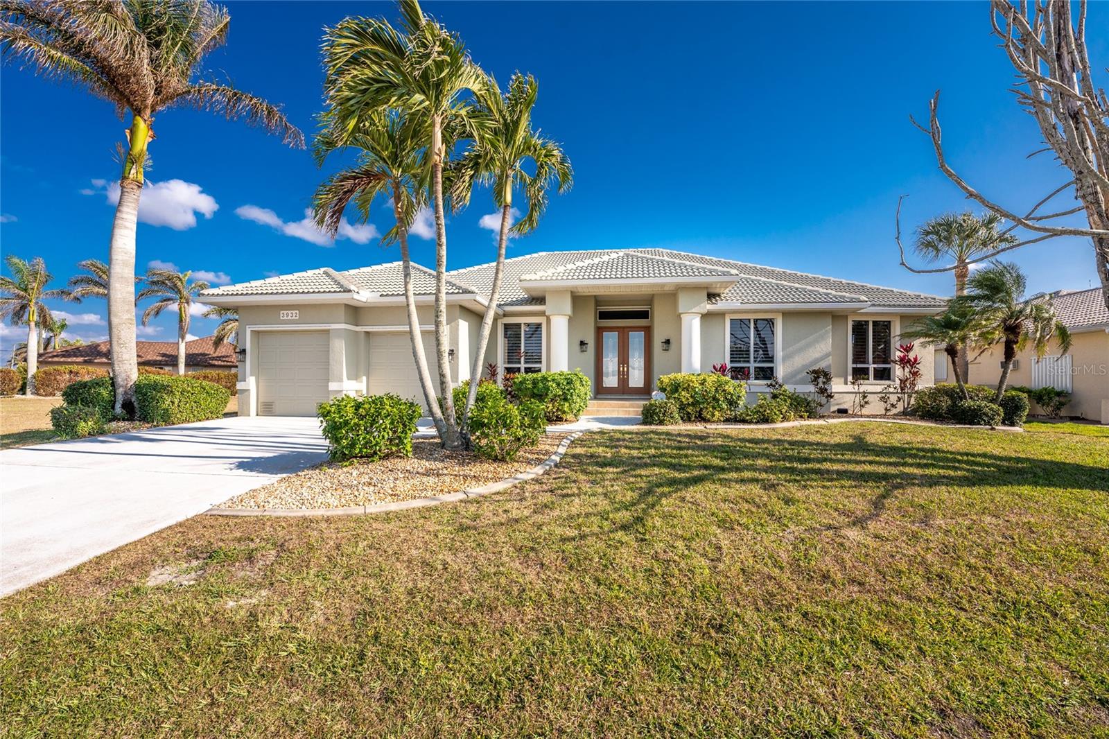 EXCELLENT VIEW! This WELL APPOINTED, CUSTOM home built by Tim Towles sits on a wide canal basin offering fantastic water views. The greatroom floor plan provides wide open spaces and wonderful traffic flow, perfect for entertaining. PRICE ADJUSTMENT + JUST REFRESHED WITH NEW FLOORING IN THE DINING ROOM, BEDROOMS AND OFFICE. KITCHEN WALLPAPER BOARDER REMOVED! READY FOR NEW OWNERS TO LOVE IT. The kitchen is light and bright with white cabinets, Corian countertops and lots of work and storage space. Plus a walk-in pantry and plenty of storage in the adjacent laundry room which includes a wine cooler. Sliding doors open to your outdoor living space complete with pool with waterfall feature, spa and an outdoor shower. You'll find plenty of seating space for sun lovers or shade seekers with this desirable SE rear exposure. There is access to a full bath from the lanai area (this bath also connects to the 3rd bedroom). There are 2 generously sized guest rooms with a full bath between them, and a 13 x 11 office with a closet and double doors. The south wing of the house is the very spacious primary suite with 2 walk-in closets with custom finishes, a double vanity bath, step-in shower and a soaking tub. Sliding doors from the primary suite open to the lanai and pool. Outside amenities include mature tropical landscaping, a fenced backyard, 52 ft concrete dock and a 16k boat lift.