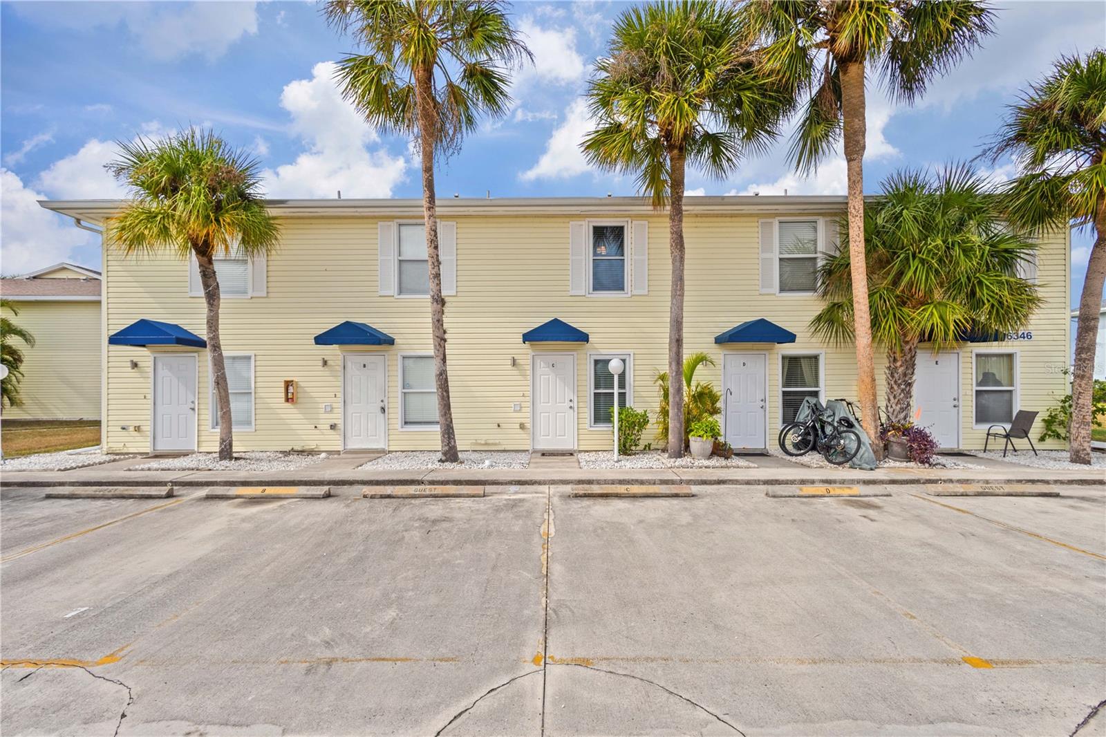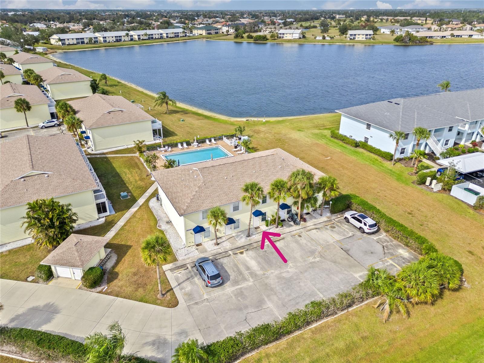 NOT a CONDO!! ***Sellers are offering $5000 assistance towards Buyers Closing Costs!!***TREMENDOUS PRICE ADJUSTMENT on a CONCRETE BLOCK townhome(Not a CONDO!...ask me why the difference matters) NOT IN THE FLOODZONE!!! When Opportunity Knocks, You Answer The Door!! Lake Rio Townhomes, one of Deep Creek's waterfront communities, has a rare opportunity for you! This is the ONLY building in the community built completely NEW in 2006 after the original building was damaged during Hurricane Charley, and the ONLY building that is CONCRETE BLOCK CONSTRUCTION. This is also one of the only buildings NOT IN THE FLOOD ZONE!! New ROOF 10/21, AC 2/23, HWT 9/17, HURRICANE IMPACT WINDOWS, newer faucets, sinks, countertops, tiled backsplash, and soft close doors on kitchen cabinets are just a few of the updates on this meticulously maintained, neat as a pin unit. Another added perk is the En-Suite Bathroom in BOTH bedrooms, and a 1/2 bath on the first floor. In the morning, enjoy your coffee out on the extended, enclosed, screened lanai just steps from the heated community pool, which was resurfaced in November 2022. During the day, take in the "hands down" best view (in building 9) of Lake Rio from the freshly painted balcony with composite decking. And the BONUS will be the SPECTACULAR Florida sunsets you'll witness each evening, as the back of this unit faces West. This community offers some of the lowest HOA dues in the area, and is very popular with Snowbirds and Year-round residents alike. One assigned parking spot in front of the unit, with offset parking for guests and family. Newer Build, Concrete Block Construction, NOT in the Flood Zone, Plenty of Upgrades, NOT a CONDO, Low HOA, Near the Pool, Beautiful Lake Views...and the BONUS of Gorgeous Sunsets!!! What else is there??!!....$5K towards closing costs!! Book your showing to see for yourself!!