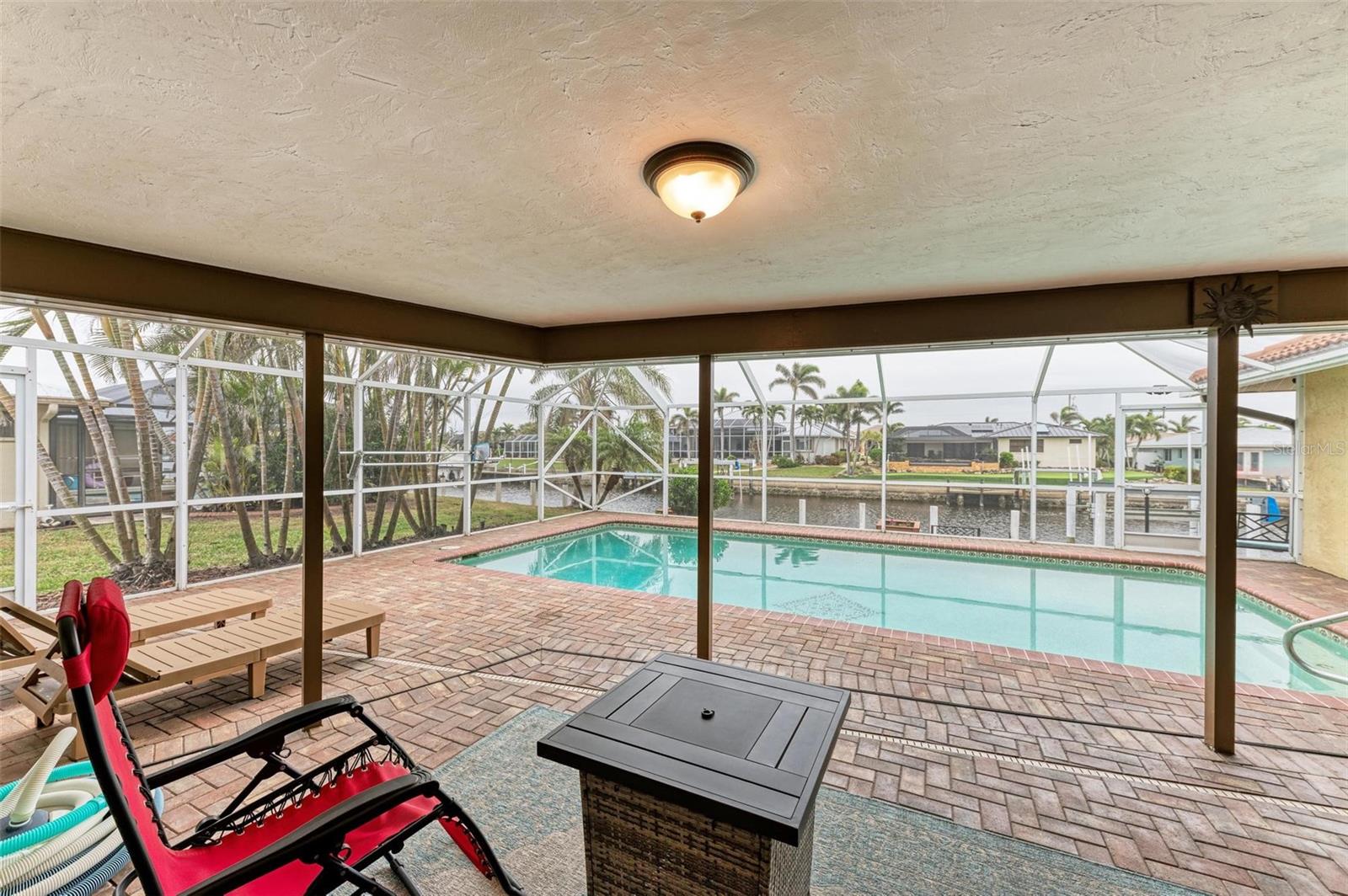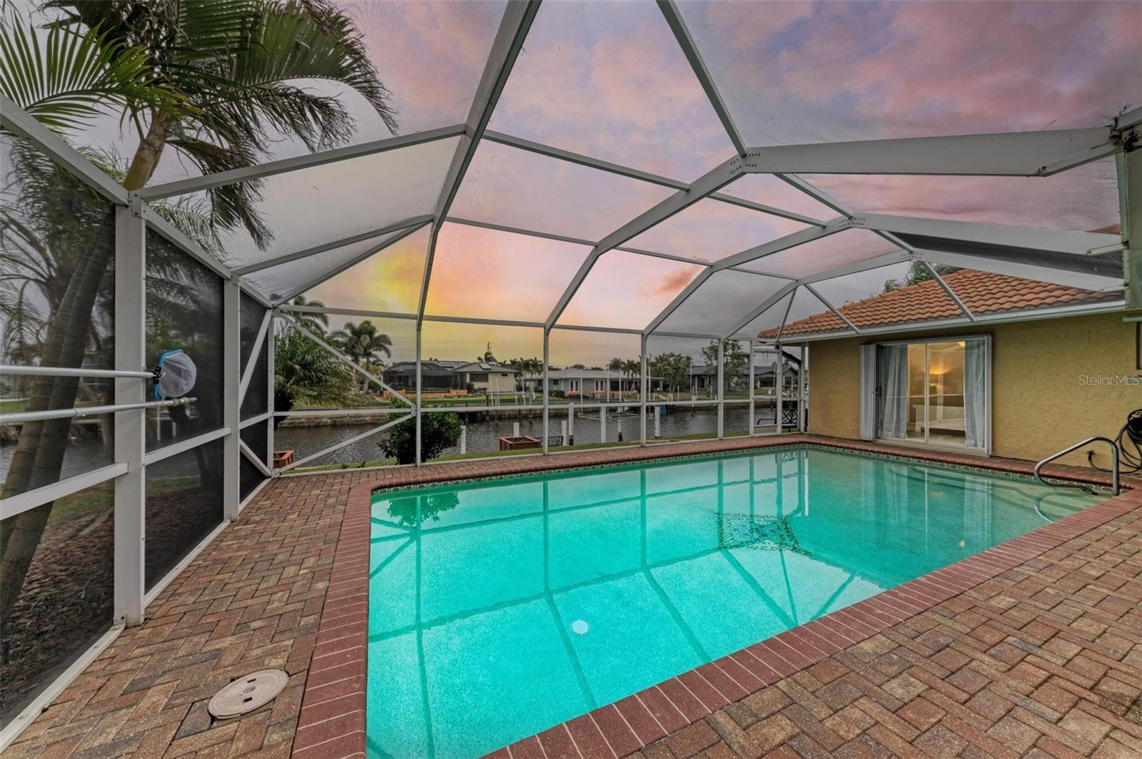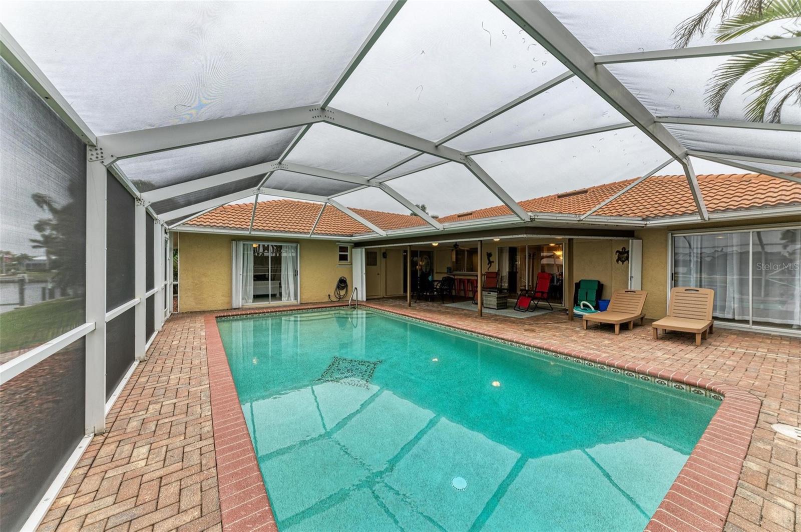 Welcome to your WATERFRONT paradise in Punta Gorda, FL! Pull up to your new home on a circular driveway with plenty of parking and a generously sized garage! This stunning home offers the ultimate Florida lifestyle with a 12,000 BOAT LIFT WITH DOCK IN YOUR BACKYARD, perfect for those who love to spend days out on the water. Home had no flooding at all during any storms. Reach Charlotte Harbor in 15 minutes and boat to Fishermen's Village Waterfront Mall for lunch! Your luxurious OVERSIZED HEATED POOL with a new pool pump is ideal for soaking up the sunshine and relaxing by the water's edge. NEW OWNER'S CAN ENJOY PEACE OF MIND WITH A BRAND NEW TILE ROOF & FULL HURRICANE PROTECTION! Inside you will find a spacious layout with the gourmet kitchen at the heart of the home featuring a built in oven, glass cooktop, island, stainless appliances and ample GRANITE COUNTERTOP and cabinet space! The split floor plan allows for privacy and space, while the master suite boasts a huge walk-in closet that will thrill any fashion enthusiast. There is an ensuite bathroom that if fully updated with his & hers sinks and tile shower. You also have private access to your lanai through glass sliding doors. The guest rooms are also oversized with large built in closets and the primary guest room offers private access to the lanai. The guest bathroom doubles as a pool bath. Additional features include: WHOLE HOME REVERSE OSMOSIS SYSTEM, GENERATOR PLUG IN GARAGE, STORAGE SHELVES IN GARAGE, NEWER A/C SYSTEM WITH WARRANTY and so much more! SUPER CLEAN AND MOVE IN READY! With so many impressive features, this home truly has it all- don't miss out on this incredible opportunity to live in coastal luxury in Punta Gorda! BE SURE TO CLICK THE FULL VIRTUAL TOUR LINKS FOR DETAILS!