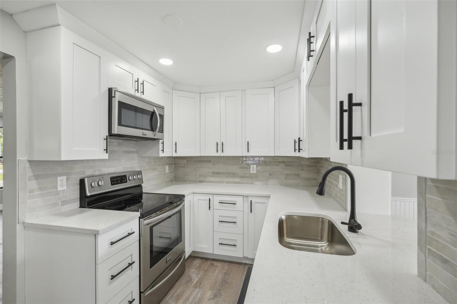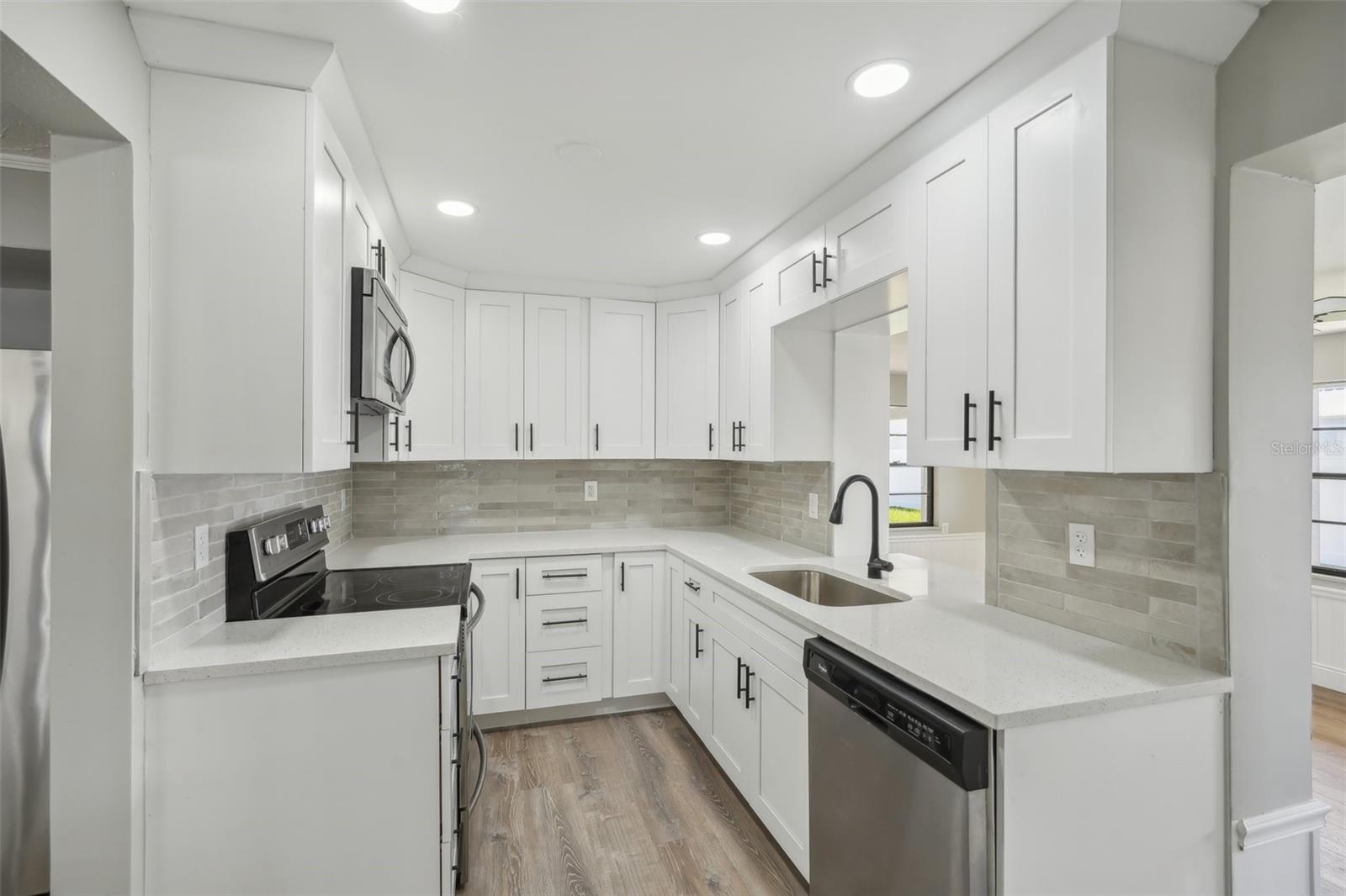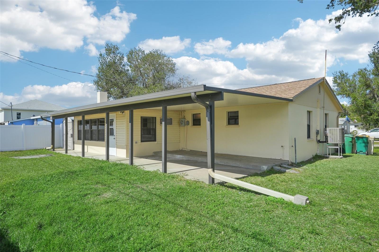 ASK YOUR LENDER!! Even if you take a mortgage AND add flood insurance, you’ll STILL be paying LESS than if you were renting. There is a flood insurance quote attached. This renovated home is really cute! Three bedrooms (one with private entrance), large living room and separate family room with fireplace. New roof (2023). New HVAC that is elevated off the ground, quartz and soft close cabinets in the kitchen, comfort height toilets and new cabinets in baths, water resistant vinyl plank tile, NO carpet! Attached carport, and a huge circular drive for guest parking, or maybe an RV. NO HOA! Public water and septic. Brand new vinyl stockade fence on three sides, and peaceful neighborhood with long term neighbors. Near parks, shopping, restaurants, the Punta Gorda Airport, and the new Sunseeker resort. Great value for the right person!