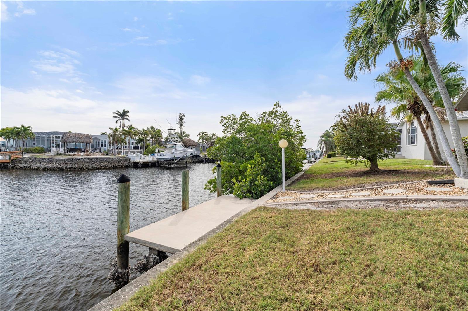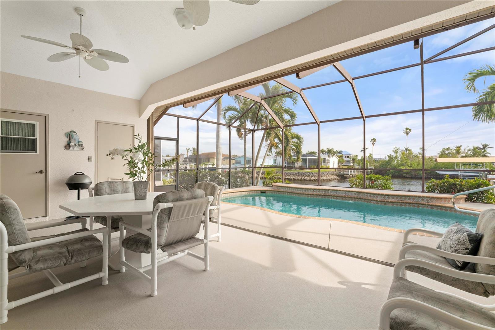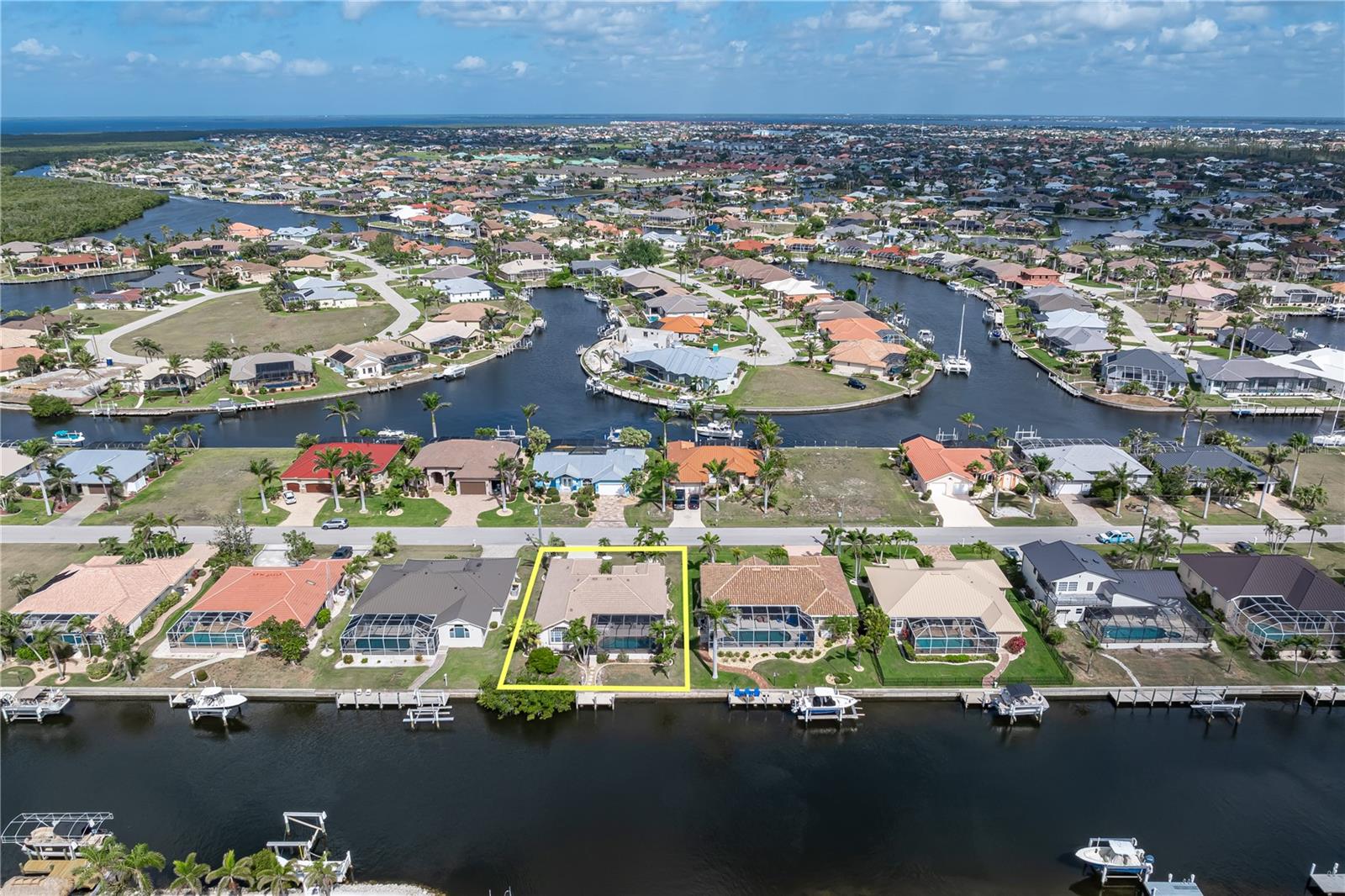 PGI WATERFRONT HOME W/NEARLY INSTANT SAILBOAT ACCESS TO OPEN WATER!! **NEW ROOF & HIGH EFFICIENCY AC W/10 YEAR PARTS & LABOR WARRANTY, INSTALLED FEBRUARY 2025! **EXTERIOR OF HOUSE JUST PAINTED**Reach open water in mere minutes via Buckley’s Pass. HIGH & DRY ELEVATION has protected this home from any flooding! This spacious 3 bed/2.5 bath SAILBOAT WATERFRONT home is ideal for the avid boating enthusiast- located on a wide turning basin. Start experiencing some of the best boating in SW Florida in minutes from your backyard or enjoy the fantastic fishing accessible from your private dock, just steps from your back door. The seawall/canal dredging are maintained by the city! Inside the home boasts an open floor plan w/over 2,000 sq ft. of living space featuring a formal LR, DR, central kitchen w/adjacent breakfast nook & separate FR. The kitchen genuinely is the heart of this home – opening to the LR, DR, breakfast nook & FR – creating the ideal layout for entertaining. The kitchen has an extensive breakfast bar, ample cabinet & counter space & large pantry closet. Mitered window in the breakfast area offers unobstructed views of both the pool & waterway beyond; a perfect location to enjoy your morning coffee! Architectural details include soaring cathedral ceilings, NEW wood-look luxury vinyl plank flooring in the FR & all bedrooms, plus TONS OF NATURAL LIGHT thanks to expansive windows w/walls of sliding glass doors that open to the pool w/serene canal views. The FR has a built-in shelving system w/ample space for TV & your favorite ornamental items. The master suite presents a walk-out entry to the lanai, two oversized walk-in closets & large en-suite bath. The master bath features dual sinks, jetted corner tub, walk-in shower, linen closet & private WC. The split-bedroom layout offers privacy as it features the master BDRM on one side, with large guest rooms & shared guest bath on the opposite side of home. The interior laundry room has additional storage cabinets & doubles as a mudroom w/direct access to the garage/kitchen. The opened 8 ft. sliding glass doors in the master suite, LR & FR, extend your living space so you experience true Florida-style, indoor/outdoor living. Oversized, covered area of the lanai overlooks the in-ground pool (resurfaced in 2021) while the pool’s waterfall feature creates a tranquil atmosphere. Half bath on the lanai is perfect for pool goers, keeping the inside of your home dry while the outdoor lanai shower allows you to tidy up after a day spent on the boat. And, the lanai storage closet is ideal for tucking away pool/boat supplies. The SE rear exposure of the home offers magnificent sunrises behind the home. Other amenities include an attached two-car garage, hurricane protection & well-maintained tropical landscaping. TONS OF UPGRADES/UPDATES include NEW roof (2023,) NEW exterior house painting (2025), NEW water heater (2022), NEW window treatments (2024), NEW garage door opener (2024), NEW kitchen appliances – dishwasher (2024), refrigerator (2021), plus washer (2024) & dryer (2023). NEW faucets in bathrooms (2024), NEW guest bathtub (2024), NEW toilets (2024), NEW digital pool timer (2024), NEW LVP flooring (2024) & NEW no-see-um Super Screen (2023). NO HOA FEES! Direct flights into PG airport. Home is in MOVE-IN CONDITION w/so many updates & upgrades already done for you. Make an appointment today!