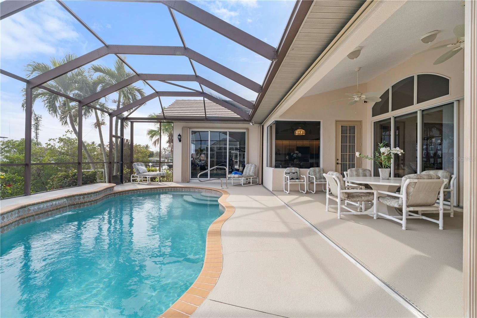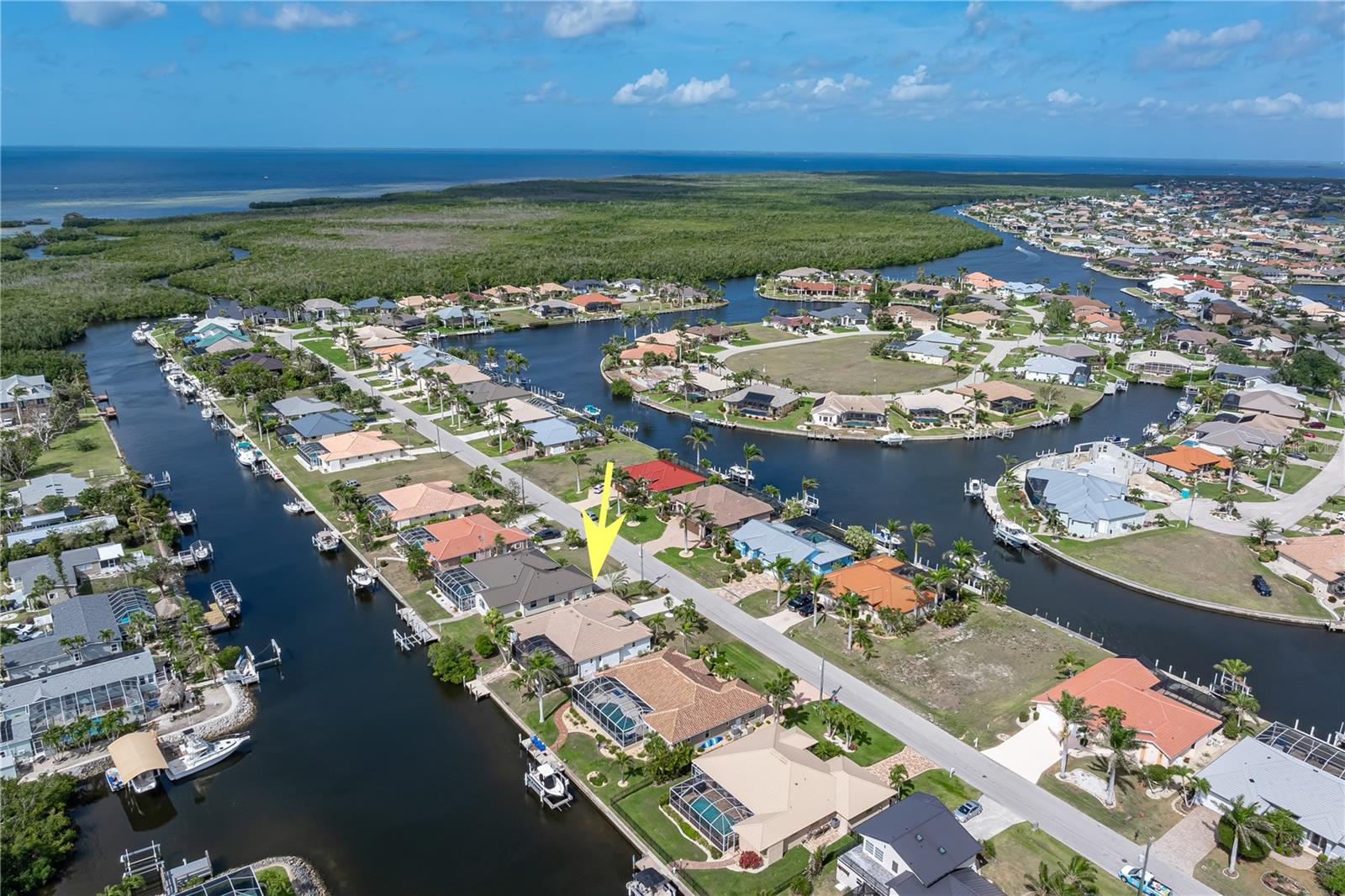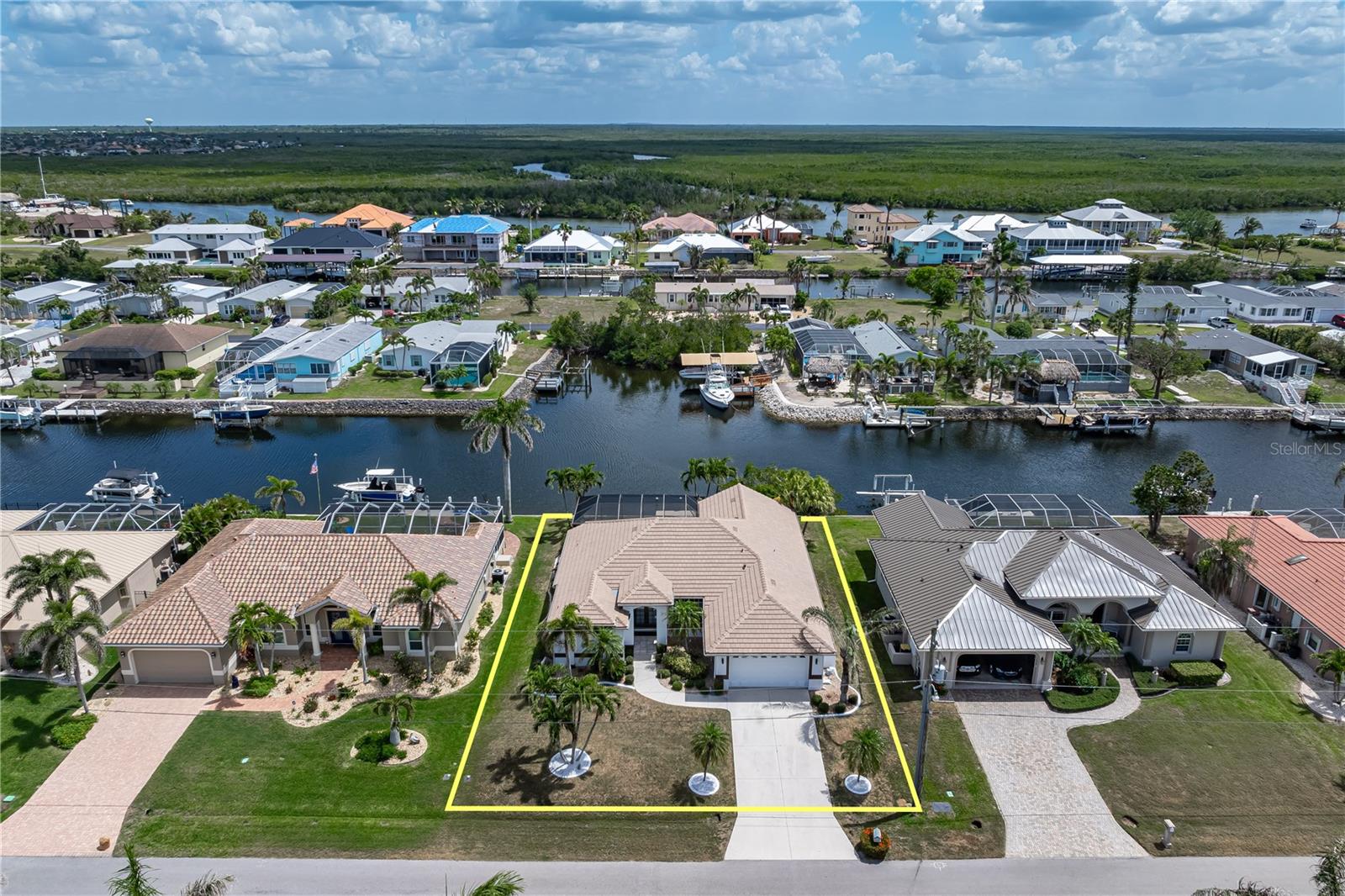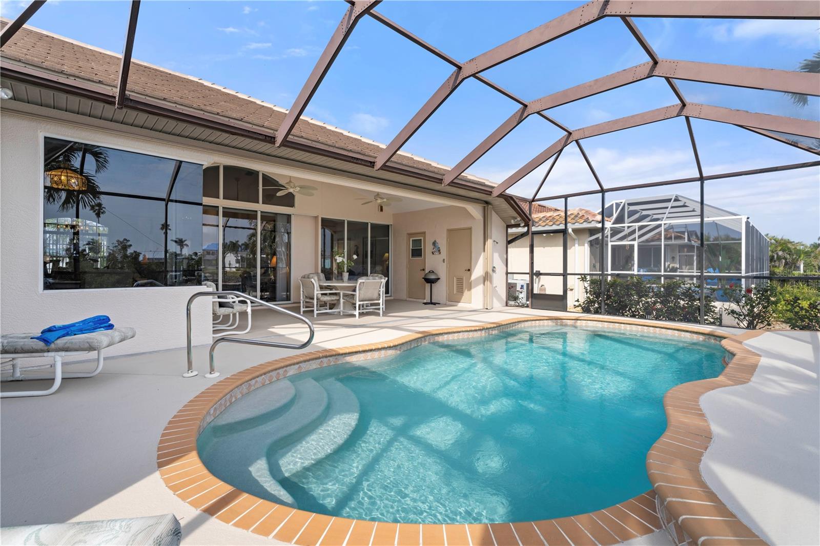 PGI WATERFRONT HOME W/NEARLY INSTANT SAILBOAT ACCESS TO OPEN WATER!! **NEW ROOF & HIGH EFFICIENCY AC W/10 YEAR PARTS & LABOR WARRANTY, INSTALLED FEBRUARY 2025! **EXTERIOR OF HOUSE JUST PAINTED**Reach open water in mere minutes via Buckley’s Pass. HIGH & DRY ELEVATION has protected this home from any flooding! This spacious 3 bed/2.5 bath SAILBOAT WATERFRONT home is ideal for the avid boating enthusiast- located on a wide turning basin. Start experiencing some of the best boating in SW Florida in minutes from your backyard or enjoy the fantastic fishing accessible from your private dock, just steps from your back door. The seawall/canal dredging are maintained by the city! Inside the home boasts an open floor plan w/over 2,000 sq ft. of living space featuring a formal LR, DR, central kitchen w/adjacent breakfast nook & separate FR. The kitchen genuinely is the heart of this home – opening to the LR, DR, breakfast nook & FR – creating the ideal layout for entertaining. The kitchen has an extensive breakfast bar, ample cabinet & counter space & large pantry closet. Mitered window in the breakfast area offers unobstructed views of both the pool & waterway beyond; a perfect location to enjoy your morning coffee! Architectural details include soaring cathedral ceilings, NEW wood-look luxury vinyl plank flooring in the FR & all bedrooms, plus TONS OF NATURAL LIGHT thanks to expansive windows w/walls of sliding glass doors that open to the pool w/serene canal views. The FR has a built-in shelving system w/ample space for TV & your favorite ornamental items. The master suite presents a walk-out entry to the lanai, two oversized walk-in closets & large en-suite bath. The master bath features dual sinks, jetted corner tub, walk-in shower, linen closet & private WC. The split-bedroom layout offers privacy as it features the master BDRM on one side, with large guest rooms & shared guest bath on the opposite side of home. The interior laundry room has additional storage cabinets & doubles as a mudroom w/direct access to the garage/kitchen. The opened 8 ft. sliding glass doors in the master suite, LR & FR, extend your living space so you experience true Florida-style, indoor/outdoor living. Oversized, covered area of the lanai overlooks the in-ground pool (resurfaced in 2021) while the pool’s waterfall feature creates a tranquil atmosphere. Half bath on the lanai is perfect for pool goers, keeping the inside of your home dry while the outdoor lanai shower allows you to tidy up after a day spent on the boat. And, the lanai storage closet is ideal for tucking away pool/boat supplies. The SE rear exposure of the home offers magnificent sunrises behind the home. Other amenities include an attached two-car garage, hurricane protection & well-maintained tropical landscaping. TONS OF UPGRADES/UPDATES include NEW roof (2023,) NEW exterior house painting (2025), NEW water heater (2022), NEW window treatments (2024), NEW garage door opener (2024), NEW kitchen appliances – dishwasher (2024), refrigerator (2021), plus washer (2024) & dryer (2023). NEW faucets in bathrooms (2024), NEW guest bathtub (2024), NEW toilets (2024), NEW digital pool timer (2024), NEW LVP flooring (2024) & NEW no-see-um Super Screen (2023). NO HOA FEES! Direct flights into PG airport. Home is in MOVE-IN CONDITION w/so many updates & upgrades already done for you. Make an appointment today!