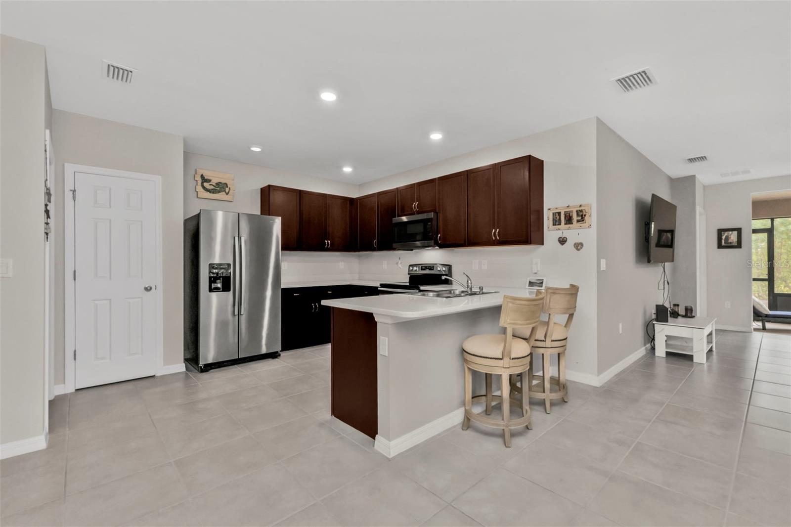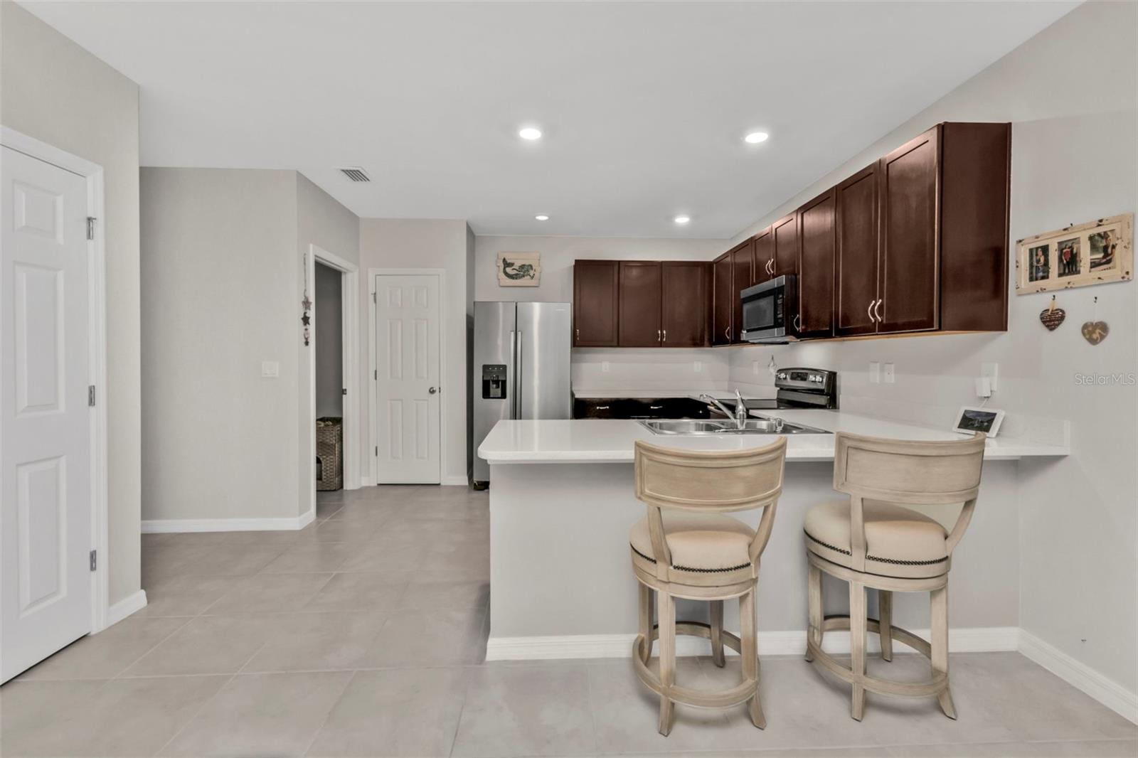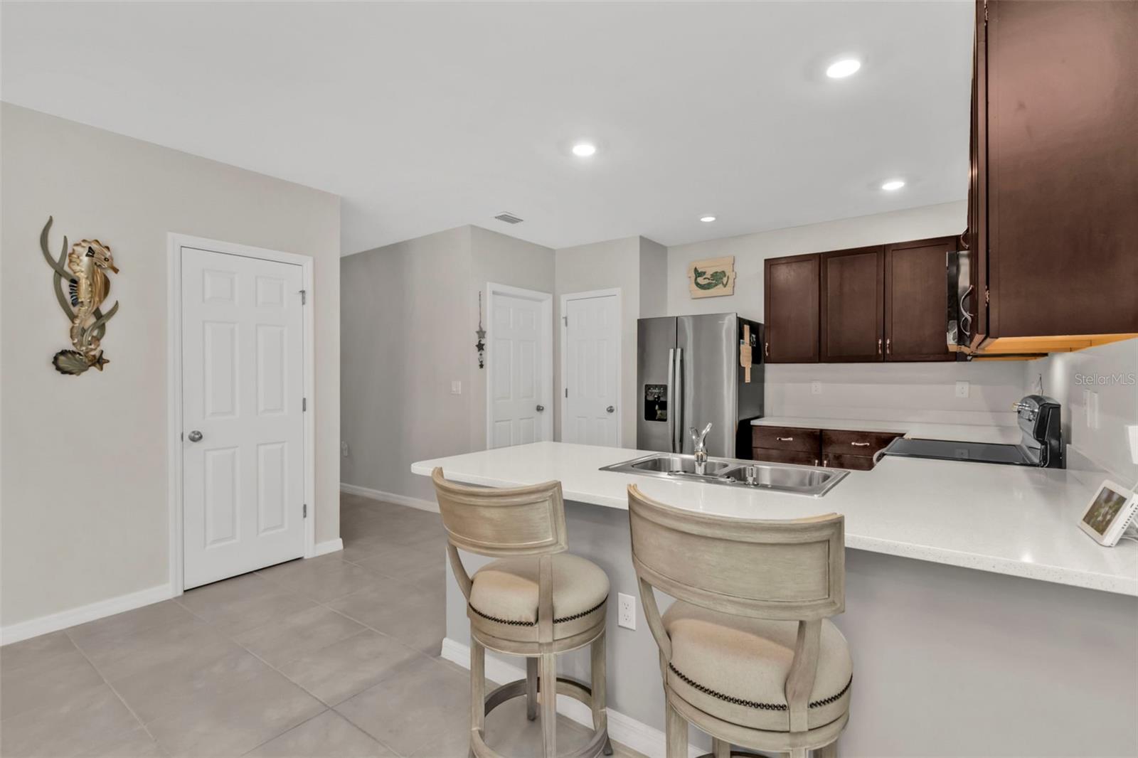 Come live the coastal lifestyle in this beautifully maintained 2 bedroom, 2 bathroom villa with a den and a 2-car garage, located in the highly desirable, deed-restricted, gated community of Waterford Estates in Punta Gorda. Per seller, Waterford Estates has never flooded! CLICK ON THE VIRTUAL TOUR LINK 1 FOR THE VIDEO AND VIRTUAL LINK 2 FOR THE 3D TOUR. This light and bright home features a spacious open floor plan with tile and vinyl flooring throughout, recessed lighting, and tasteful finishes. The kitchen is designed for both functionality and style, offering stainless steel appliances, quartz countertops, a closet pantry, and a breakfast bar, all overlooking the open living and dining area—perfect for entertaining family and friends. The primary suite includes a walk-in closet and a private ensuite bathroom with a dual sink vanity, walk-in shower, and water closet. The split-bedroom layout provides extra privacy, with the guest bedroom and bathroom situated on the opposite side of the home. French doors lead into the den, ideal for a home office, hobby room, or potential third bedroom. Enjoy peaceful mornings or relaxing evenings on the screened-in lanai overlooking the tranquil and private backyard. Recent updates include a new roof in 2021, new gutters and downspouts in 2024, a newly added screened lanai and front entry in 2024, updated flooring in 2023, and full hurricane protection. Waterford Estates offers resort-style amenities including two community pools, bocce and pickleball courts, a well-equipped fitness center, an amenity clubhouse, and scenic lakes throughout the community. Conveniently located just minutes from US-41, Fishermen’s Village, Ponce De Leon Park, boutique shopping, fine and casual dining, and live entertainment. A short drive will take you to the white sandy Gulf beaches of Boca Grande, Englewood, and Manasota Key, where world-class fishing and relaxation await. Furniture is negotiable—schedule your private showing today and start enjoying all that Southwest Florida living has to offer!
