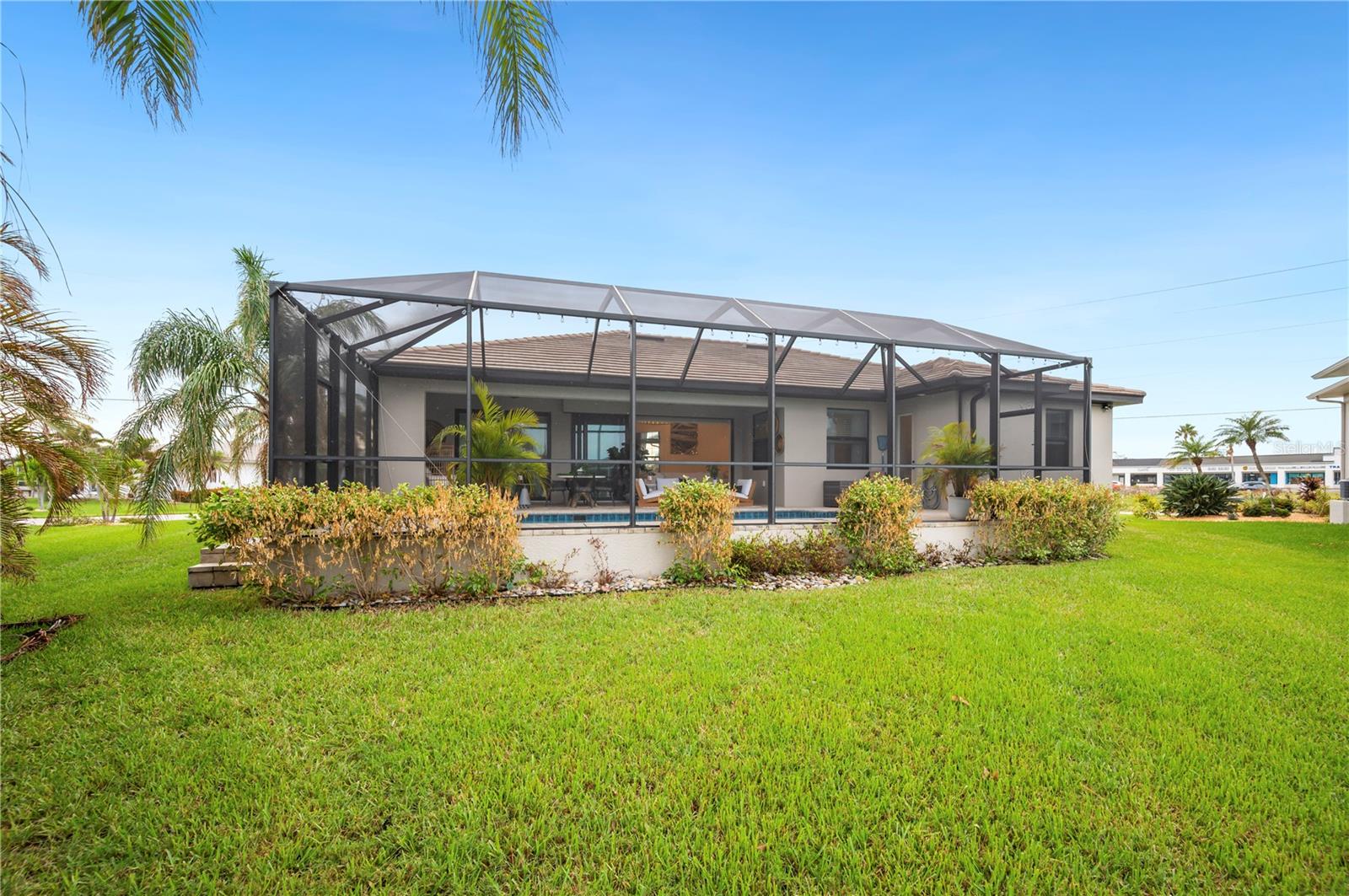 This exceptional, hurricane-proofed waterfront home in Punta Gorda Isles offers the ultimate blend of modern luxury and practical design. Located on the sought-after Charlotte Harbor, this stunning property is perfect for those dreaming of waterfront living or seeking an Airbnb-ready investment. With direct access to the water and just minutes away from the harbor, it’s a true boater’s paradise, while the screened-in saltwater pool provides an idyllic spot for sunset views and relaxation. Built in 2019, this home offers 3 spacious bedrooms, each featuring custom walk-in closets, and 2 beautifully updated bathrooms with high-end finishes. Boasting 2,029 sqft of meticulously designed living space, the open floor plan seamlessly connects the indoors to the outdoors through pocket sliders that open into the expansive lanai area. The master suite is a true retreat, designed like a luxury resort with a large spa shower, soaking tub, and elegant details throughout. The owners have spared no expense in recent upgrades, ensuring a healthy, elevated waterfront lifestyle. Within the past 6-12 months, the home has been thoughtfully enhanced with new carpet throughout (the owners are shoe-free!), a state-of-the-art water purification system, and a UV air filtration system for optimal air quality. The back lanai features high-grade Cat 5 hurricane-rated screening, and the front screened-in patio also enhances outdoor living. Other updates include new appliances, a saltwater softener system, a saltwater pool system with a heater that reaches up to 105°F for year-round enjoyment, and a recently installed central AC system, including a cooling unit in the 3-car garage to keep the home gym comfortable during summer months. The home also includes a fully outfitted home gym in the garage, valued at over $45K, featuring premium Rogue and Peloton equipment. The entire property has been thoughtfully remodeled with custom lighting, door hardware, faucets, and fixtures—every detail considered for style and function. The home’s modern, elevated design is one of the few in the area and stands out for its resilience to storm damage, thanks to its elevated build, stem walls in the canal, and hurricane-rated windows, doors, and pool screens. You have the option to purchase this home fully furnished, with carefully curated luxury pieces from top boutiques like Anthropologie, Pottery Barn, Sleep Number, and Modern Living. Every piece was custom-measured and installed to complement the home’s sophisticated design. With its impeccable craftsmanship, unbeatable location, and luxury finishes, this home is truly one-of-a-kind. Whether you're looking for a permanent Florida retreat or a high-end investment property, this home offers it all. Schedule a private showing today to experience the ultimate in waterfront living!