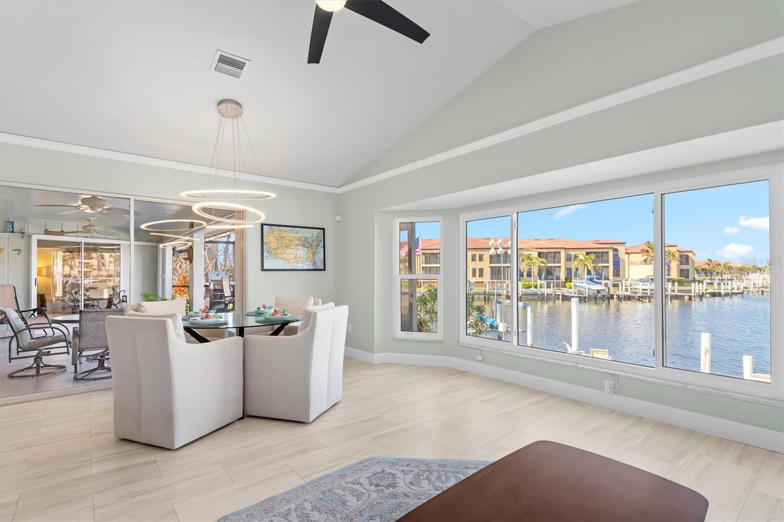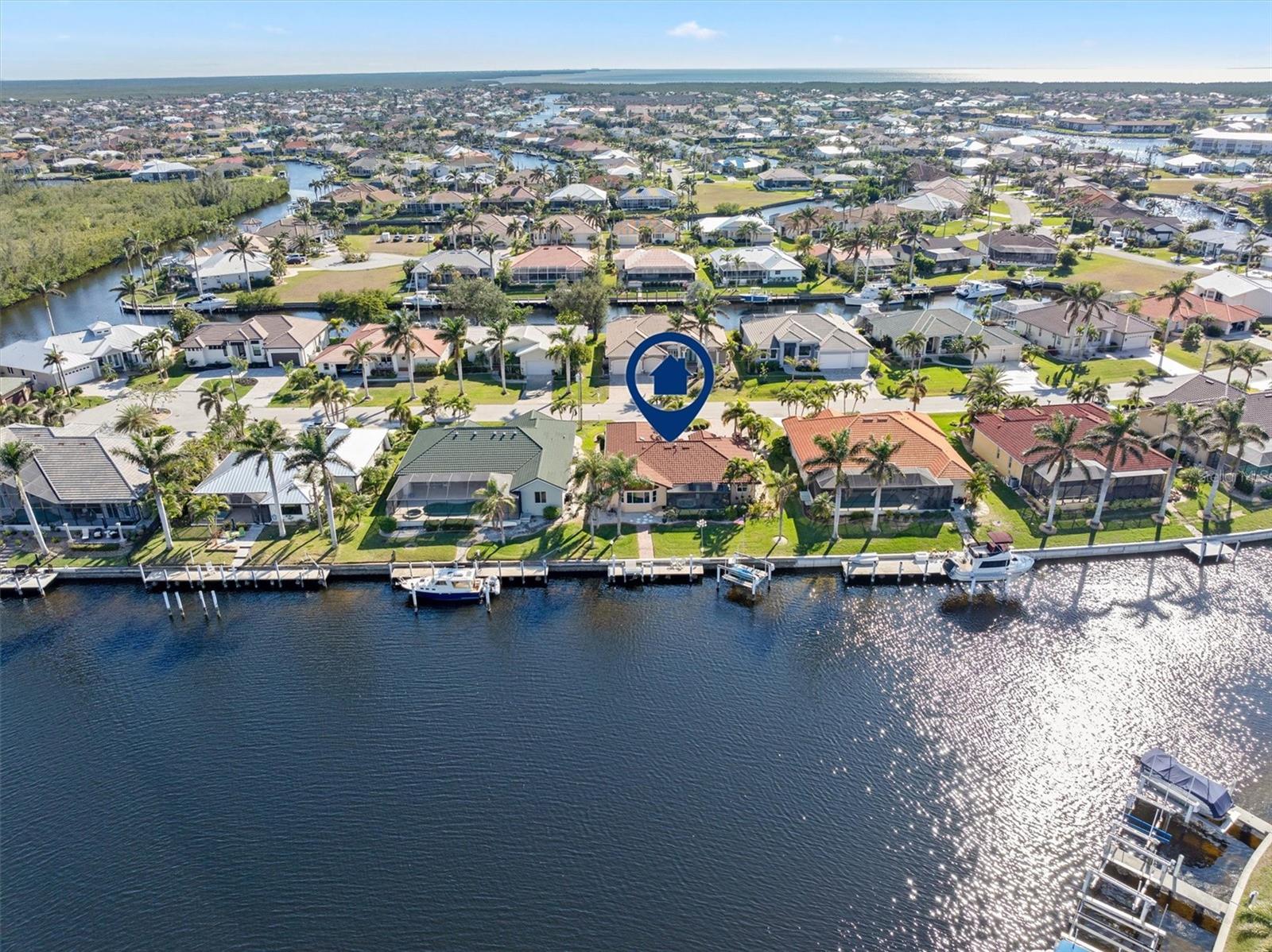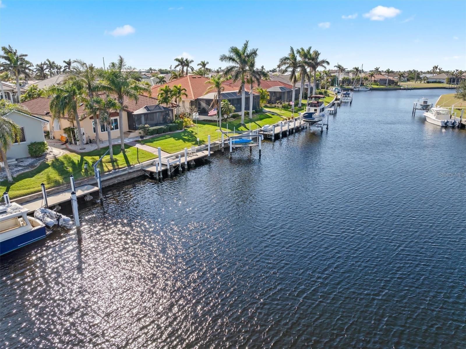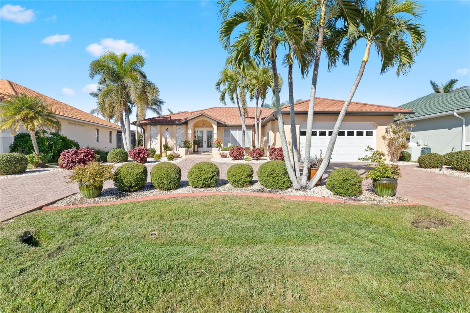 Exceptional Canal-Front Home with sailboat access in Punta Gorda Isles in the coveted "Bird Section." Nestled in one of the most desirable neighborhoods in Punta Gorda Isles, this beautifully maintained canal-front home offers the ultimate in waterfront living. This home has extensive water frontage on a large turning basin with three intersecting canals with the shortest width of just under 261'. The dock offers a boat lift, newer seawall, electricity and water. Will accommodate up to a 45ft Catamaran. This beautiful 3-bedroom, 2-bathroom, 2-car garage residence is a true gem for boating enthusiasts or for those seeking an absolutlry breathtaking view. Step inside to discover an expansive open floor plan with luxury vinyl throughout designed for easy living and entertaining. The oversized primary suite provides a private retreat, while the updated kitchen boasts modern finishes perfect for culinary creations. With hurricane impact windows and a brand-new stone coated metal roof, you can enjoy long term peace of mind. The home has never experienced flooding, ensuring you a secure and worry-free environment. The newly resurfaced lanai features a heated spa for relaxation and pure enjoyment. The home offers easy access to downtown Punta Gorda, Fisherman’s Village, shopping, and local dining—putting you right at the heart of all the action. Whether you’re enjoying the peaceful canal views, taking your boat out for a day on the water, or exploring all that Punta Gorda has to offer, this home is truly a standout. Don’t miss your chance to own a slice of paradise in one of Florida’s most desirable locations!