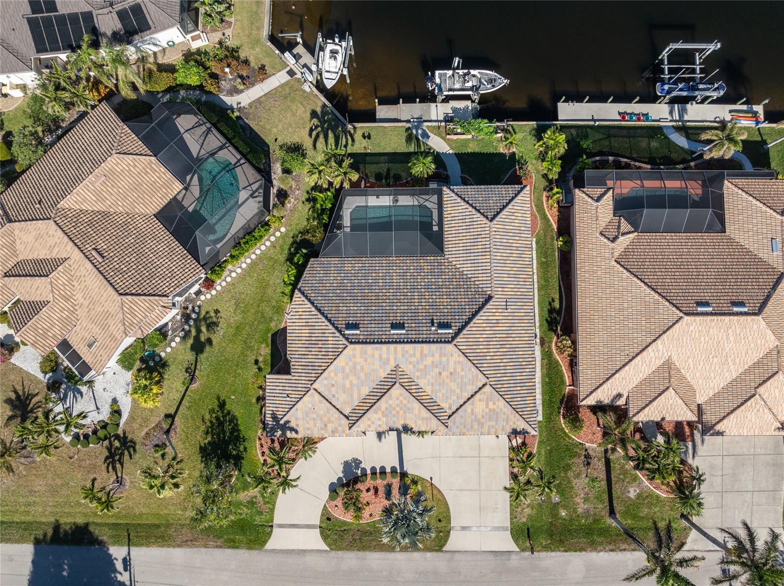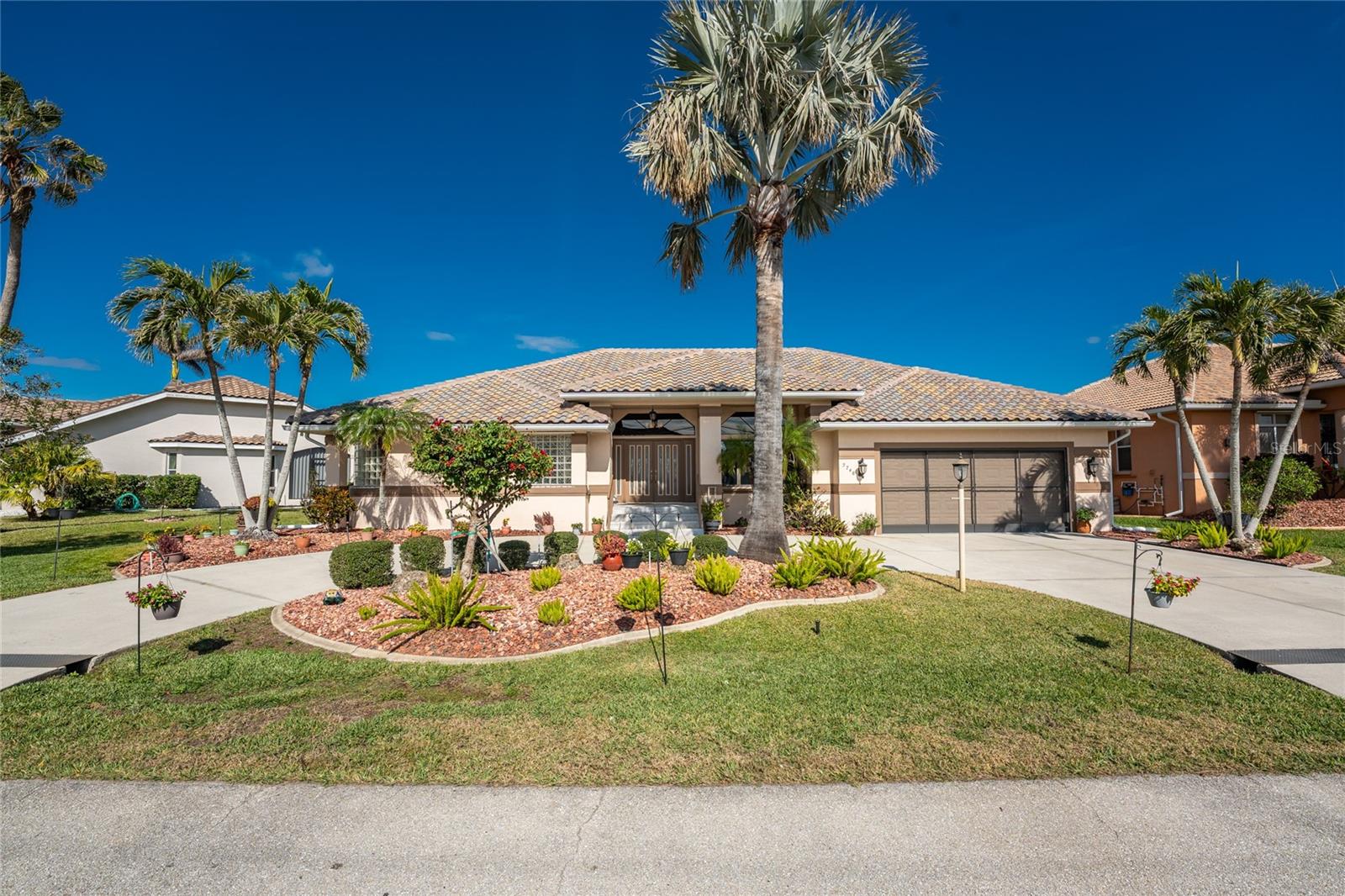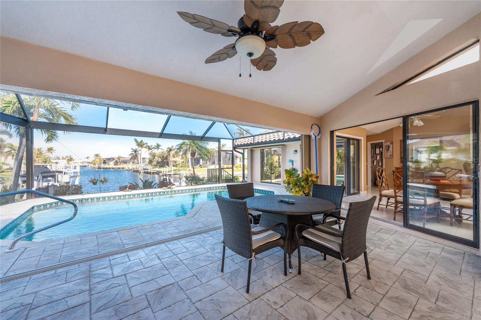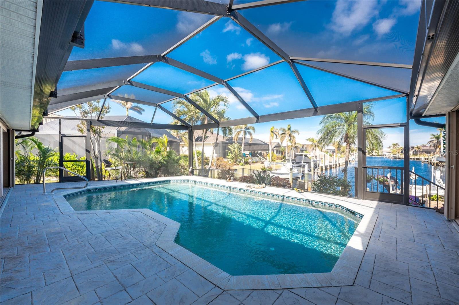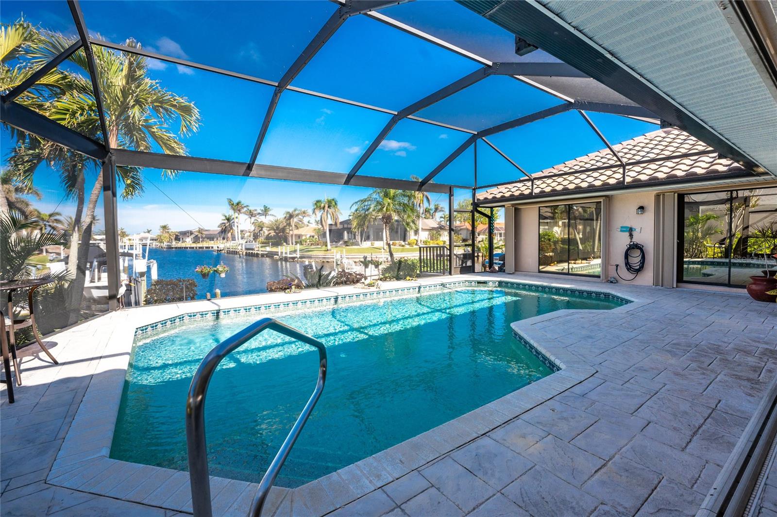 Welcome to the most desired section of Punta Gorda Isles, and it's not just the location, it's the neighbors! DIRECT SAILBOAT WATER, just minutes to the Harbor. The second you step into this bright and airy home and see the 3 sliding doors that lead out to the Lanai you grasp the Indoor - Outdoor living concept that Florida living is all about! Imagine starting your day with a coffee, or sharing an evening cocktail with that view! Everything about this home is Large, including the Kitchen that features a dinette as well as a counter bar. The Lanai is just as accessible from the primary and larger guest bedroom as well. Tile flooring throughout. New roof in 2023, new A/C in 2020, and Hurricane protection all add to peace of mind. The Dock includes a 10,000# boat lift and city maintained seawalls. This one is a must see. DON'T MISS IT!