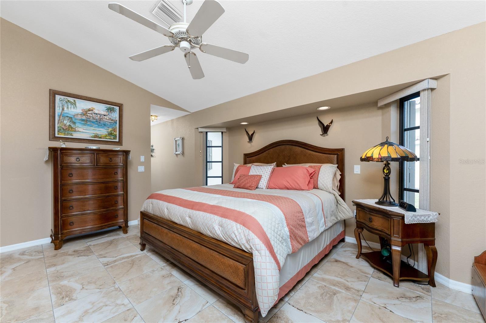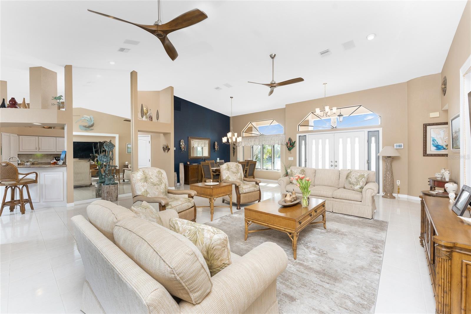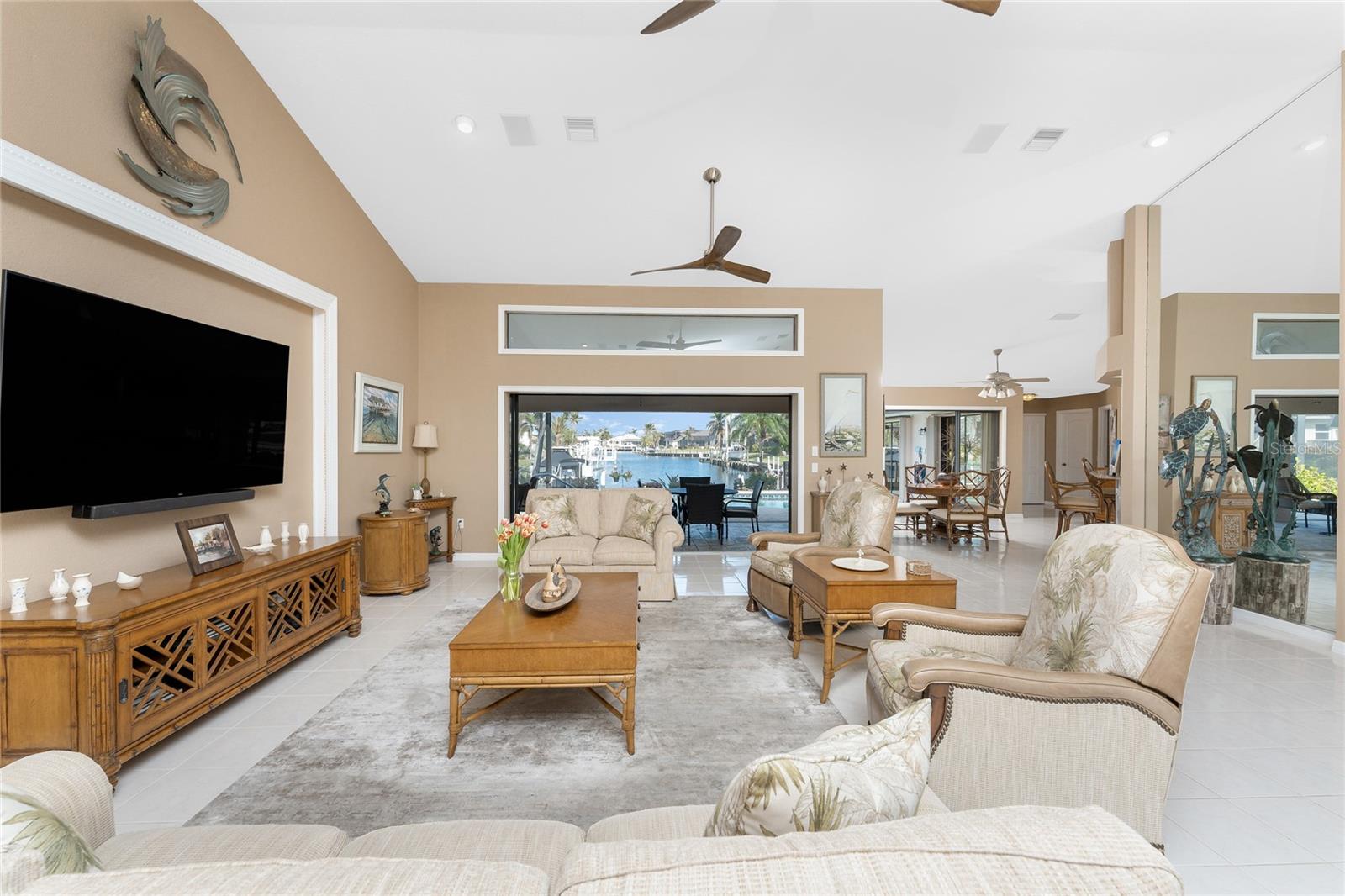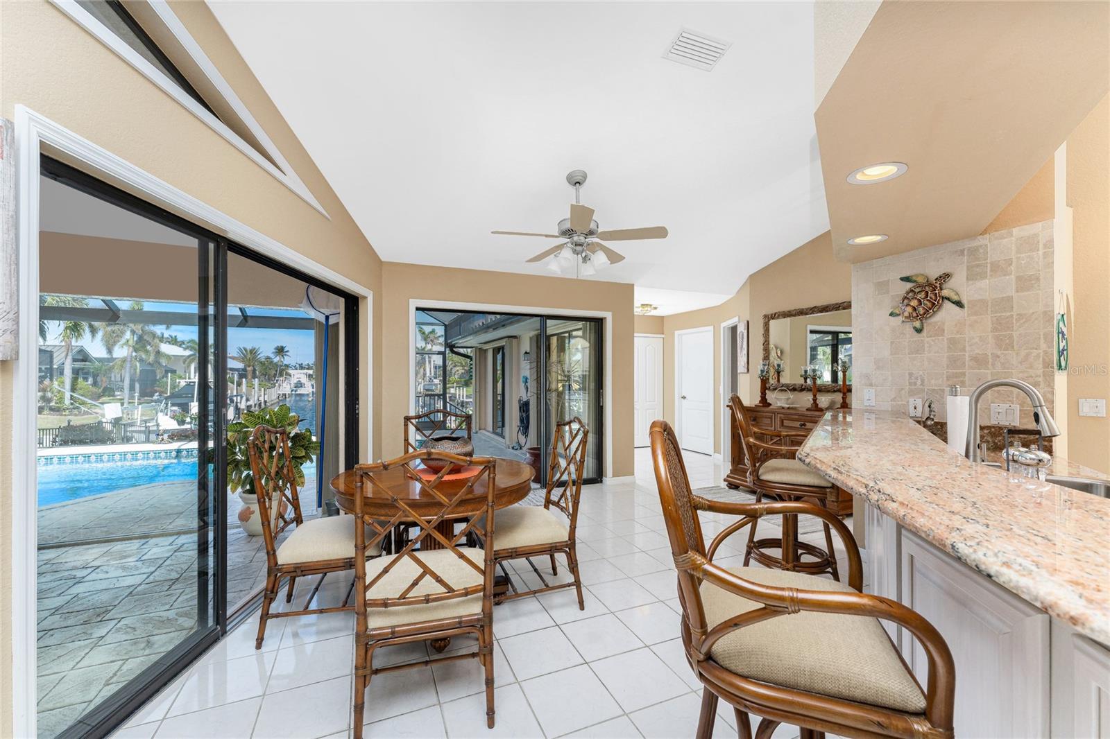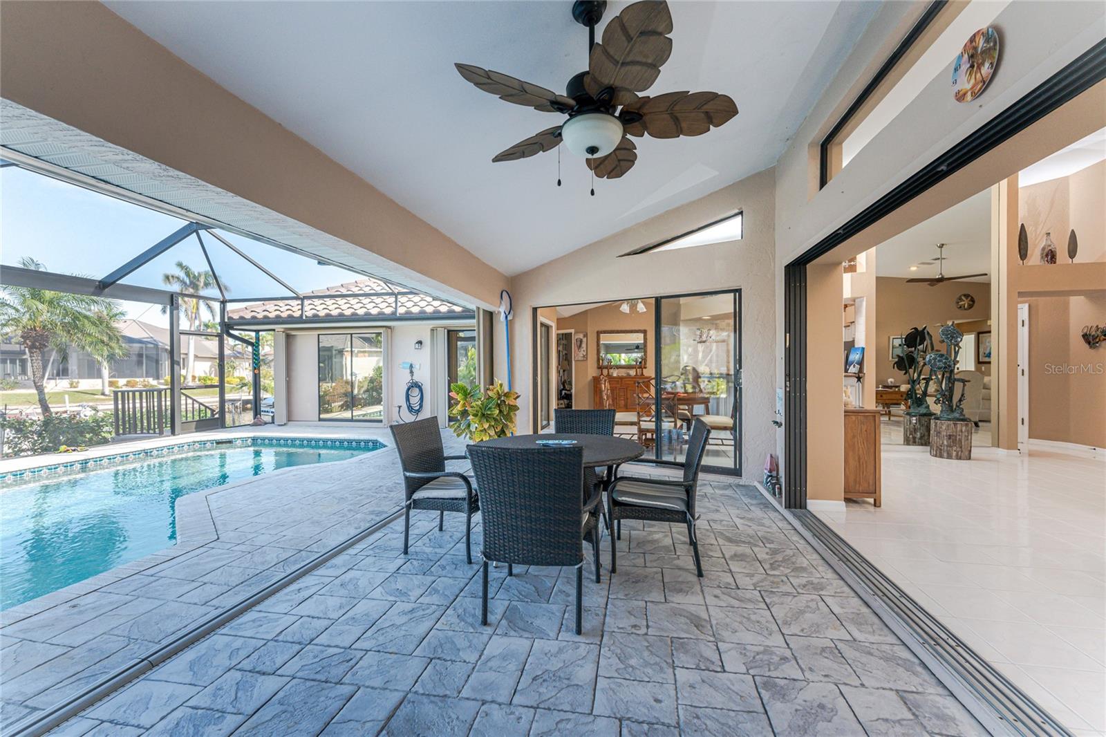 Welcome to the most desired section of Punta Gorda Isles, and it's not just the location, it's the neighbors! DIRECT SAILBOAT WATER, just minutes to the Harbor. The second you step into this bright and airy home and see the 3 sliding doors that lead out to the Lanai you grasp the Indoor - Outdoor living concept that Florida living is all about! Imagine starting your day with a coffee, or sharing an evening cocktail with that view! Everything about this home is Large, including the Kitchen that features a dinette as well as a counter bar. The Lanai is just as accessible from the primary and larger guest bedroom as well. Tile flooring throughout. New roof in 2023, new A/C in 2020, and Hurricane protection all add to peace of mind. The Dock includes a 10,000# boat lift and city maintained seawalls. This one is a must see. DON'T MISS IT!