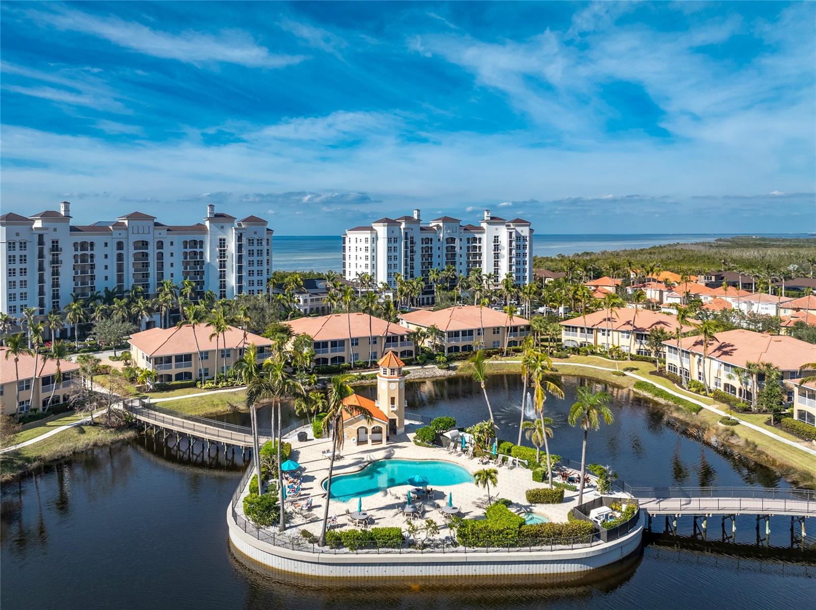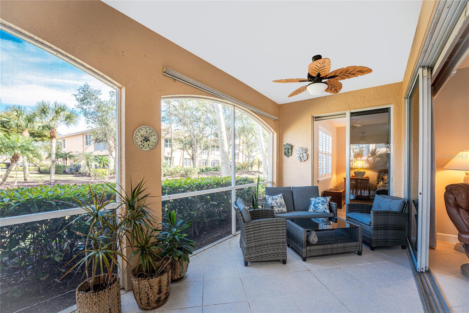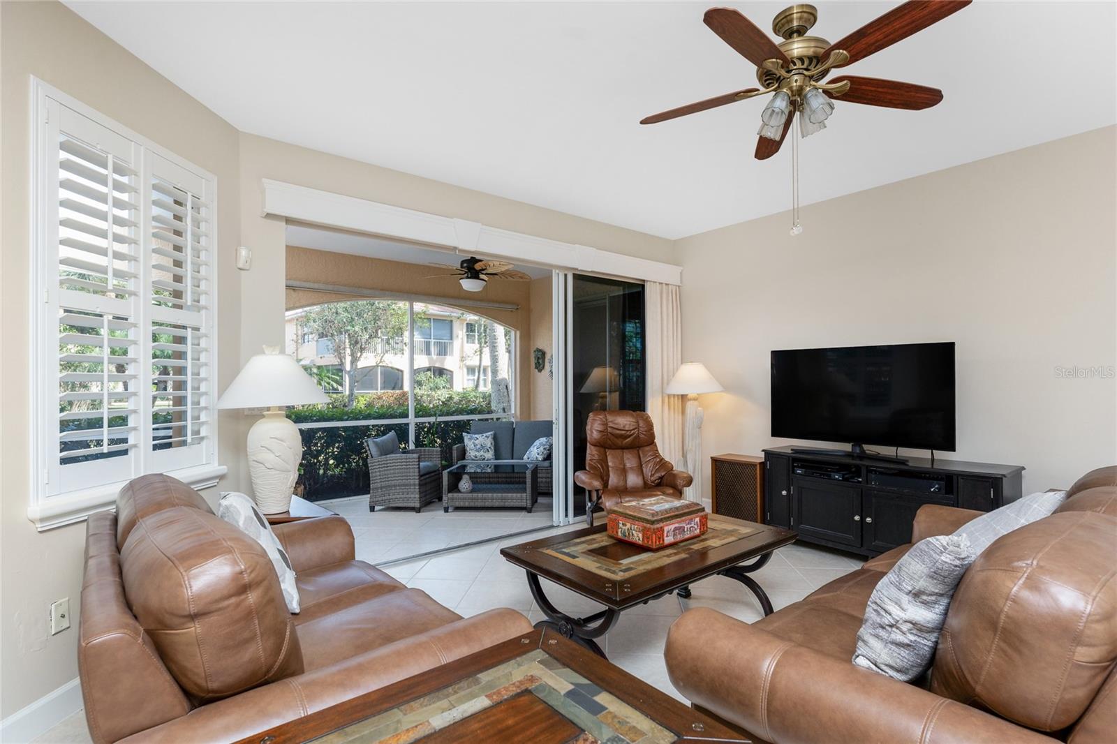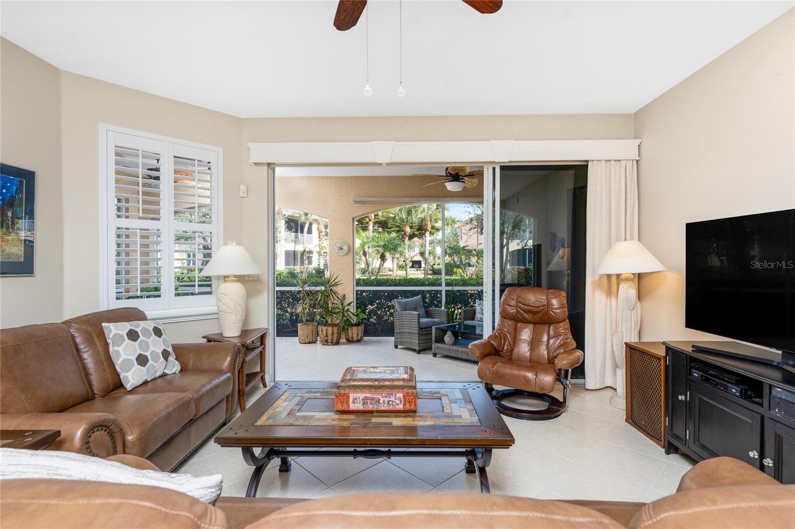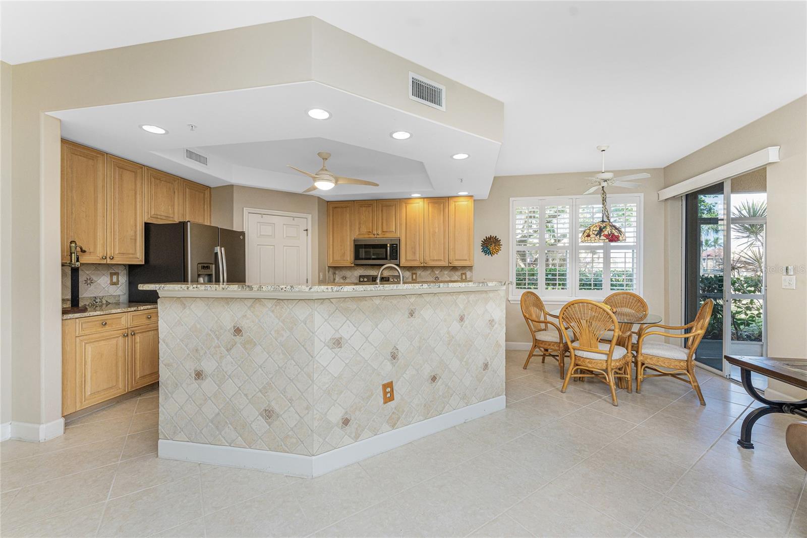 Experience the ease of tropical living in this beautifully appointed ground-level Tobago condo, situated on a private gated peninsula between two marina basins at Burnt Store Marina. Surrounded by a spacious yard with lush vegetation, you will find that this is a place to unwind. Just a short stroll from the floating island pool and spa, and steps away from the wonderful waterfront esplanade… this truly an incredible resort lifestyle. Burnt Store Marina residents also enjoy access to two on-site restaurants, tennis, pickleball and fitness center, a 27-hole executive golf course, and the largest deepwater marina in SWFL.This desirable turnkey-furnished two bedroom plus den residence boasts a well designed open floor plan that is both comfortable and convenient. Here you can enjoy the conveniences of a single family home with the attached two car garage, but enjoy the maintenance-free ease of owning a condo. Step inside to a light filled open floor plan where the updated kitchen shines with granite countertops, neutral tile backsplash, light toned wood cabinetry, stainless steel appliances, and a custom pantry for optimal storage. The neutral color palette and diamond-set tile surround the two sets of sliding doors which welcome in tropical breezes and natural light - drawing you to your own tropical oasis. Step through the sliding doors to discover Florida’s perfect weather from the screened and tiled lanai. The tropical landscape and peaceful lake views create an idyllic backdrop for morning coffee or evening relaxation. Electric roll-down shades on all sliding doors provide effortless privacy at the touch of a button. The handsome primary suite is a serene retreat, featuring neutral luxury vinyl plank flooring, plantation shutters, and a large walk-in closet. It features a tray ceiling, large window and sliding glass doors that frame the park-like views of the landscape. The ensuite bath offers an expansive vanity with dual sinks, tiled walk-in shower, and additional closet space. A well-appointed guest bedroom and versatile den—both with LVP flooring and plantation shutters—offer comfortable accommodations for family or home office needs. The handy attached two-car garage, complete with an electric car charger and extra shelving, makes this home as functional as it is beautiful. Walk across the street to the marina-walk and experience a fiery Florida Sunset over the channel entrance, raise your glass and toast the wonderful place you are soon to call home.