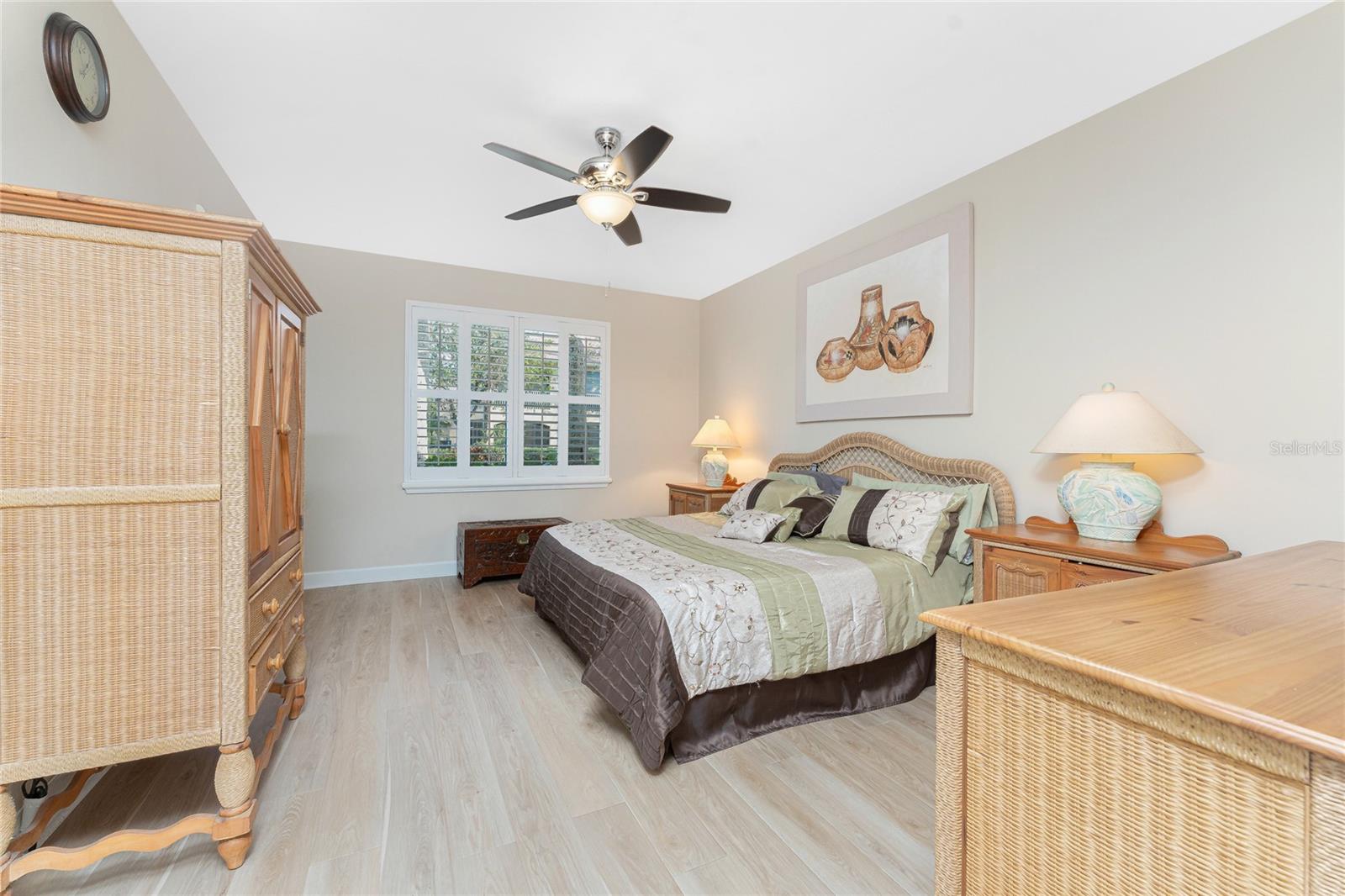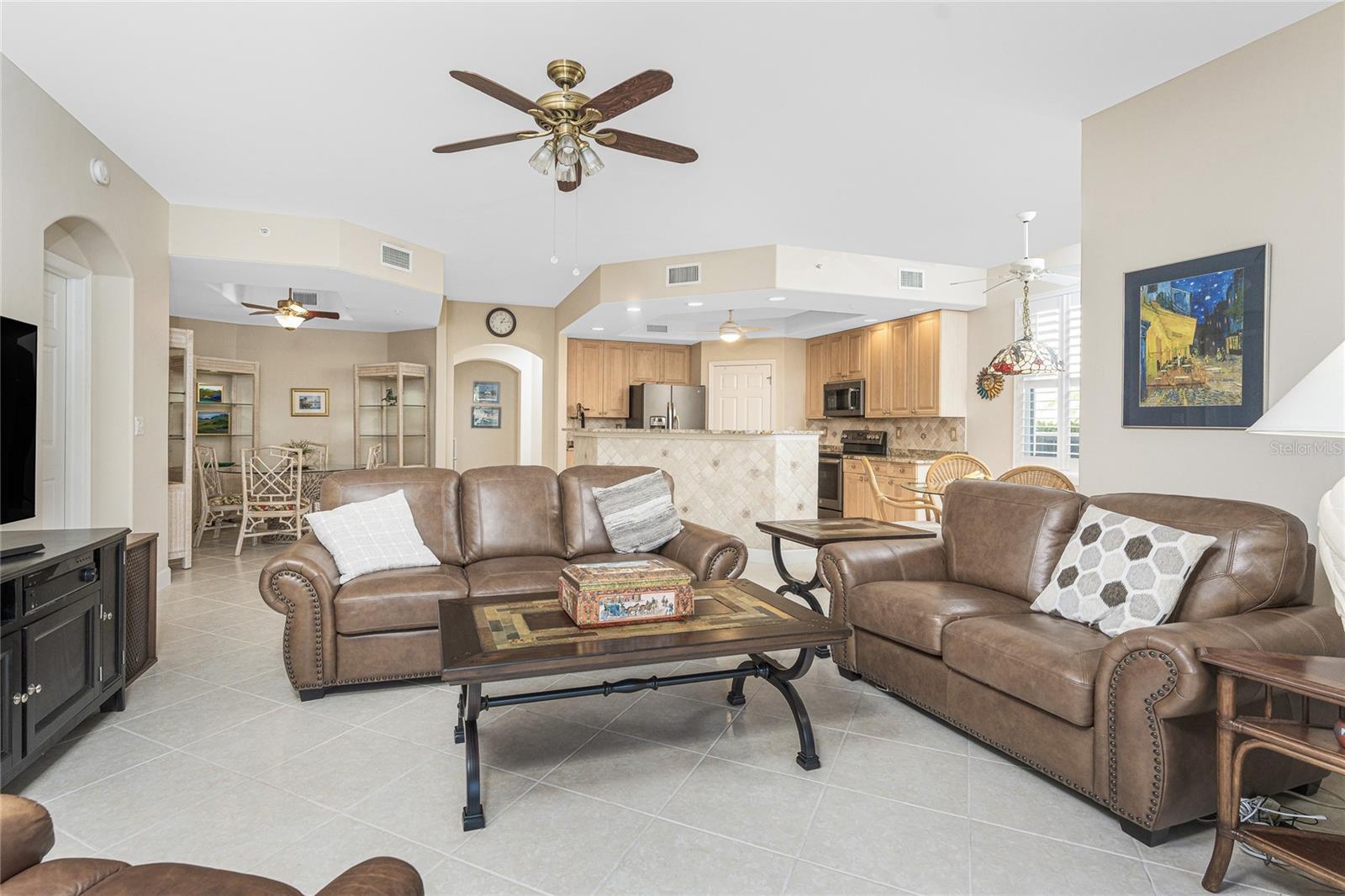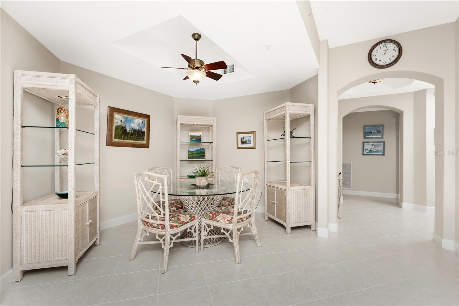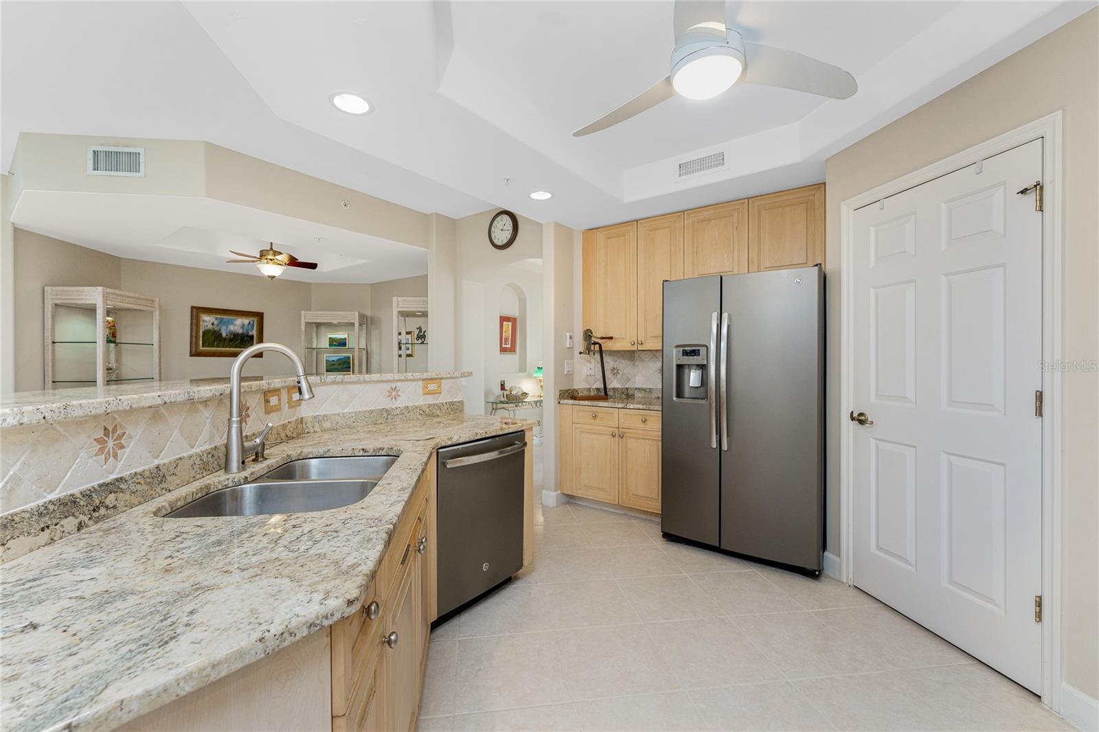 Experience the ease of tropical living in this beautifully appointed ground-level Tobago condo, situated on a private gated peninsula between two marina basins at Burnt Store Marina. Surrounded by a spacious yard with lush vegetation, you will find that this is a place to unwind. Just a short stroll from the floating island pool and spa, and steps away from the wonderful waterfront esplanade… this truly an incredible resort lifestyle. Burnt Store Marina residents also enjoy access to two on-site restaurants, tennis, pickleball and fitness center, a 27-hole executive golf course, and the largest deepwater marina in SWFL.This desirable turnkey-furnished two bedroom plus den residence boasts a well designed open floor plan that is both comfortable and convenient. Here you can enjoy the conveniences of a single family home with the attached two car garage, but enjoy the maintenance-free ease of owning a condo. Step inside to a light filled open floor plan where the updated kitchen shines with granite countertops, neutral tile backsplash, light toned wood cabinetry, stainless steel appliances, and a custom pantry for optimal storage. The neutral color palette and diamond-set tile surround the two sets of sliding doors which welcome in tropical breezes and natural light - drawing you to your own tropical oasis. Step through the sliding doors to discover Florida’s perfect weather from the screened and tiled lanai. The tropical landscape and peaceful lake views create an idyllic backdrop for morning coffee or evening relaxation. Electric roll-down shades on all sliding doors provide effortless privacy at the touch of a button. The handsome primary suite is a serene retreat, featuring neutral luxury vinyl plank flooring, plantation shutters, and a large walk-in closet. It features a tray ceiling, large window and sliding glass doors that frame the park-like views of the landscape. The ensuite bath offers an expansive vanity with dual sinks, tiled walk-in shower, and additional closet space. A well-appointed guest bedroom and versatile den—both with LVP flooring and plantation shutters—offer comfortable accommodations for family or home office needs. The handy attached two-car garage, complete with an electric car charger and extra shelving, makes this home as functional as it is beautiful. Walk across the street to the marina-walk and experience a fiery Florida Sunset over the channel entrance, raise your glass and toast the wonderful place you are soon to call home.