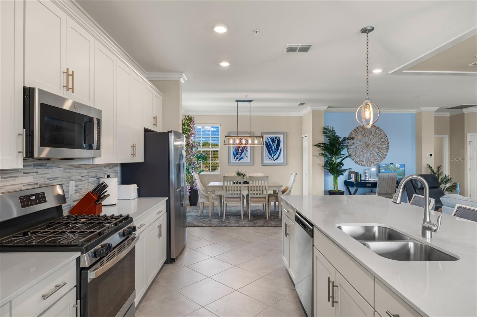 This is a new opportunity to embrace golf & resort-style living within Babcock National in Babcock Ranch. That means year-round golf because this top floor coach home has the GOLF MEMBERSHIP INCLUDED! This layout is known as the 'Baycreek' model, which offers 3 spacious bedrooms, 2 full bathrooms, just over 2,000 square feet and a 2-car tandem garage. That's right, fit 2 cars PLUS a golf cart or extra storage! Walking inside and upstairs, you'll be greeted by a great room design lined with attractive finishes throughout! Those finishes include tile flooring on the diagonal in the main areas, carpet in the bedrooms, stainless steel appliances, solid quartz countertops throughout, along with a natural gas range for cooking enthusiasts! Tastefully added upgrades include new ceiling fixtures throughout, updated paint schemes, kitchen backsplash, additional trim on the living room ceiling and even fans on the lanai. Within that same spacious screened-in lanai, you have the luxury of spending as much time as desired soaking in the serene views of the lake and golf course. Best part? The lanai faces South! Just outside of your home and within the community, you have many amazing amenities at your fingertips. There's an 18-hole championship golf course, resort-style pool with lap lanes & a spa, tiki bar, pickleball & bocce courts, a state-of-the-art fitness center, tennis center, a clubhouse w/ dining, and more. Not only that but Founder’s Square within Babcock Ranch, hosts food trucks every weekend with entertainment, markets, music, etc.! Your neighbors are waiting! Come check out what the Babcock community and lifestyle is all about!