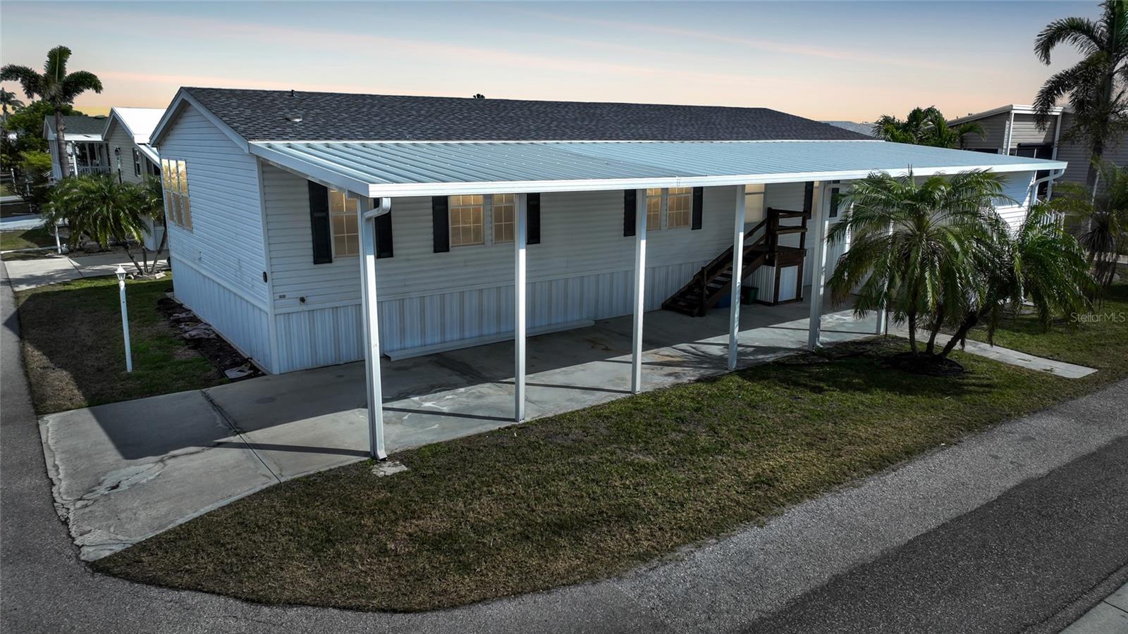 GREAT HOME FOR FULL TIME RESIDENCY, SECOND HOME OR RENTAL/ INVESTMENT. Experience the charm and comfort of this beautifully maintained 1,458 sq. ft. home, located in the friendly, resident-owned 55+ gated community of Windmill Village in Punta Gorda. This inviting, fully furnished home features 3 spacious bedrooms, 2 bathrooms, a formal dining room, a cozy living room, and a storage shed with 2-car covered parking. This corner-lot home offers both comfort and convenience in a thriving mobile home park, with more space than most. As you enter this well maintained home, you’ll be greeted by an open floor plan with an abundance of windows that fill the space with natural light. The spacious kitchen features ample wood cabinetry, a convenient pantry, and a full suite of modern appliances. Start your day in the charming breakfast nook, or entertain in the expansive living room, which seamlessly combines the dining and living areas—ideal for hosting friends and family. The primary bedroom offers plush carpeting, a generous walk-in closet and a private en-suite bath with a walk-in shower. Two additional guest bedrooms are comfortably sized, each with ample closet space, and are conveniently located near the guest bathroom. The home also includes a laundry closet off the dinette area for added convenience. Outside, the 2-car covered parking area provides shelter for your vehicles, with additional parking available in the driveway. Plus, it's conveniently located right across from the clubhouse—the heart of community events, parties, and activities—along with the swimming pool, tiki huts, and plenty of recreational games. In addition, Windmill Village provides a free courtesy van for shopping, fun outings, and quick trips to the mall. With seven active community clubs and a wide range of activities, from card games to swimming, shuffleboard, and boating (with two marinas), there’s never a dull moment here. It’s the perfect place to call home, or a fantastic investment opportunity! All this with an amazingly low monthly HOA fee! Please note, the purchase price does not include the $18,285 Buy-in Share and Bond, which is refunded when you sell. In 2023, the home received a new shingle roof and carport in 2024, ensuring peace of mind for years to come. Experience the Windmill lifestyle—where every day feels like "another day in paradise!"