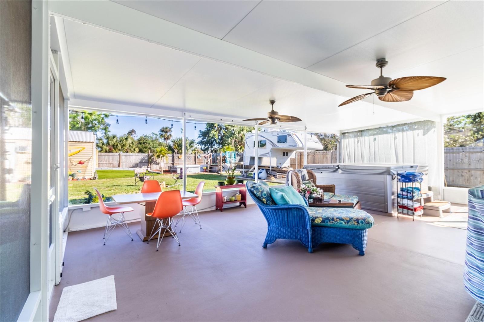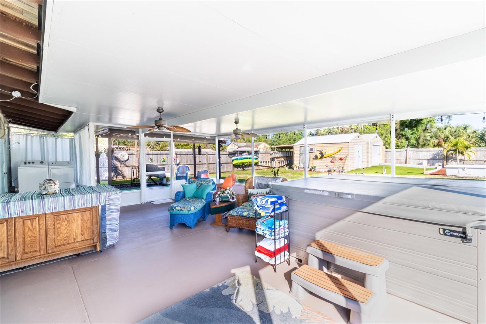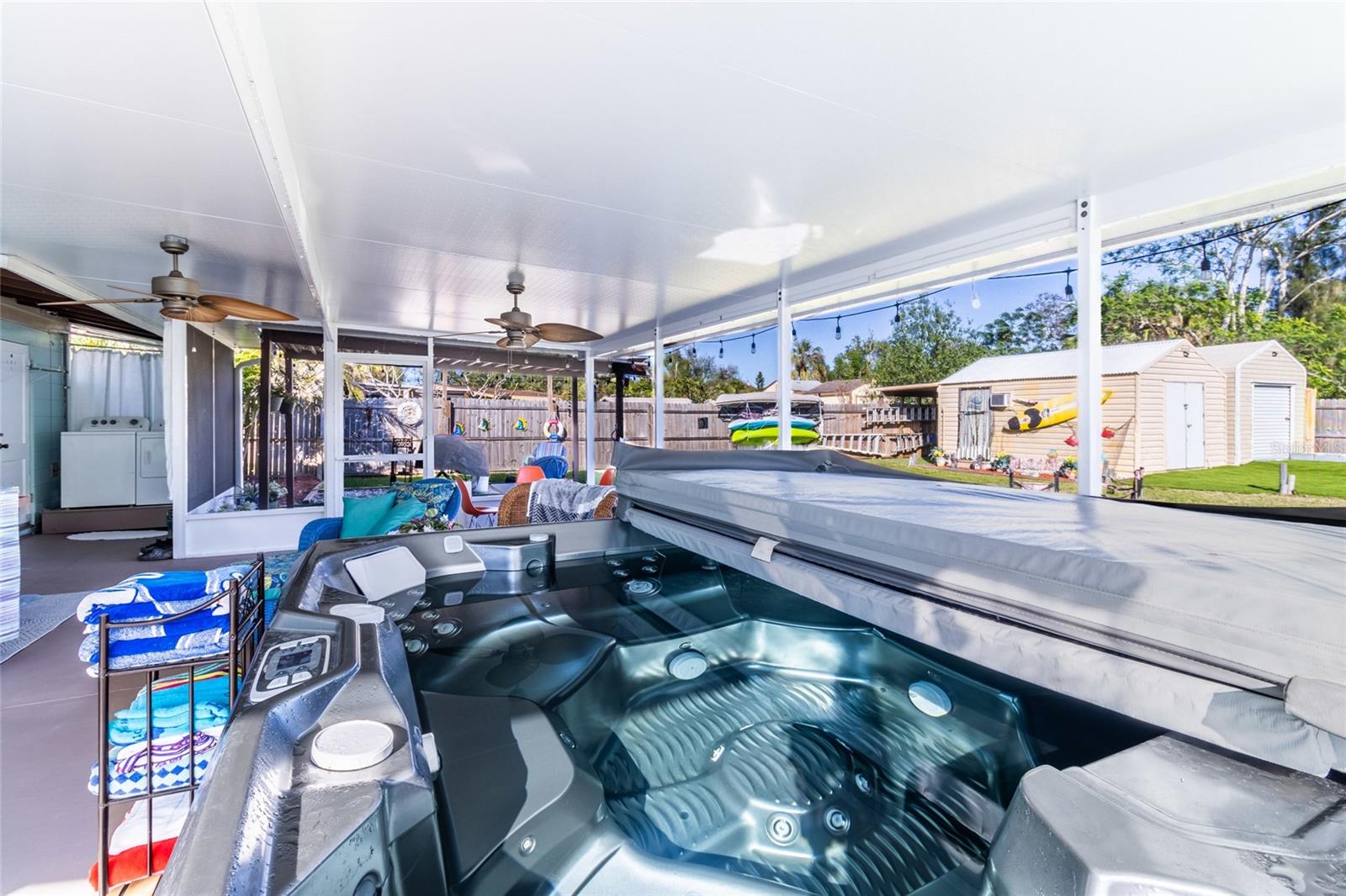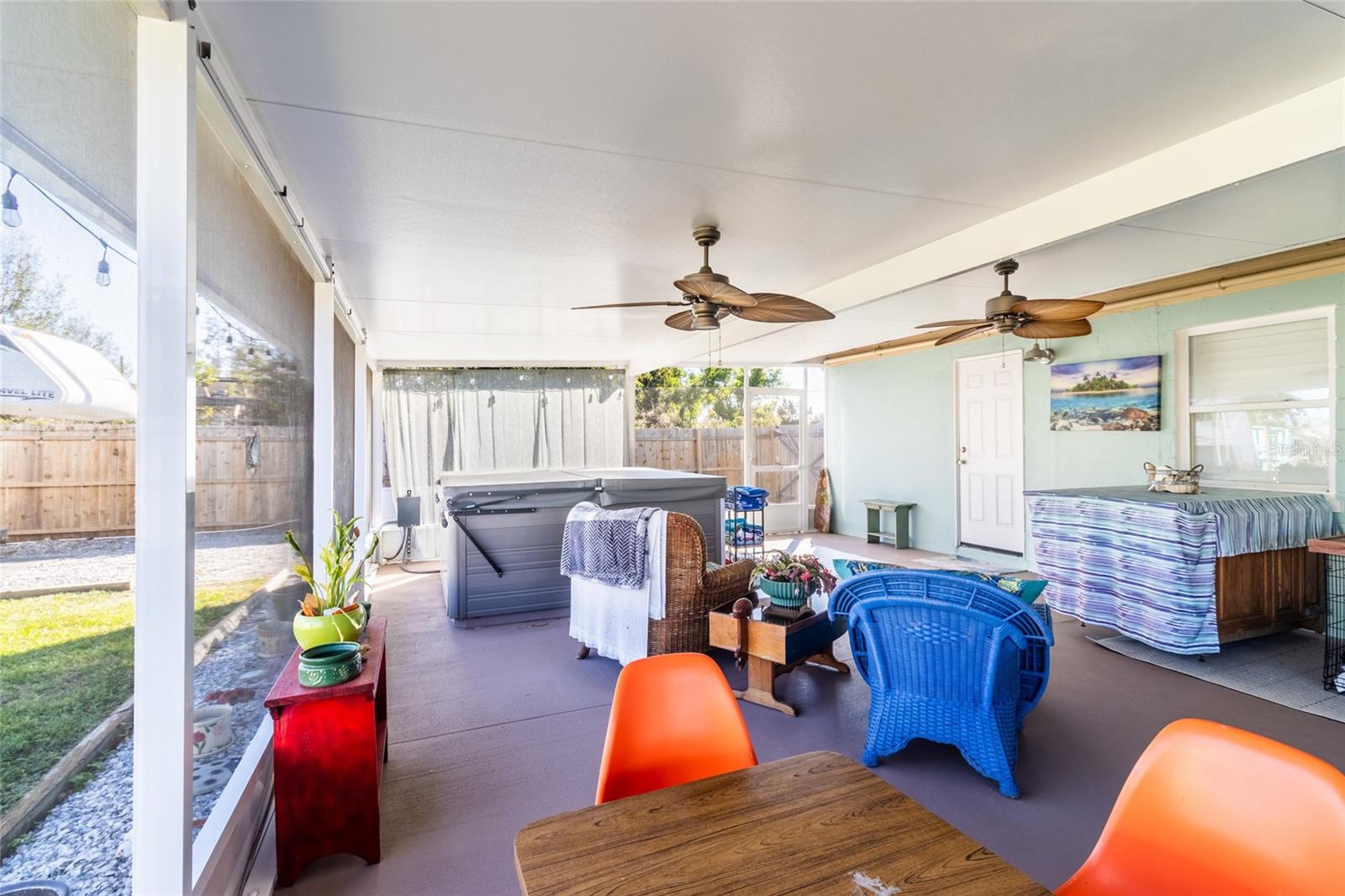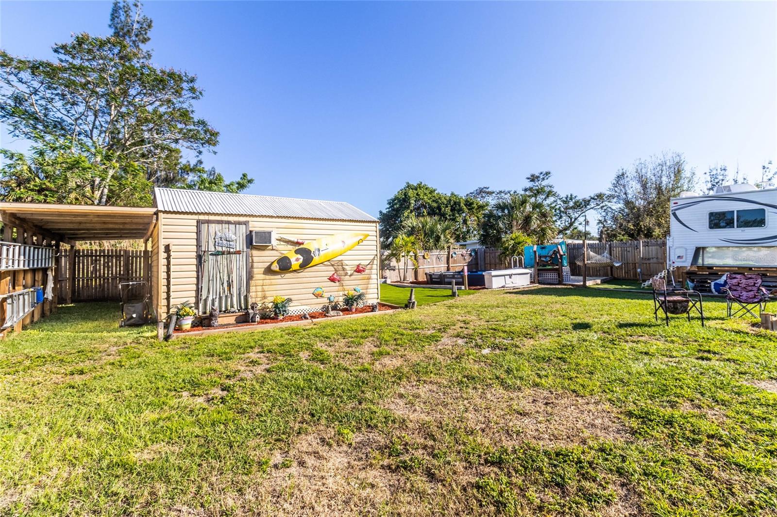Charming 2 bedroom Cabin style Retreat with Expansive Lanai. Step into the warmth and charm of this cozy home that feels like a classic Michigan cabin. Perfectly designed for comfort and simplicity, this 2 bed, 1 bath retreat offers rustic charm paired with thoughtful modern touches. Inside, you'll find an inviting living area with a cozy cabin feel, highlighted by warm wood tones. The kitchen is functional and efficient, offering everything you need for everyday living or weekend getaways. Both bedrooms provide a peaceful retreat, while the bathroom complements the home's cozy design. The real gem of this property is the expansive screened in lanai. Perfect for entertaining or relaxing year round, this outdoor space features a hot tub where you can unwind after a long day. Additional features include a storage shed wired with 220v power-ideal for a workshop or extra storage. The property also includes a convenient RV hookup, making it an excellent choice for guests with recreational vehicles. This property is a rare find, offering the charm of a cabin in a cozy, manageable package with fantastic outdoor living, including a pool, sandbox and fire pit. Don't miss your chance to see it for yourself!