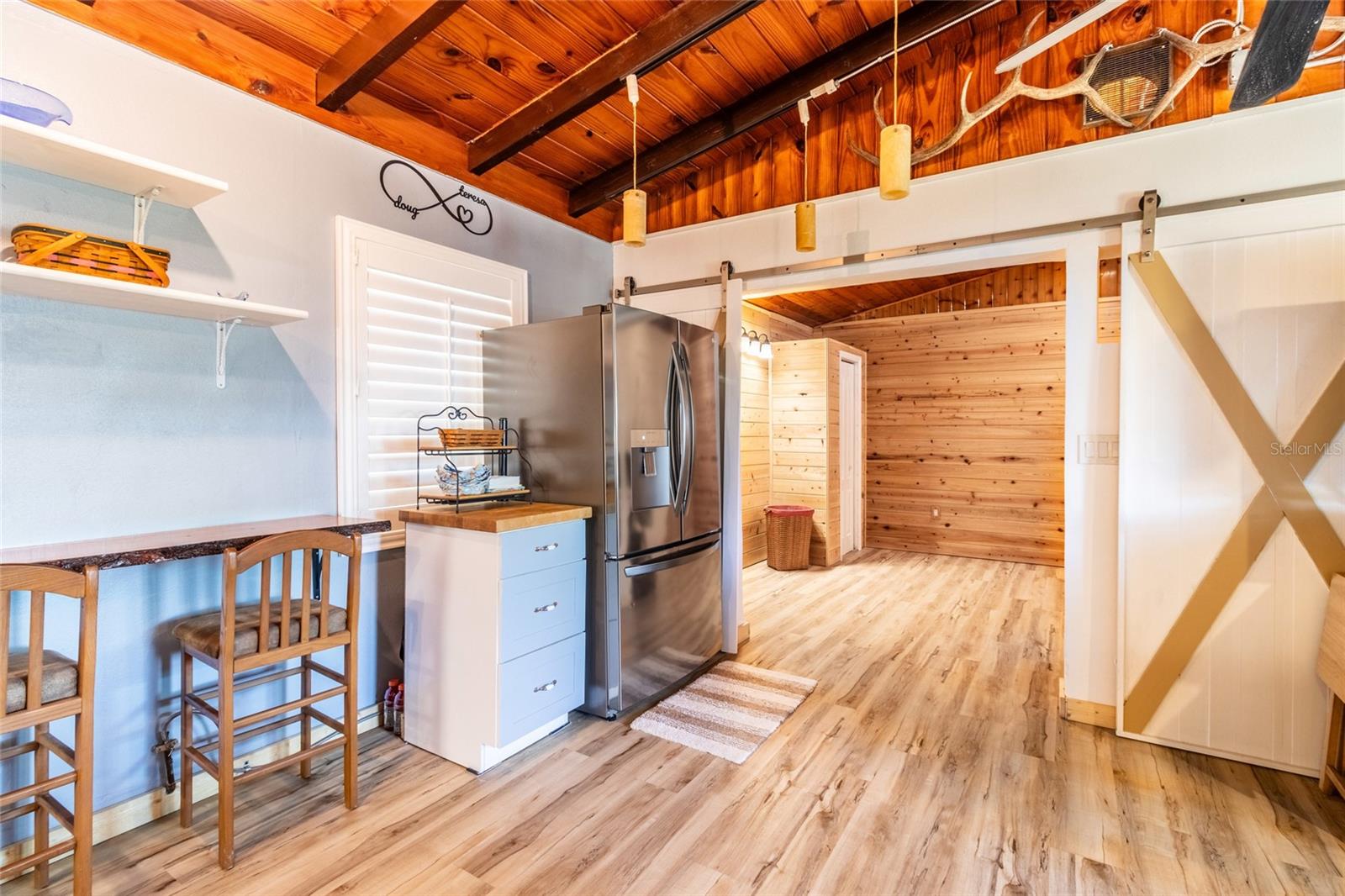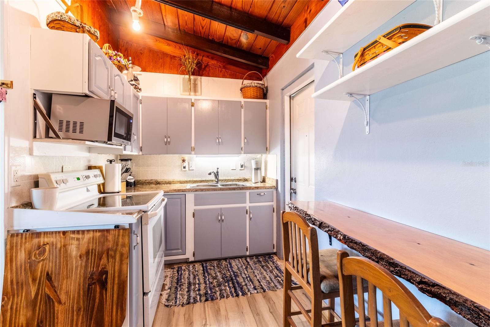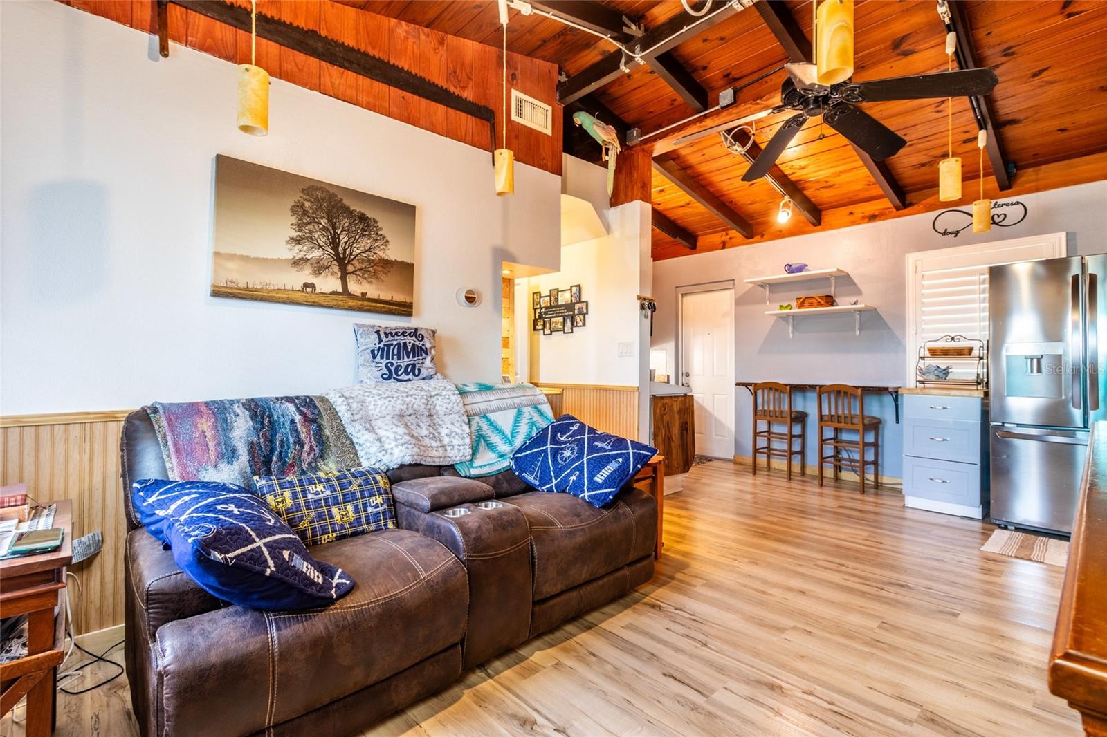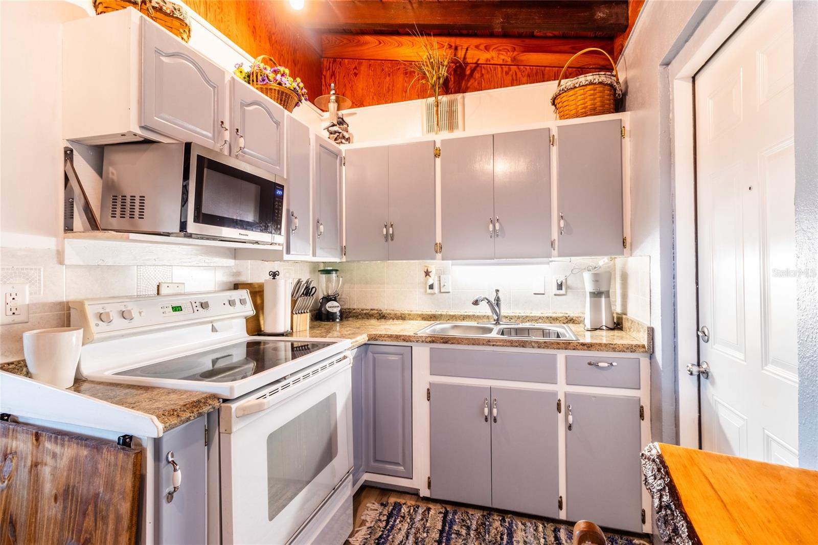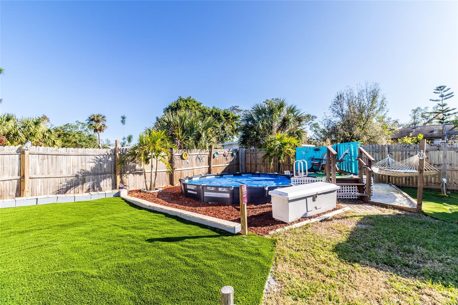 Charming 2 bedroom Cabin style Retreat with Expansive Lanai. Step into the warmth and charm of this cozy home that feels like a classic Michigan cabin. Perfectly designed for comfort and simplicity, this 2 bed, 1 bath retreat offers rustic charm paired with thoughtful modern touches. Inside, you'll find an inviting living area with a cozy cabin feel, highlighted by warm wood tones. The kitchen is functional and efficient, offering everything you need for everyday living or weekend getaways. Both bedrooms provide a peaceful retreat, while the bathroom complements the home's cozy design. The real gem of this property is the expansive screened in lanai. Perfect for entertaining or relaxing year round, this outdoor space features a hot tub where you can unwind after a long day. Additional features include a storage shed wired with 220v power-ideal for a workshop or extra storage. The property also includes a convenient RV hookup, making it an excellent choice for guests with recreational vehicles. This property is a rare find, offering the charm of a cabin in a cozy, manageable package with fantastic outdoor living, including a pool, sandbox and fire pit. Don't miss your chance to see it for yourself!