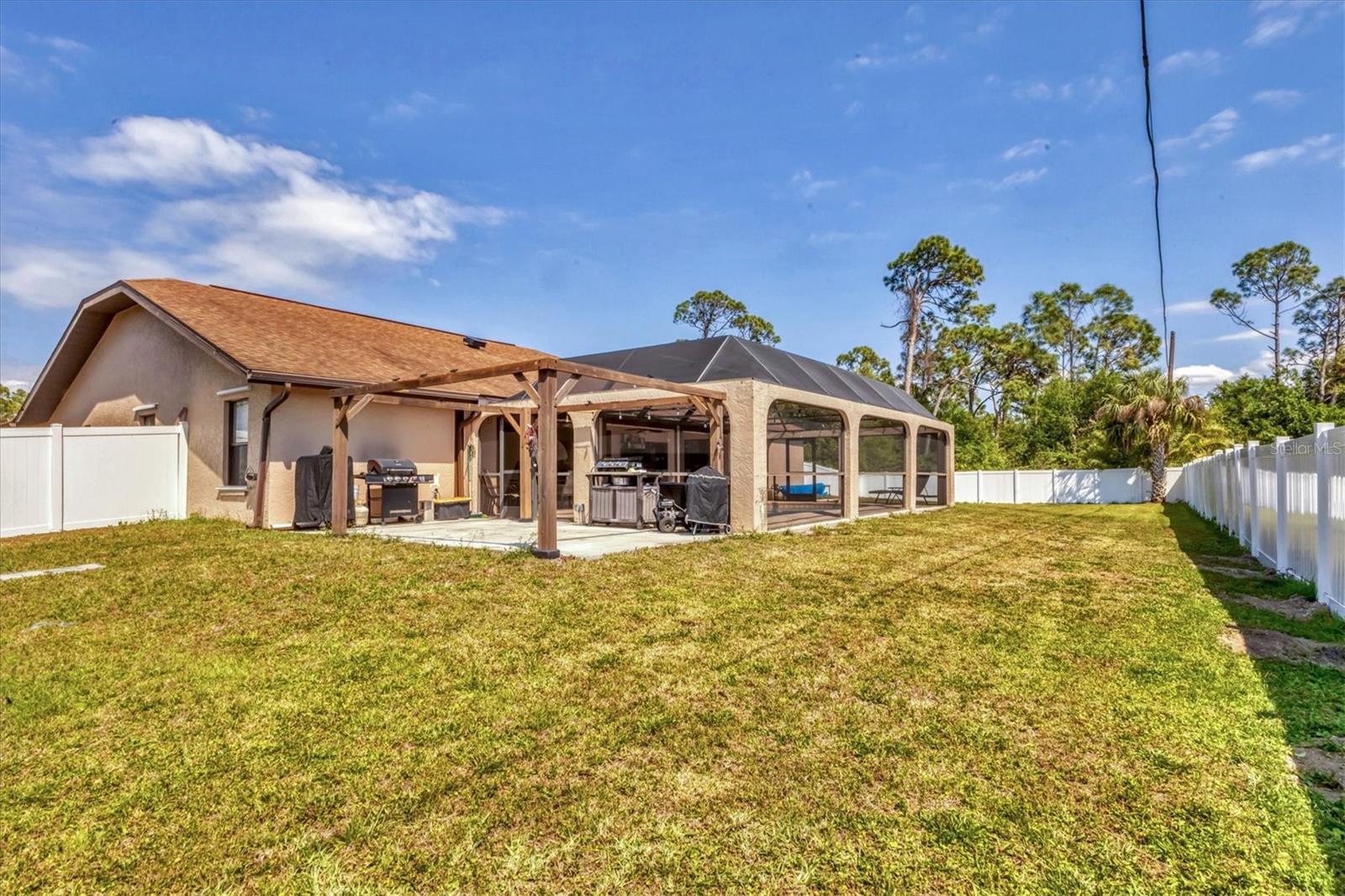 Welcome to your dream home! This expansive 4-bedroom, 2-bathroom single-family home sits on a generous .46-acre double lot in the desirable Port Charlotte, FL area. With a spacious 2400 sq ft of living space, this home offers the perfect blend of comfort, style, and convenience, all with NO HOA and NO flood zone—ensuring peace of mind. The open floor plan and high ceilings create a bright, airy atmosphere, perfect for both relaxation and entertaining. The large living and dining areas seamlessly connect to the well-appointed kitchen, offering plenty of room for family gatherings and hosting friends. Step outside to your private fenced yard featuring a stunning swimming pool, perfect for cooling off on hot Florida days. The covered and screened lanai allows you to enjoy outdoor living year-round, whether you're grilling, relaxing, or enjoying the Florida sunshine. This property is an outdoor lover's dream with ample space for RV and boat storage. Two mini storage sheds provide additional storage for all your tools, equipment, and toys. There's no need to worry about space or clutter here! Conveniently located with NO minimum monthly rental restrictions, this home offers incredible flexibility for investors or those looking for a second home. Whether you're planning to make it your primary residence or want to take advantage of short-term rental opportunities, the possibilities are endless. Additional features include: Flex Den/bedroom NO HOA NO FLOOD ZONE! 2 Mini barns provide ample storage space Generous lot size with plenty of room for expansion or outdoor activities Close proximity to shopping, dining, and beautiful Florida beaches This Port Charlotte gem is the perfect balance of tranquility and convenience—come see it today and make it your own!