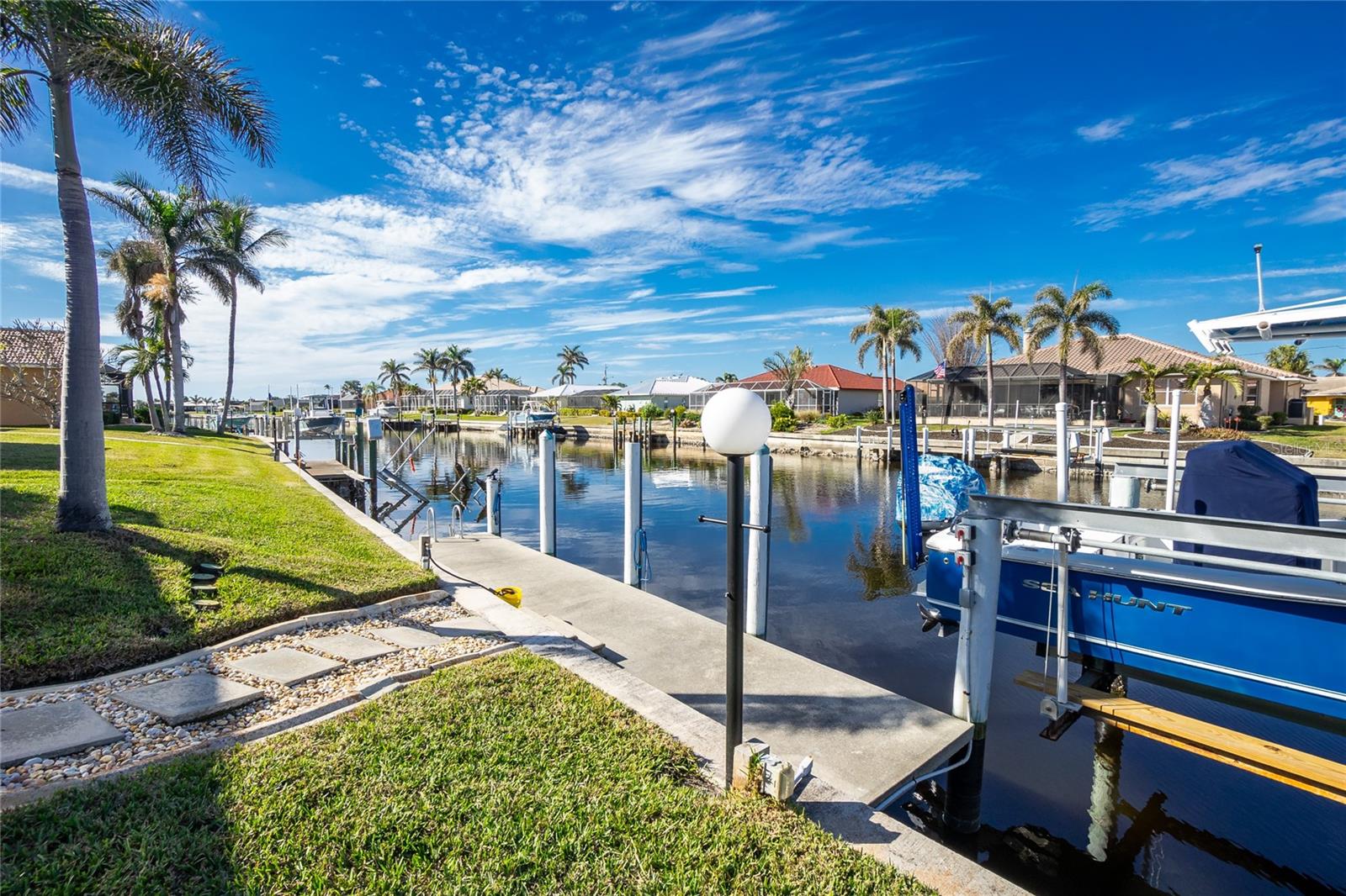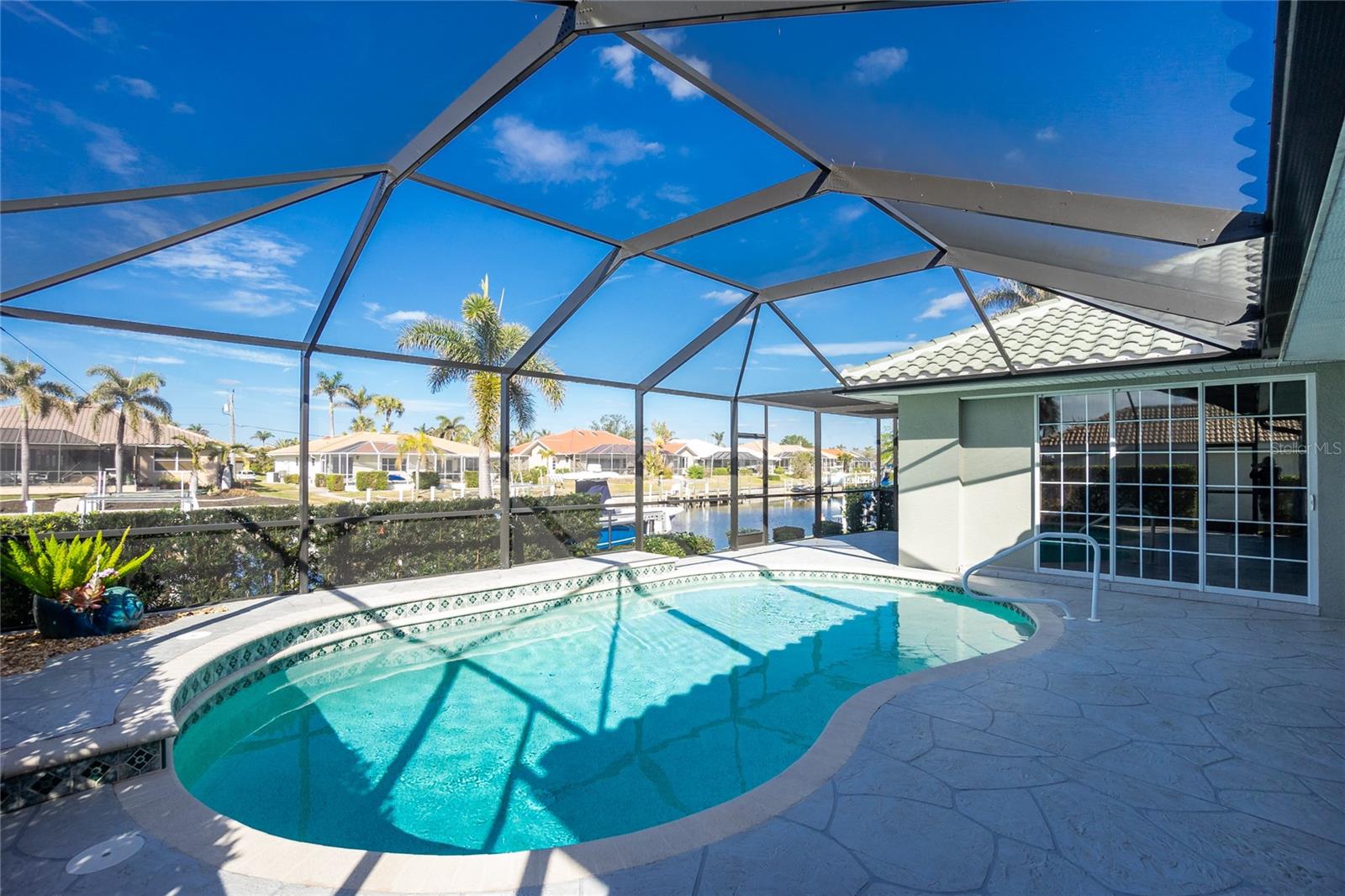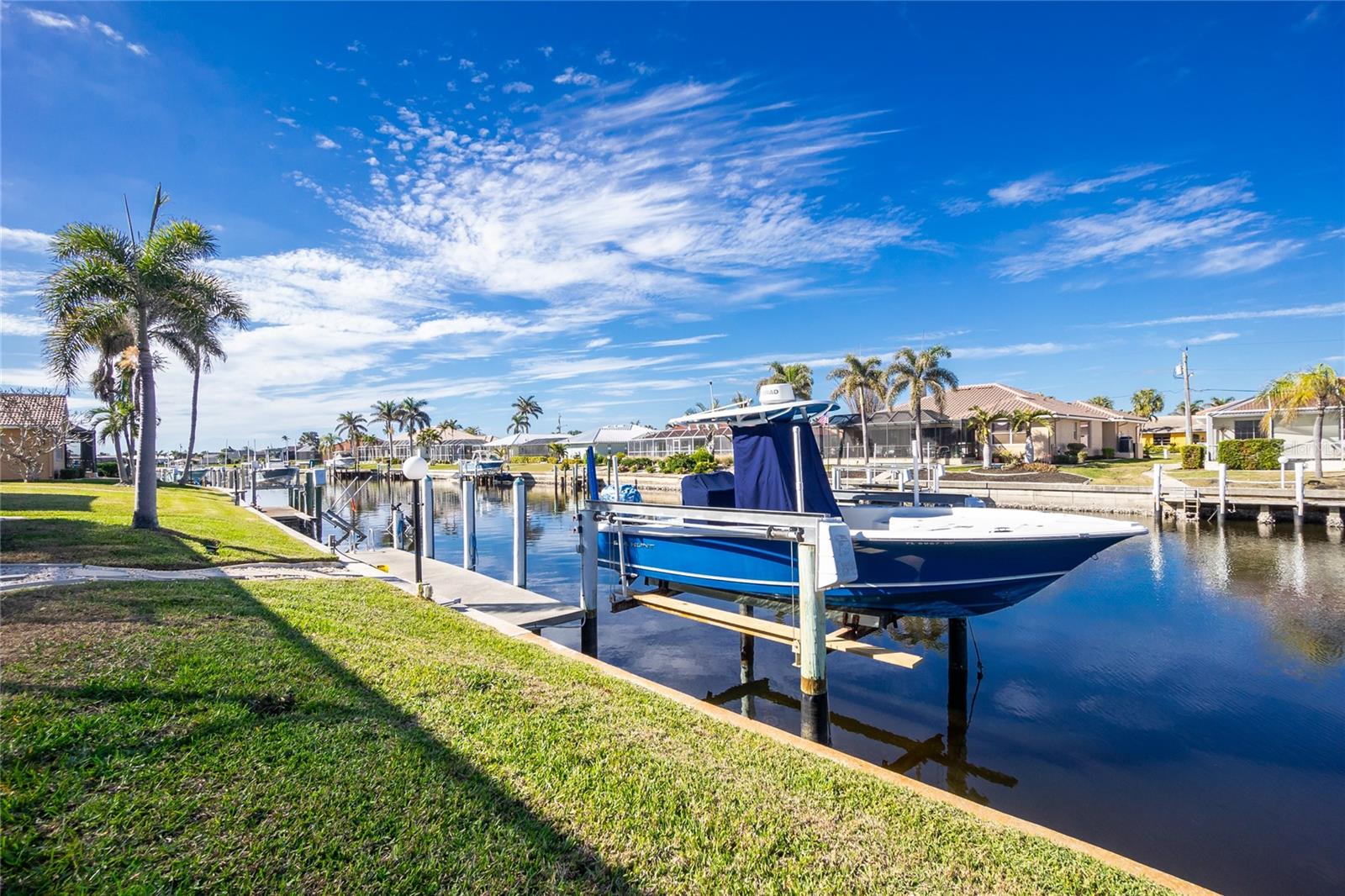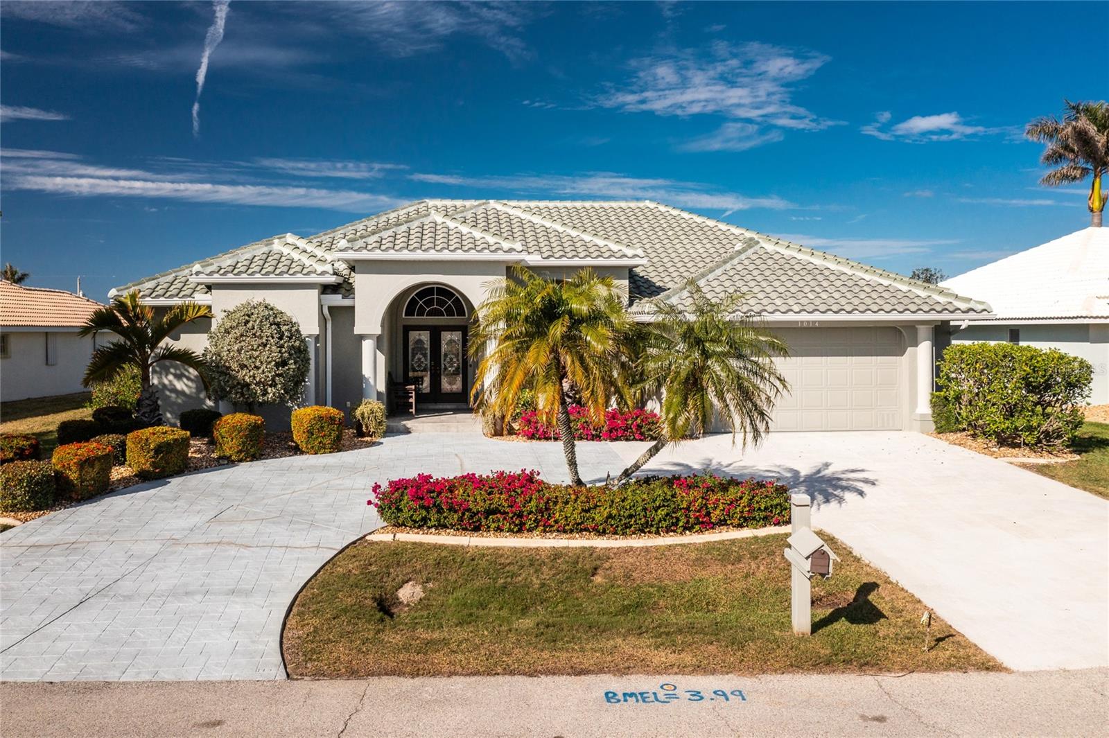 Impressive WATERFRONT home with 3 Bedrooms, 3 Bathrooms and attached 2 Car Garage located on a quiet street in the desirable deed restricted community of PUNTA GORDA ISLES. ***SOLD TURNKEY FURNISHED*** This light and bright home offers an open and split bedroom floor plan with Great Room, separate Dining Room, Family Room, well appointed Kitchen and Inside Laundry. The Great Room features wood floors, plant shelves, high ceiling and sliding glass doors to the Lanai. The spacious Dining Room offers wood floors, natural light through a large arched window and plantation shutters. The Kitchen features stainless appliances, breakfast bar, island with storage, cooktop and stainless range hood, double sink, pantry, cabinets with crown molding, excellent counter and cabinet space. Appliances include : double door refrigerator, built in microwave, built in oven, dishwasher. There is a Dining Area with aquarium glass overlooking the pool and water. The Inside Laundry is equipped with a washer, dryer, sink and cabinets. The large Family Room with tile floors has a large window facing the waterfront with plantation shutters and sliding glass doors to the Lanai. The spacious Master Bedroom suite features wood floor, tray ceiling, lanai access, TWO walk in closets and private bathroom with dual sinks, bathtub and large walk in shower with seat. There are two generous sized guest bedrooms with walk in closets, one with wood floor, the other with luxury vinyl plank. The guest bathroom is also a Pool Bath and offers a walk in shower and his and hers sinks. Your living space extends to the screened Lanai with large covered area, plenty of deck for sunbathing, heated inground swimming pool, outdoor shower, area for grilling (grill conveys with the house) and fantastic water views. Pool is heated by propane and solar - there is a buried 200 gallon propane tank in the front yard. Continue to the waterfront with 76 foot concrete seawall maintained by the city of Punta Gorda. There is a 30 foot concrete dock and 10,000 lb boat lift. Quick powerboat access to Charlotte Harbor and on to the Gulf of Mexico. Other features include: circular driveway, beautiful landscaping, double door entry with transom window, rain gutters, circular driveway, barrell tile roof, 4 walk in closets, central vacuum, NEW tile ROOF 2024, NEW pool cage 2023, Utilities are city water and sewer. There are deed restrictions but NO HOA. This home is 5 minutes to Golf and 10 minutes to Fishermen's Village and historic downtown Punta Gorda shopping, dining, medical care, waterfront parks, boat ramps, fishing piers, walking and biking paths, weekend farmers markets, art galleries, Charlotte Harbor Event Center, downtown events and more! This is Florida living at its best!